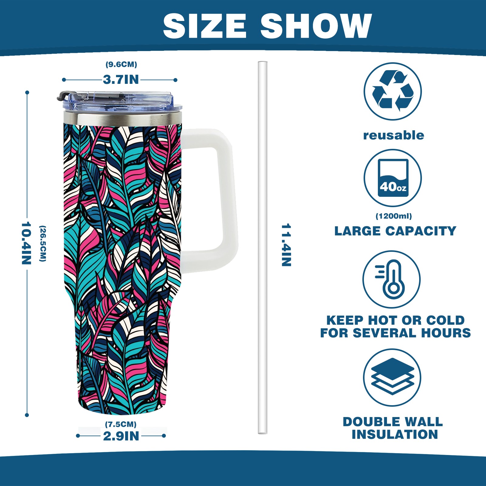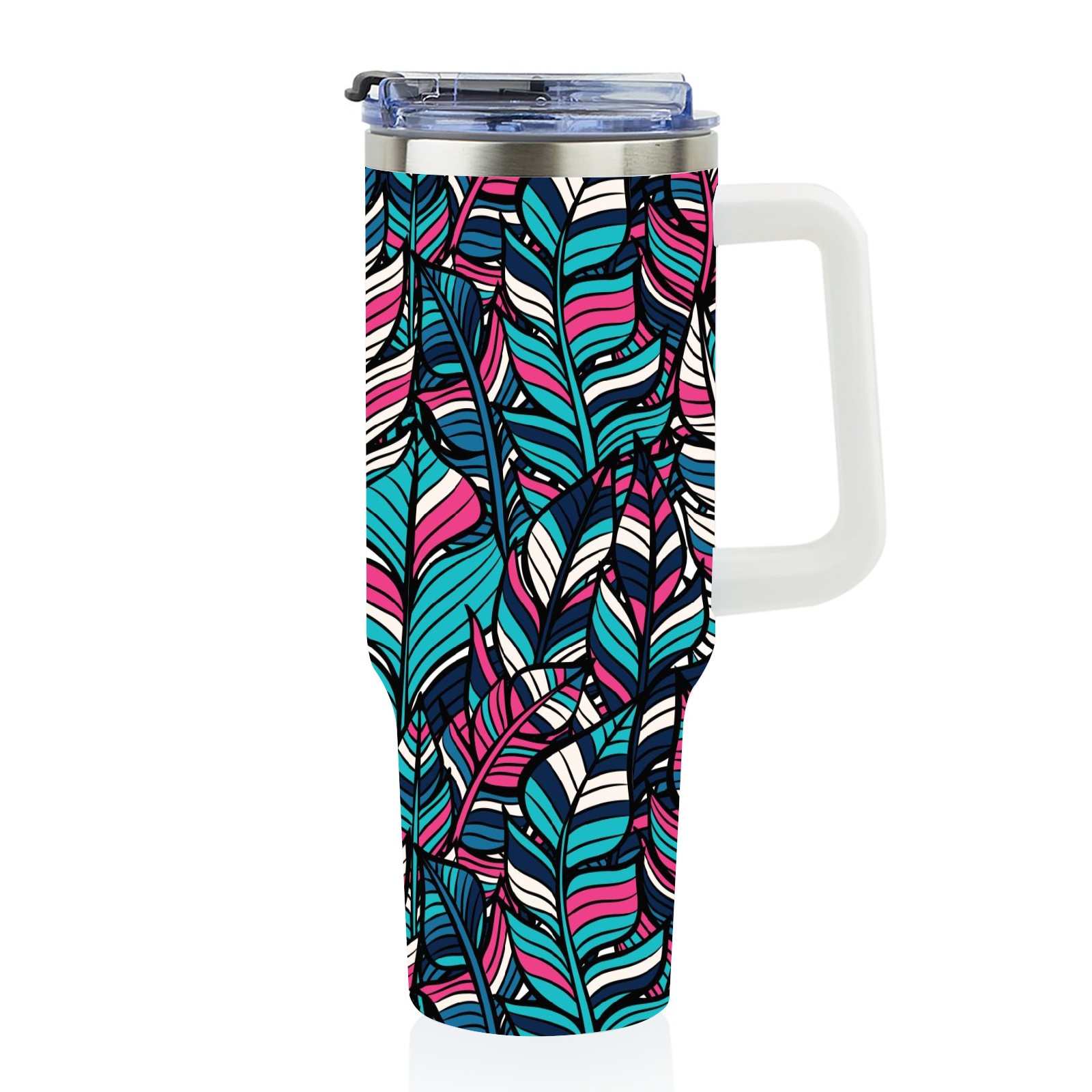 40oz Boho Style Seamless thermos with lid and straw, leak-proof stainless steel, with handle, spill-proof bottle, convenient for travel(pink)