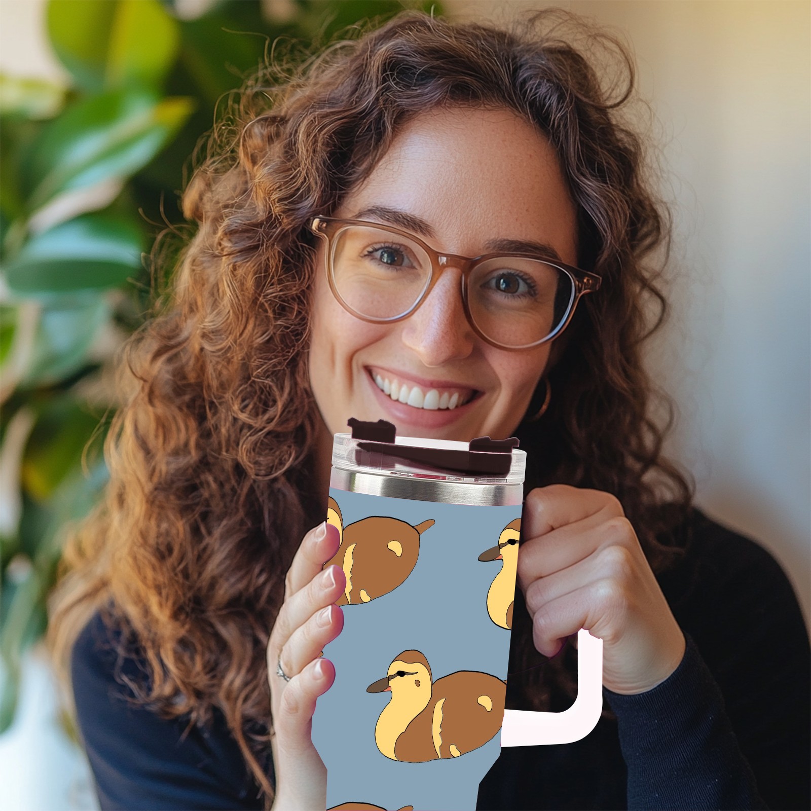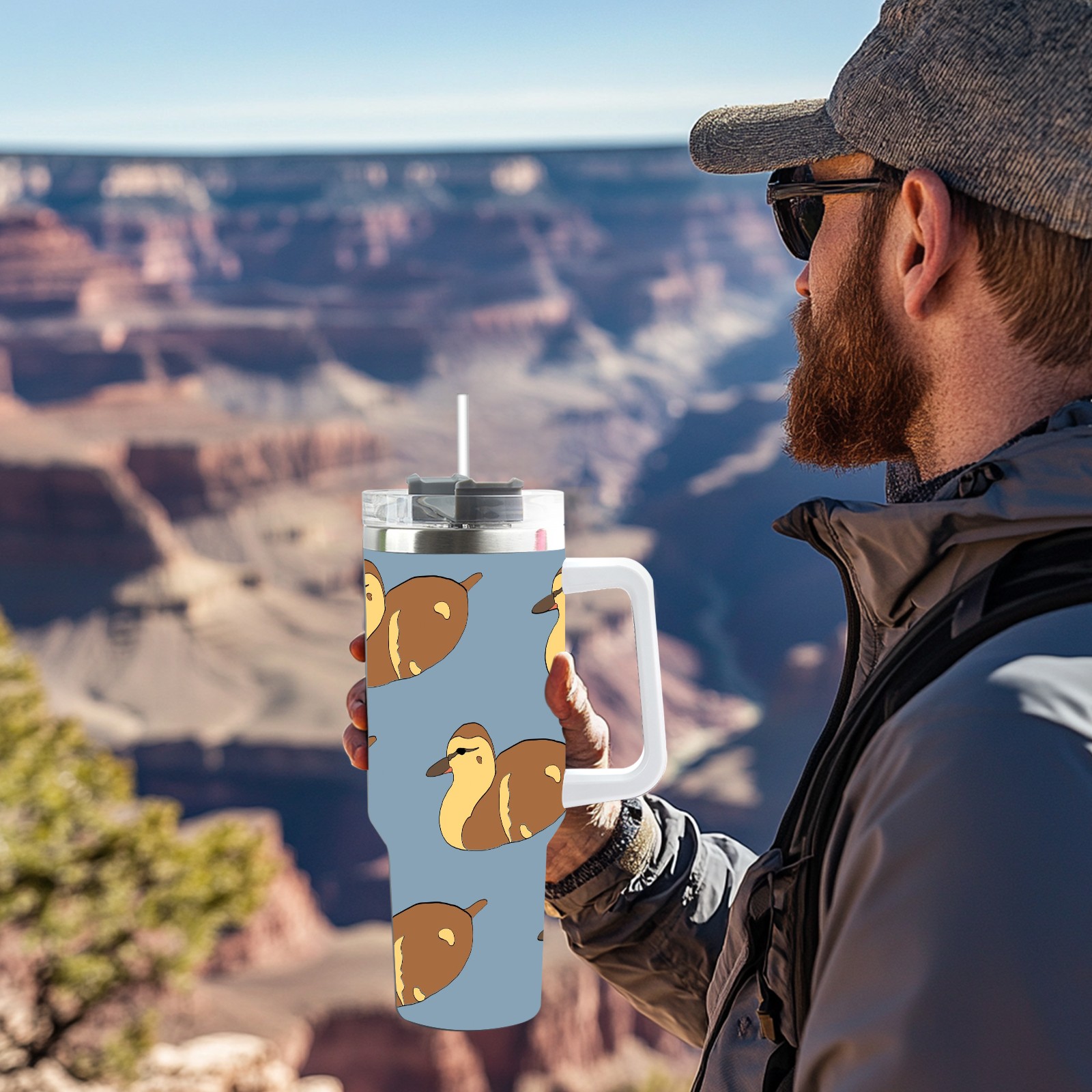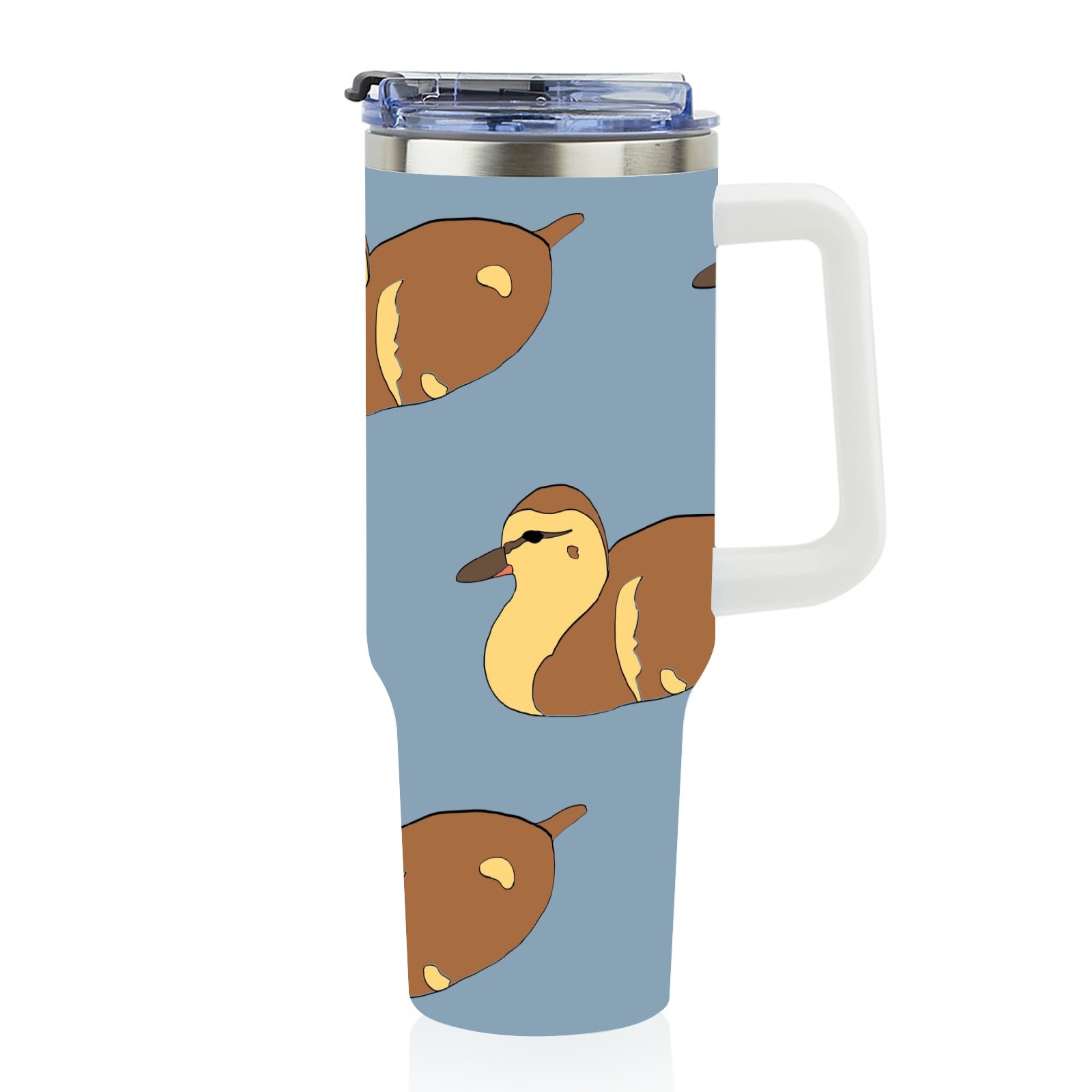 40oz Duckling Cute Seamless thermos with lid and straw, leak-proof stainless steel, with handle, spill-proof bottle, convenient for travel(pink)