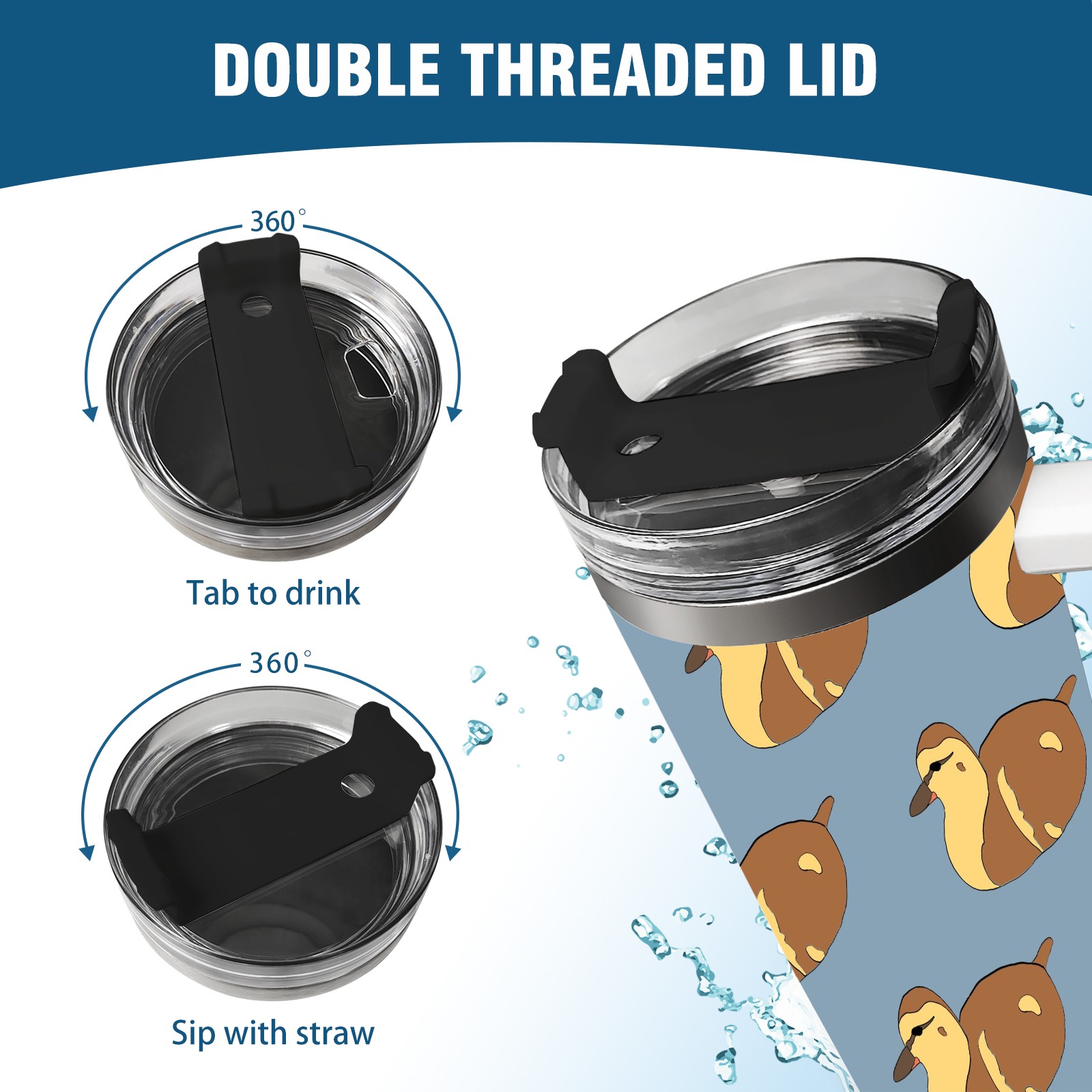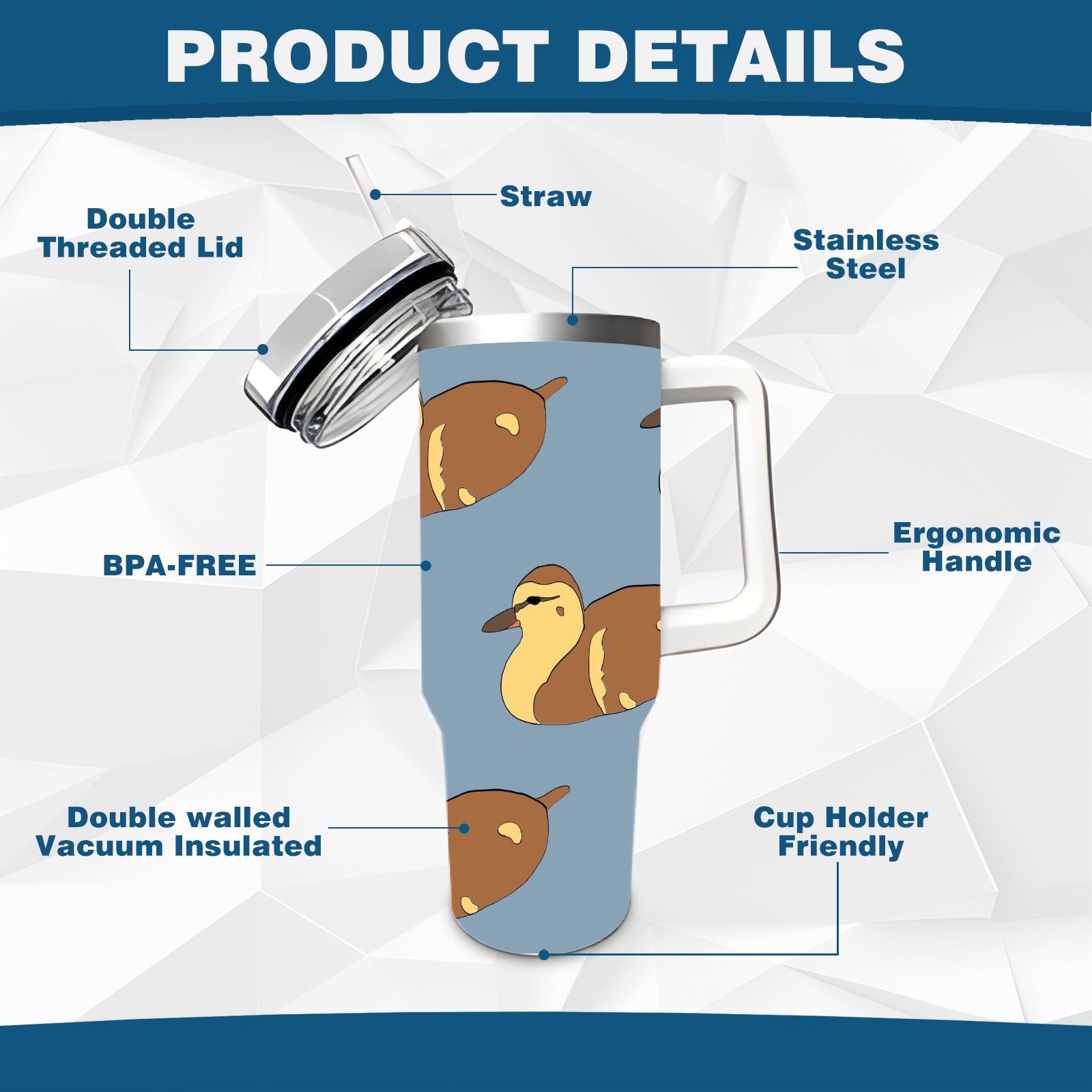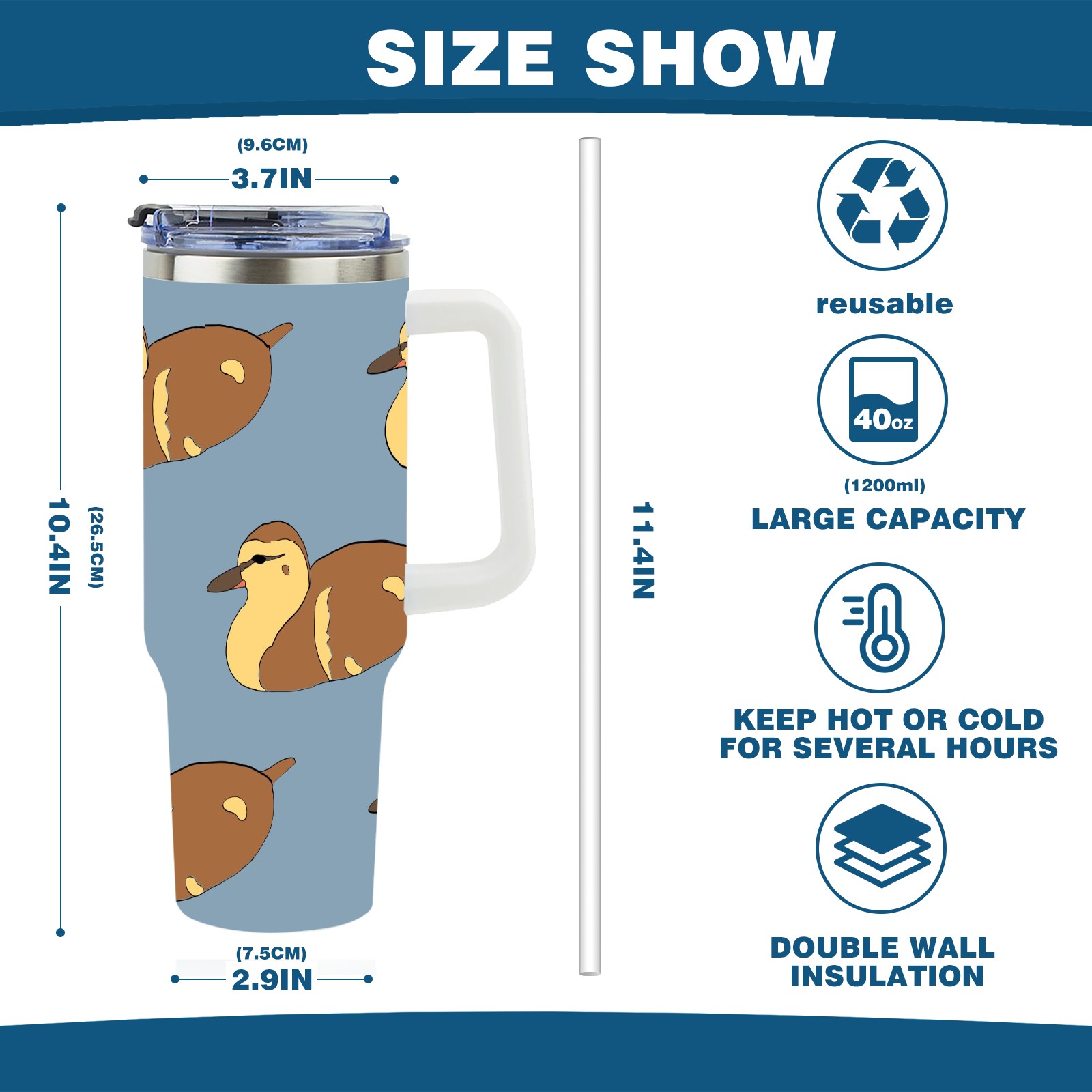 40oz Duckling Cute Seamless thermos with lid and straw, leak-proof stainless steel, with handle, spill-proof bottle, convenient for travel(pink)
