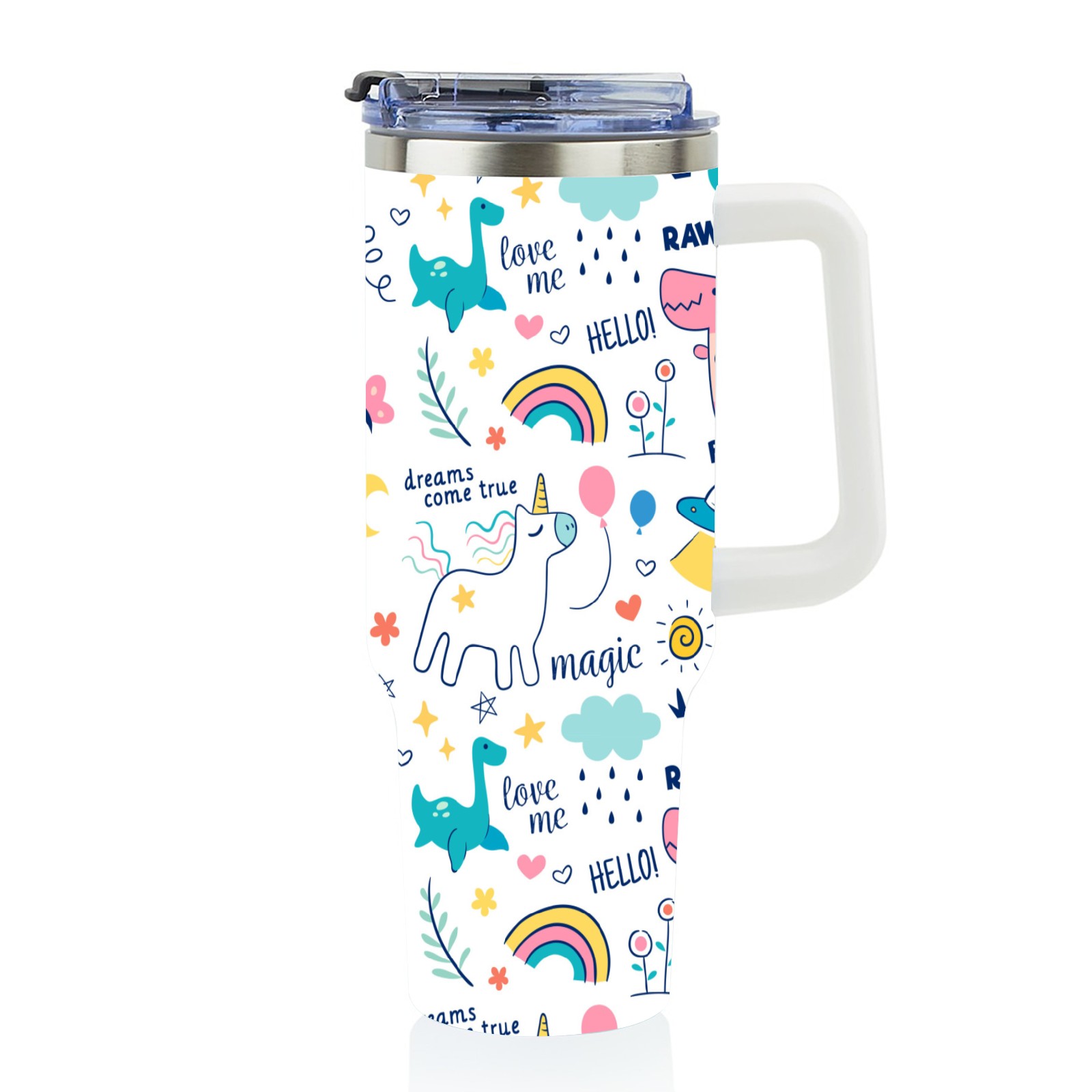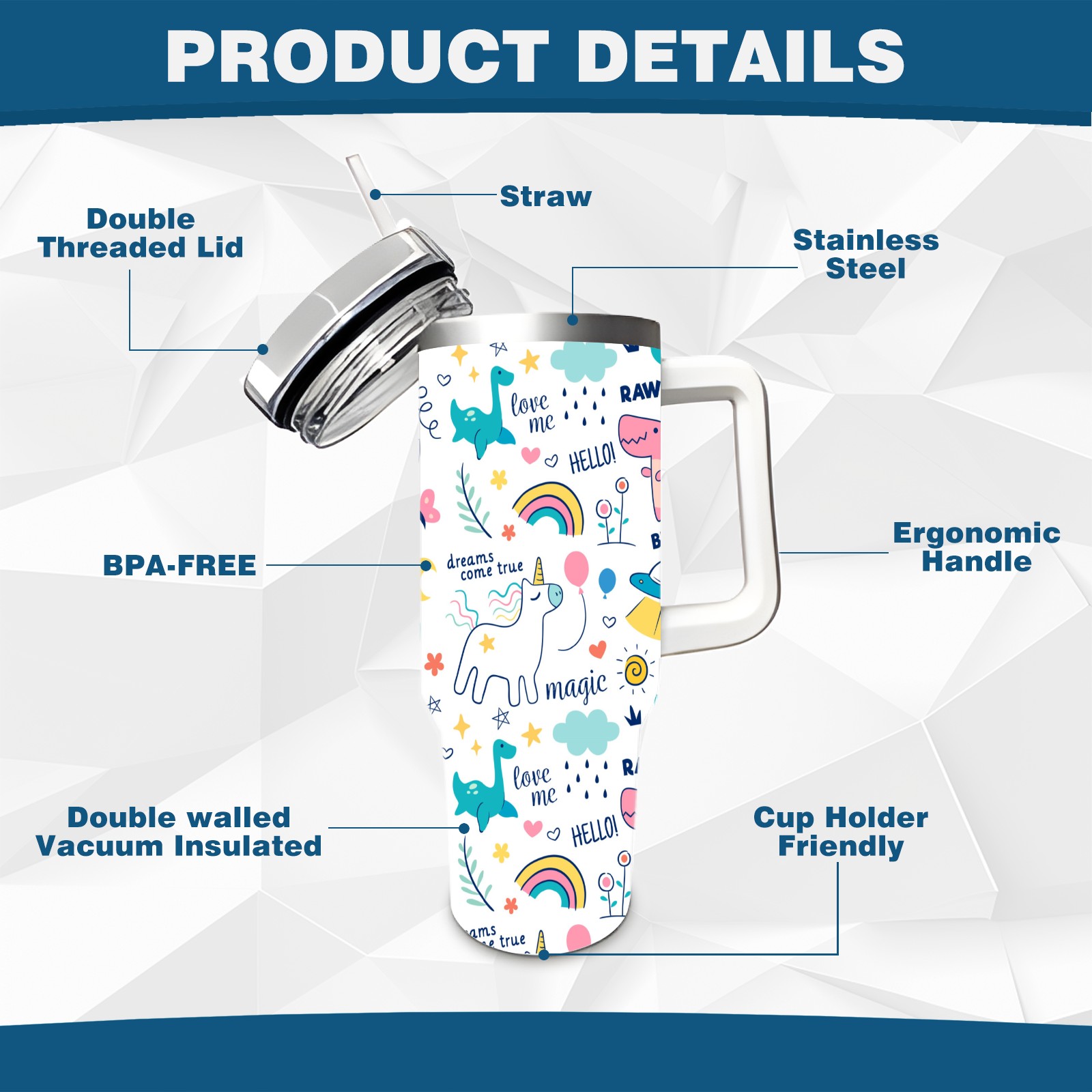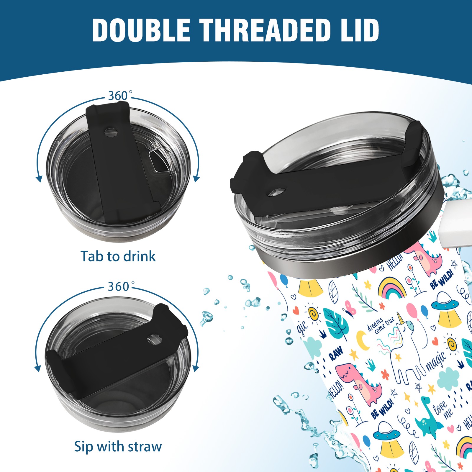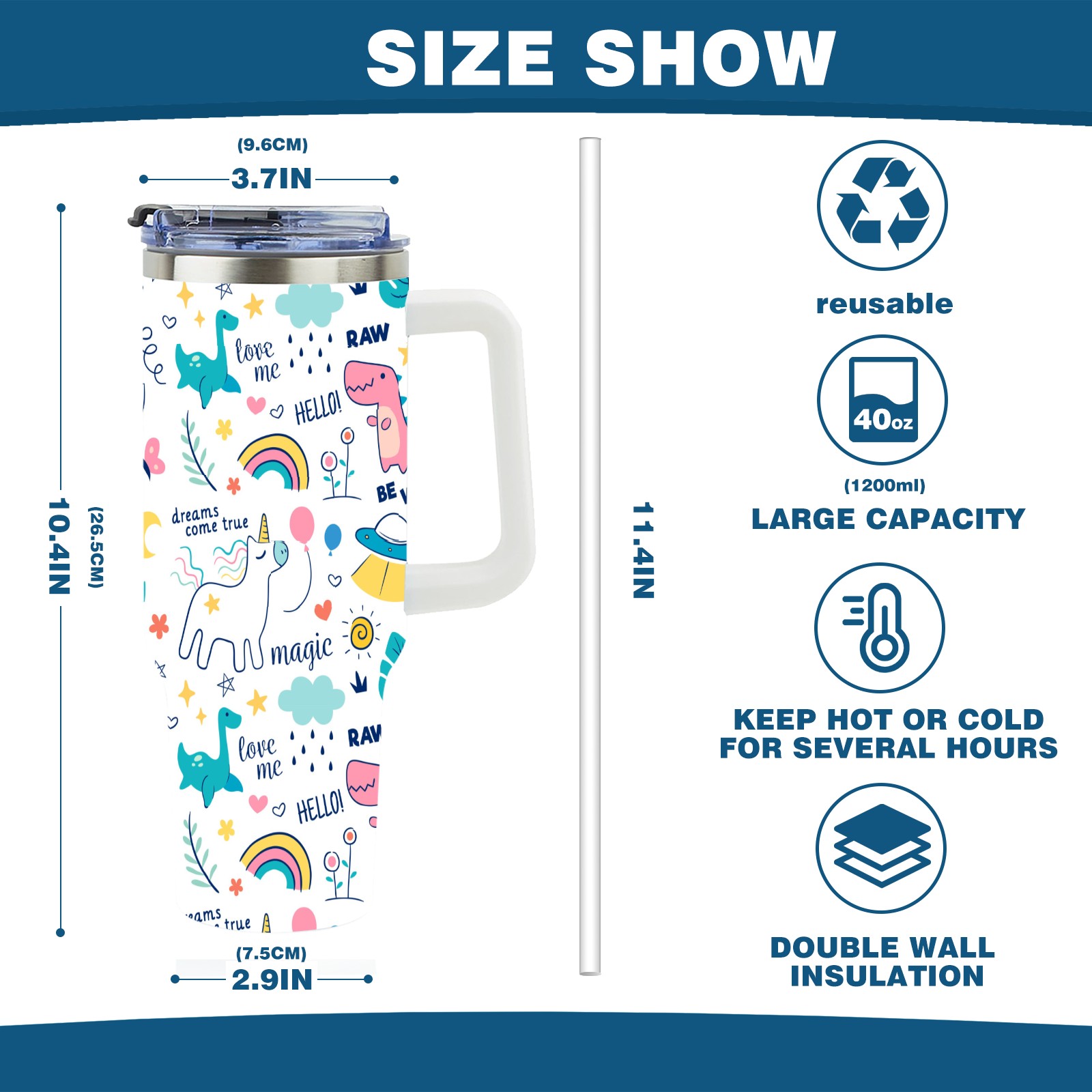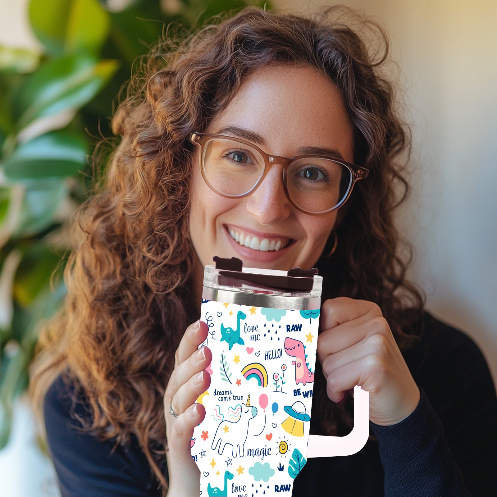 40oz Animals Words Seamless thermos with lid and straw, leak-proof stainless steel, with handle, spill-proof bottle, convenient for travel(pink)