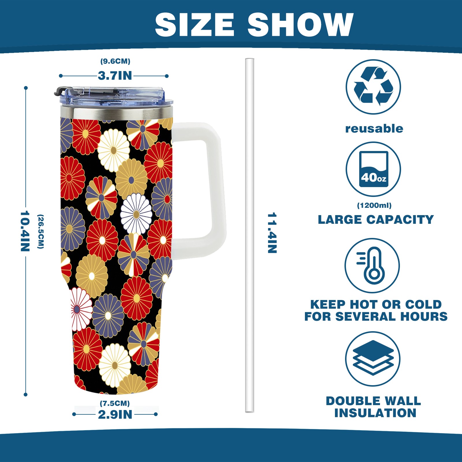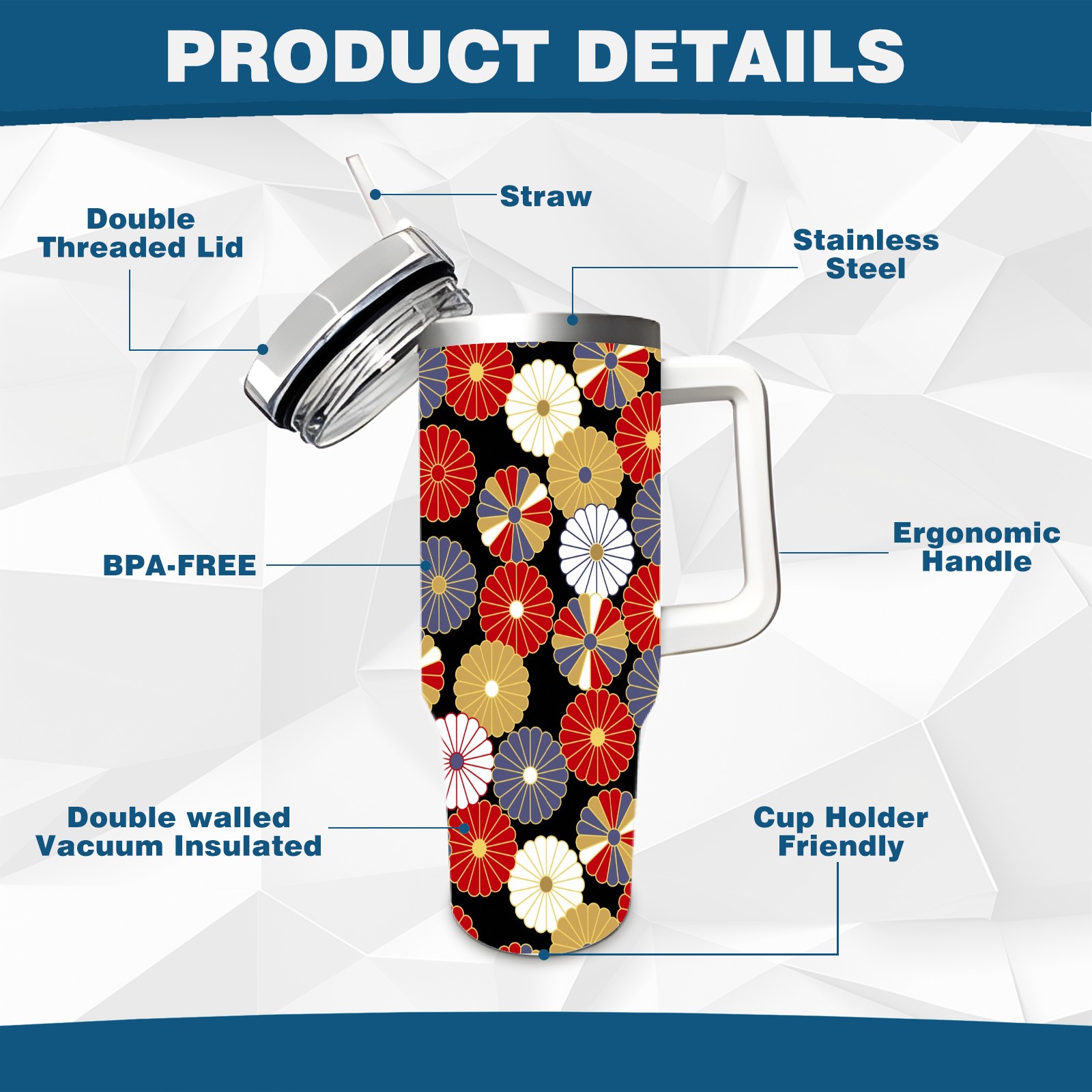 • <p>This multi-functional insulated water bottle features a simple and practical design, suitable for various daily scenarios. The ergonomic handle allows for easy one-handed drinking, and the detachable handle can be adjusted or removed as needed, making it convenient for commuting, exercising, or carrying to meetings. Made of high-quality stainless steel, it is BPA-free and features double-walled vacuum insulation technology that keeps drinks cold for 8 hours and hot for 6 hours, ensuring you can enjoy your beverage at the perfect temperature anytime, anywhere. The 40-ounce Christmas edition comes with a sliding lid, silicone straw, and a non-slip design. Accessories are dishwasher safe, and the narrow bottom and wide mouth design perfectly fits car cup holders. The exclusive flip-top straw lid is environmentally friendly and durable, with a one-touch leak-proof closure and two drinking modes: sip and gulp. A dust cover provides effective protection. This bottle is suitable for travel, office work, sports, camping, and other occasions, making it a thoughtful gift for friends and family.</p>