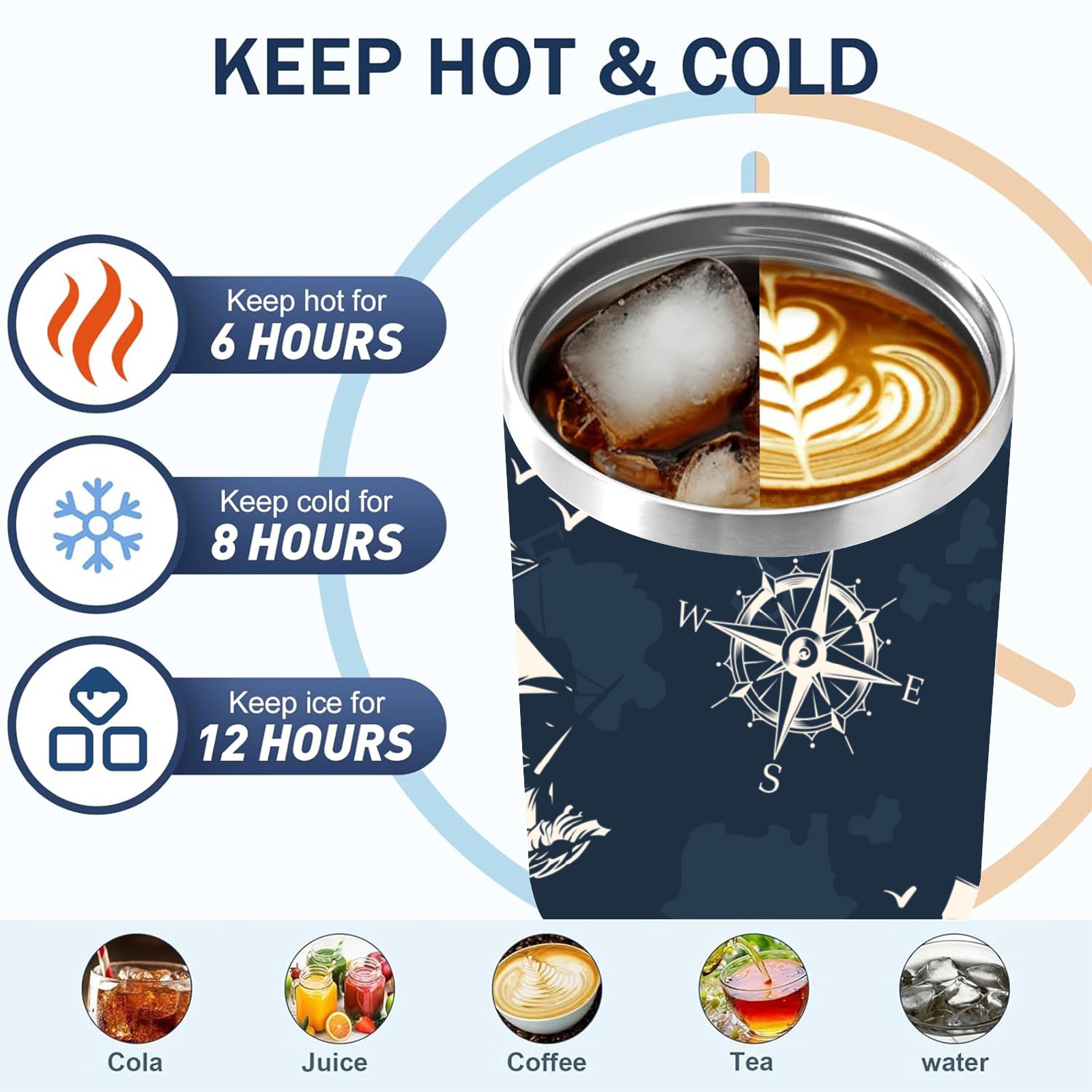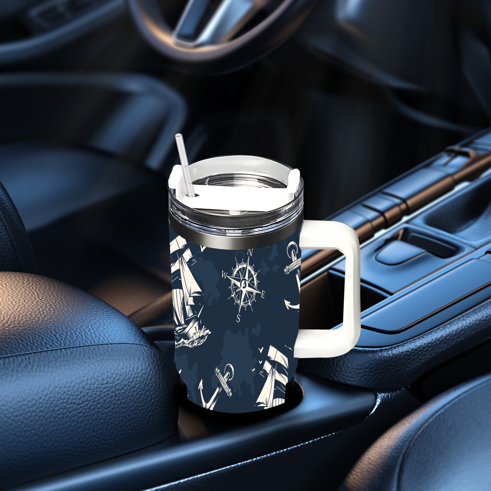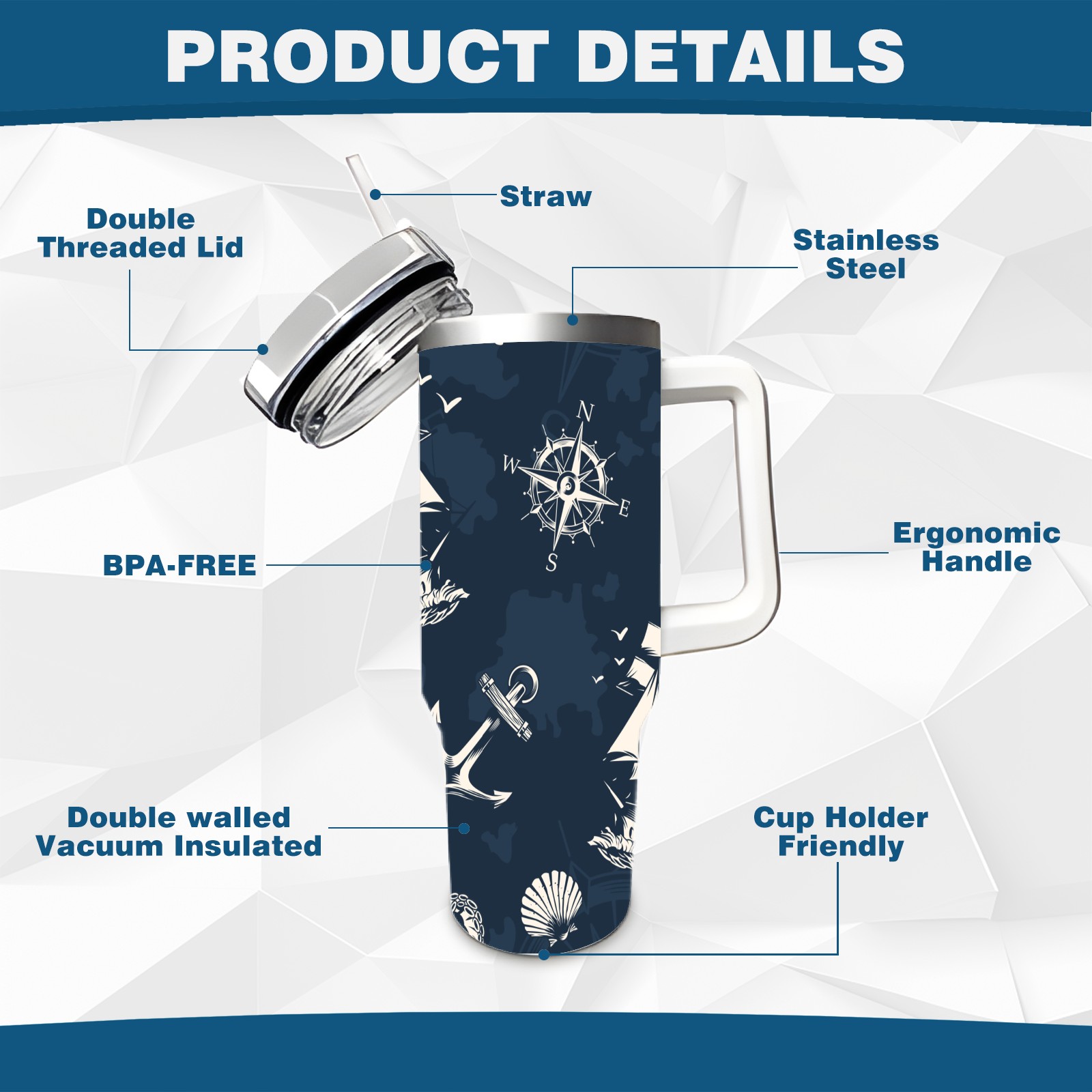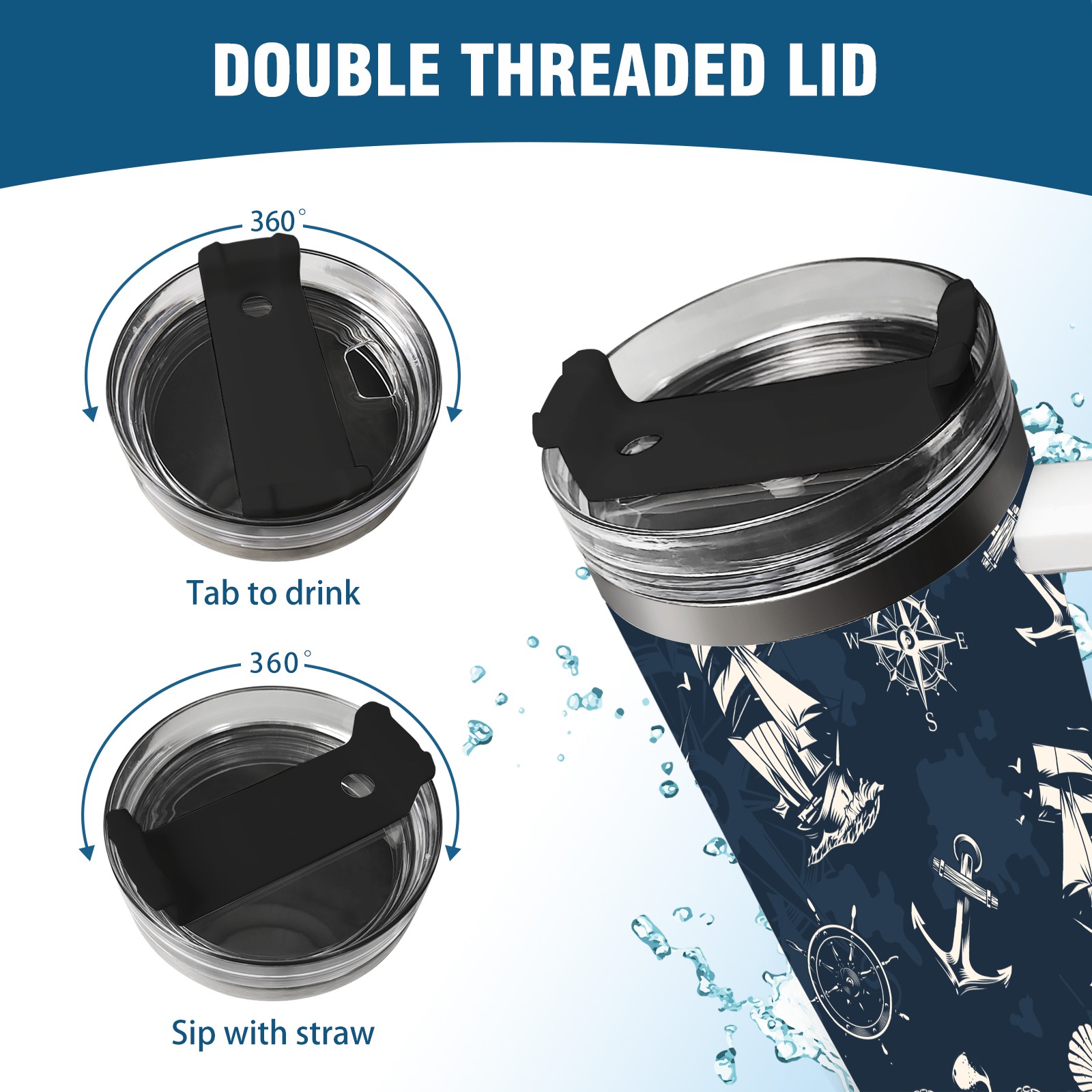 40oz Nautical Sea Seamless thermos with lid and straw, leak-proof stainless steel, with handle, spill-proof bottle, convenient for travel(pink)
