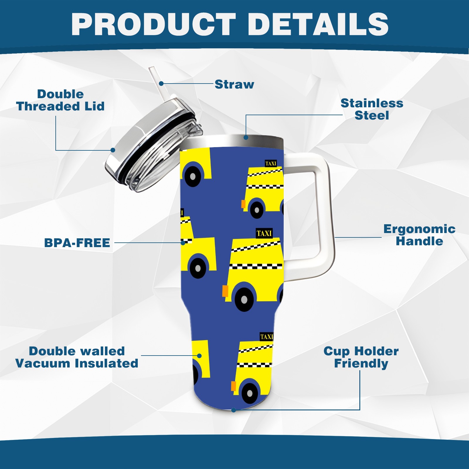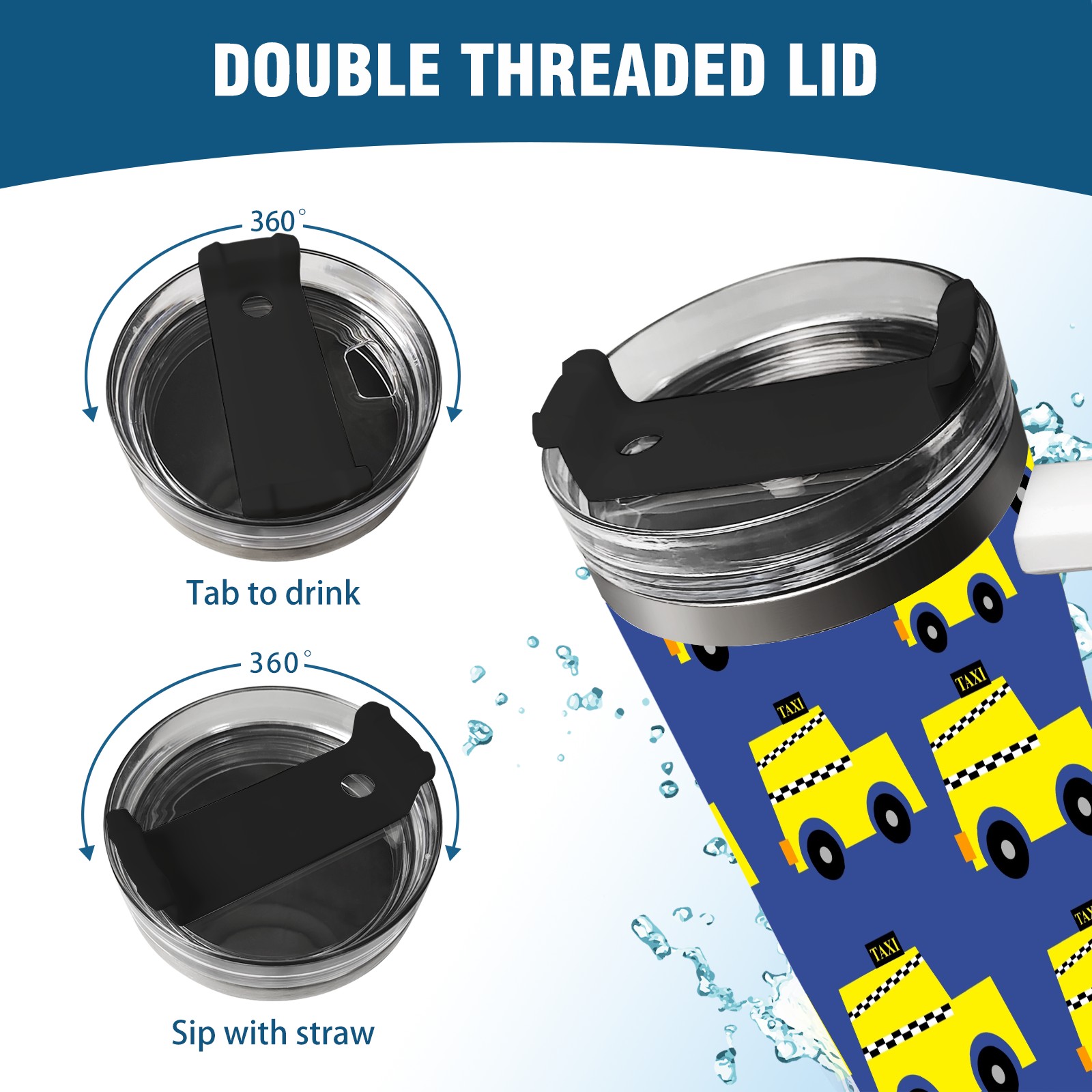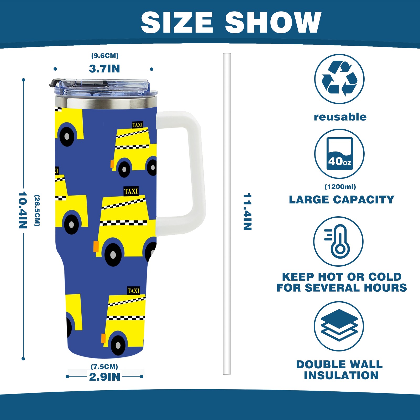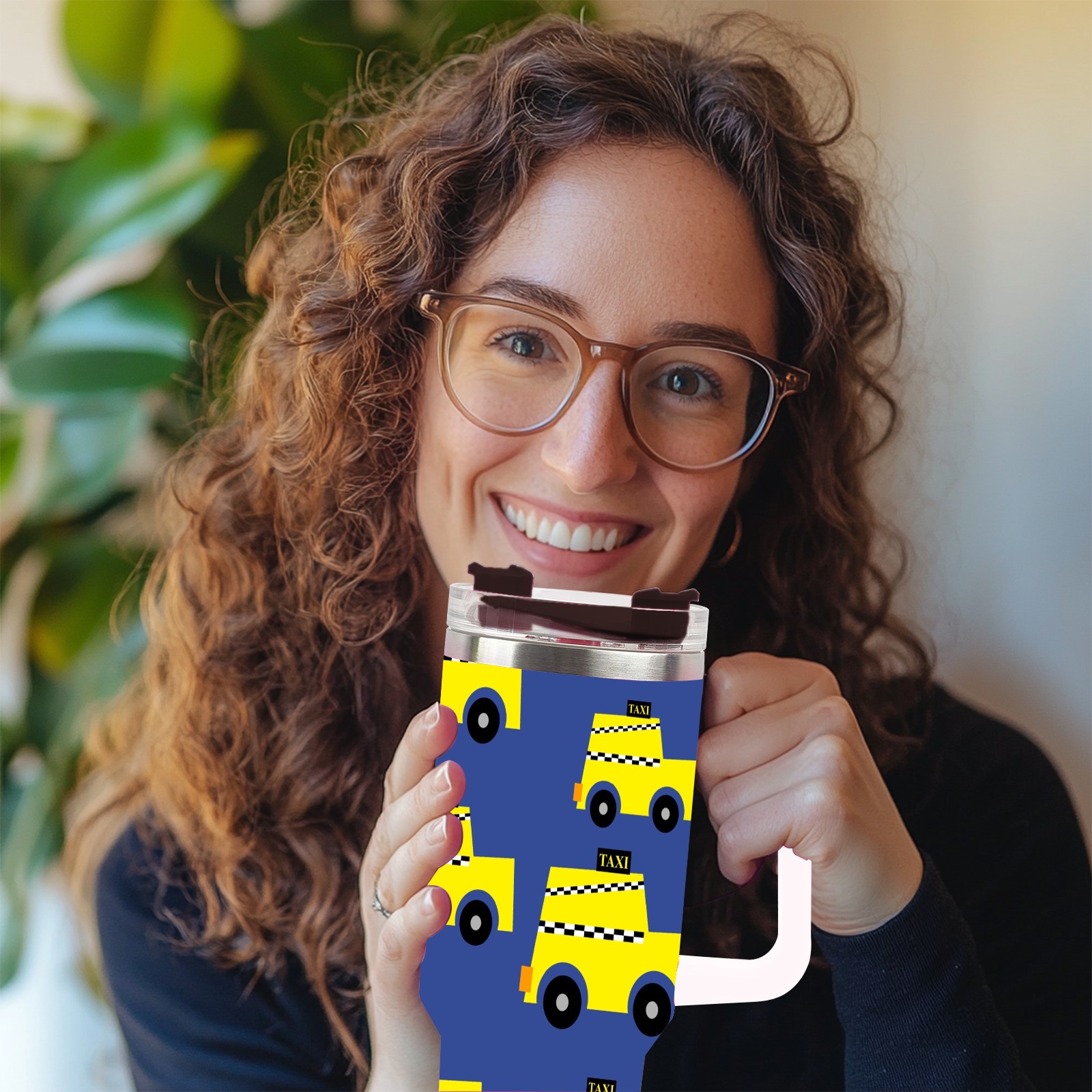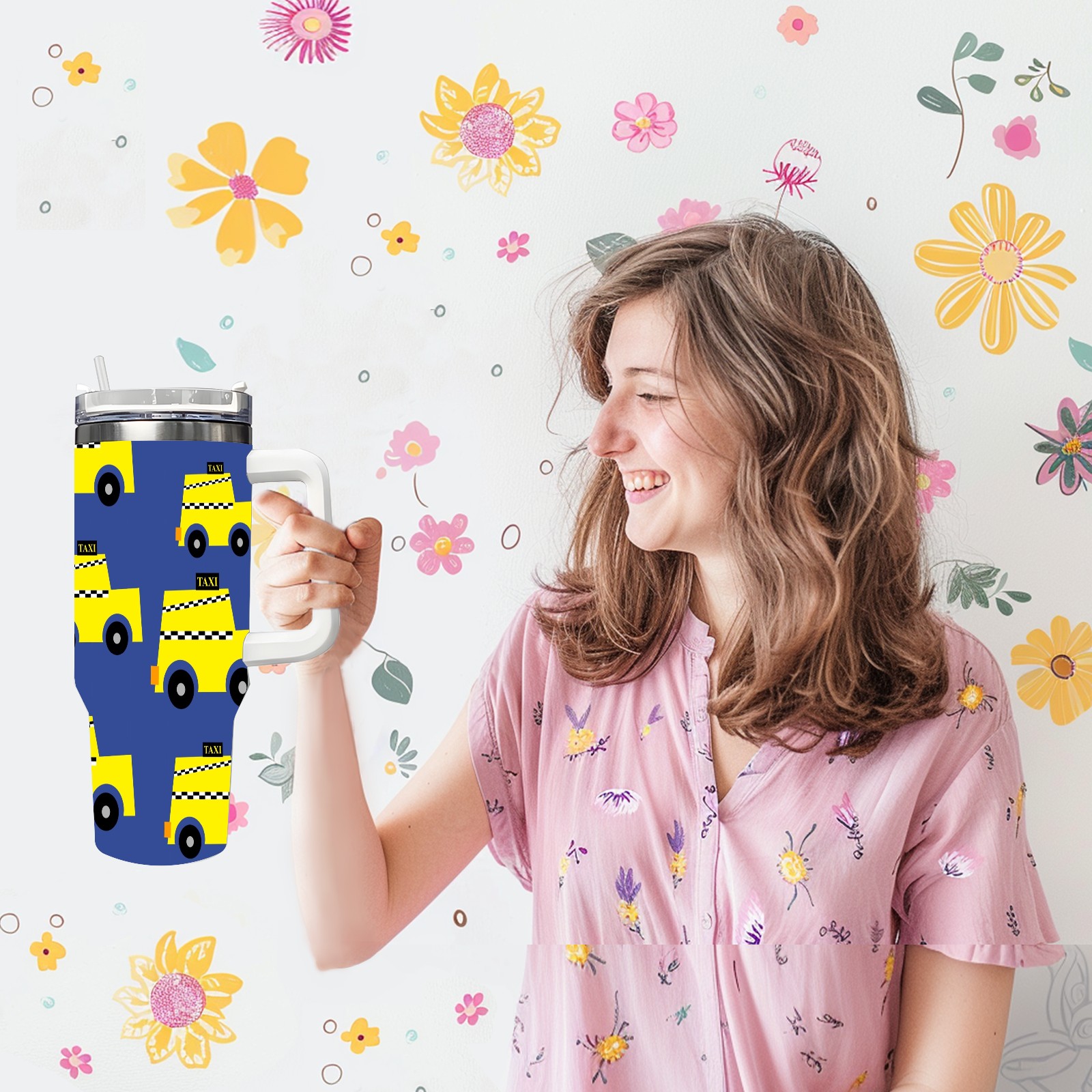 40oz Taxi Seamless thermos with lid and straw, leak-proof stainless steel, with handle, spill-proof bottle, convenient for travel(pink)