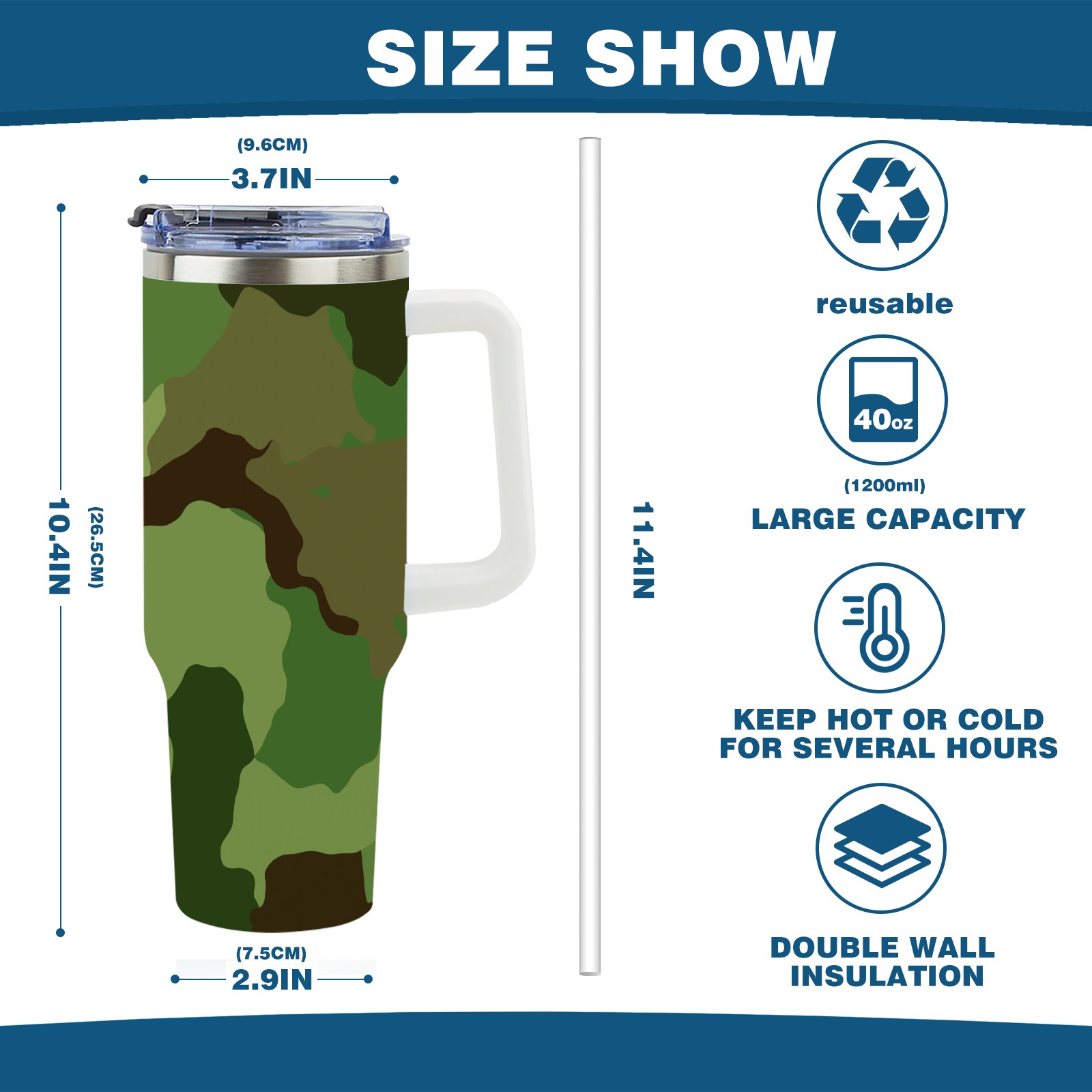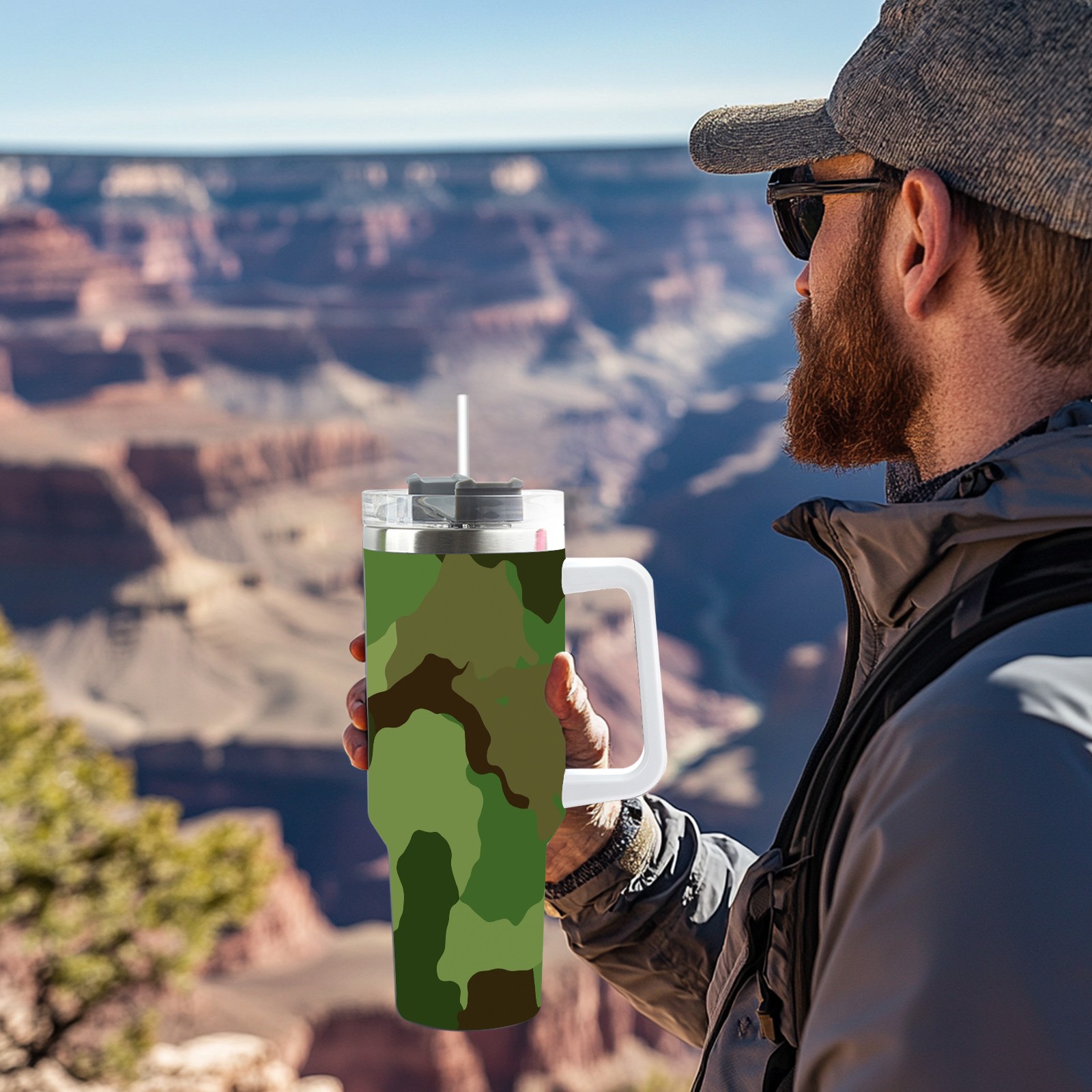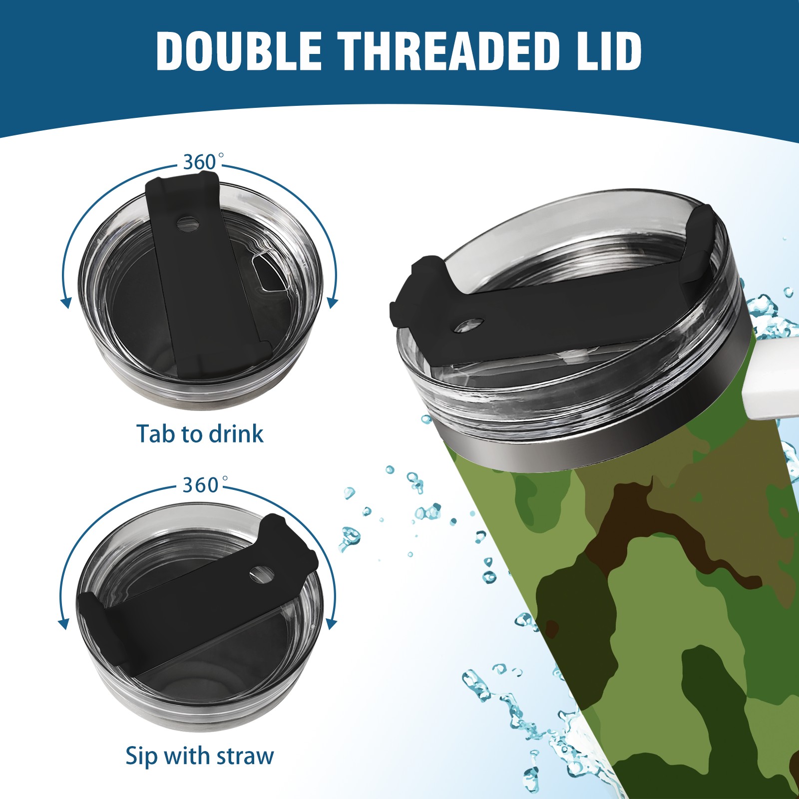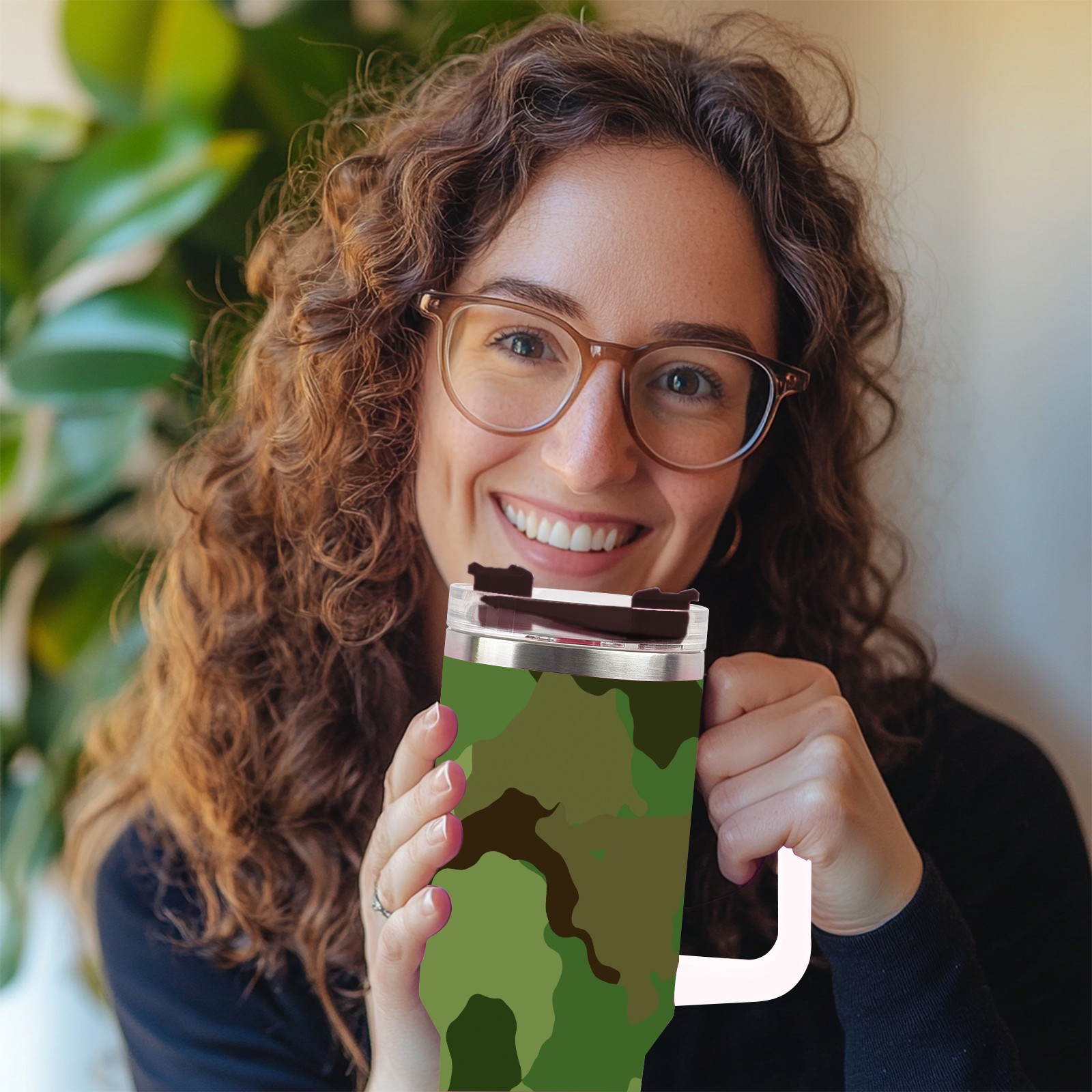 40oz Camouflage Seamless thermos with lid and straw, leak-proof stainless steel, with handle, spill-proof bottle, convenient for travel(pink)