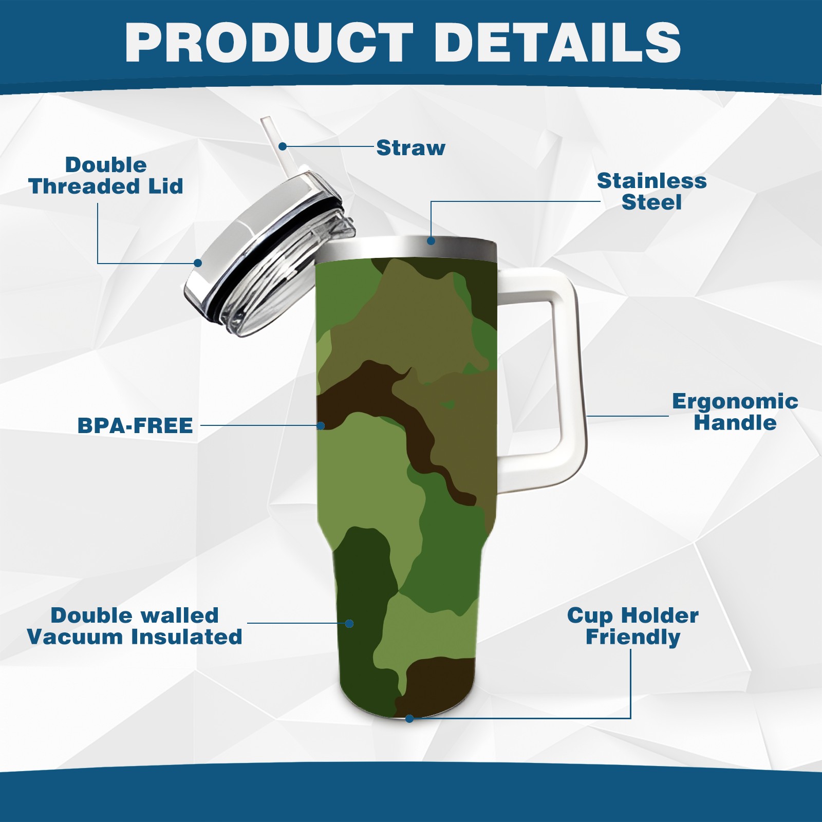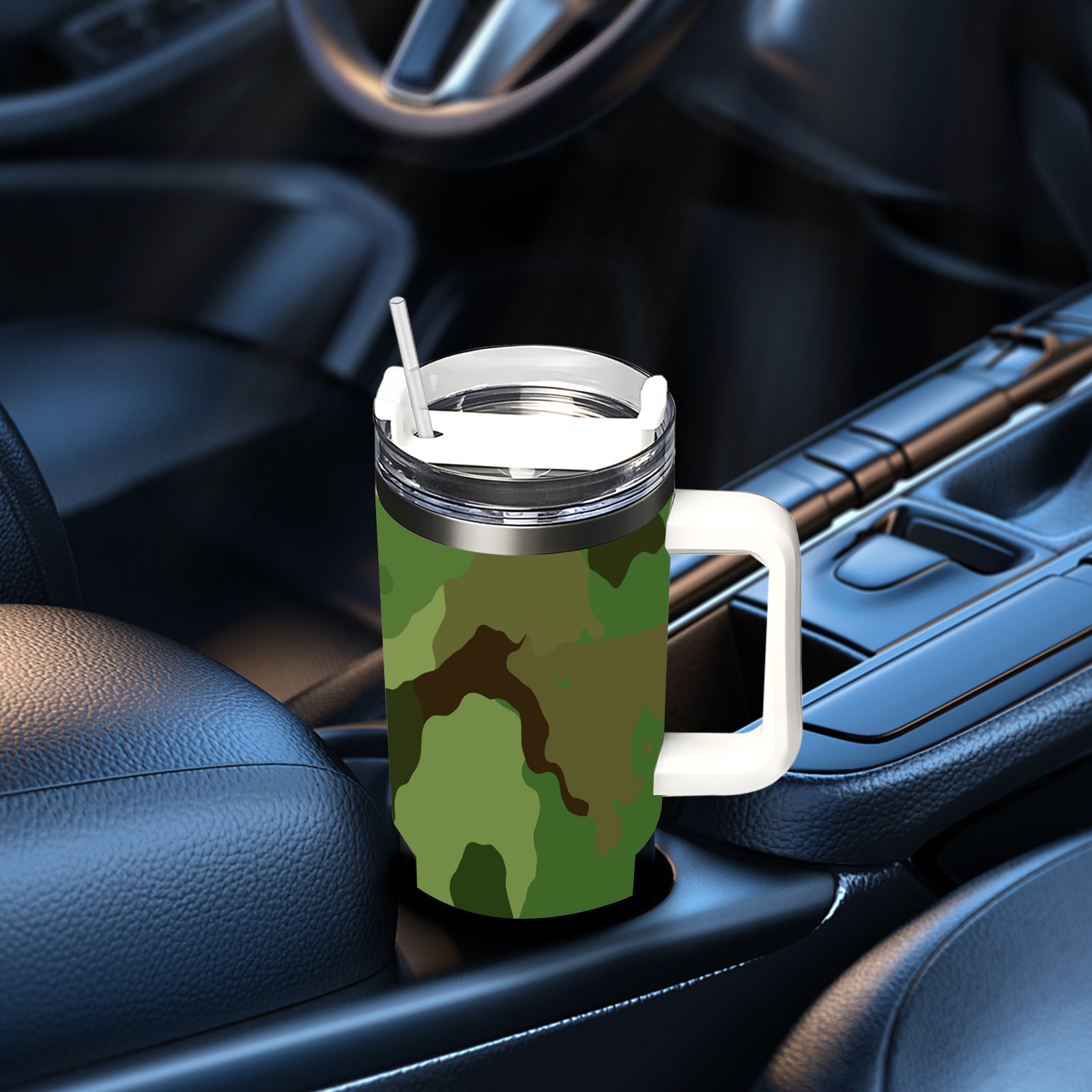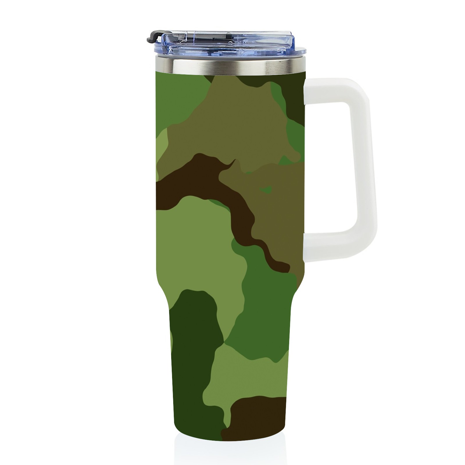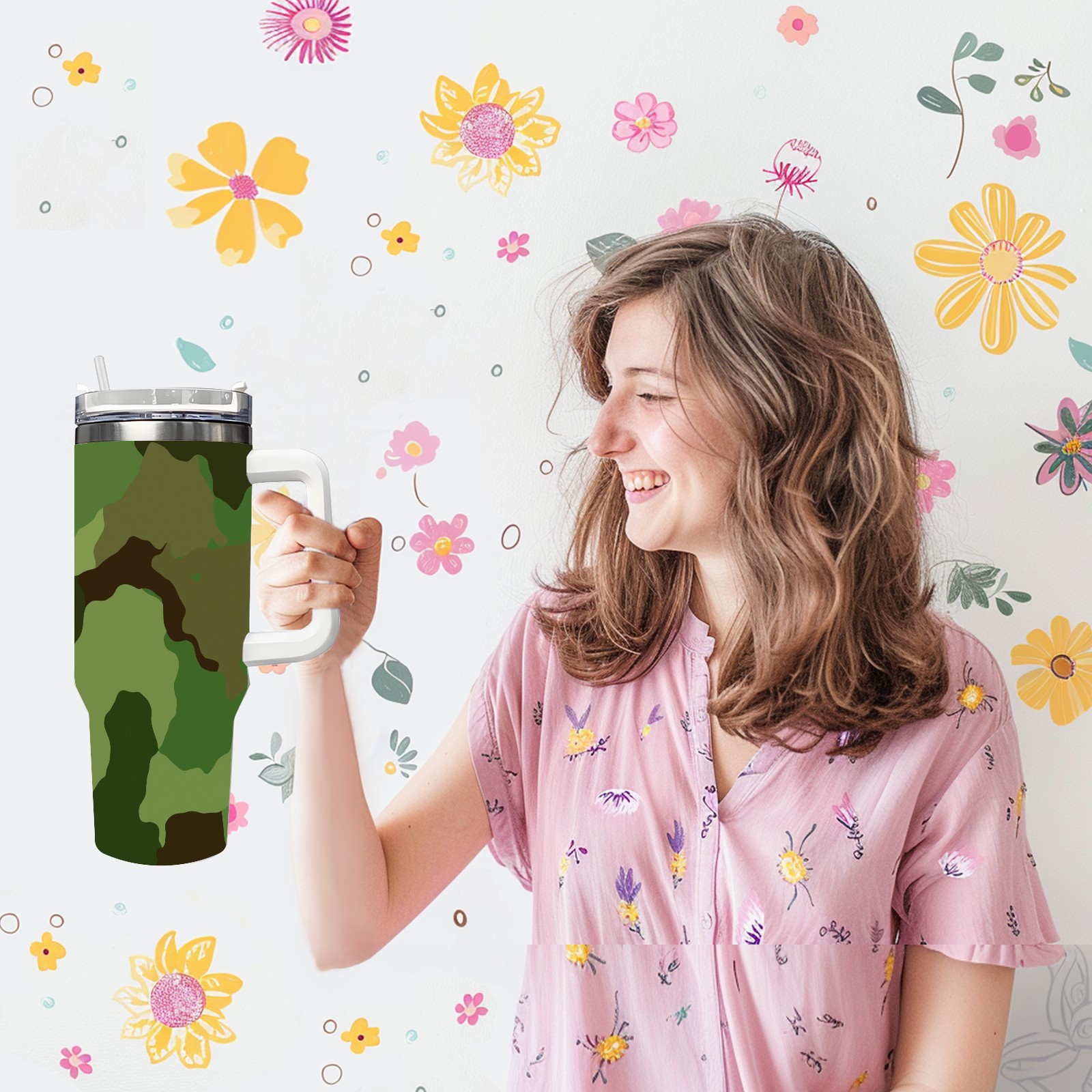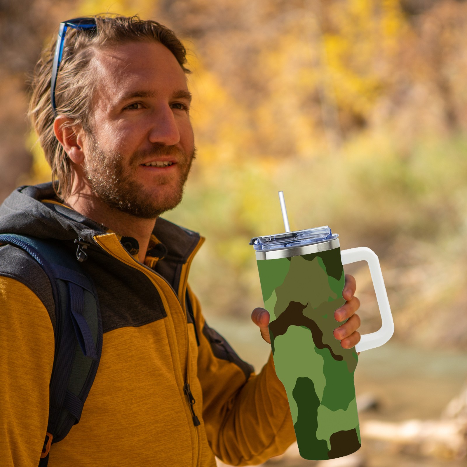 40oz Camouflage Seamless thermos with lid and straw, leak-proof stainless steel, with handle, spill-proof bottle, convenient for travel(pink)