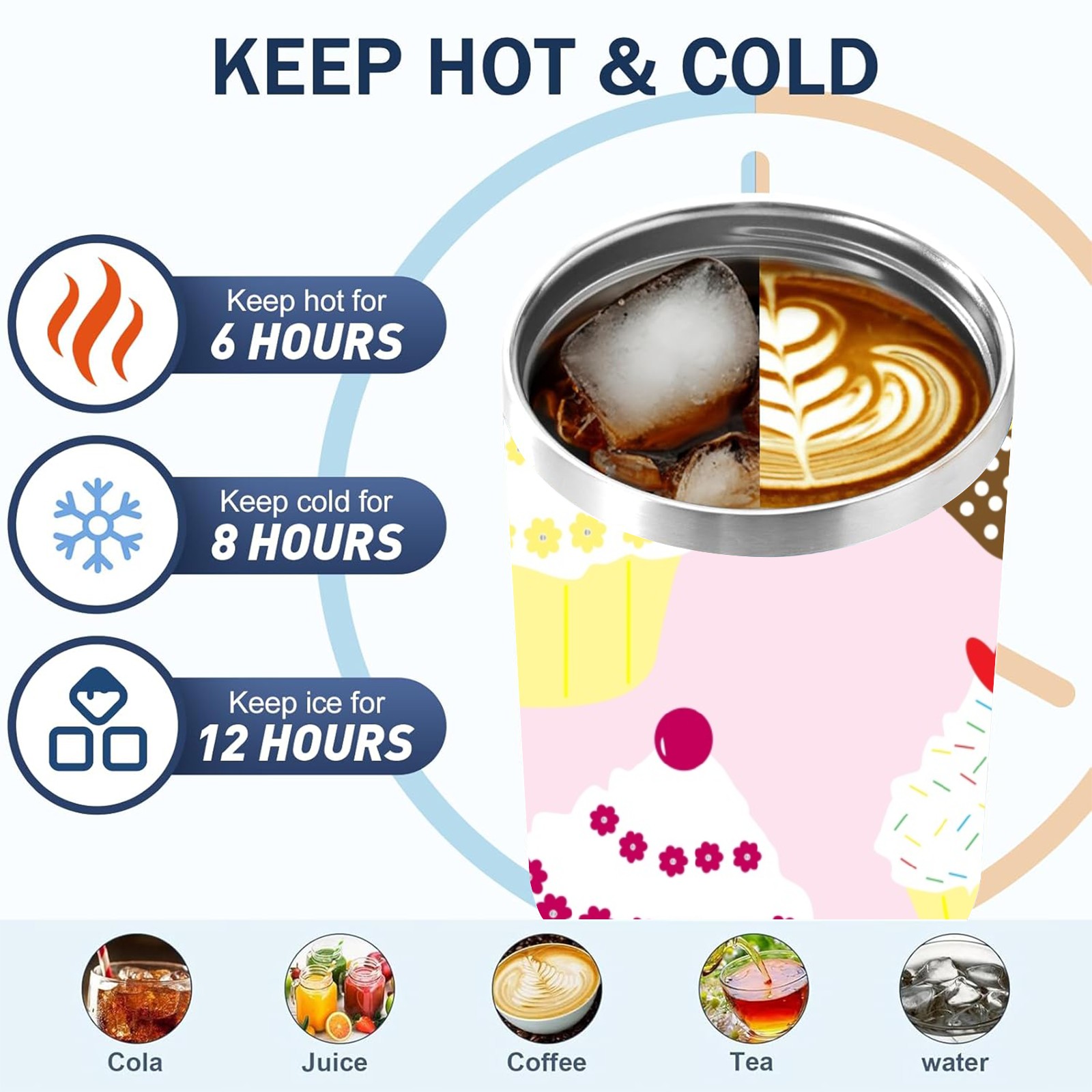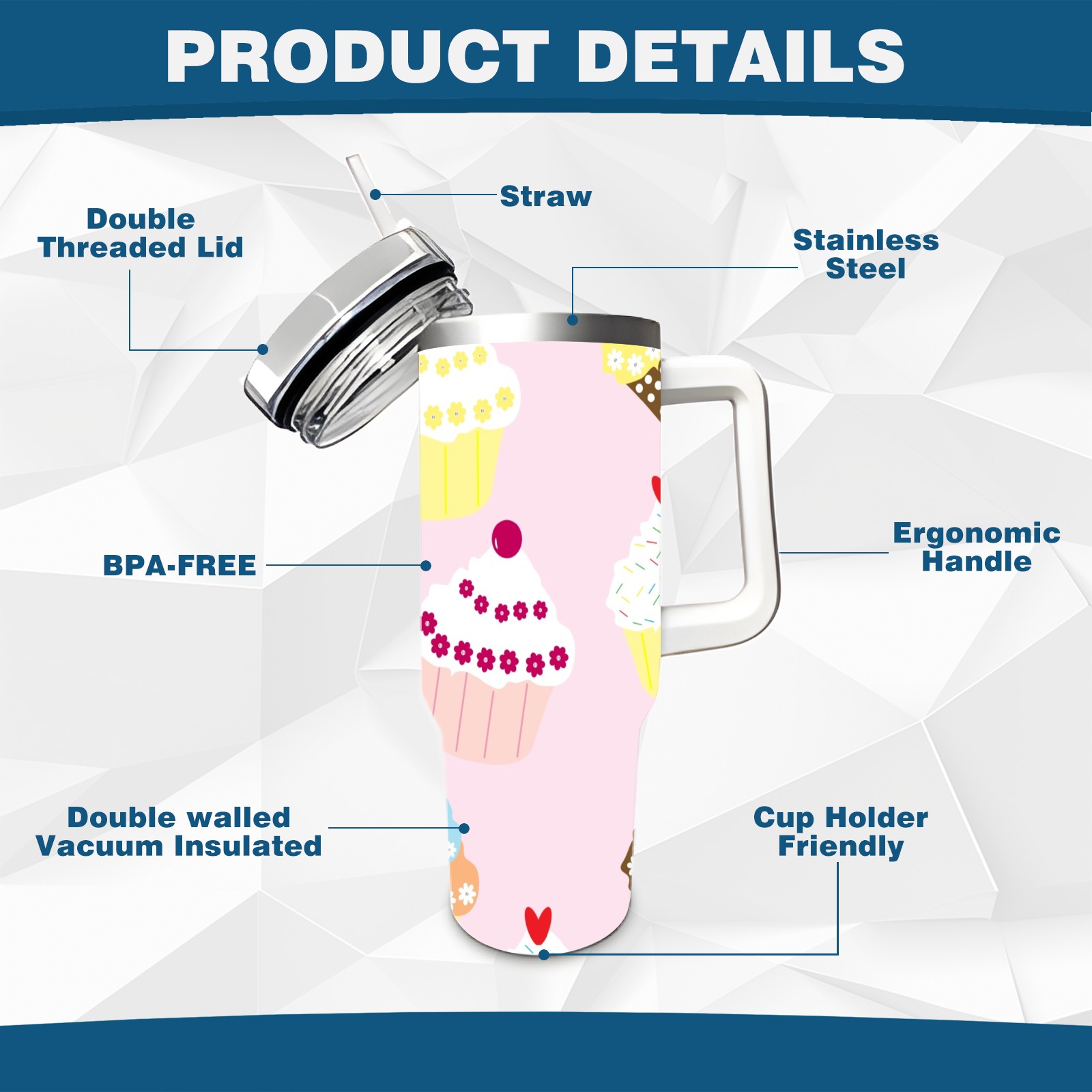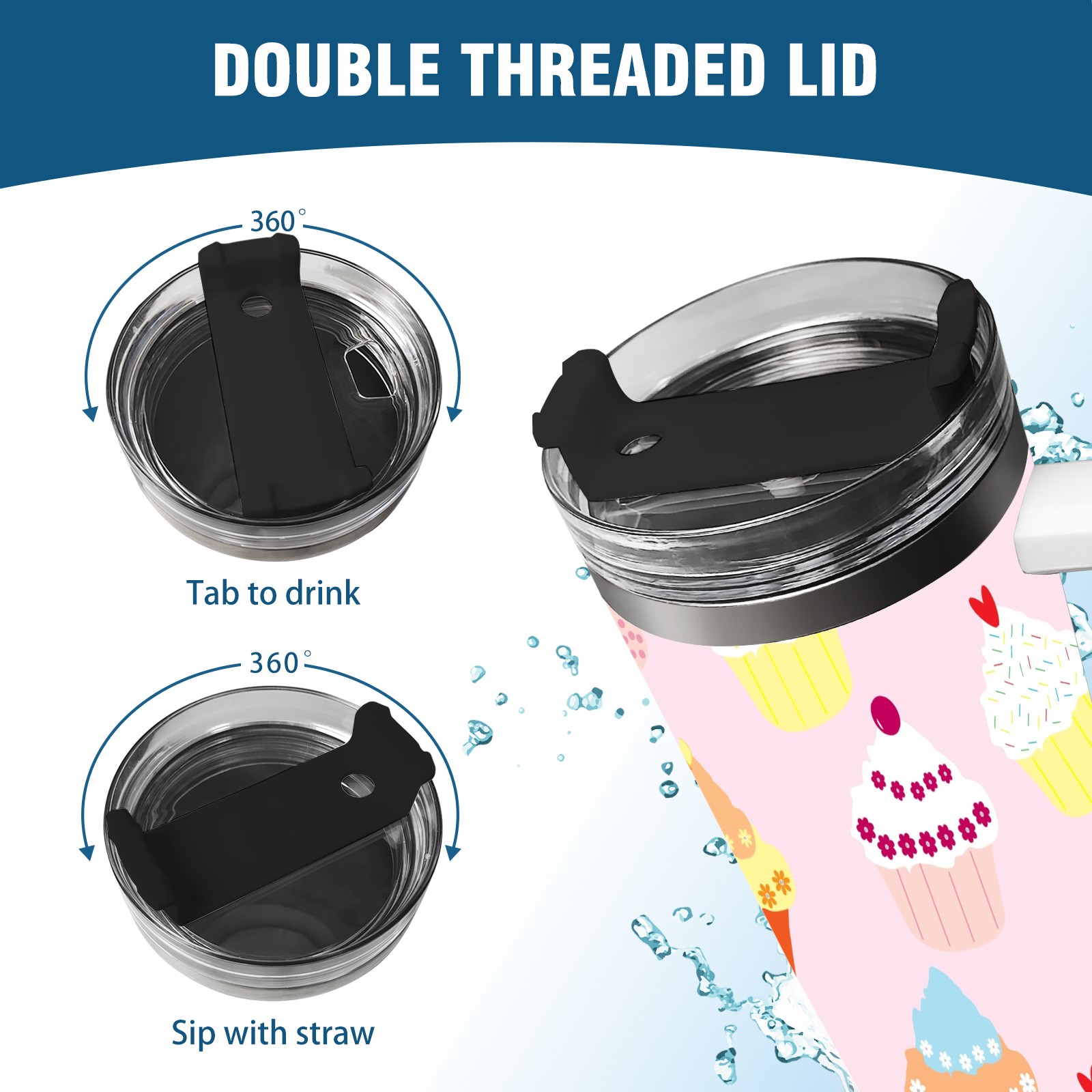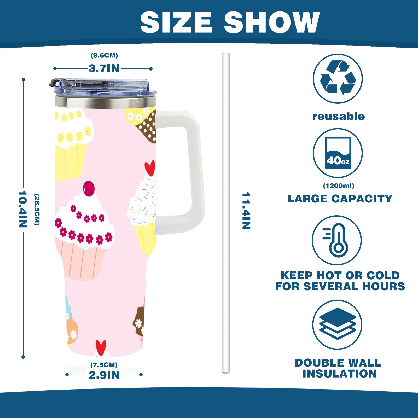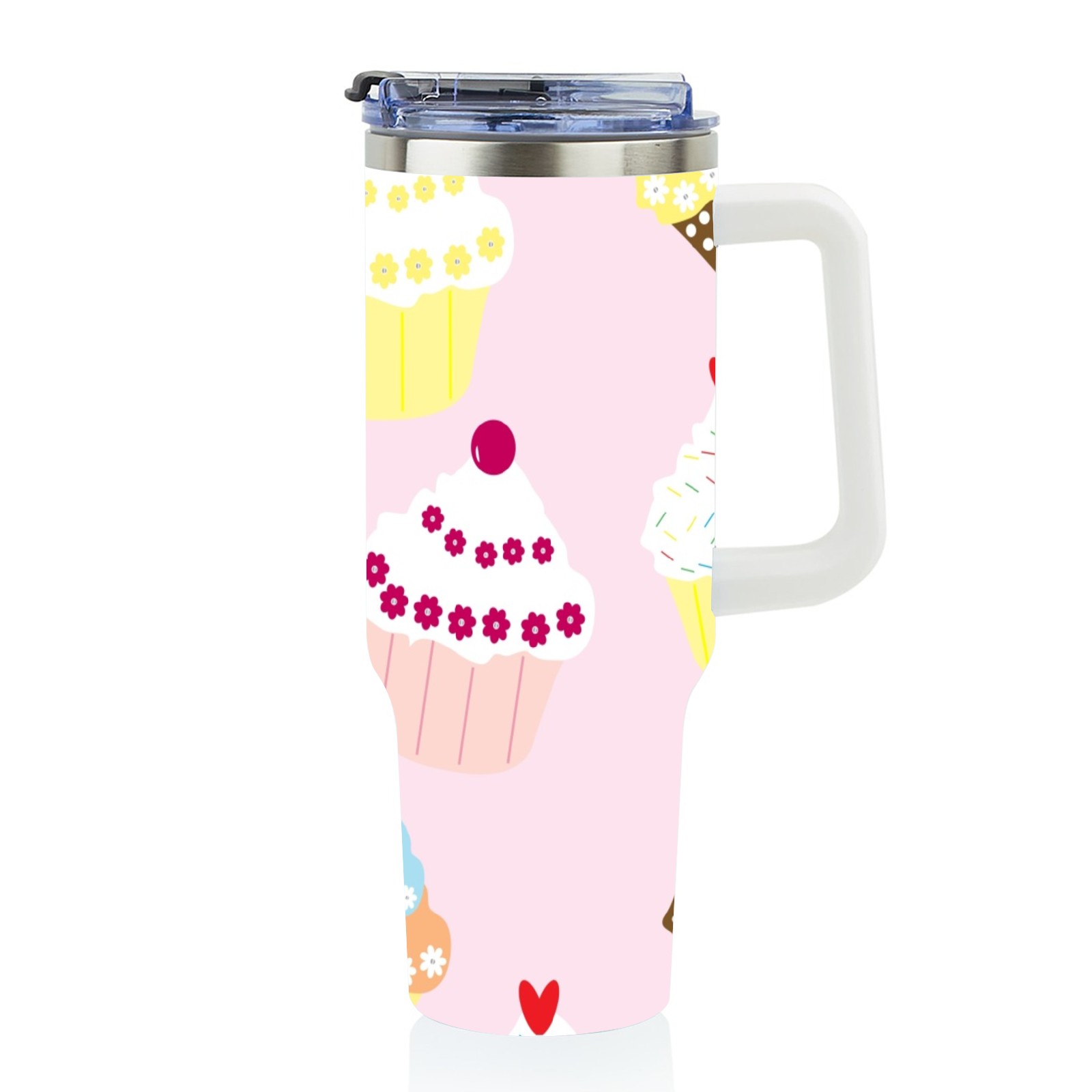 40oz Cupcakes Seamless thermos with lid and straw, leak-proof stainless steel, with handle, spill-proof bottle, convenient for travel(pink)