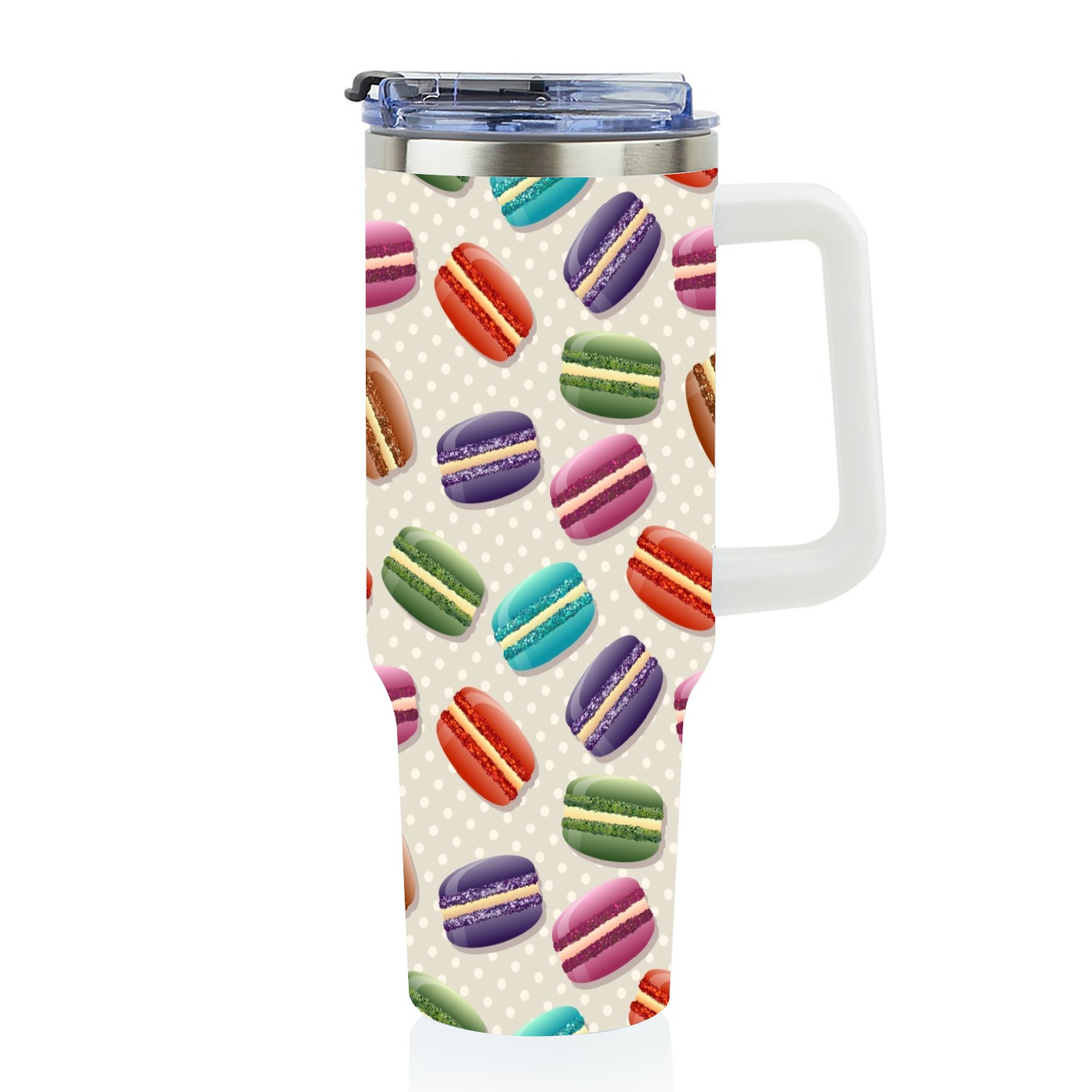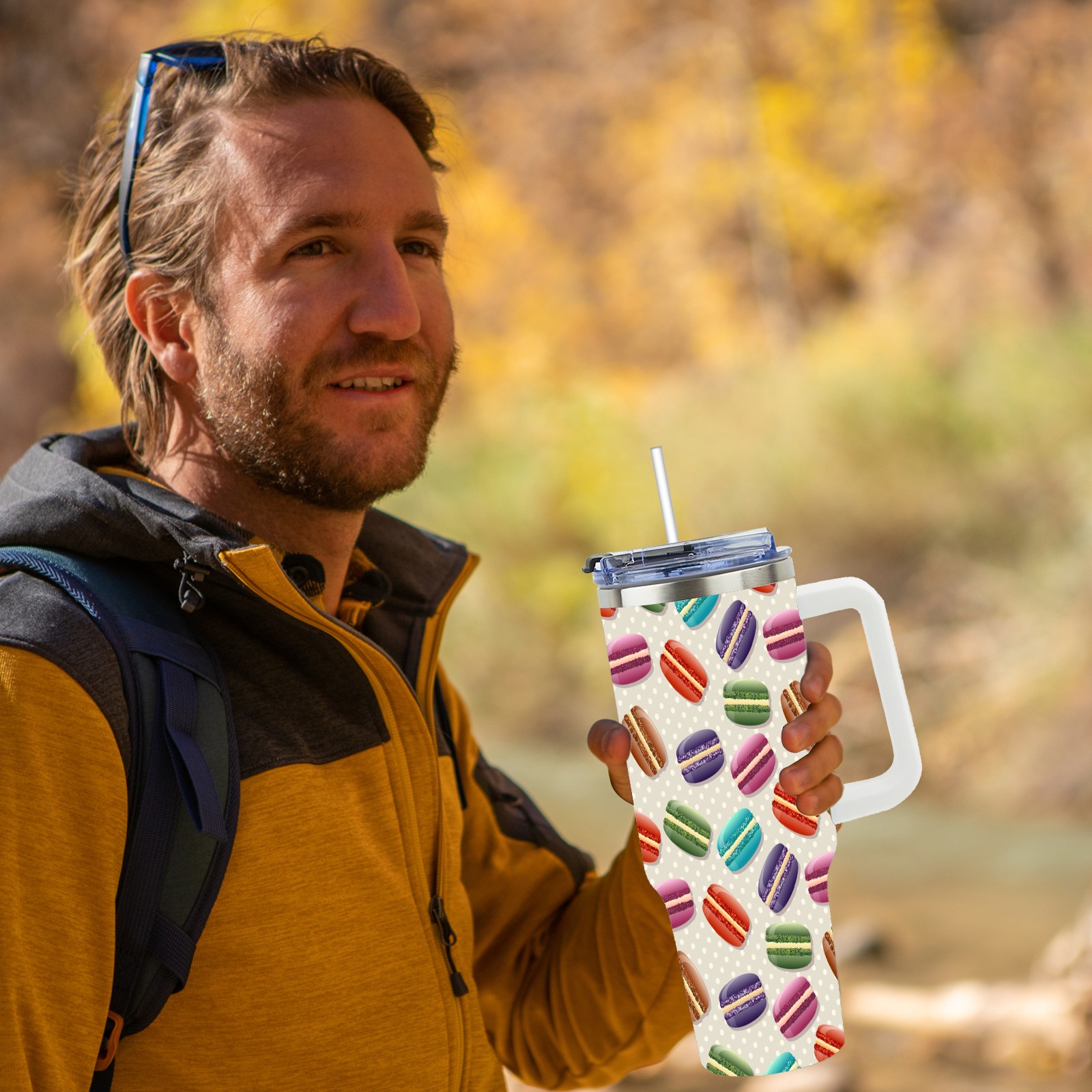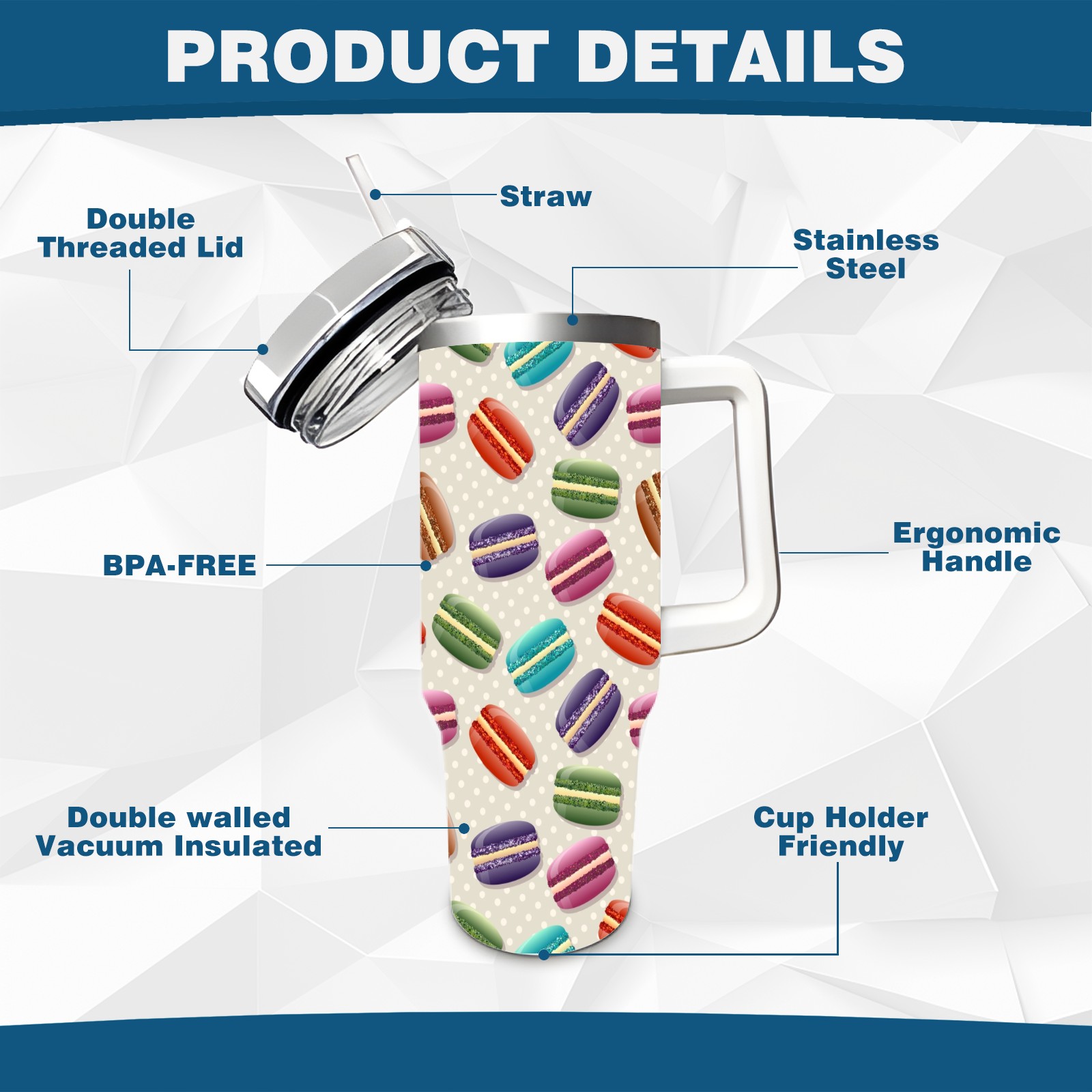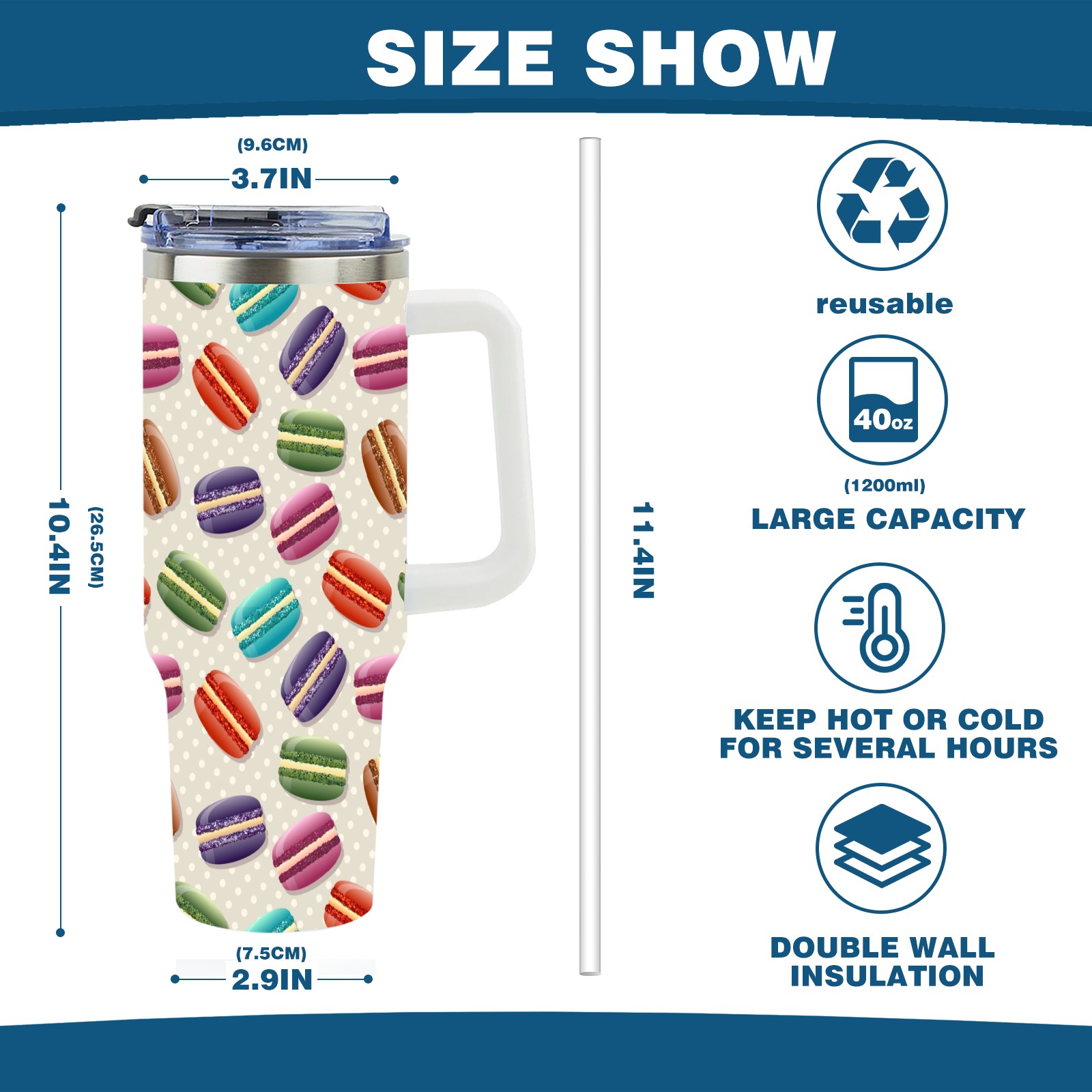 40oz Macaroon Seamless thermos with lid and straw, leak-proof stainless steel, with handle, spill-proof bottle, convenient for travel(pink)