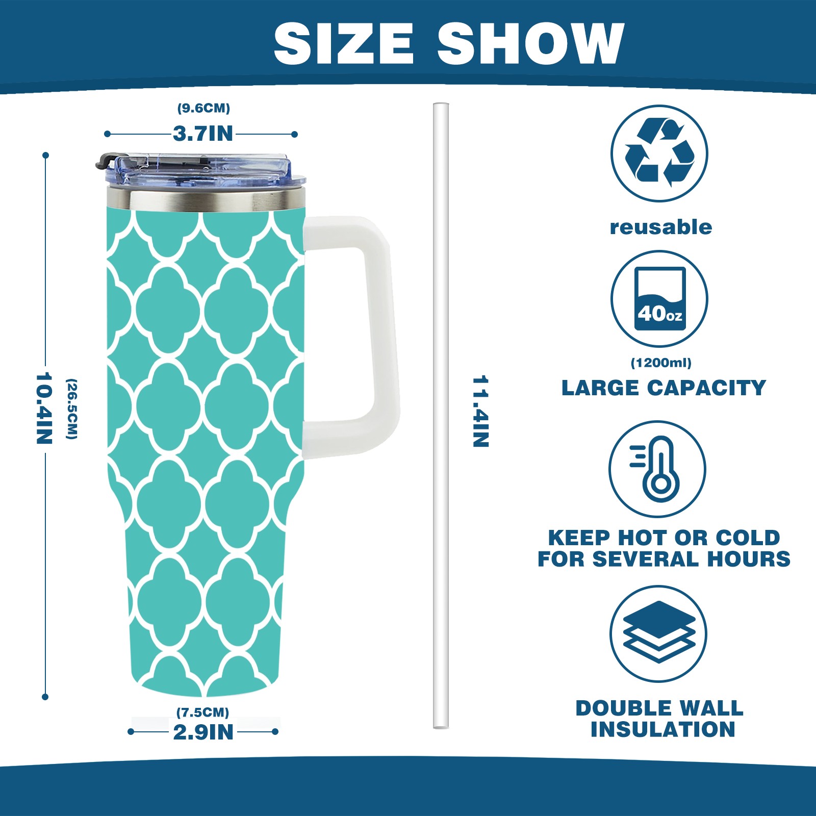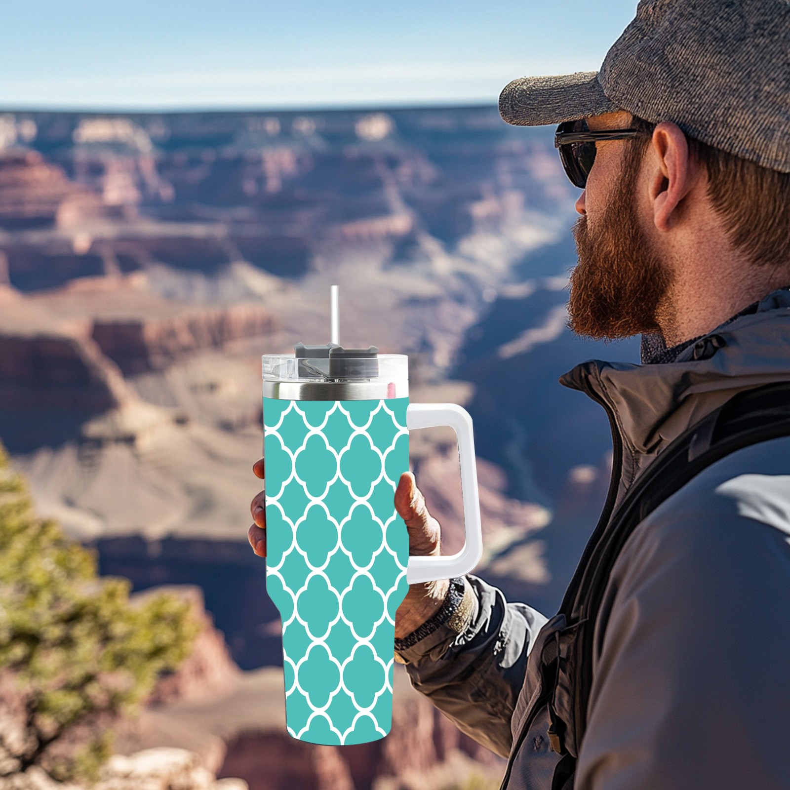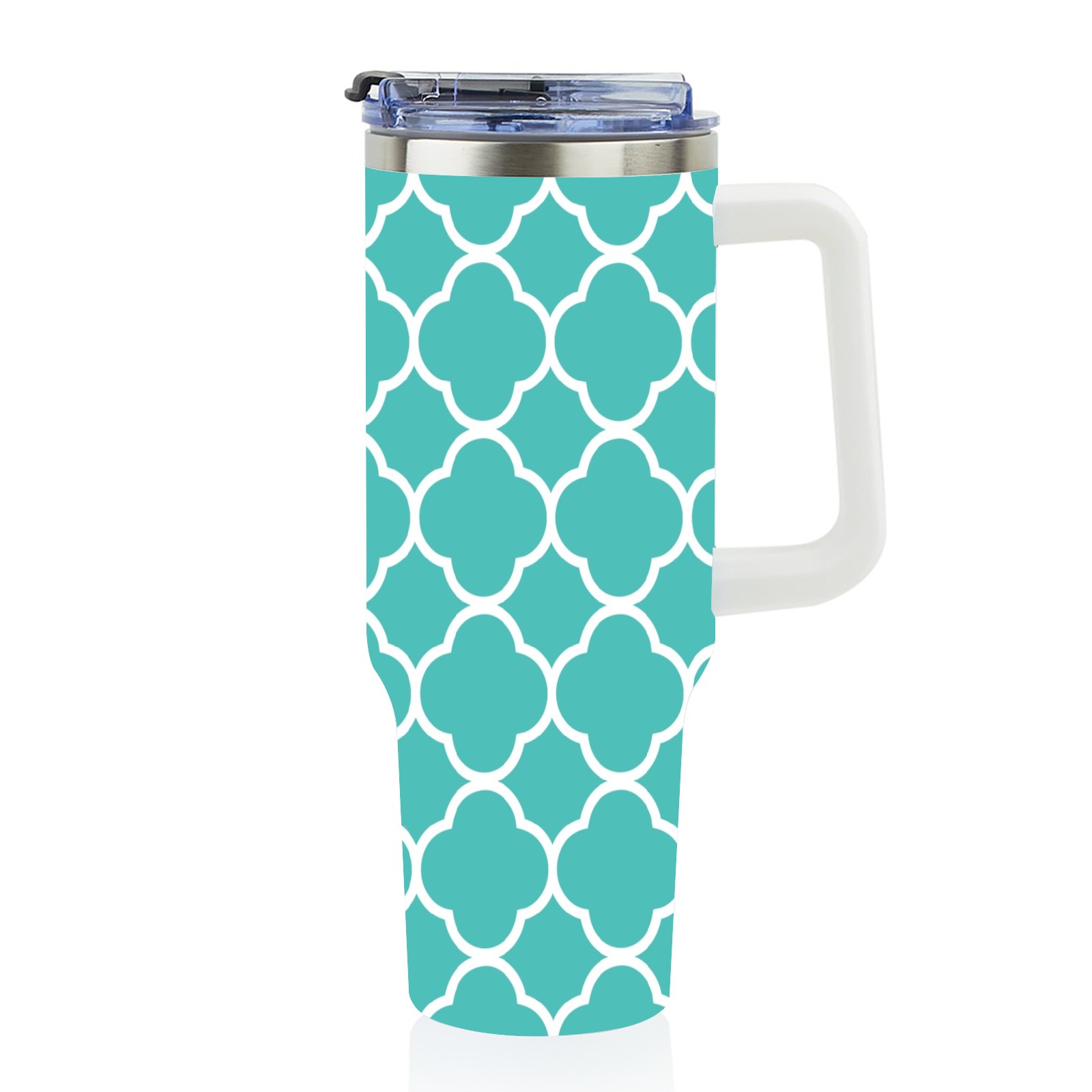 40oz Quatrefoil Seamless Teal thermos with lid and straw, leak-proof stainless steel, with handle, spill-proof bottle, convenient for travel(pink)