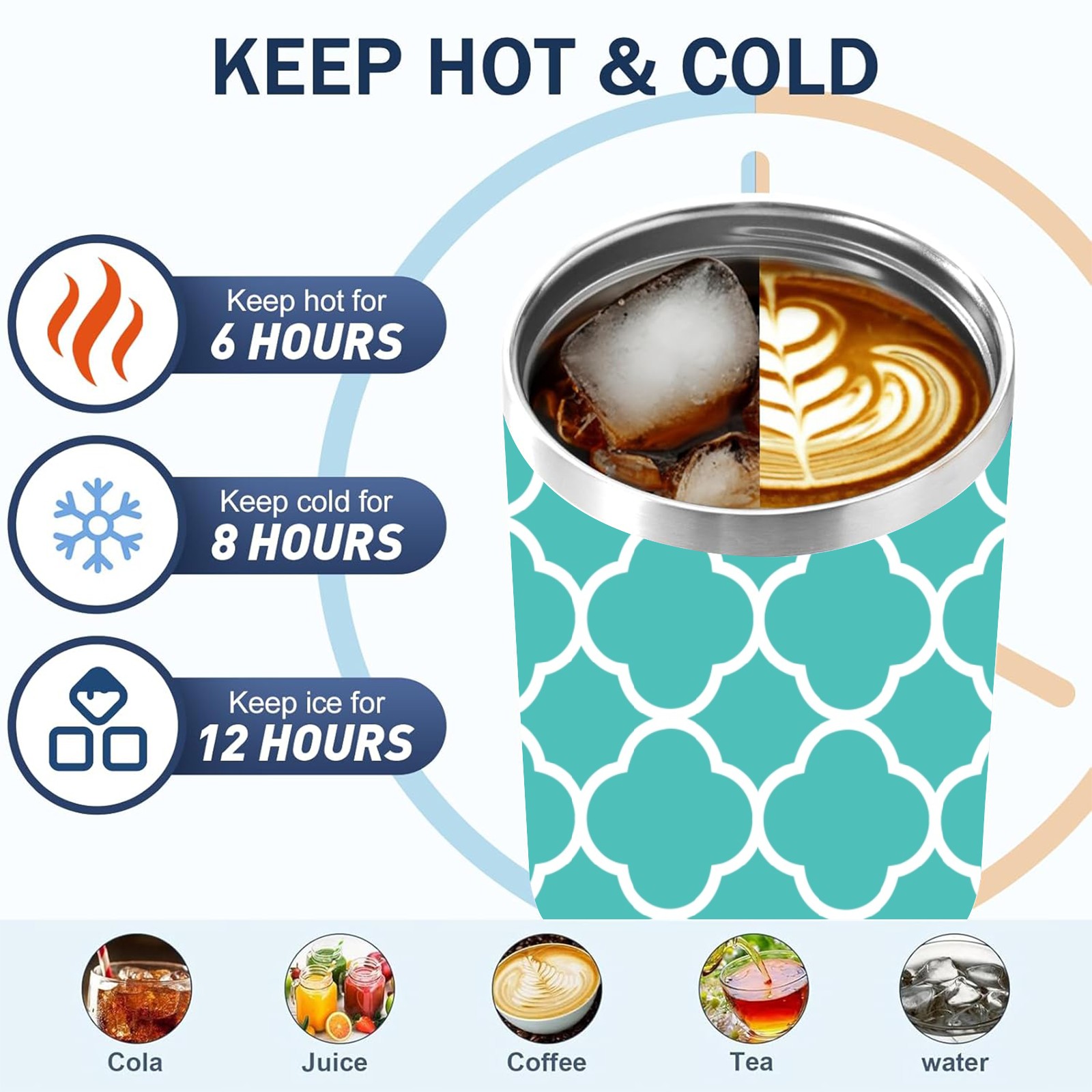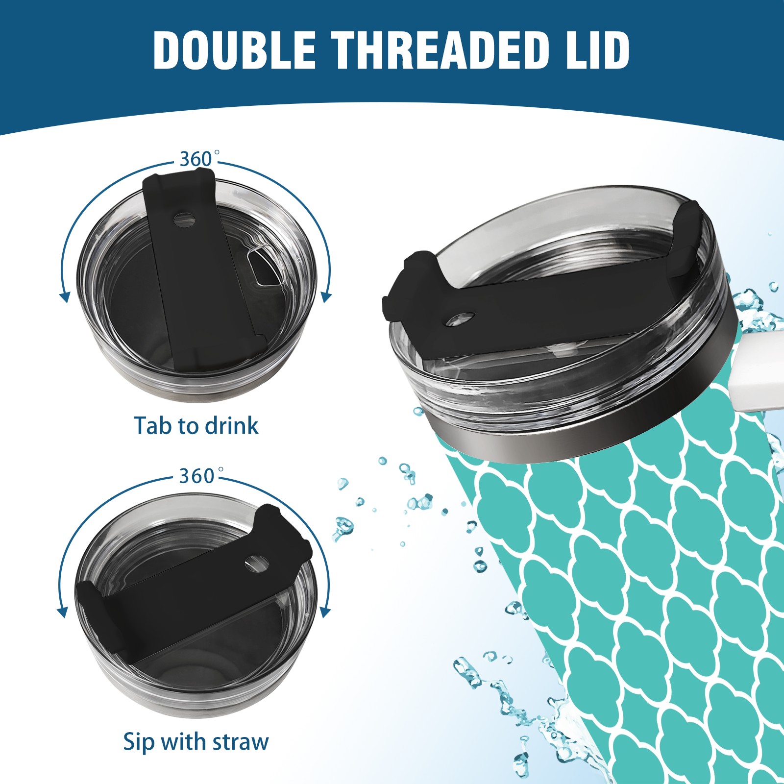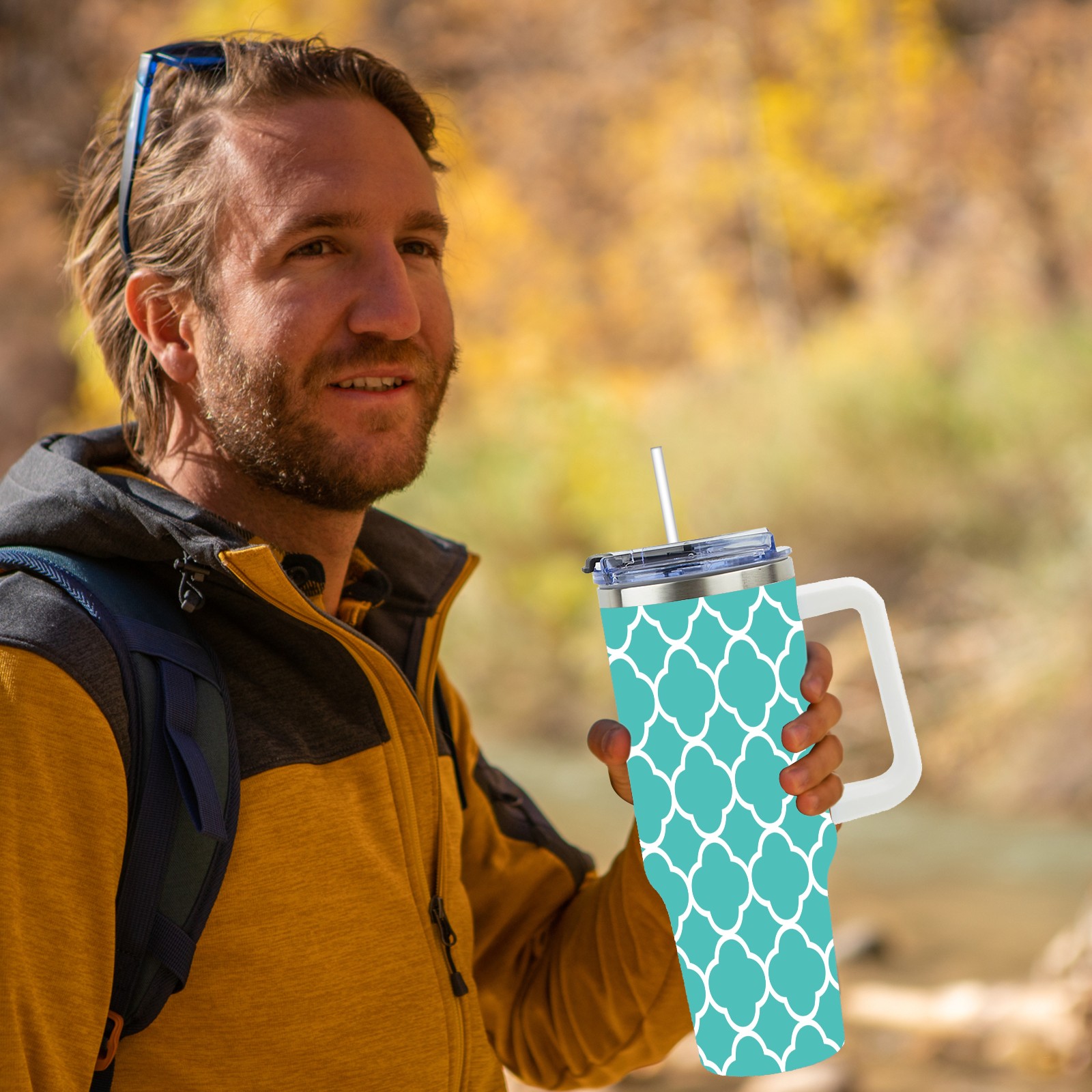 40oz Quatrefoil Seamless Teal thermos with lid and straw, leak-proof stainless steel, with handle, spill-proof bottle, convenient for travel(pink)