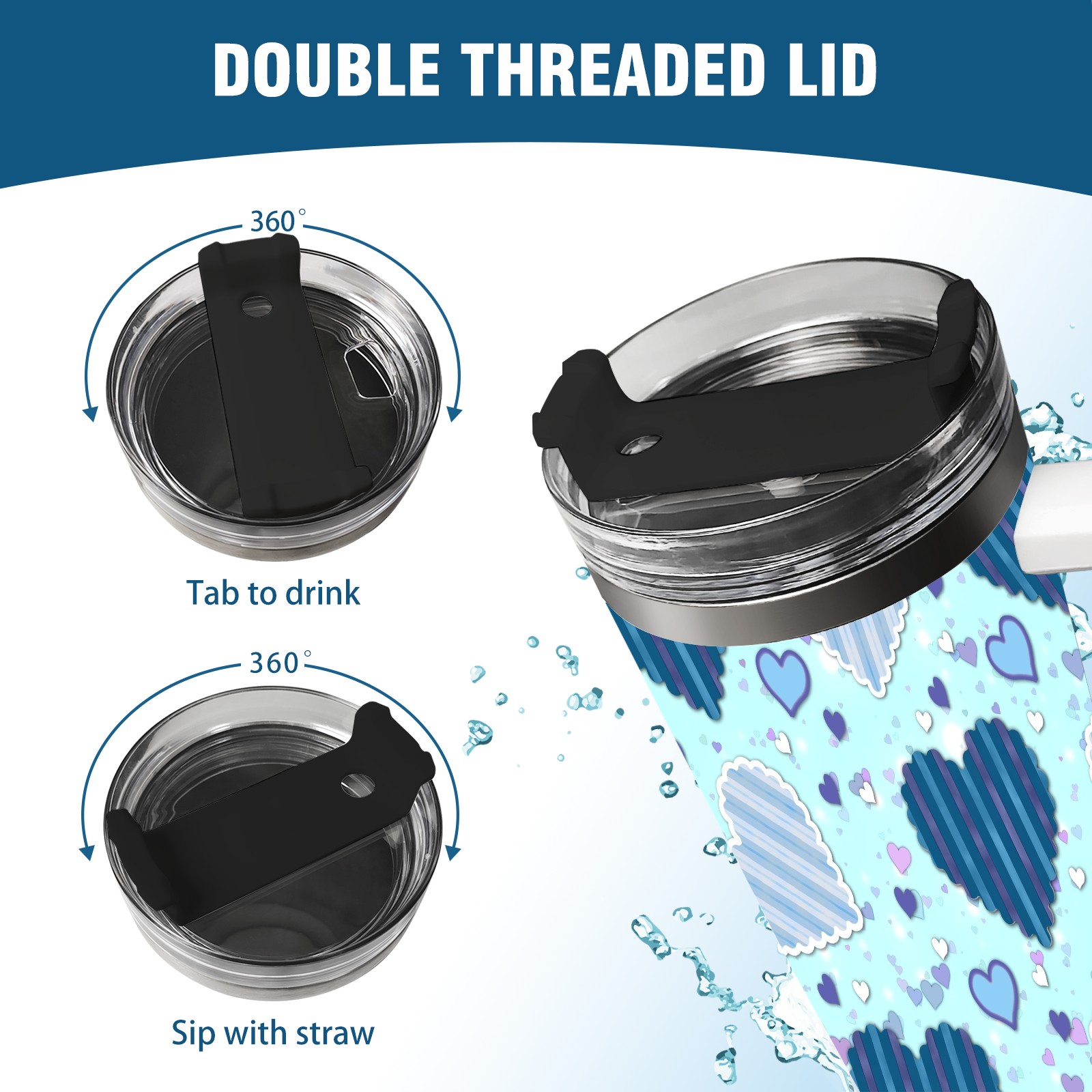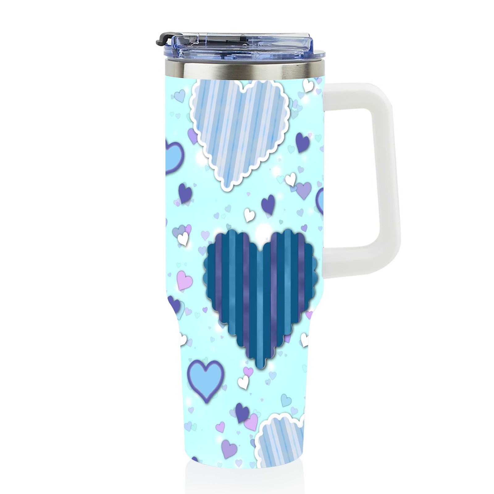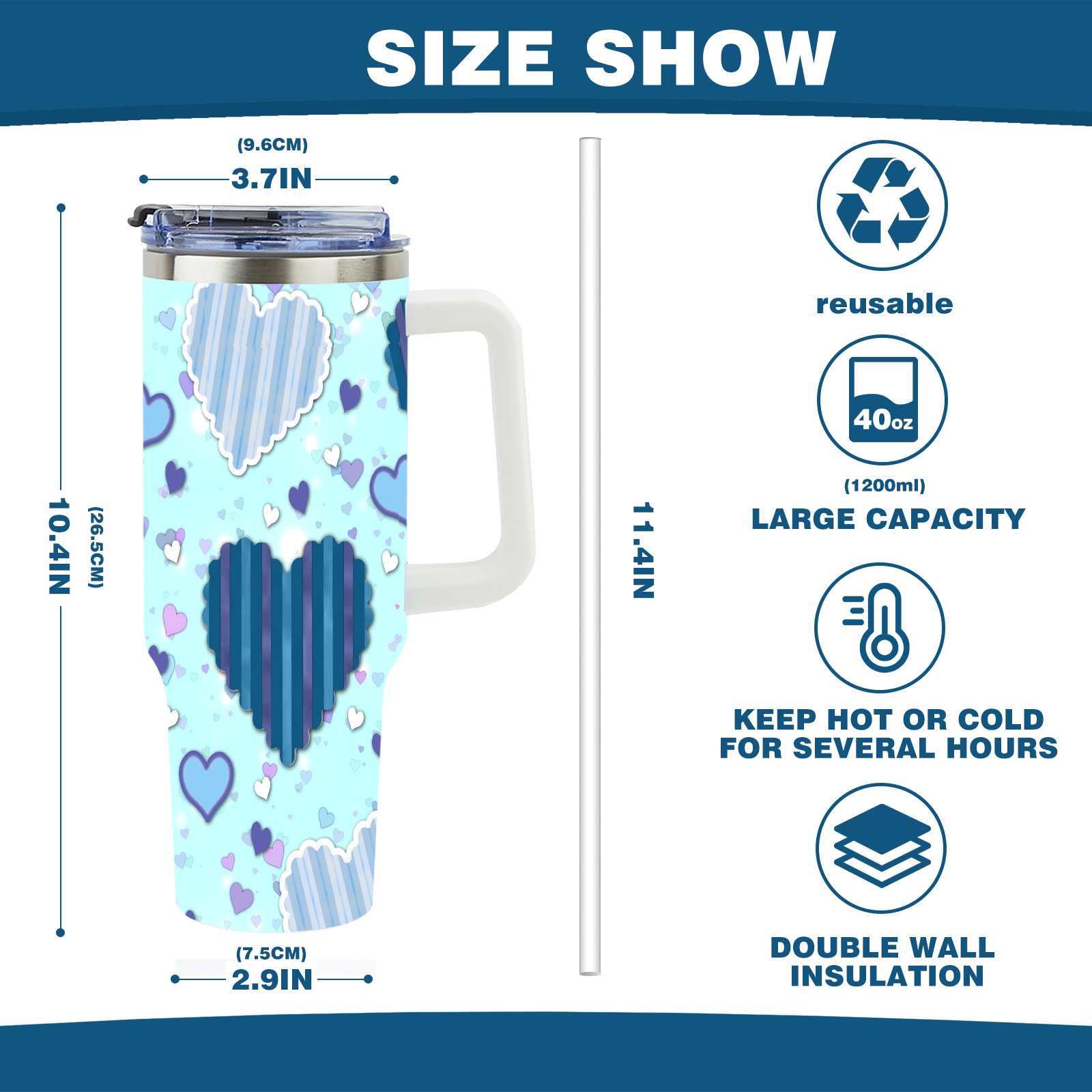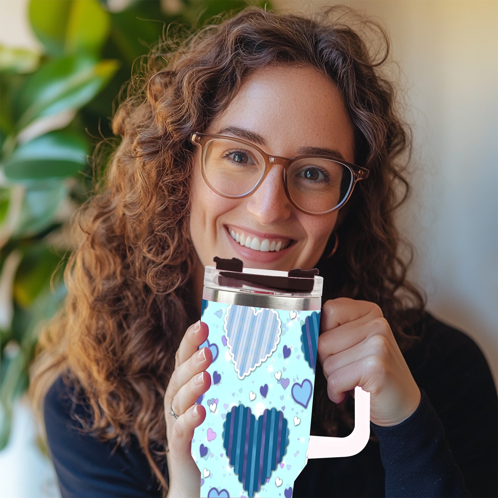 40oz Hearts Seamless Blue thermos with lid and straw, leak-proof stainless steel, with handle, spill-proof bottle, convenient for travel(pink)