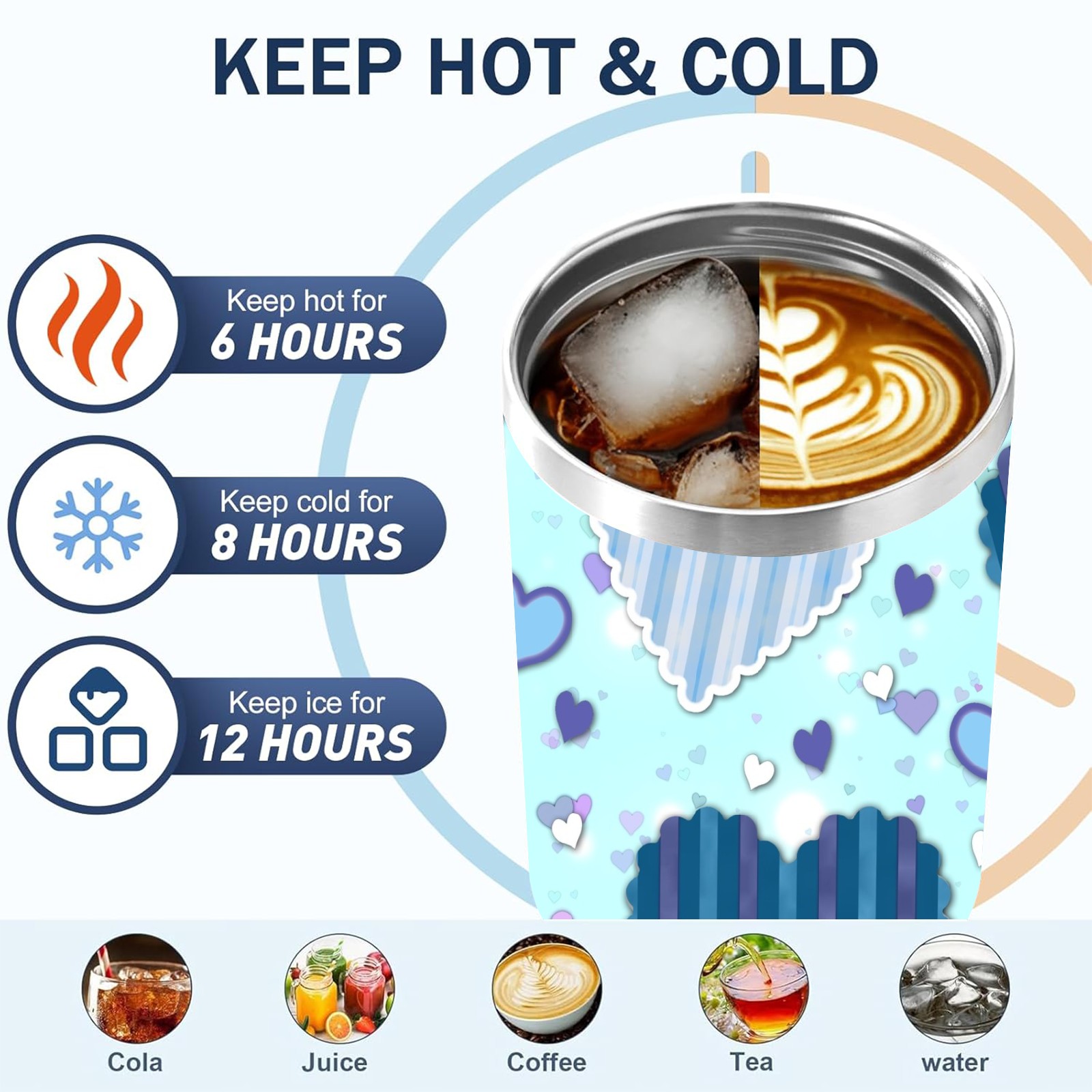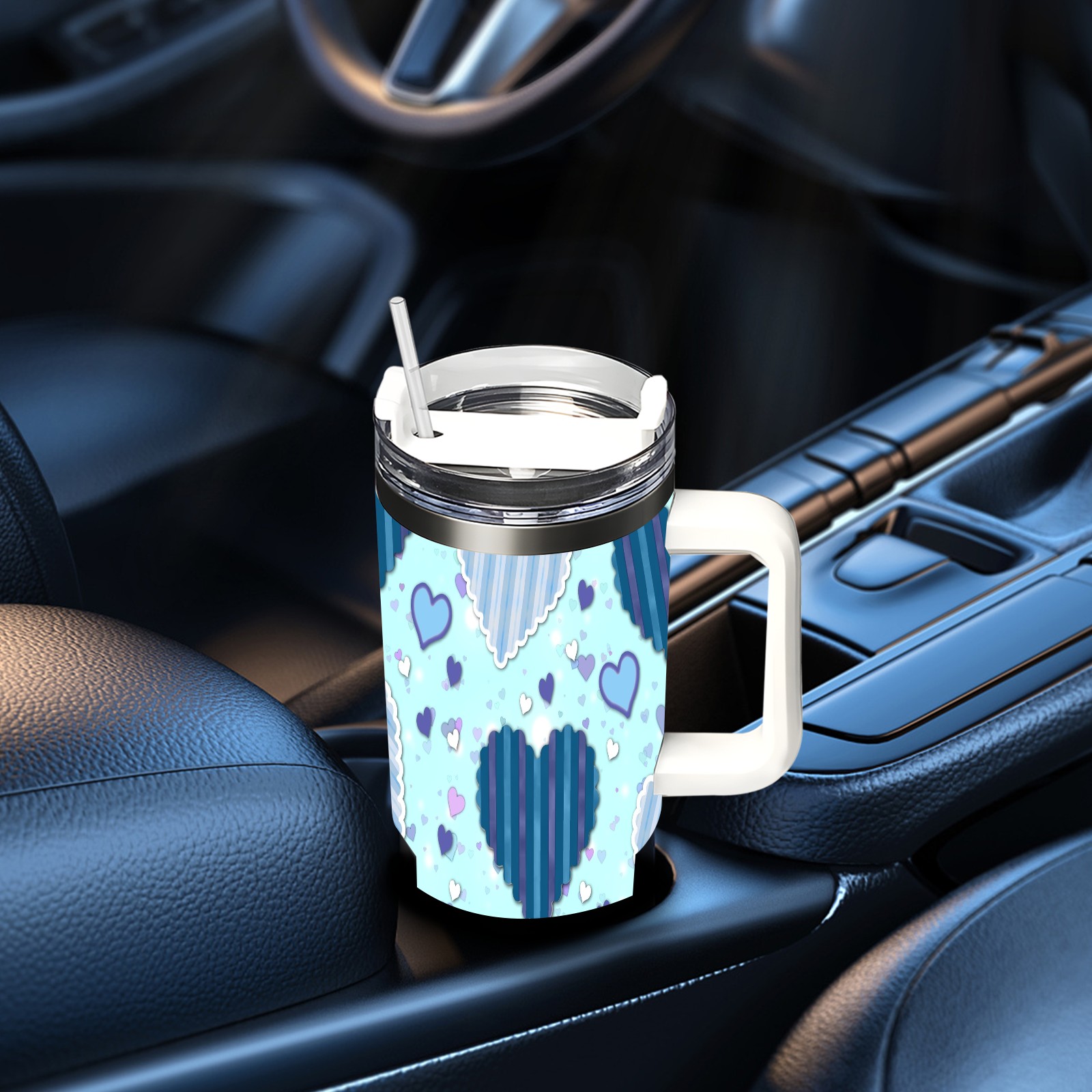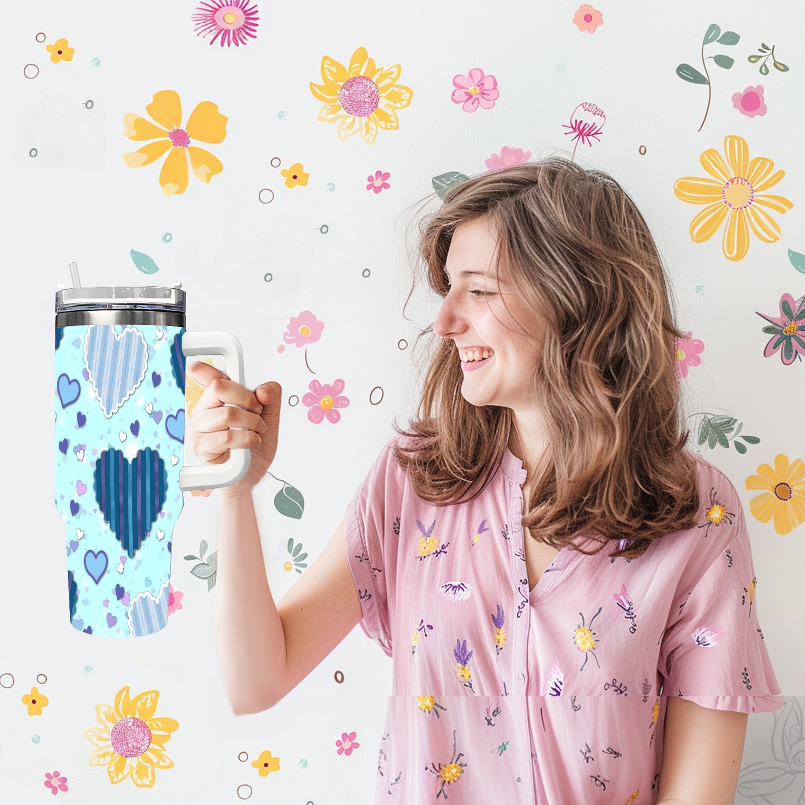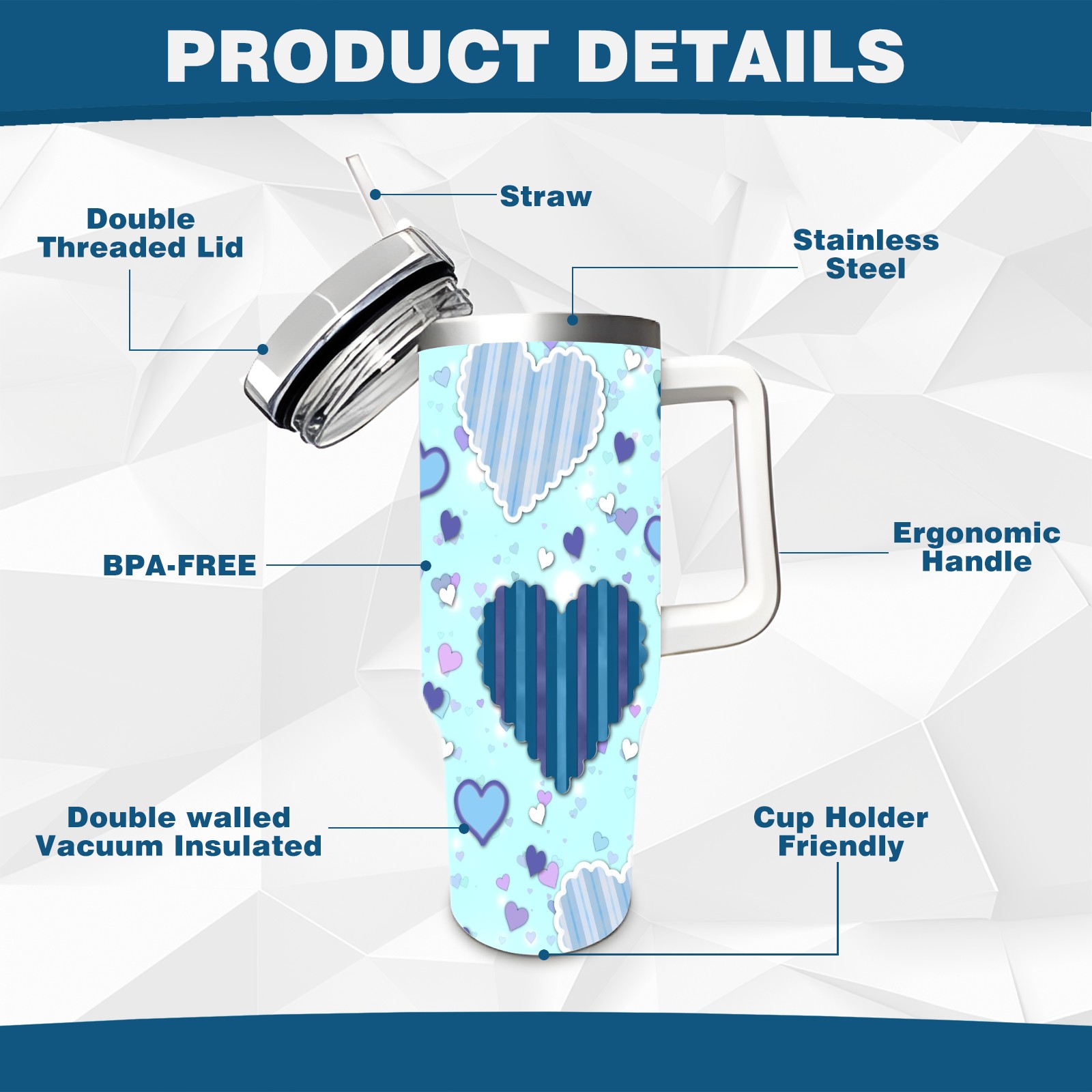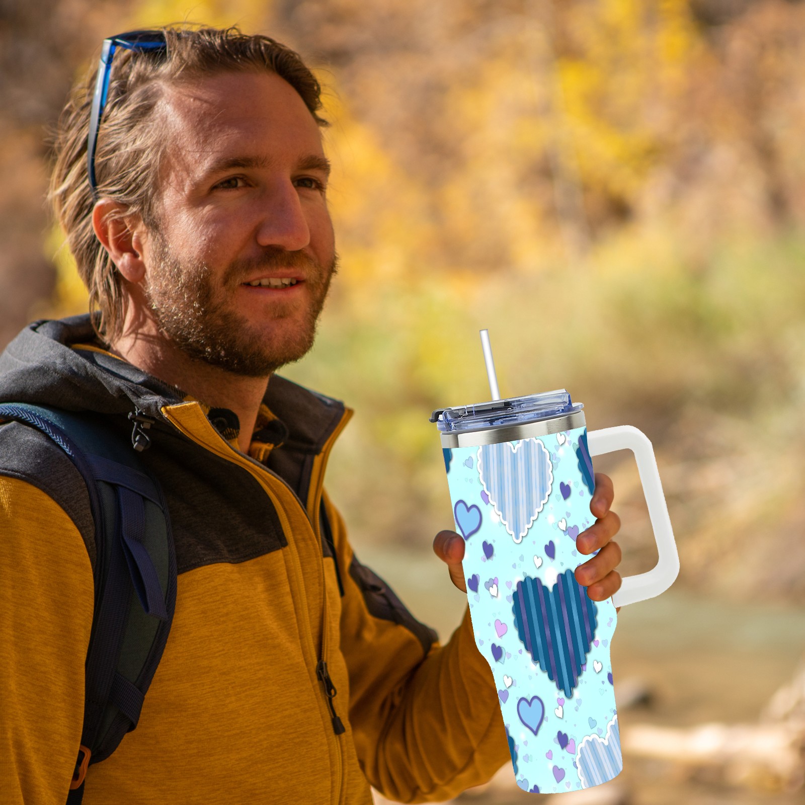 40oz Hearts Seamless Blue thermos with lid and straw, leak-proof stainless steel, with handle, spill-proof bottle, convenient for travel(pink)