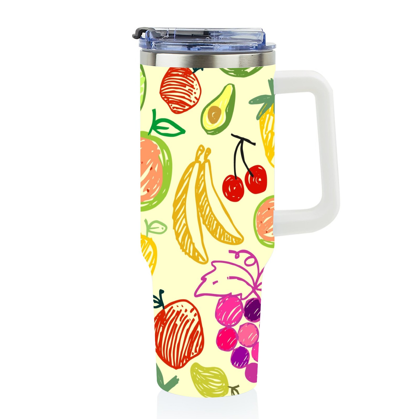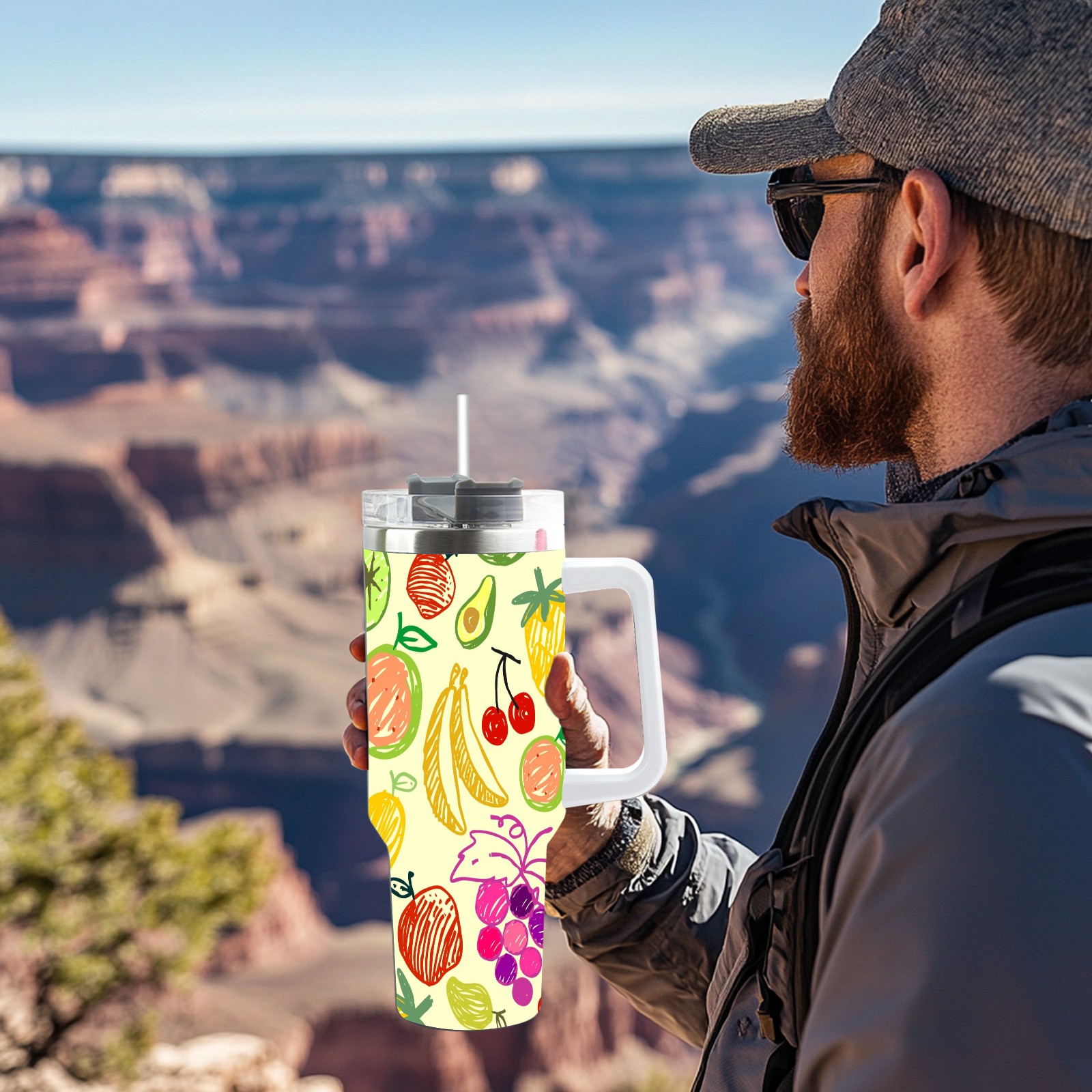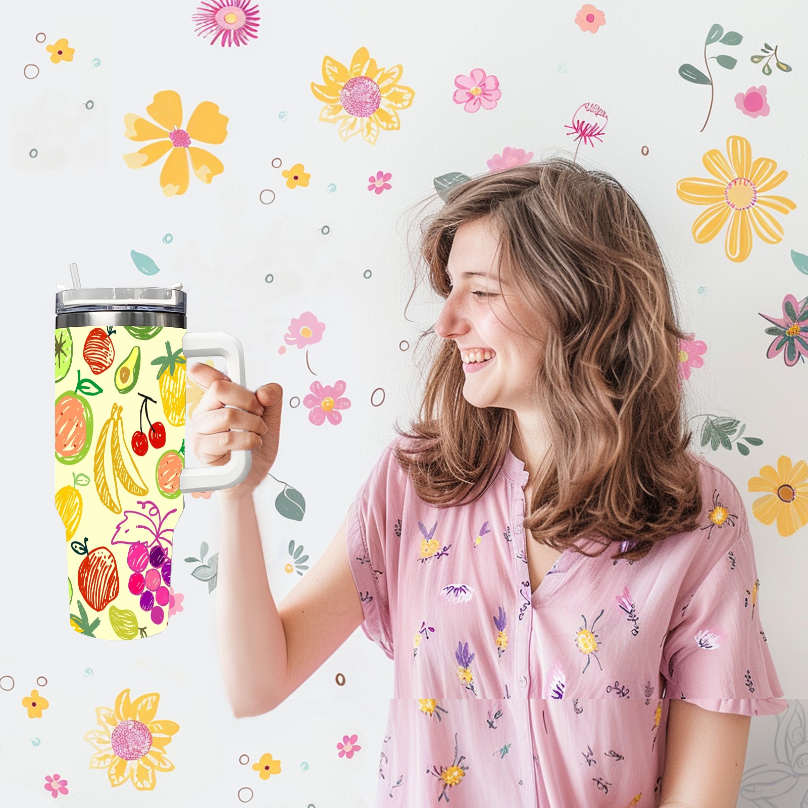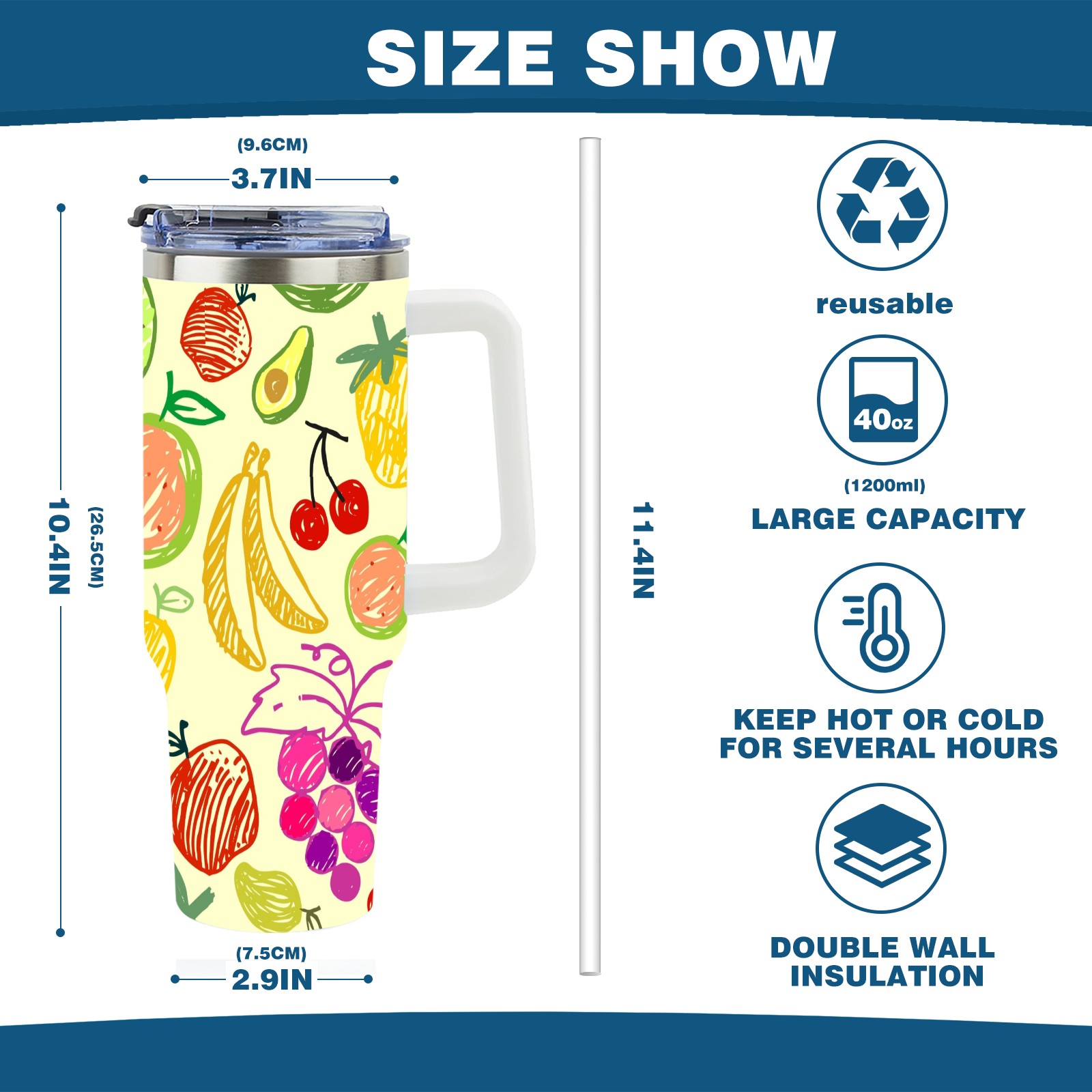40oz Fruit Seamless Colorful thermos with lid and straw, leak-proof stainless steel, with handle, spill-proof bottle, convenient for travel(pink)