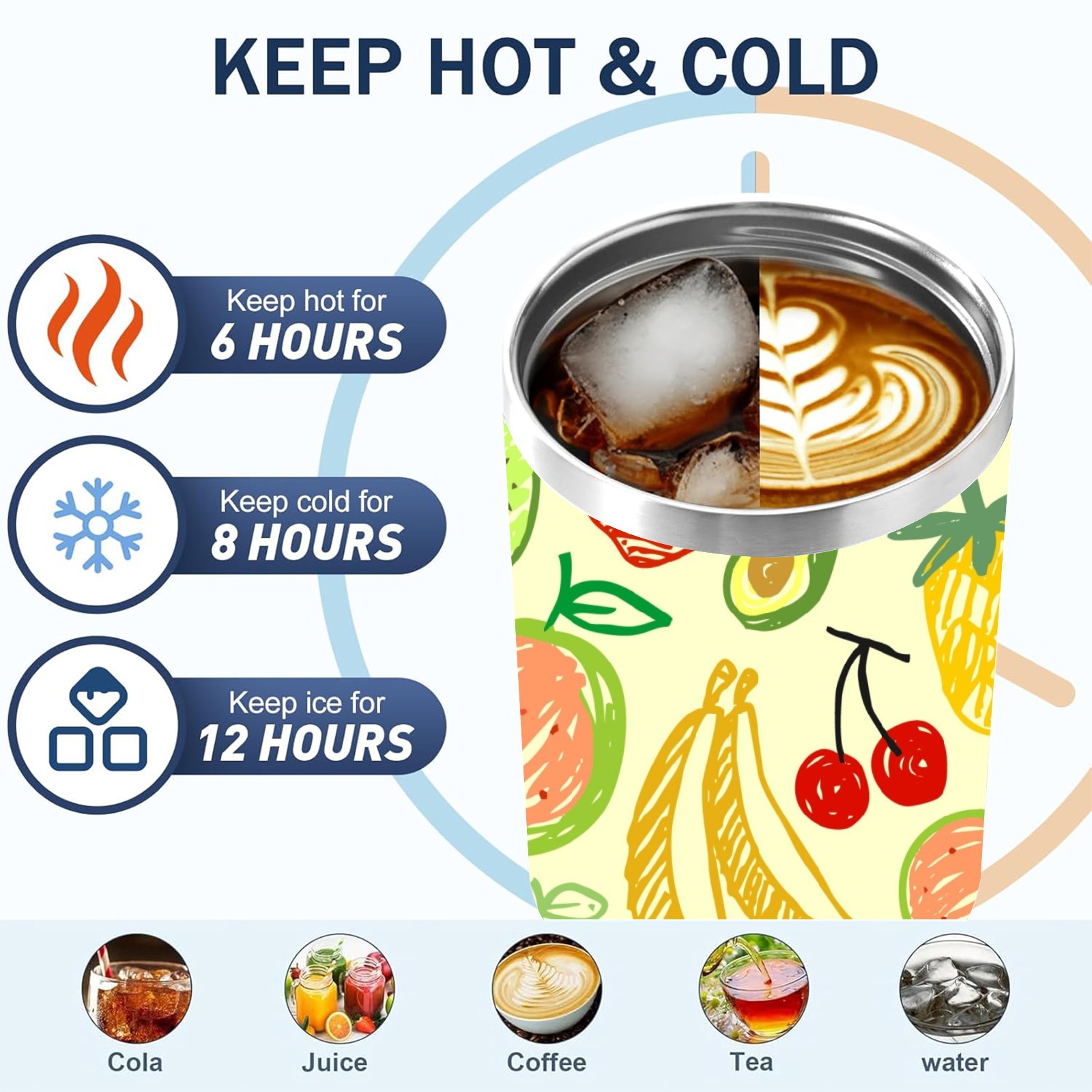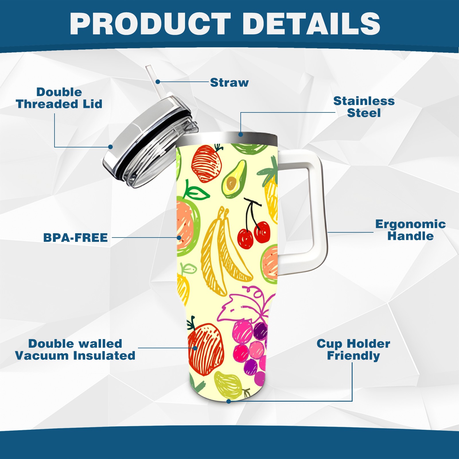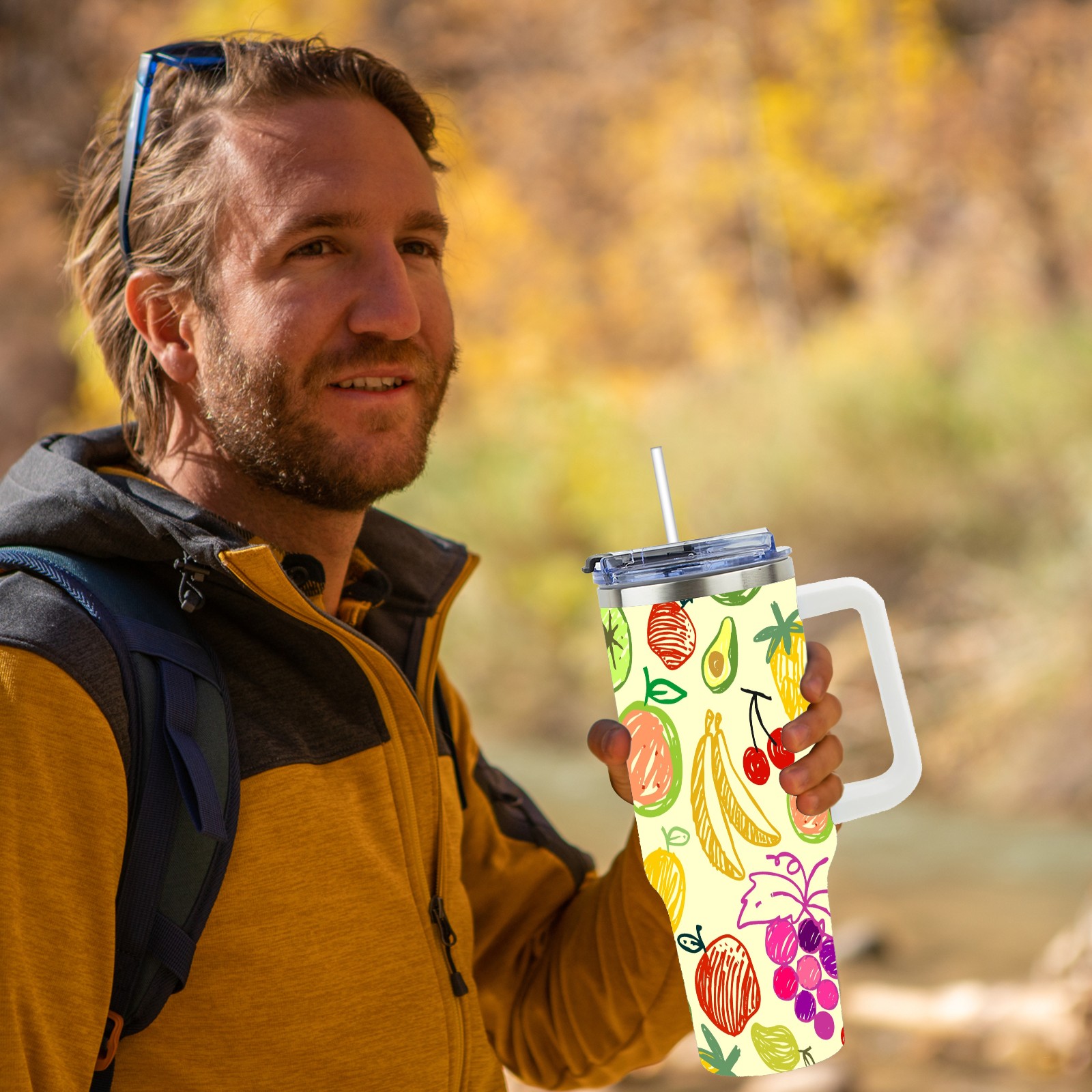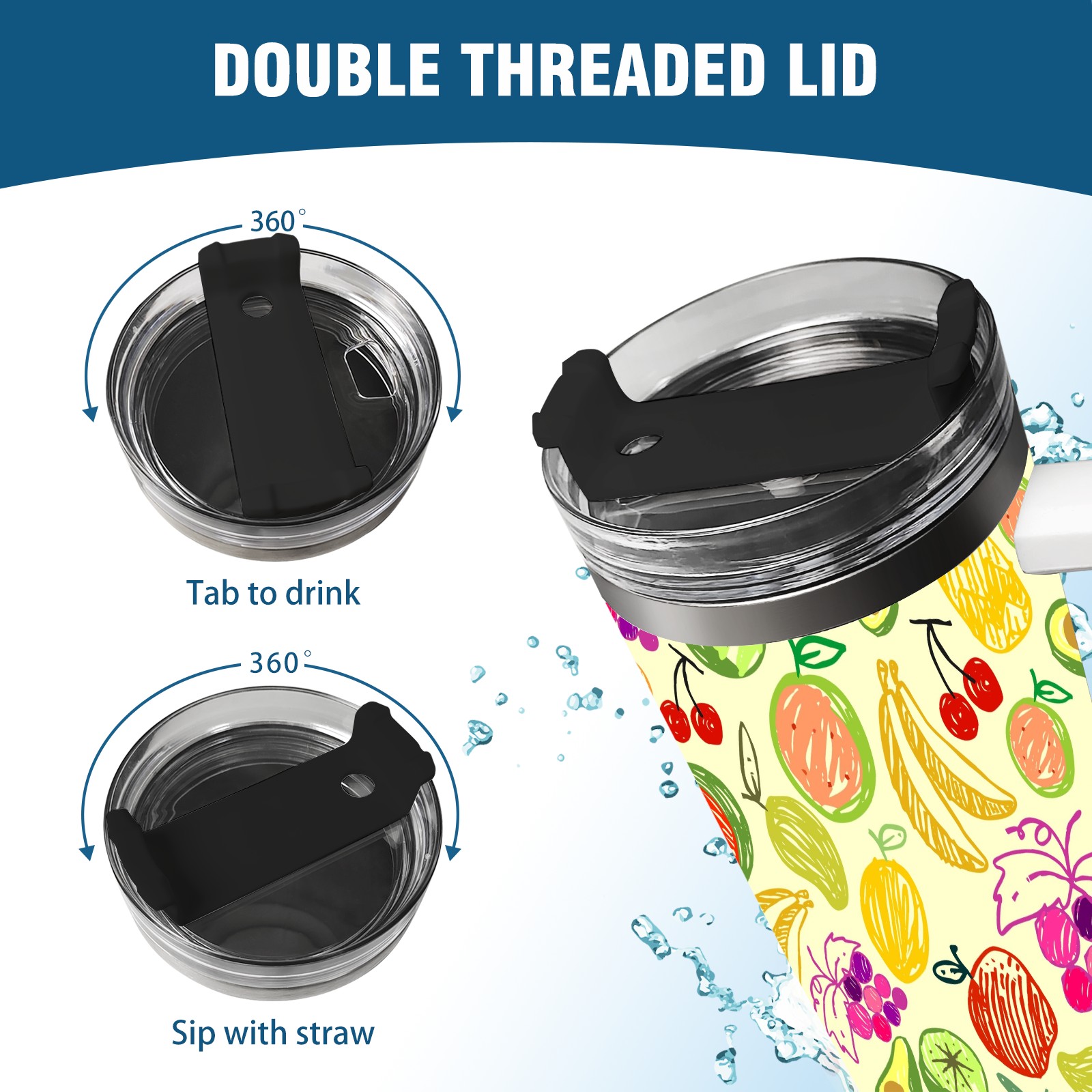 40oz Fruit Seamless Colorful thermos with lid and straw, leak-proof stainless steel, with handle, spill-proof bottle, convenient for travel(pink)