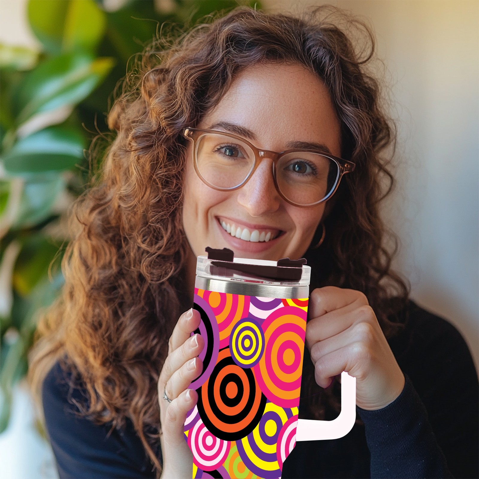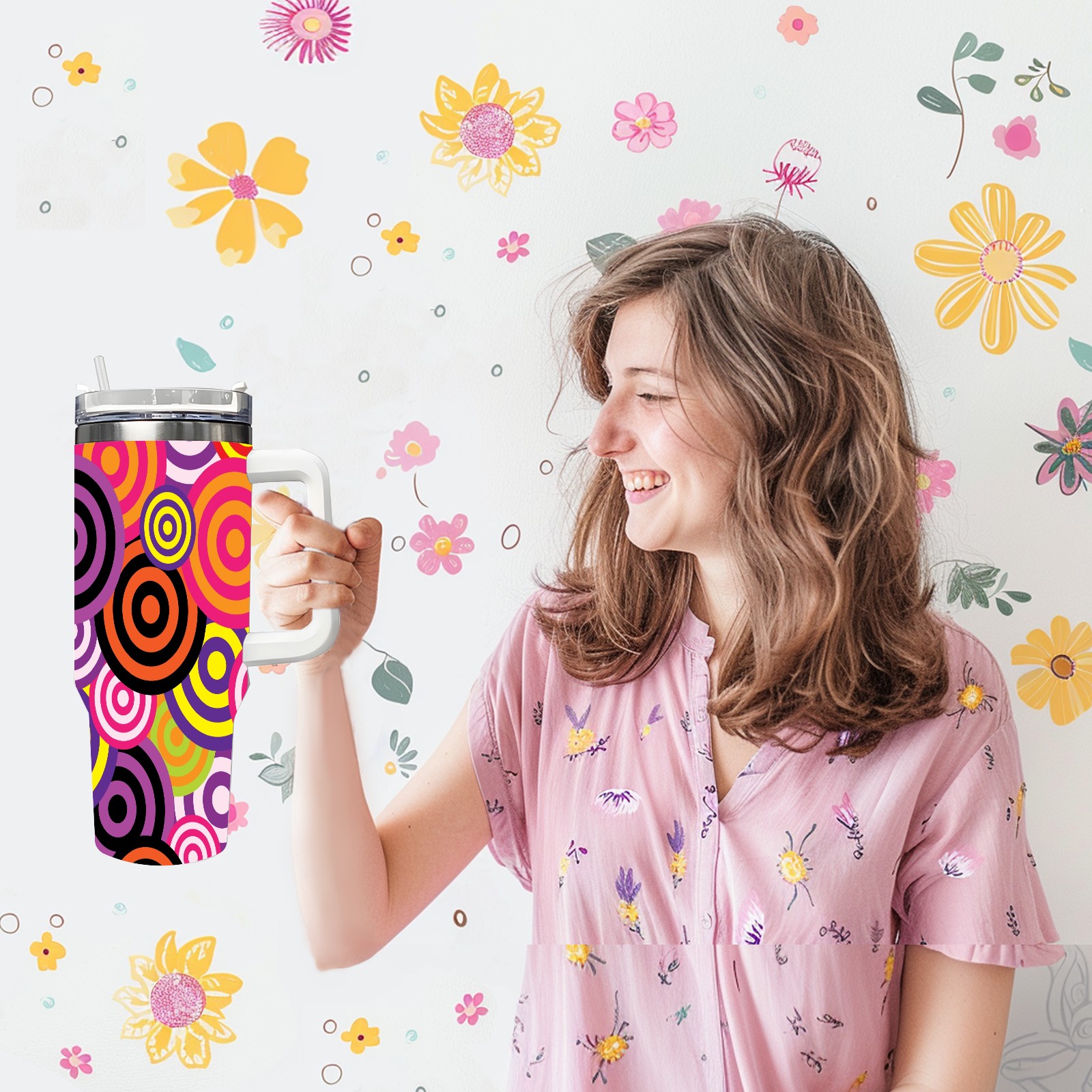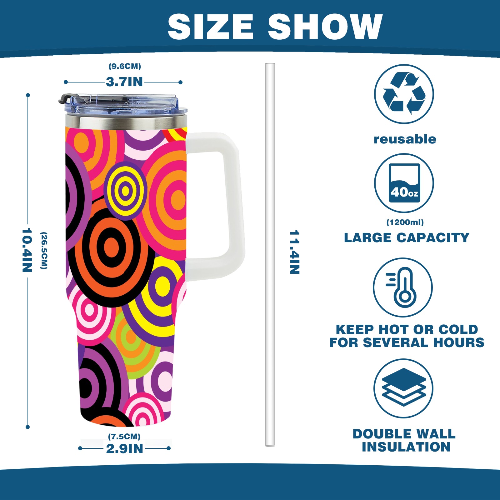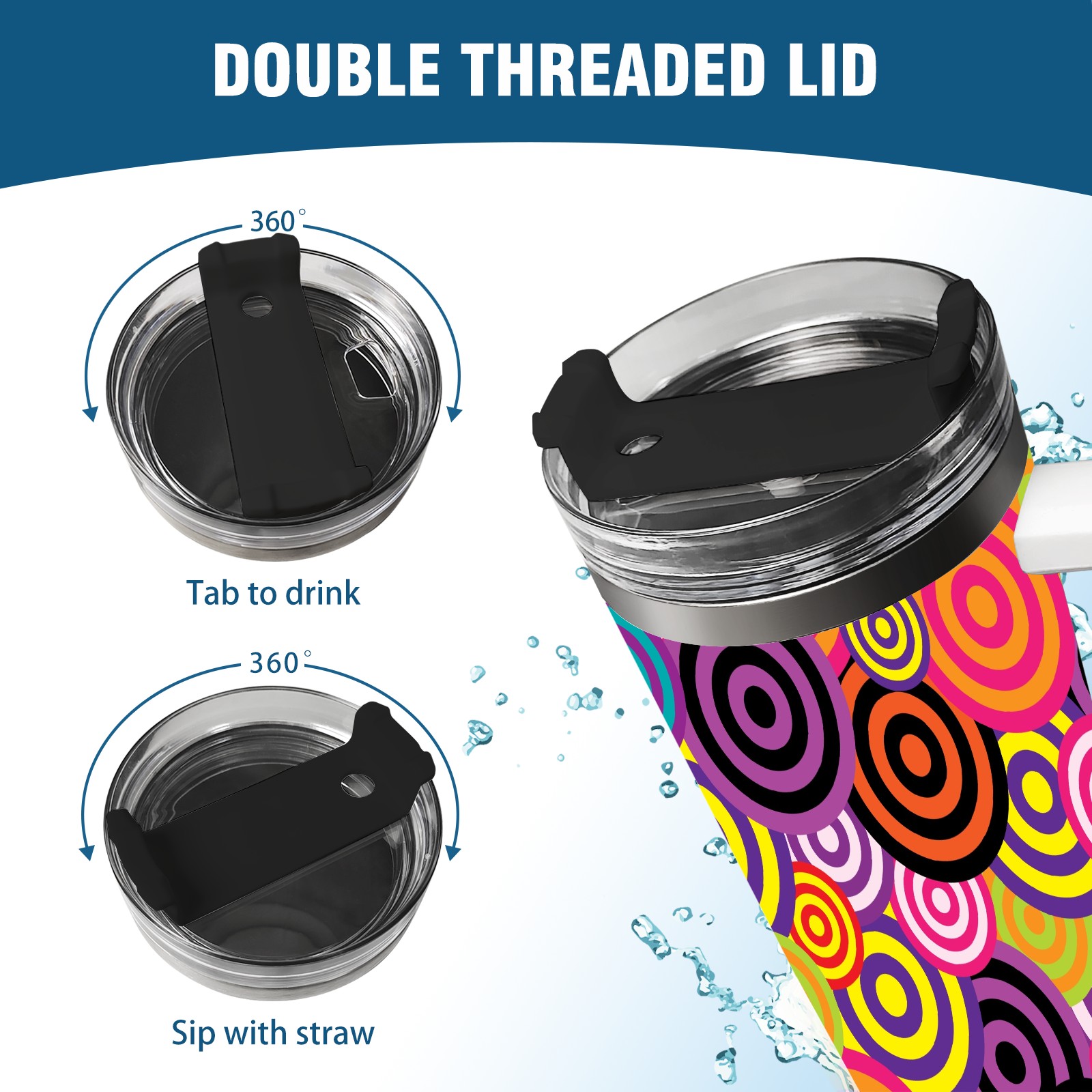40oz Circles Retro Colorful thermos with lid and straw, leak-proof stainless steel, with handle, spill-proof bottle, convenient for travel(pink)