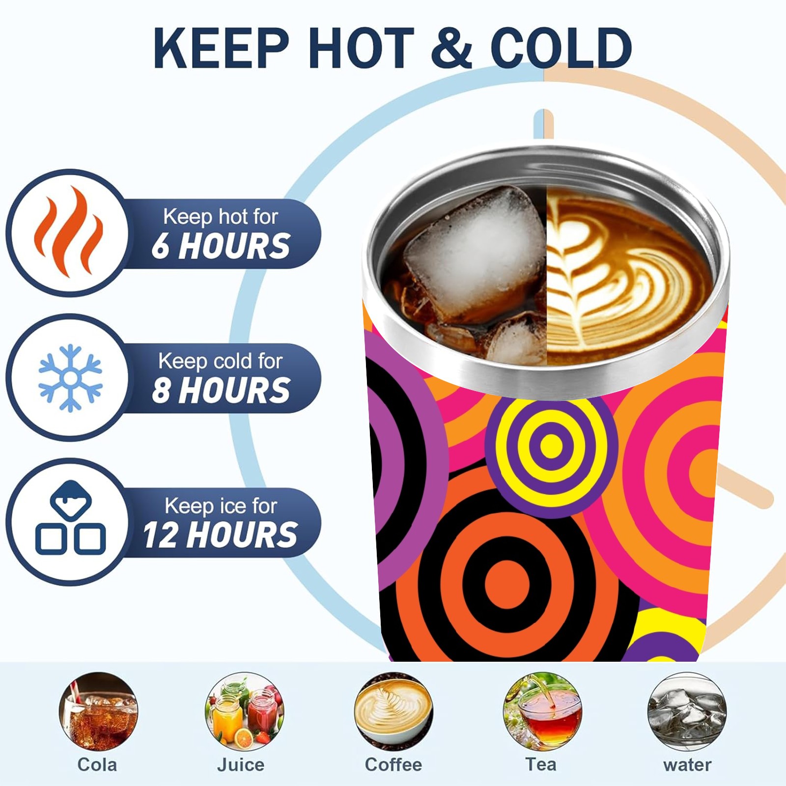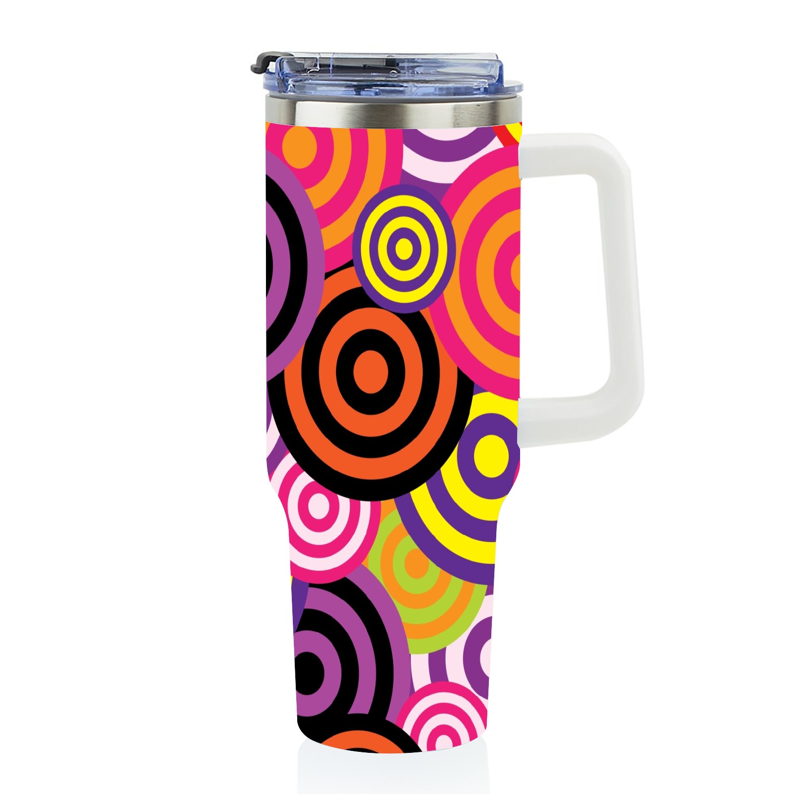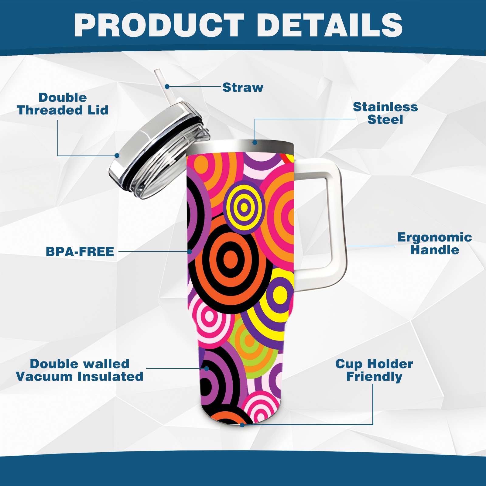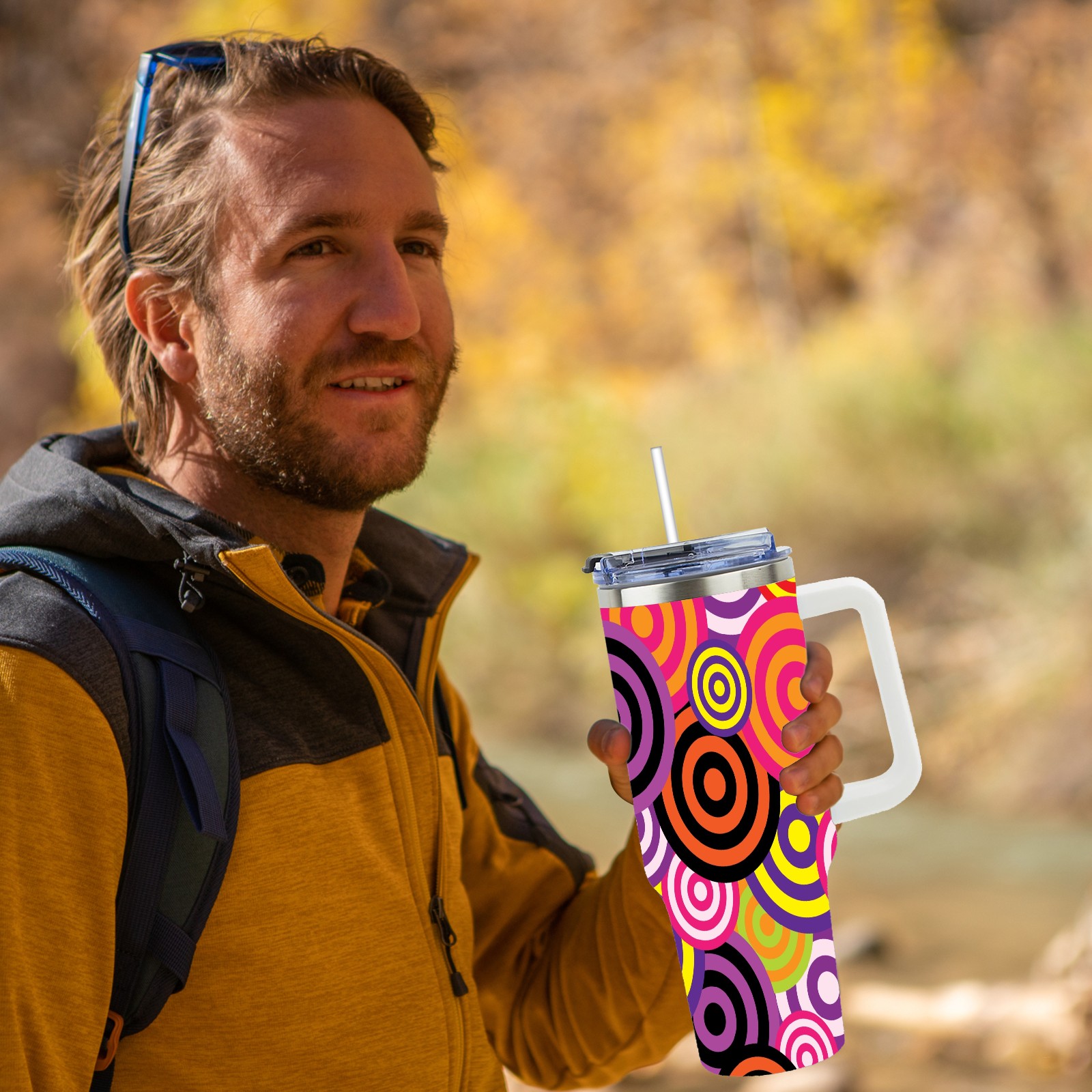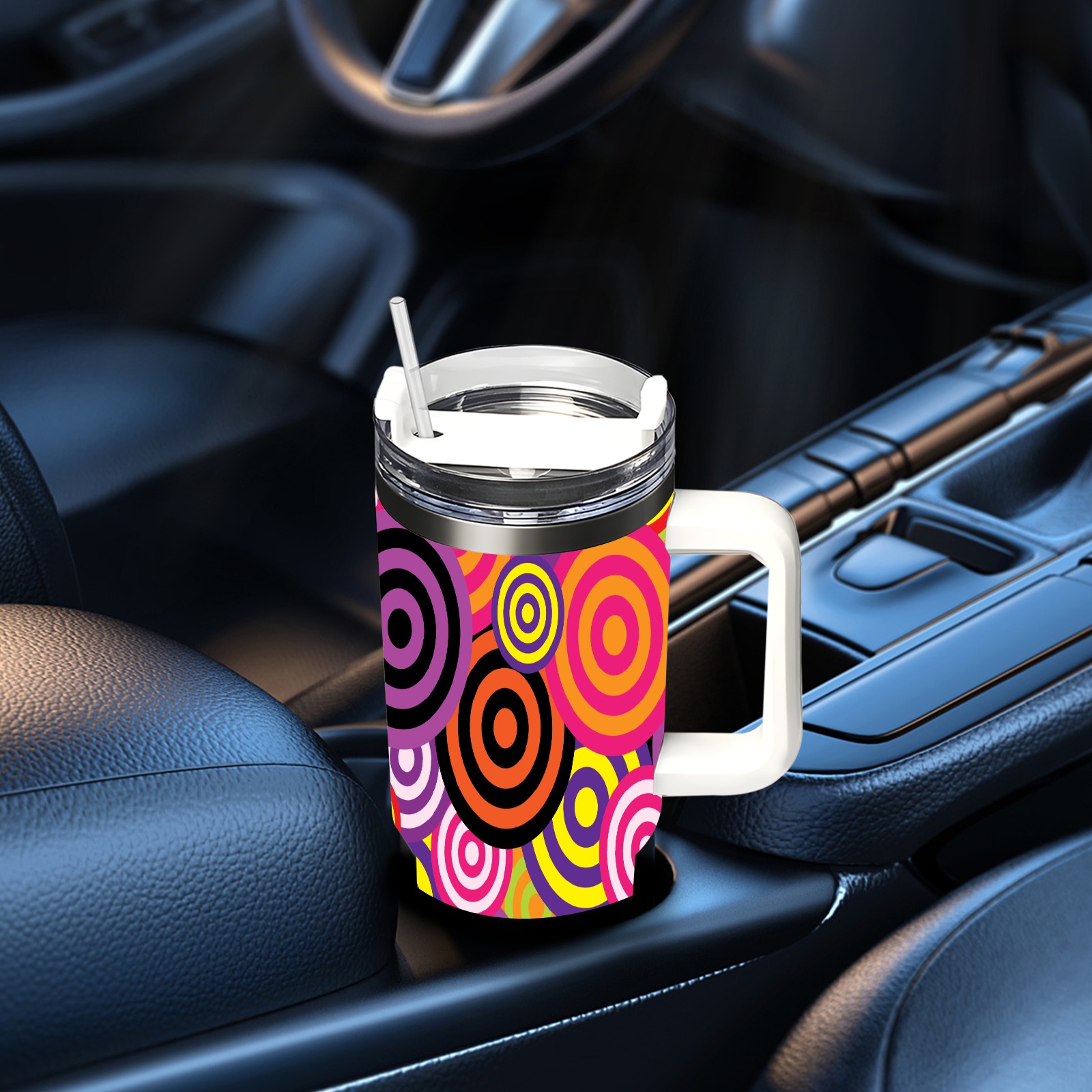 40oz Circles Retro Colorful thermos with lid and straw, leak-proof stainless steel, with handle, spill-proof bottle, convenient for travel(pink)