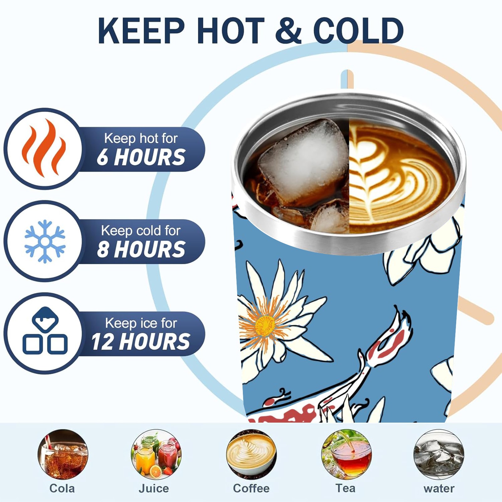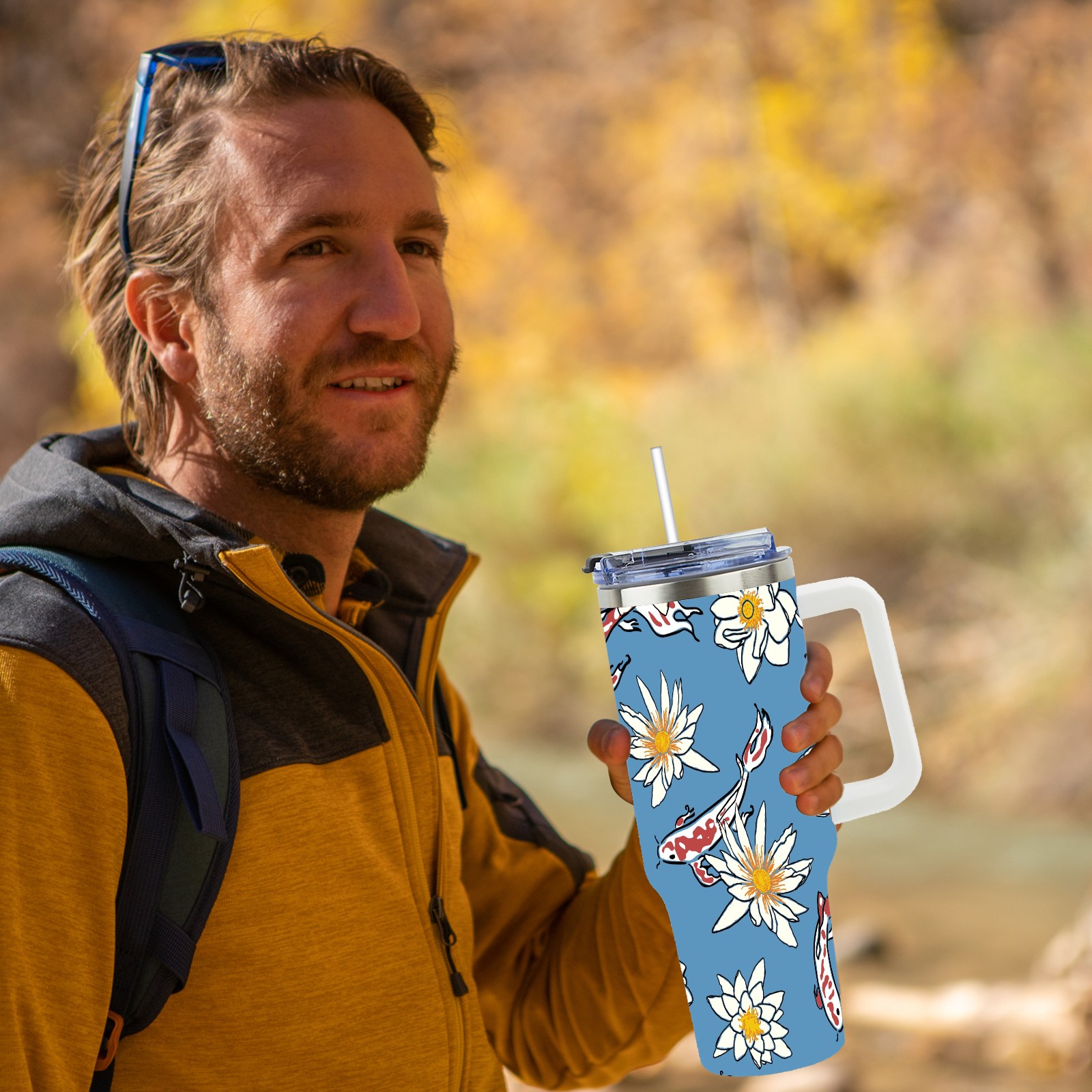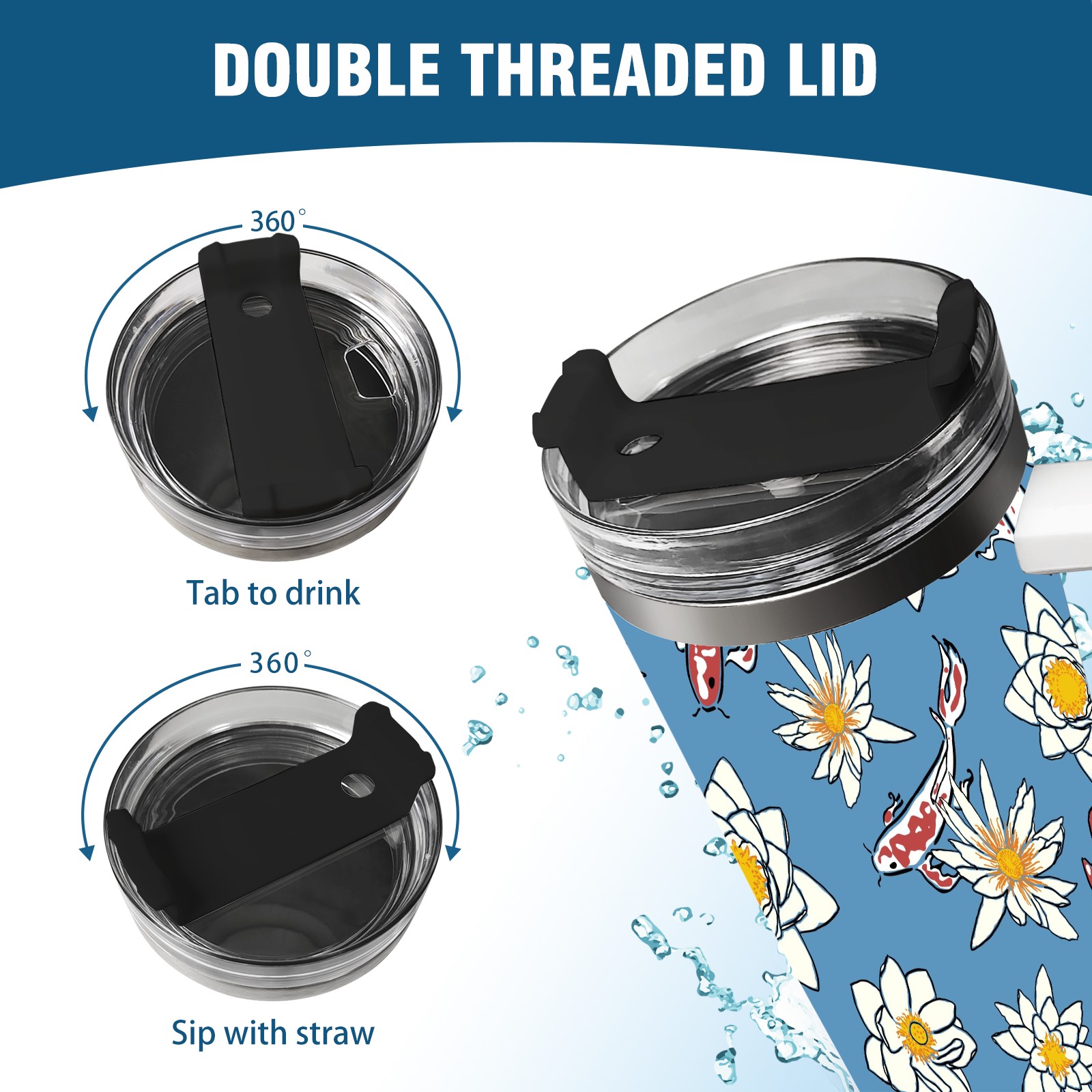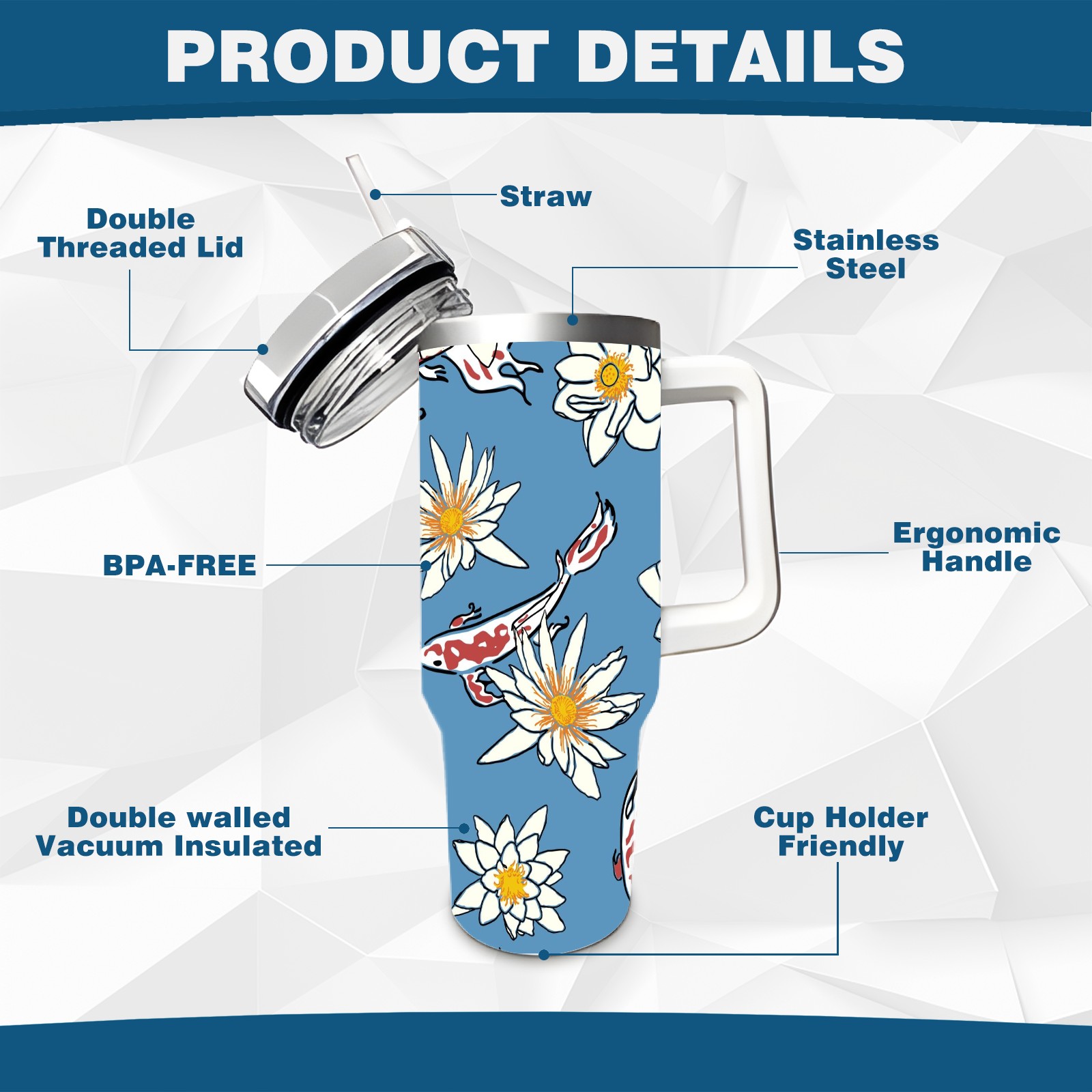 40oz Koi Lotus Lily Seamless thermos with lid and straw, leak-proof stainless steel, with handle, spill-proof bottle, convenient for travel(pink)
