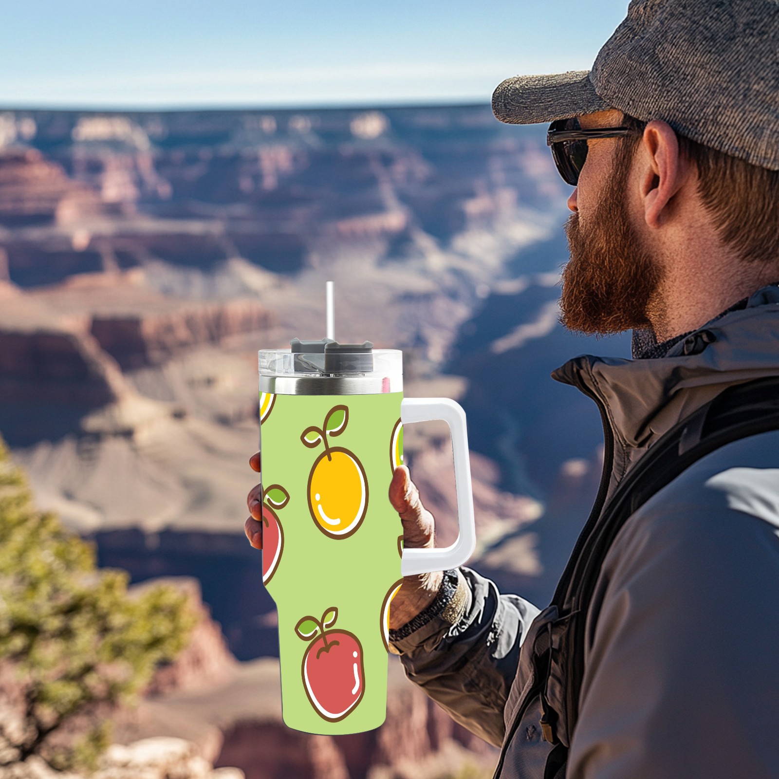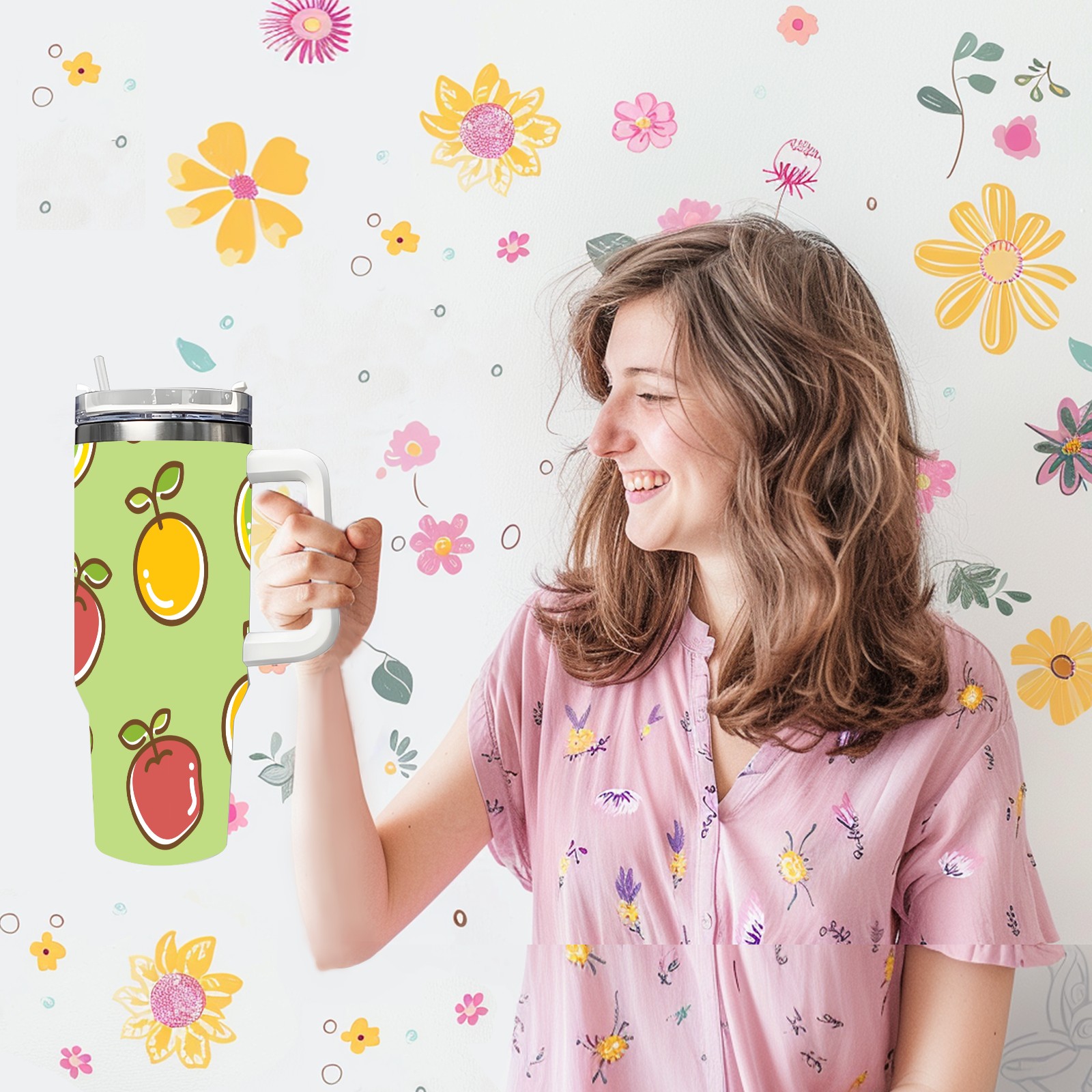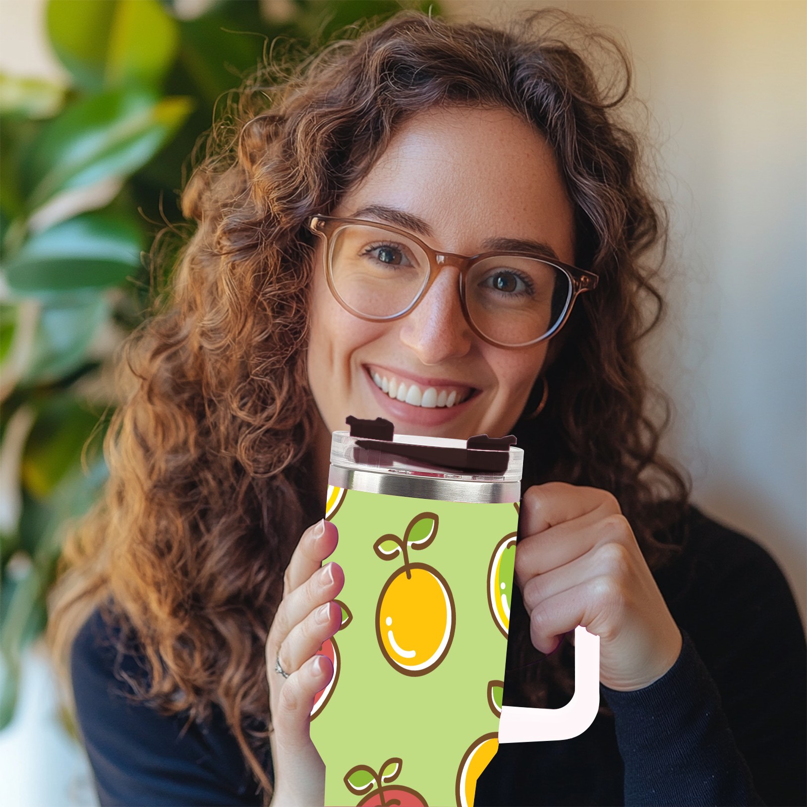 40oz Fruit Seamless Colorful thermos with lid and straw, leak-proof stainless steel, with handle, spill-proof bottle, convenient for travel(pink)