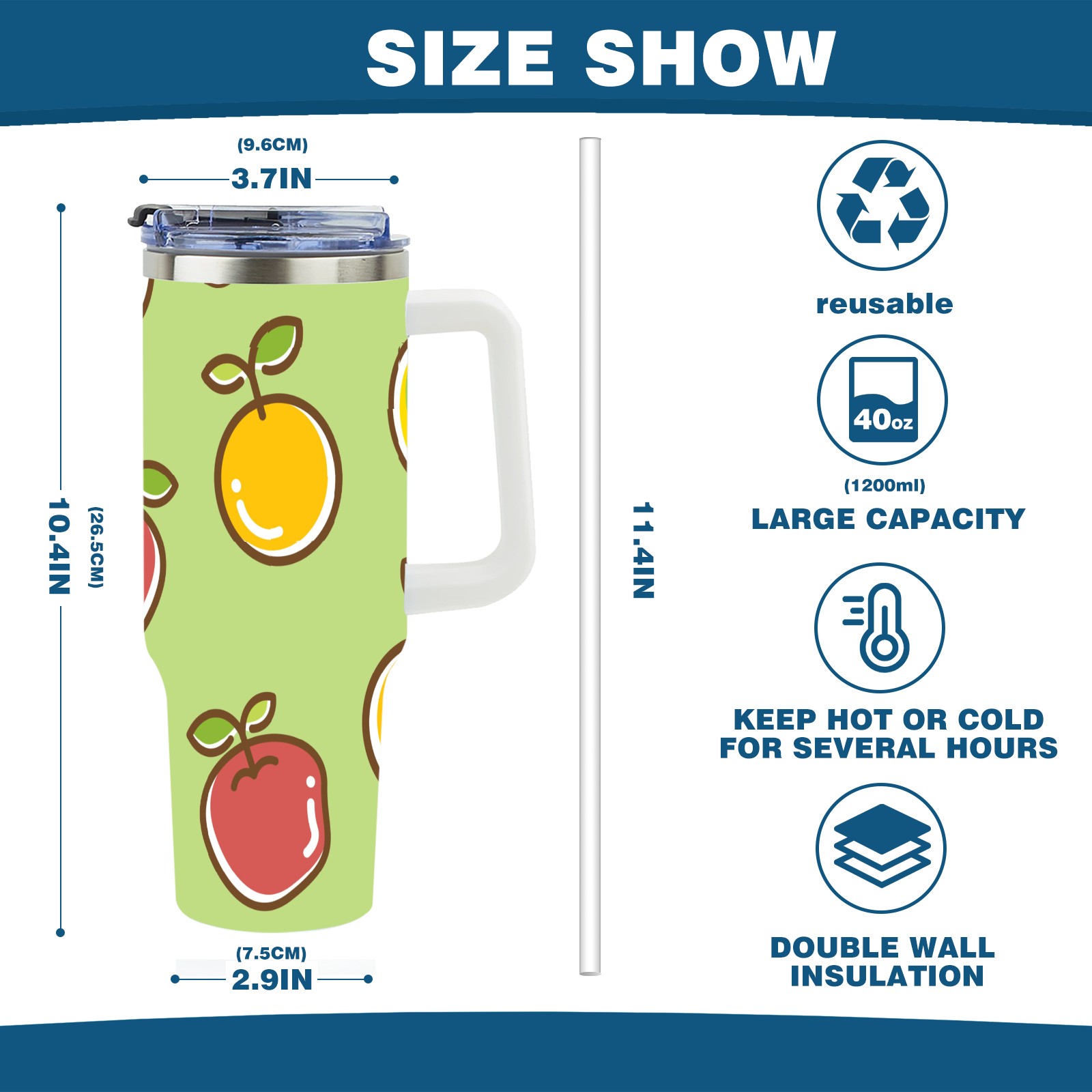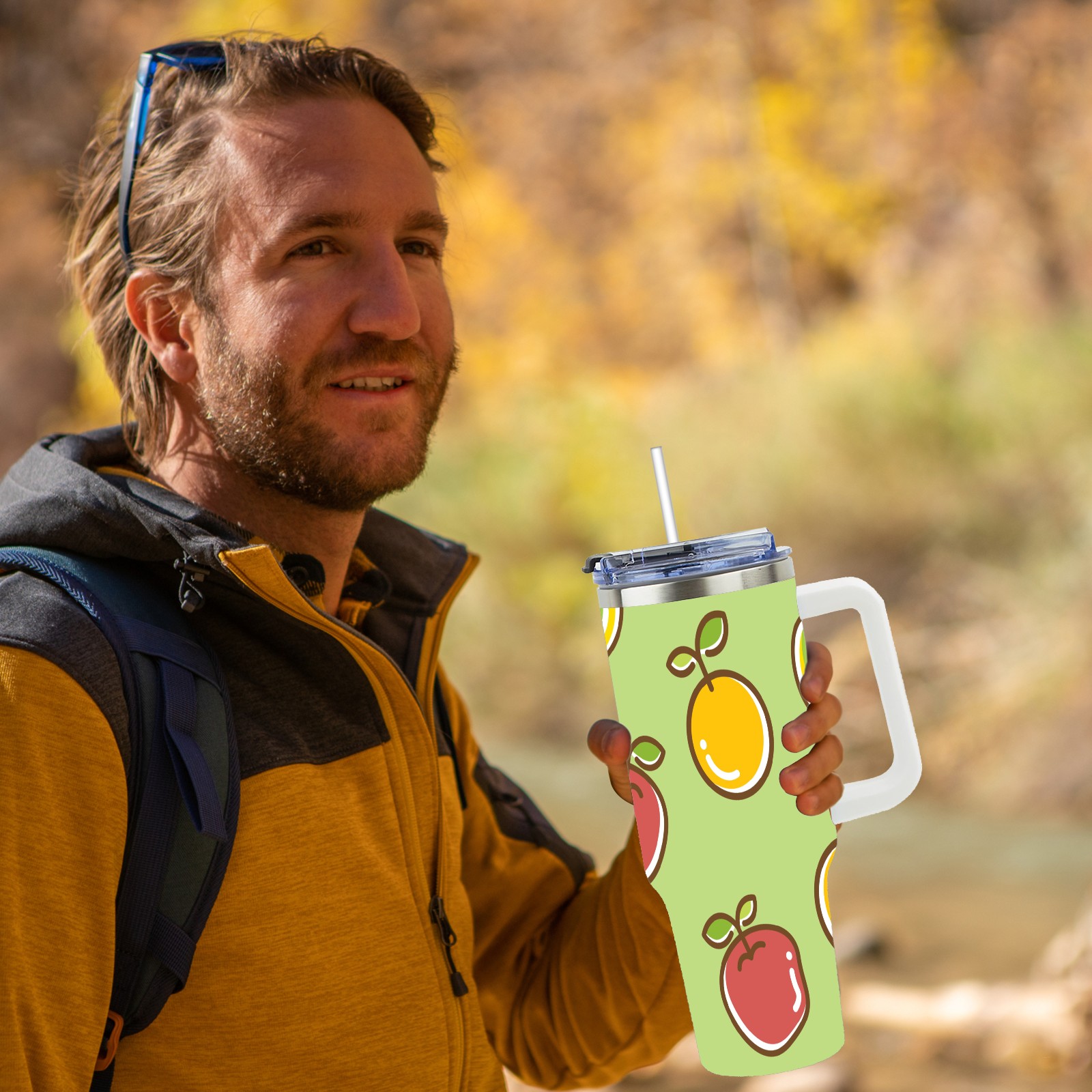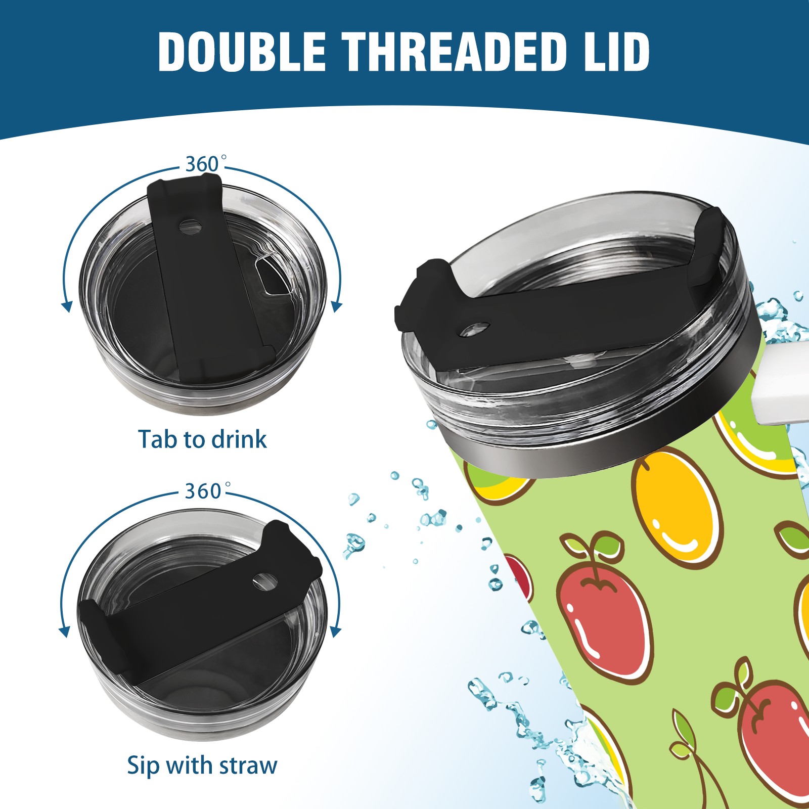 40oz Fruit Seamless Colorful thermos with lid and straw, leak-proof stainless steel, with handle, spill-proof bottle, convenient for travel(pink)