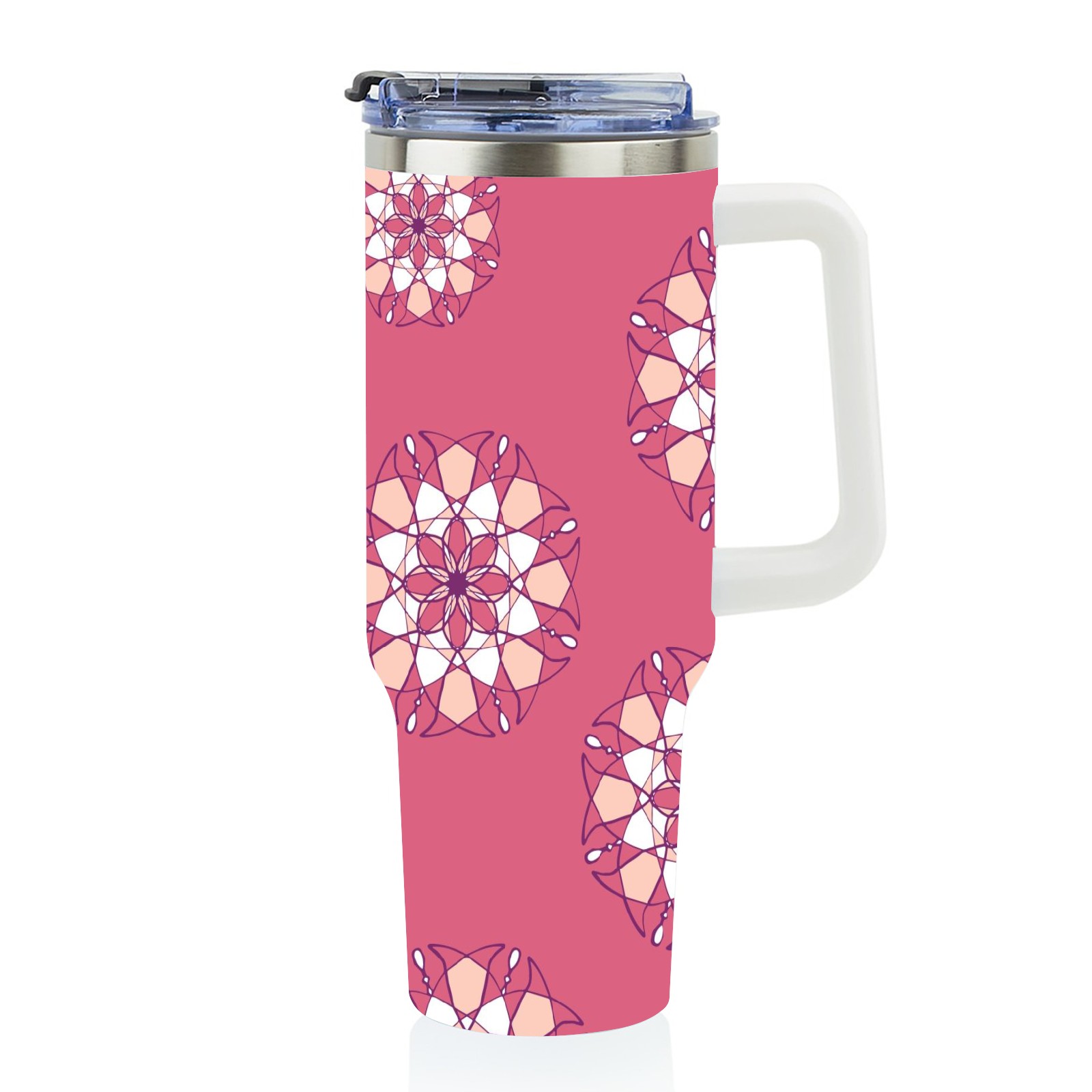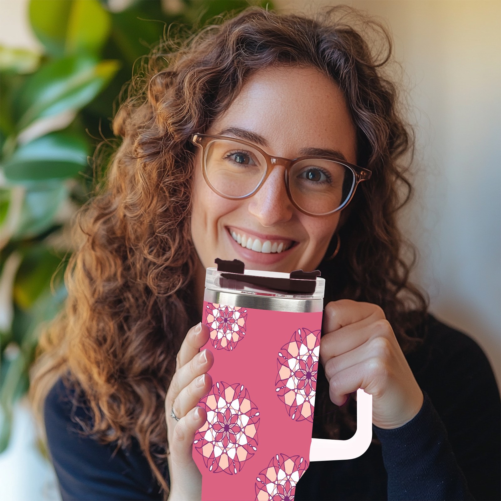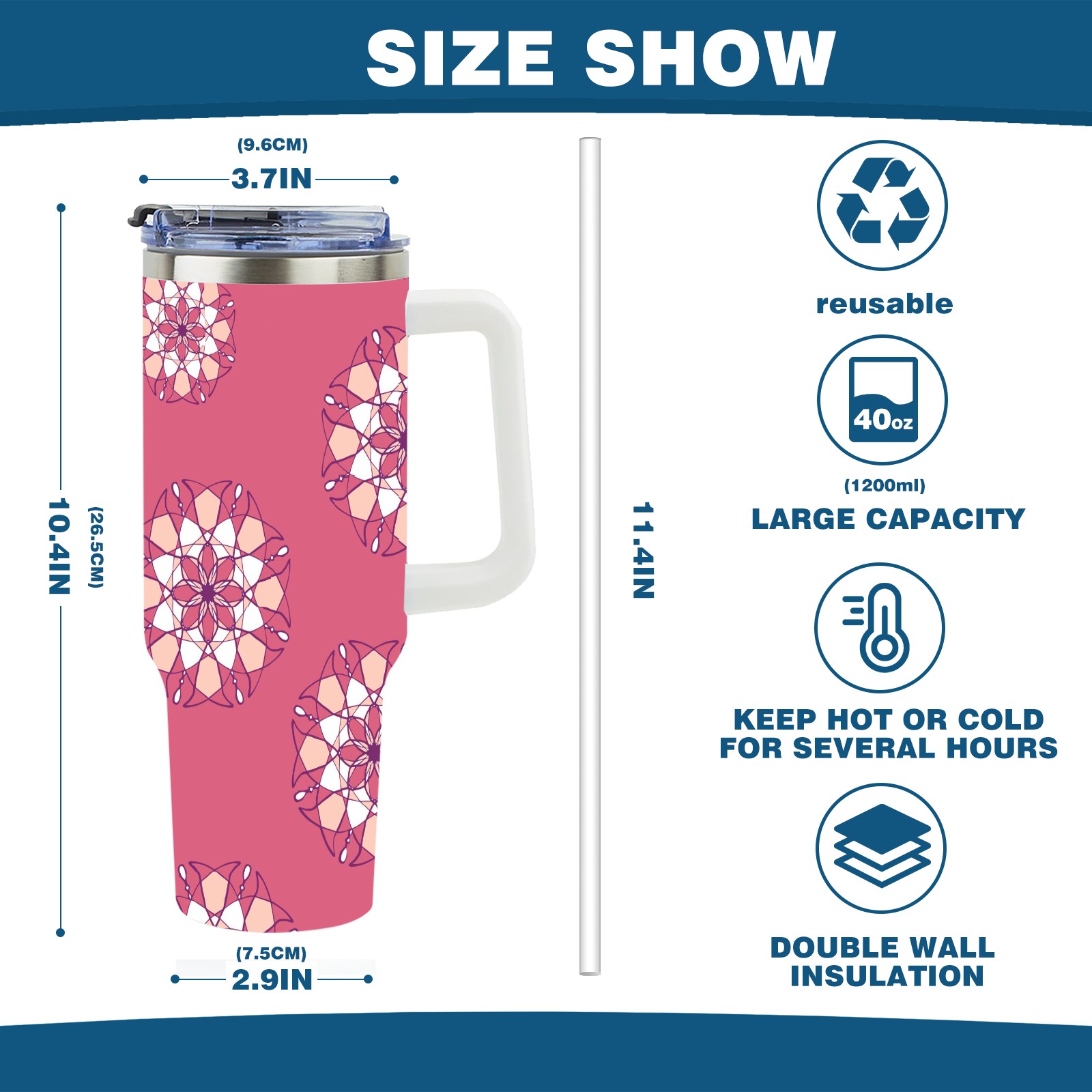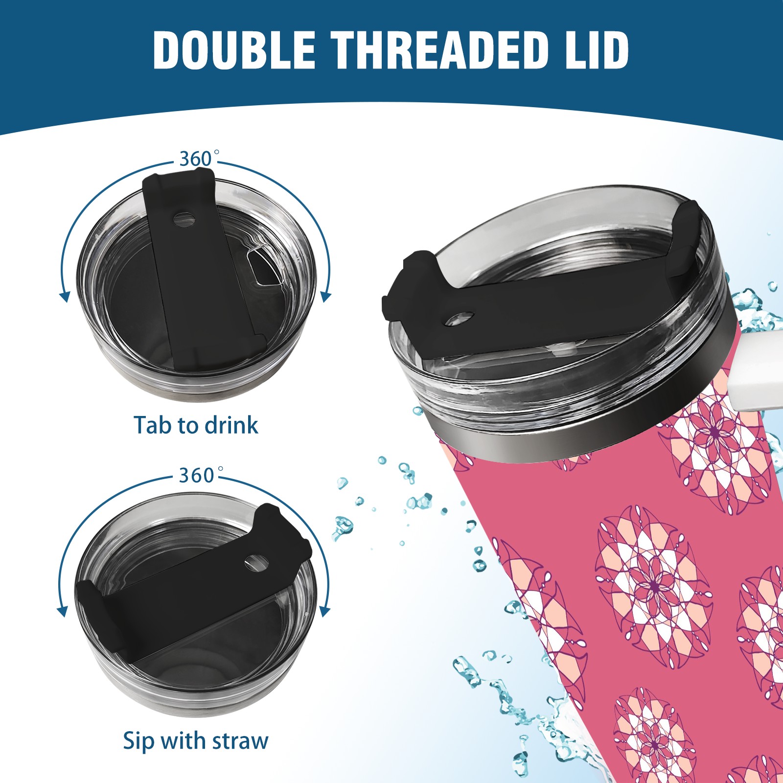 40oz Circle Seamless Abstract thermos with lid and straw, leak-proof stainless steel, with handle, spill-proof bottle, convenient for travel(pink)
