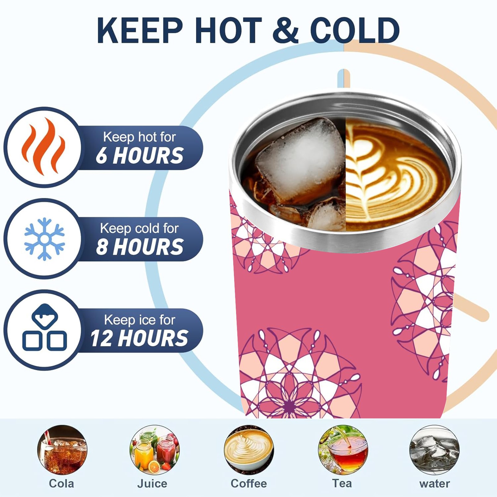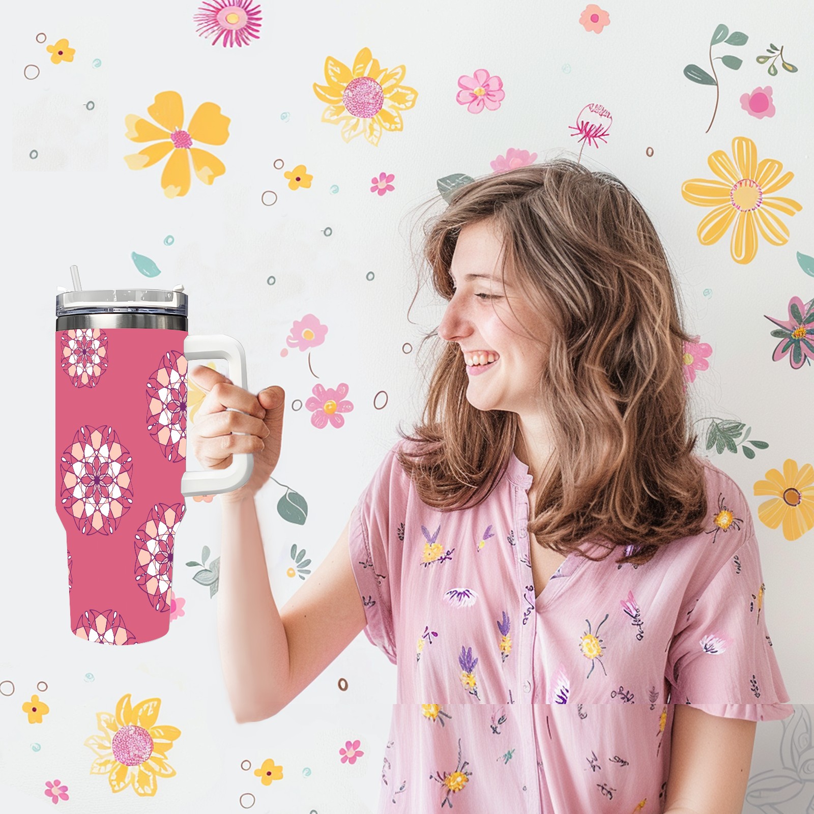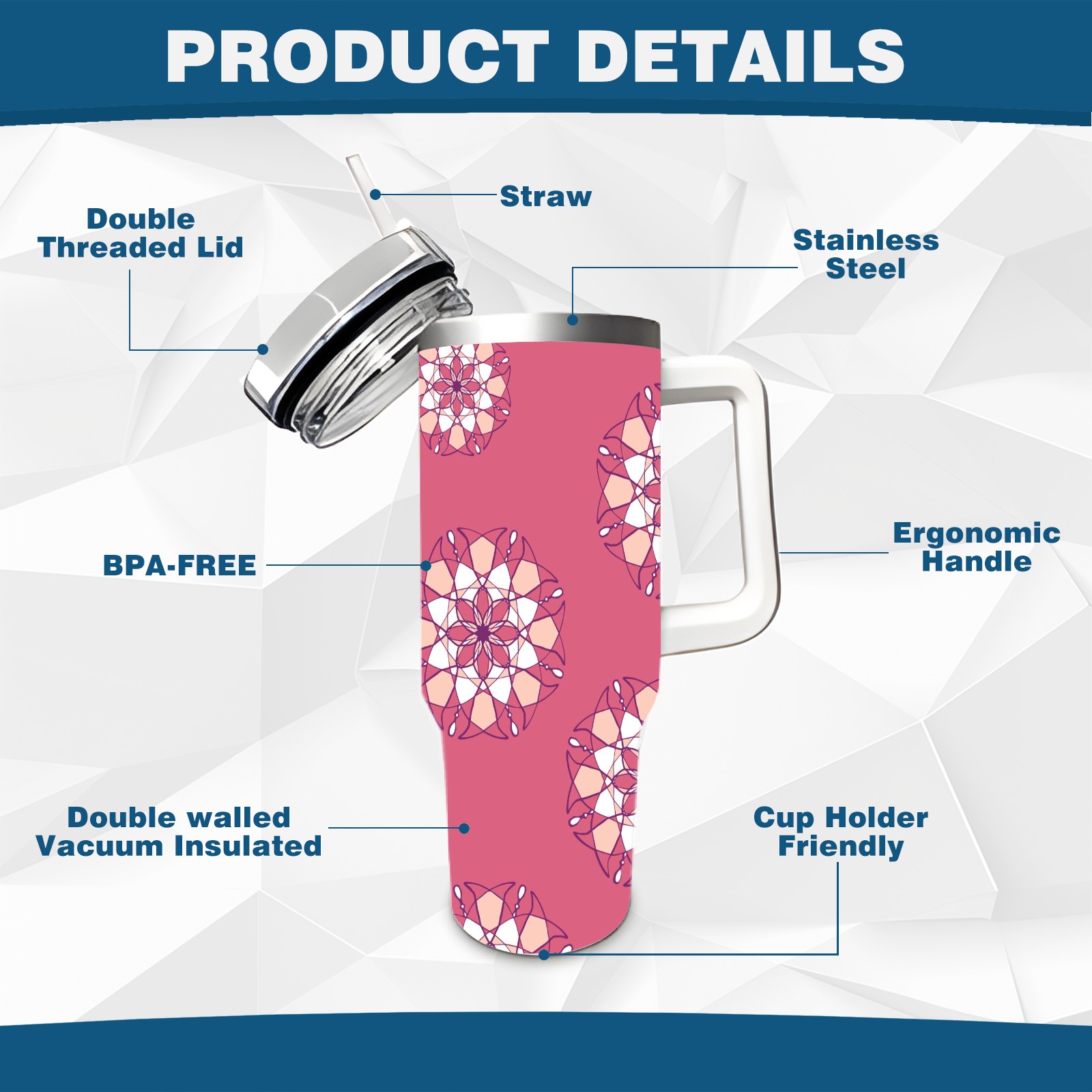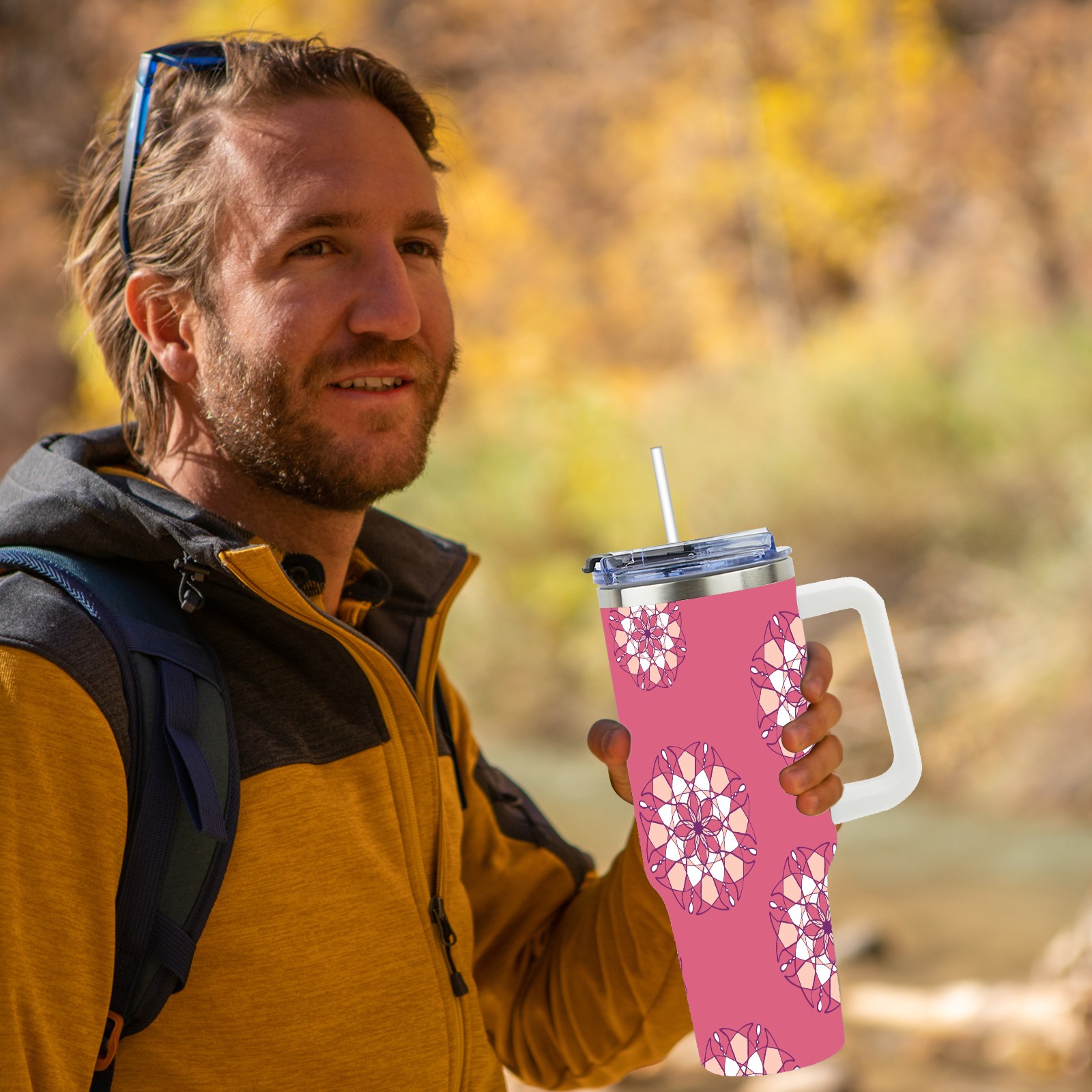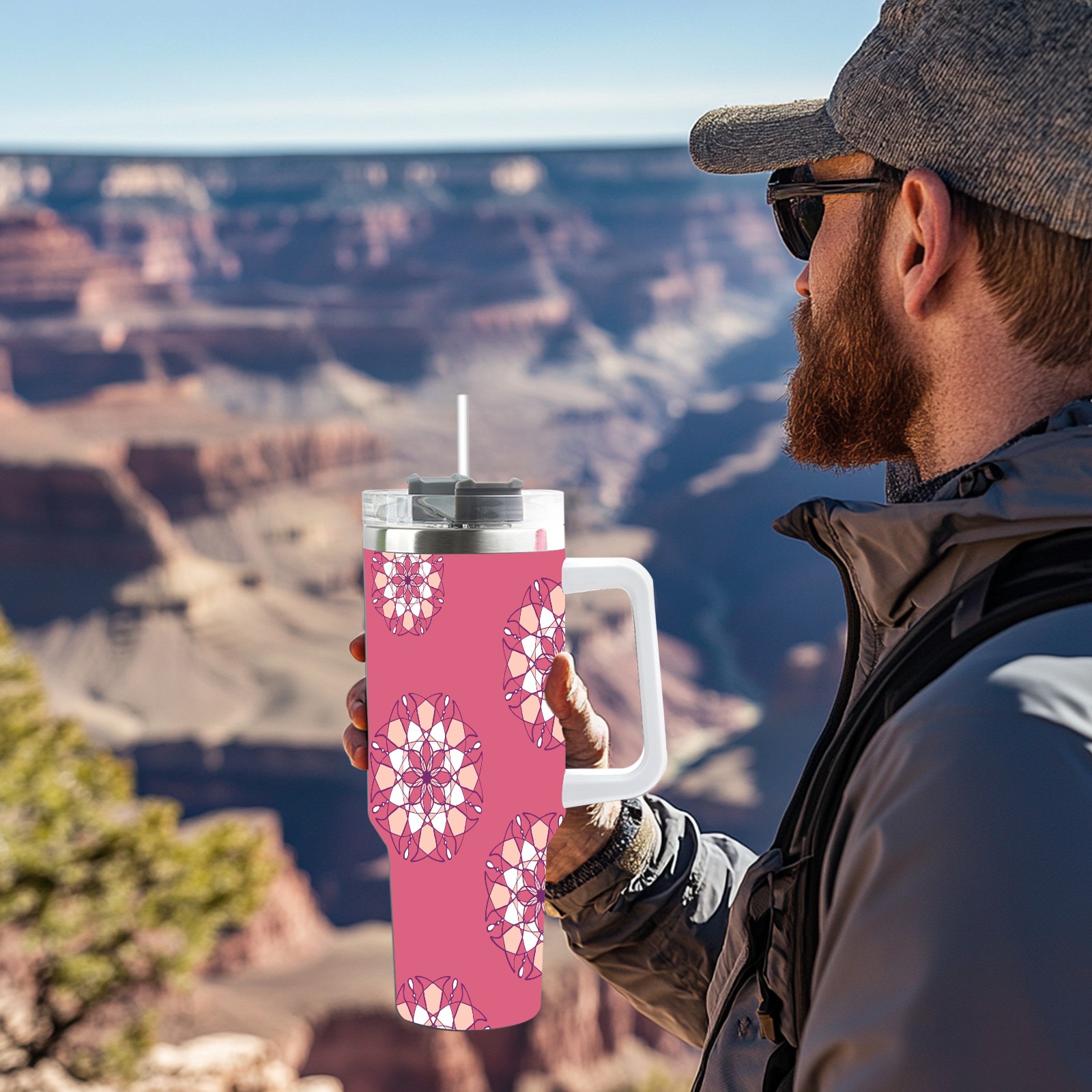 40oz Circle Seamless Abstract thermos with lid and straw, leak-proof stainless steel, with handle, spill-proof bottle, convenient for travel(pink)