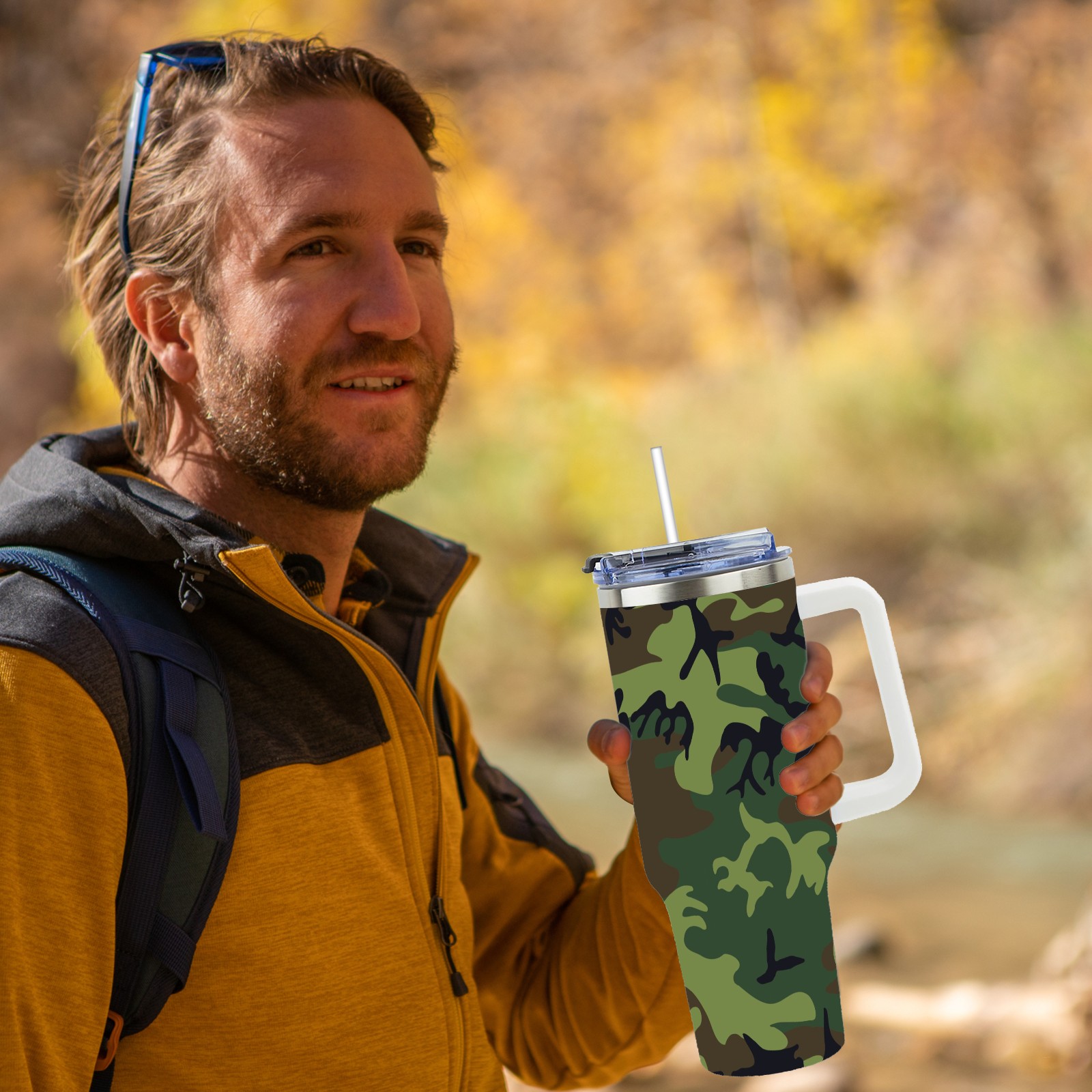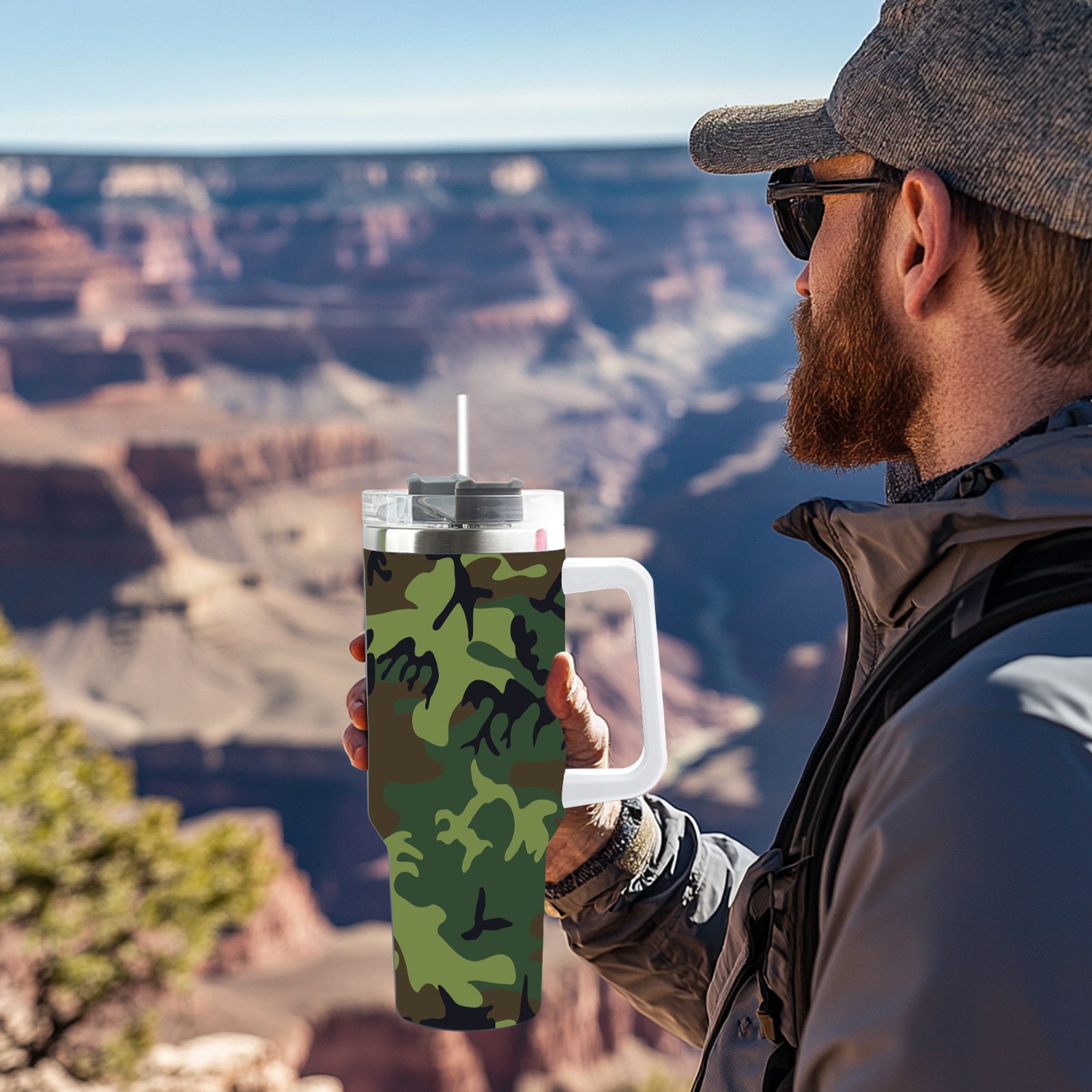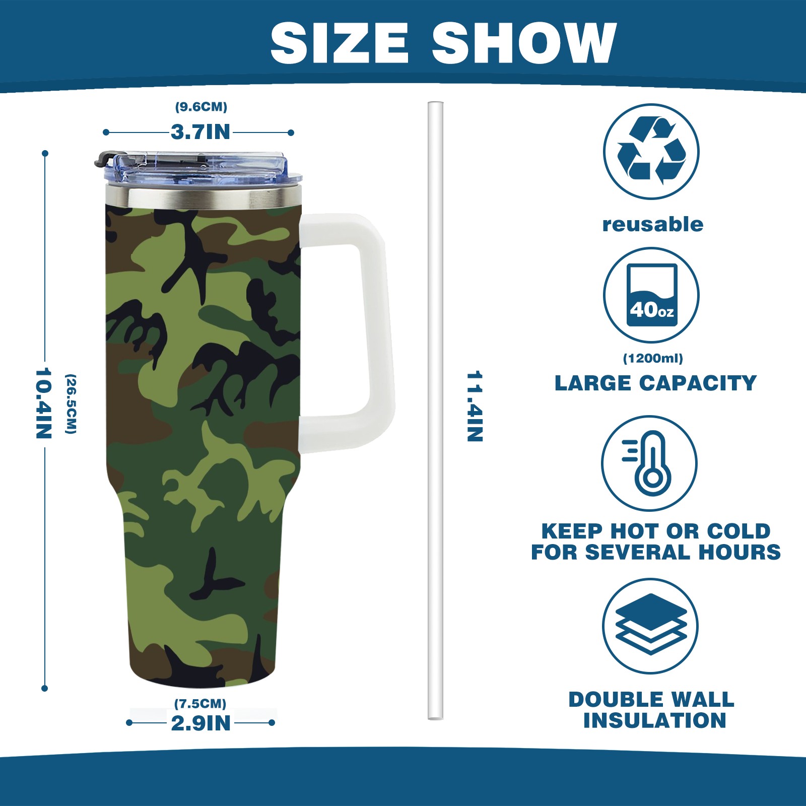 40oz Camouflage Seamless thermos with lid and straw, leak-proof stainless steel, with handle, spill-proof bottle, convenient for travel(pink)