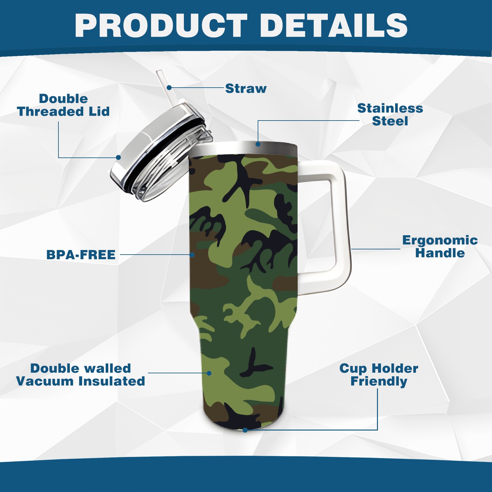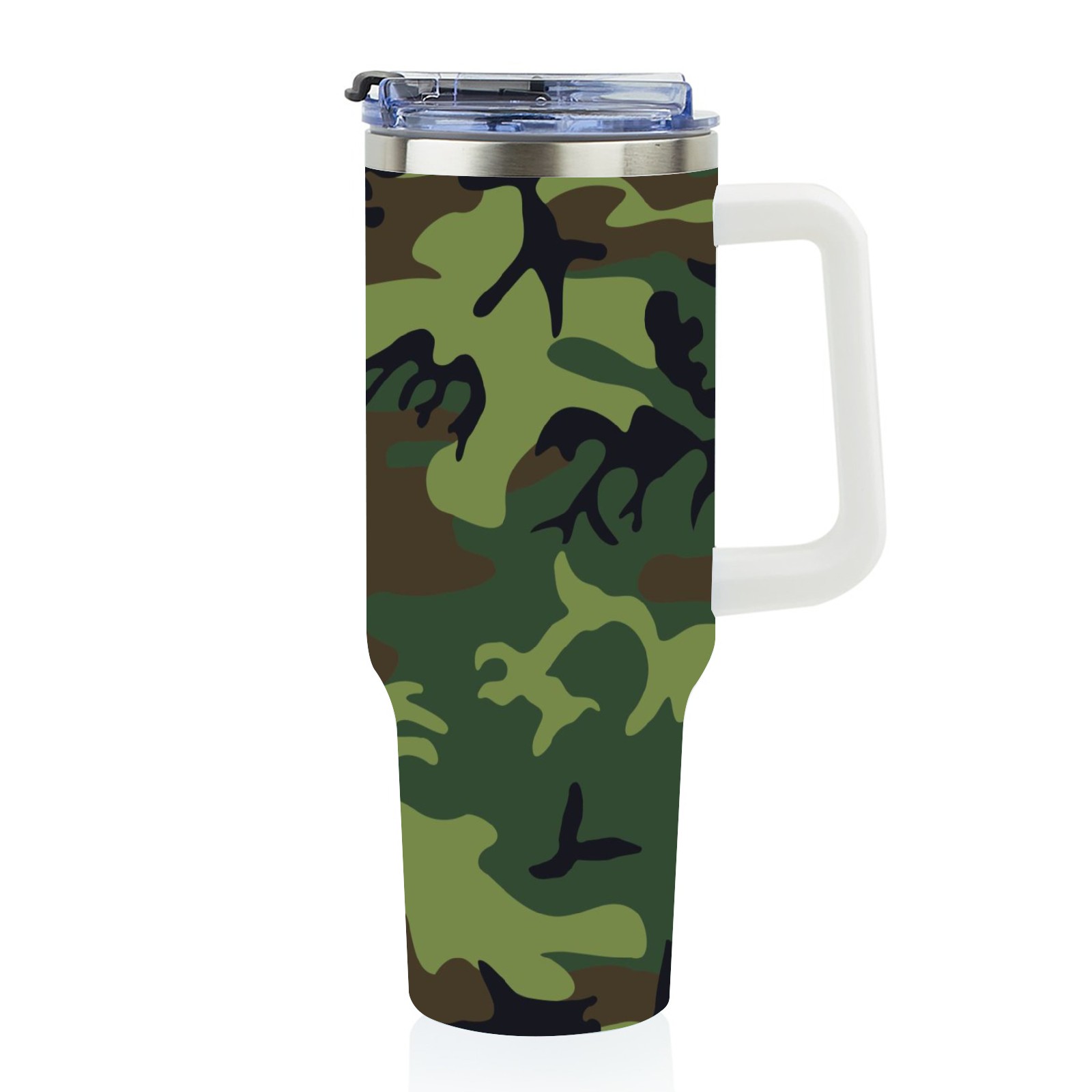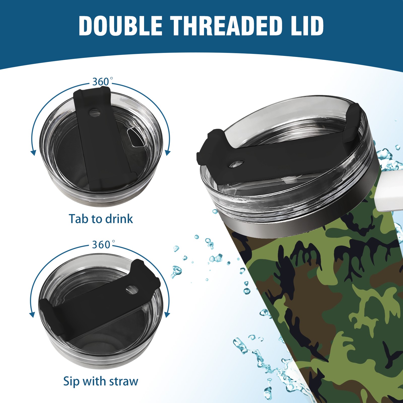 40oz Camouflage Seamless thermos with lid and straw, leak-proof stainless steel, with handle, spill-proof bottle, convenient for travel(pink)