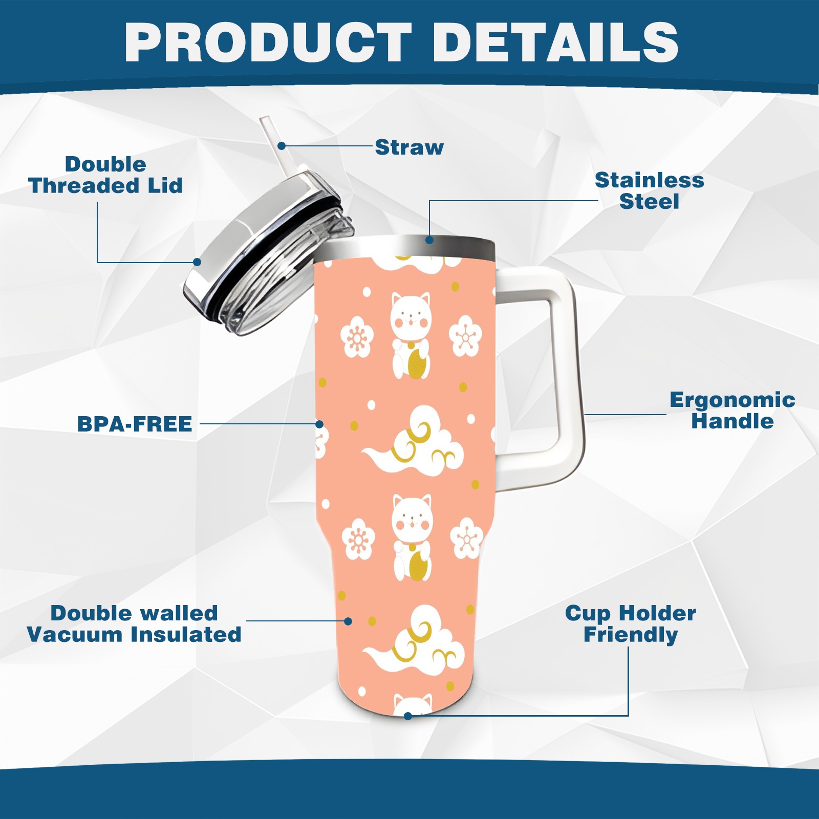 • <p>This multi-functional insulated water bottle features a simple and practical design, suitable for various daily scenarios. The ergonomic handle allows for easy one-handed drinking, and the detachable handle can be adjusted or removed as needed, making it convenient for commuting, exercising, or carrying to meetings. Made of high-quality stainless steel, it is BPA-free and features double-walled vacuum insulation technology that keeps drinks cold for 8 hours and hot for 6 hours, ensuring you can enjoy your beverage at the perfect temperature anytime, anywhere. The 40-ounce Christmas edition comes with a sliding lid, silicone straw, and a non-slip design. Accessories are dishwasher safe, and the narrow bottom and wide mouth design perfectly fits car cup holders. The exclusive flip-top straw lid is environmentally friendly and durable, with a one-touch leak-proof closure and two drinking modes: sip and gulp. A dust cover provides effective protection. This bottle is suitable for travel, office work, sports, camping, and other occasions, making it a thoughtful gift for friends and family.</p>