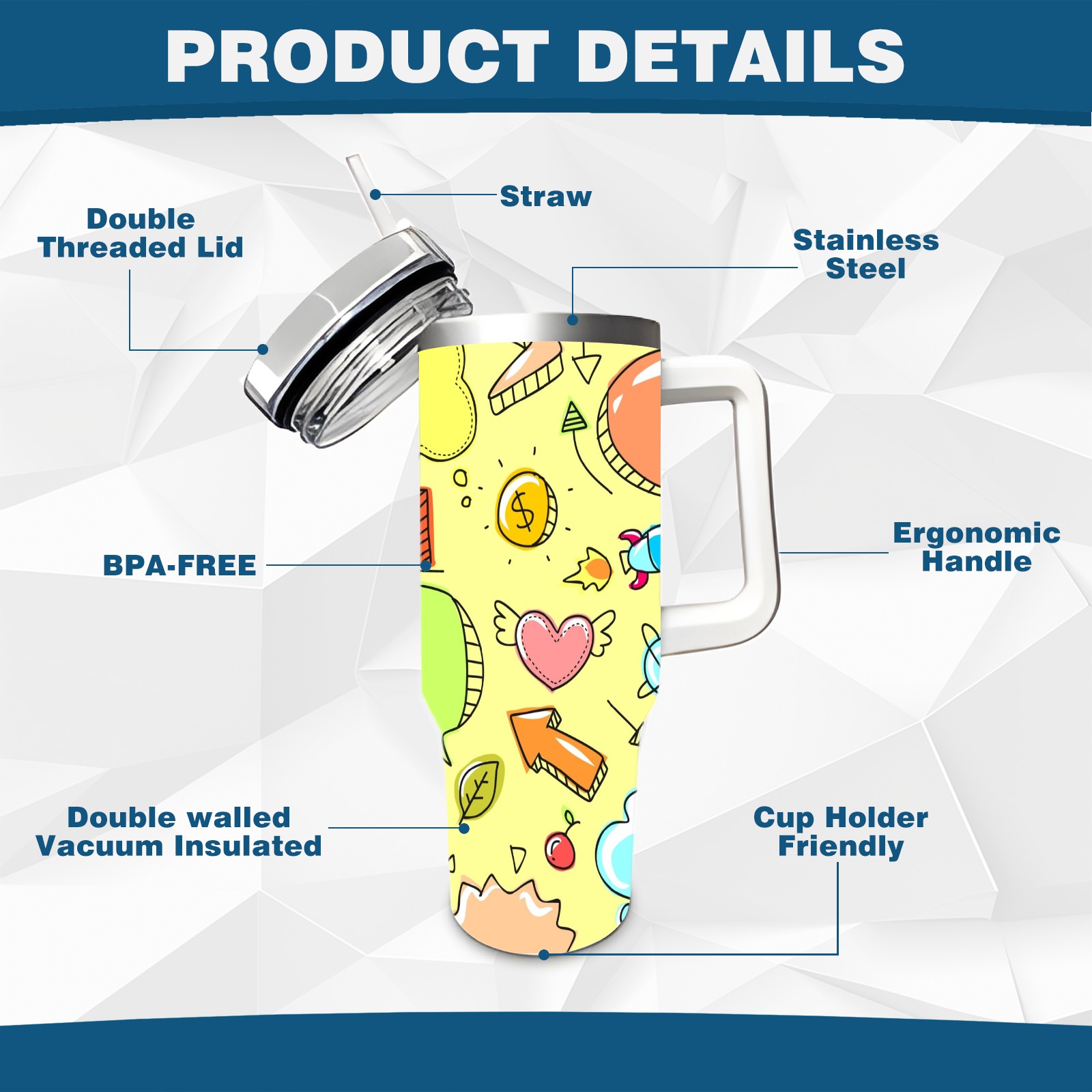 • <p>This multi-functional insulated water bottle features a simple and practical design, suitable for various daily scenarios. The ergonomic handle allows for easy one-handed drinking, and the detachable handle can be adjusted or removed as needed, making it convenient for commuting, exercising, or carrying to meetings. Made of high-quality stainless steel, it is BPA-free and features double-walled vacuum insulation technology that keeps drinks cold for 8 hours and hot for 6 hours, ensuring you can enjoy your beverage at the perfect temperature anytime, anywhere. The 40-ounce Christmas edition comes with a sliding lid, silicone straw, and a non-slip design. Accessories are dishwasher safe, and the narrow bottom and wide mouth design perfectly fits car cup holders. The exclusive flip-top straw lid is environmentally friendly and durable, with a one-touch leak-proof closure and two drinking modes: sip and gulp. A dust cover provides effective protection. This bottle is suitable for travel, office work, sports, camping, and other occasions, making it a thoughtful gift for friends and family.</p>