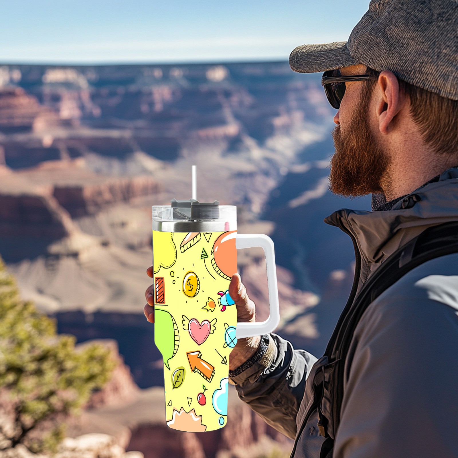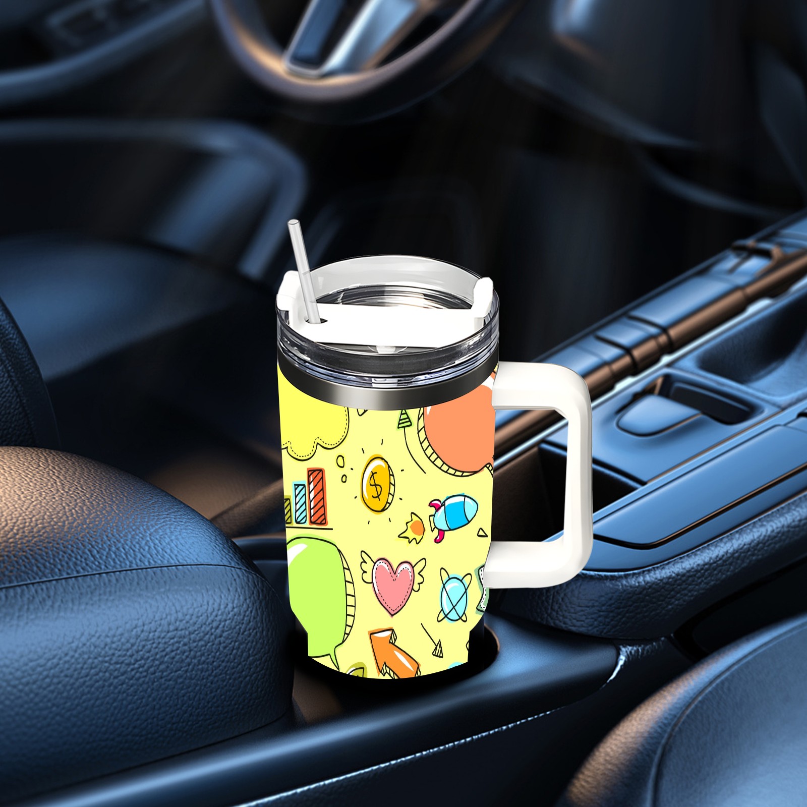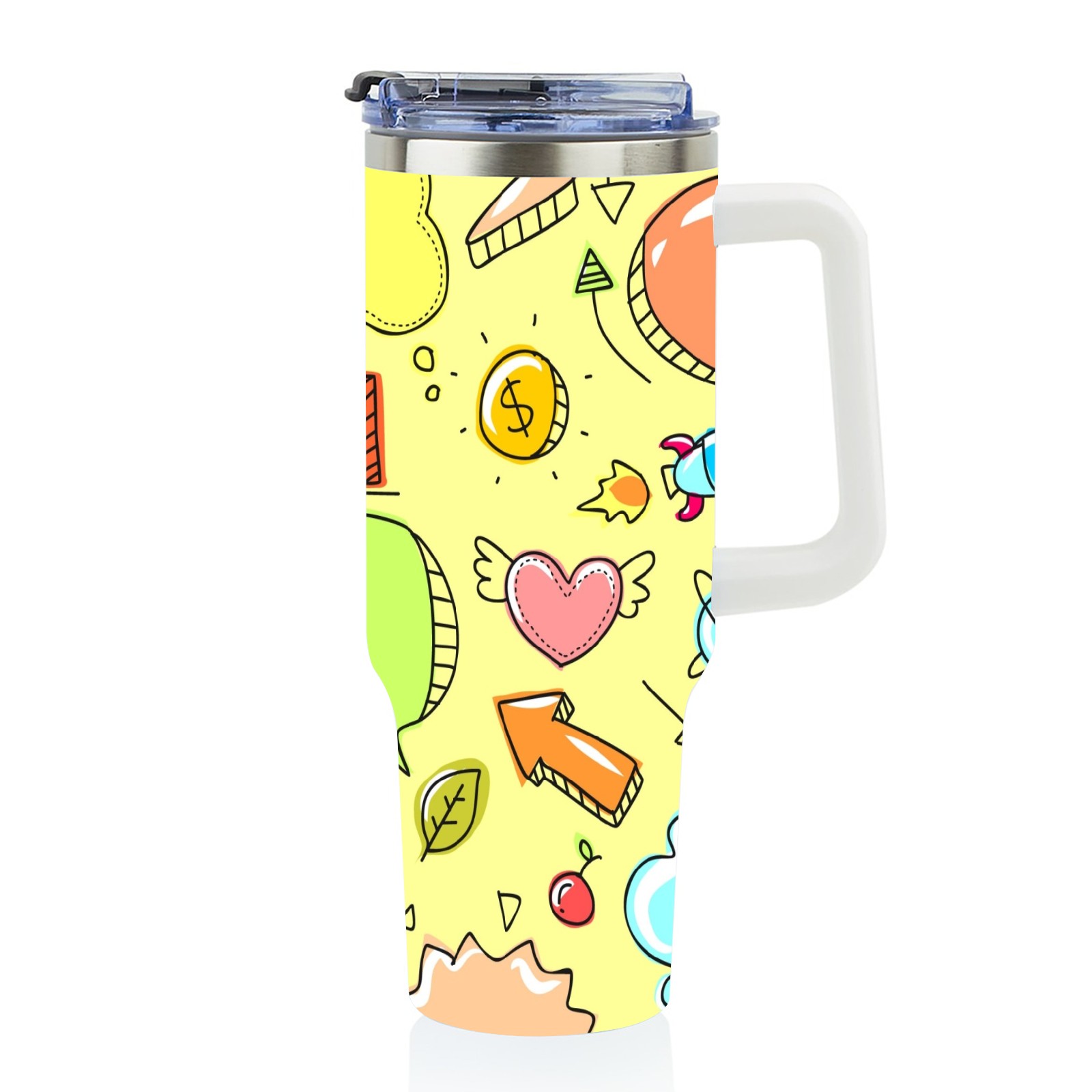 40oz Sketch Cute Funny thermos with lid and straw, leak-proof stainless steel, with handle, spill-proof bottle, convenient for travel(pink)