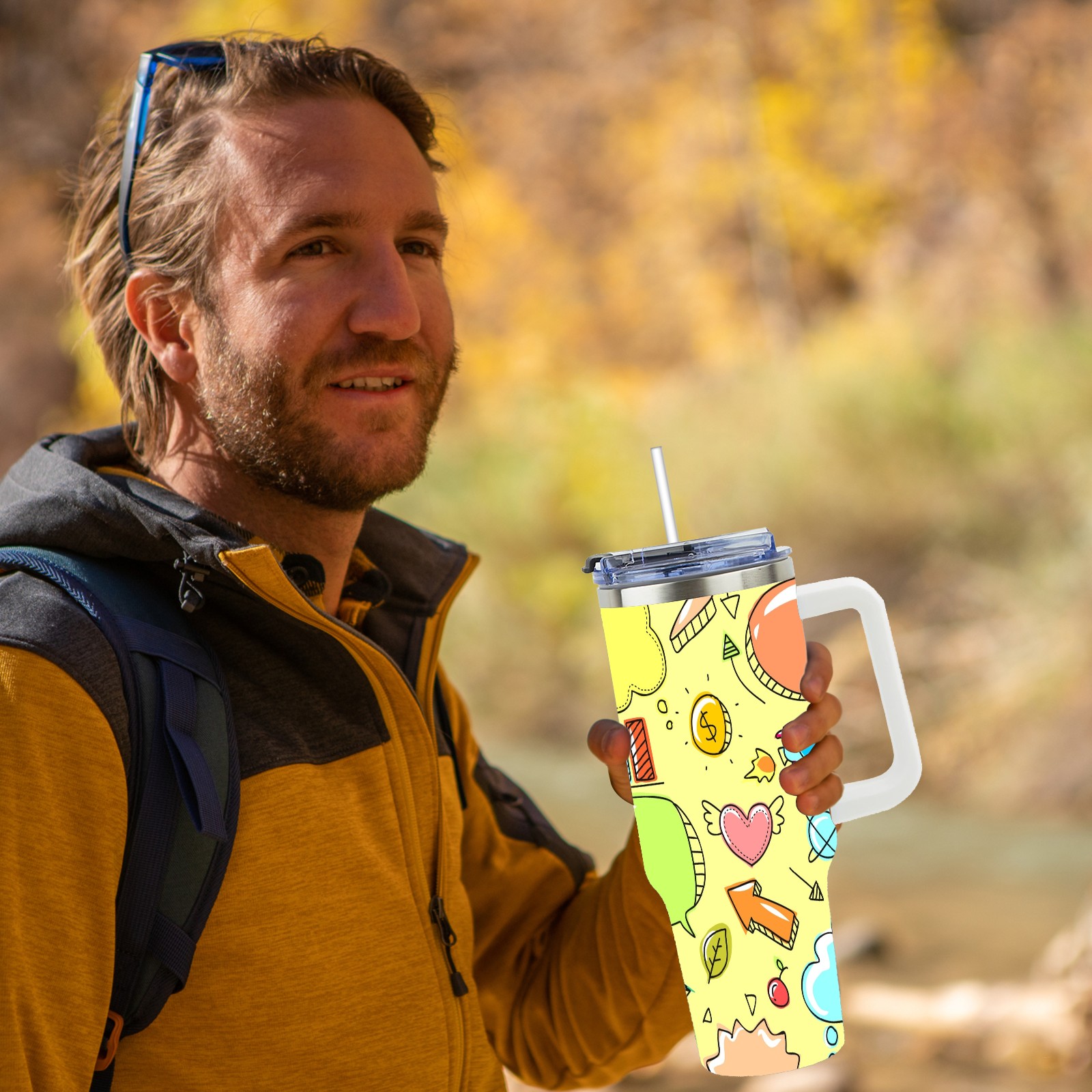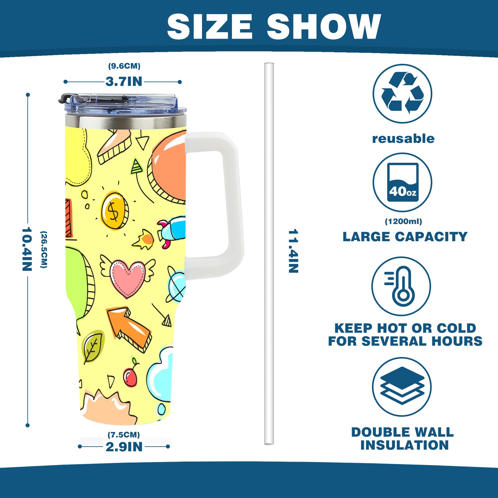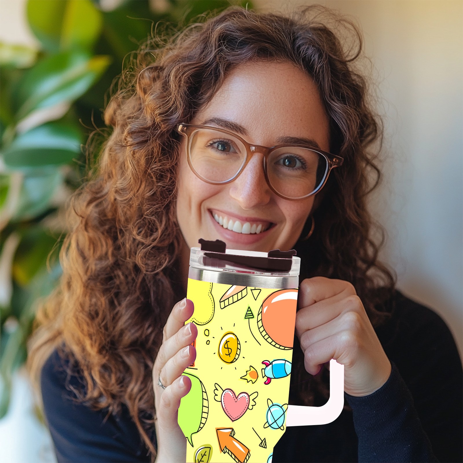 40oz Sketch Cute Funny thermos with lid and straw, leak-proof stainless steel, with handle, spill-proof bottle, convenient for travel(pink)