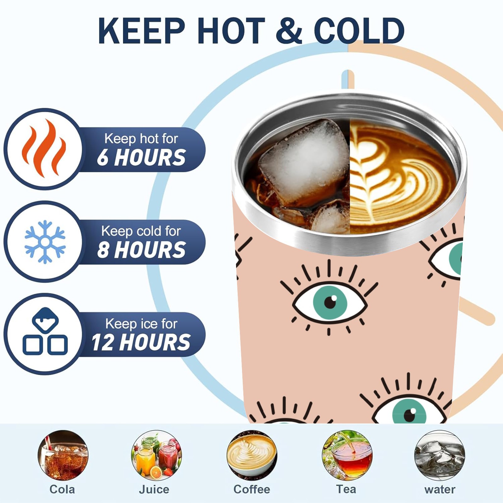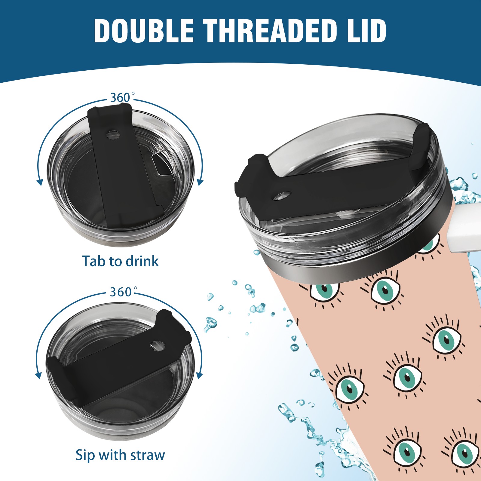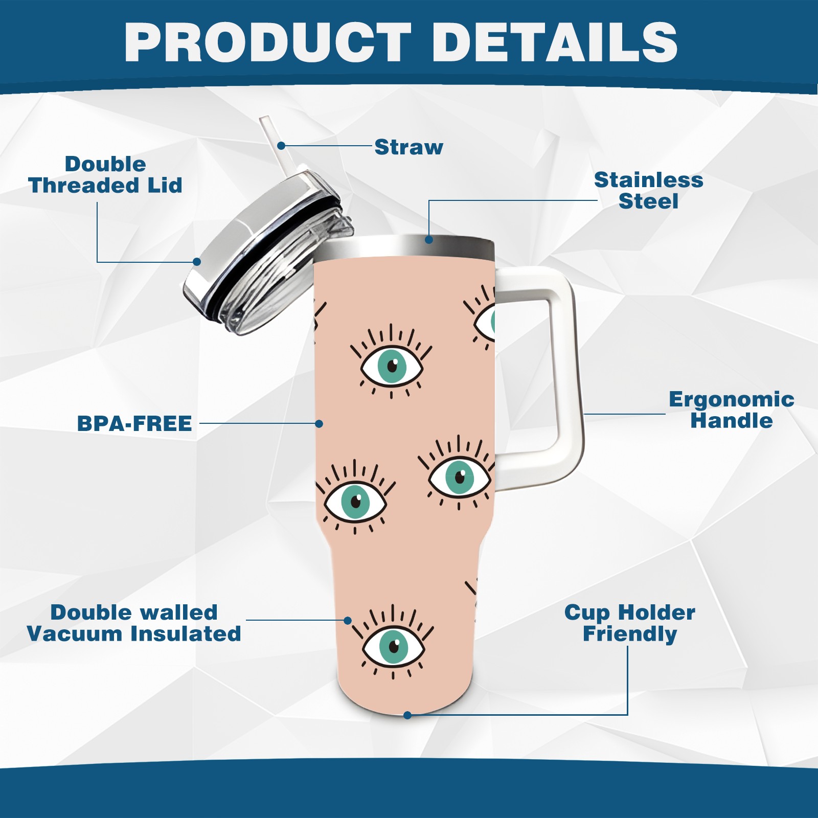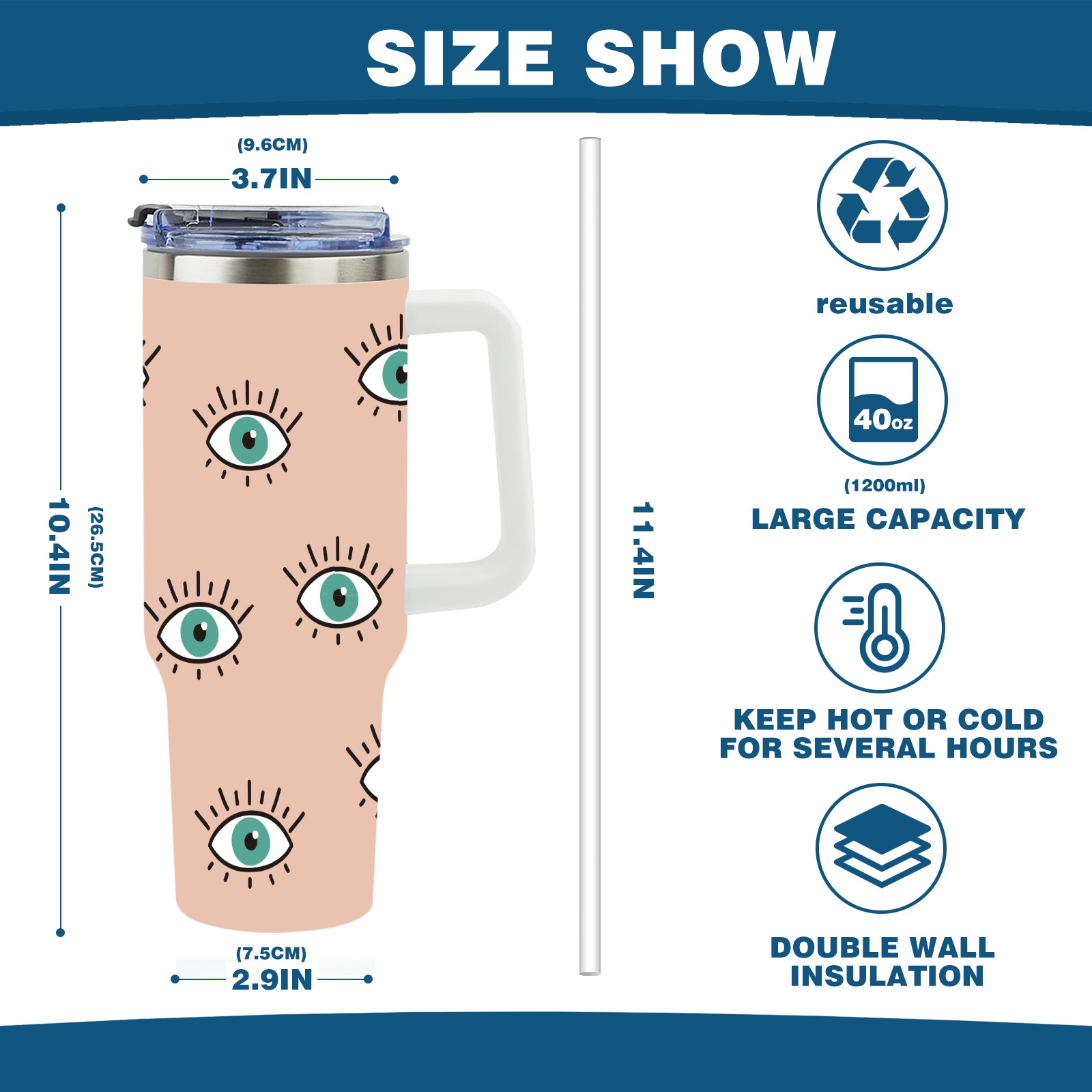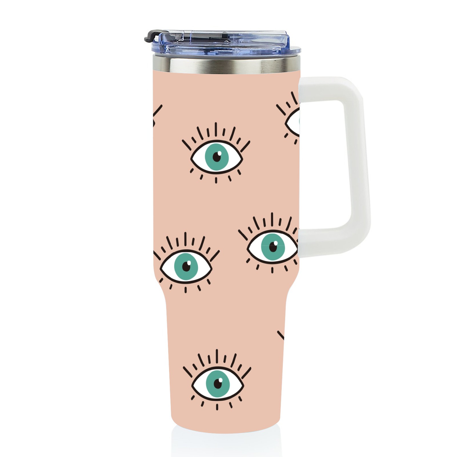 40oz Seamless Eyes Look thermos with lid and straw, leak-proof stainless steel, with handle, spill-proof bottle, convenient for travel(pink)
