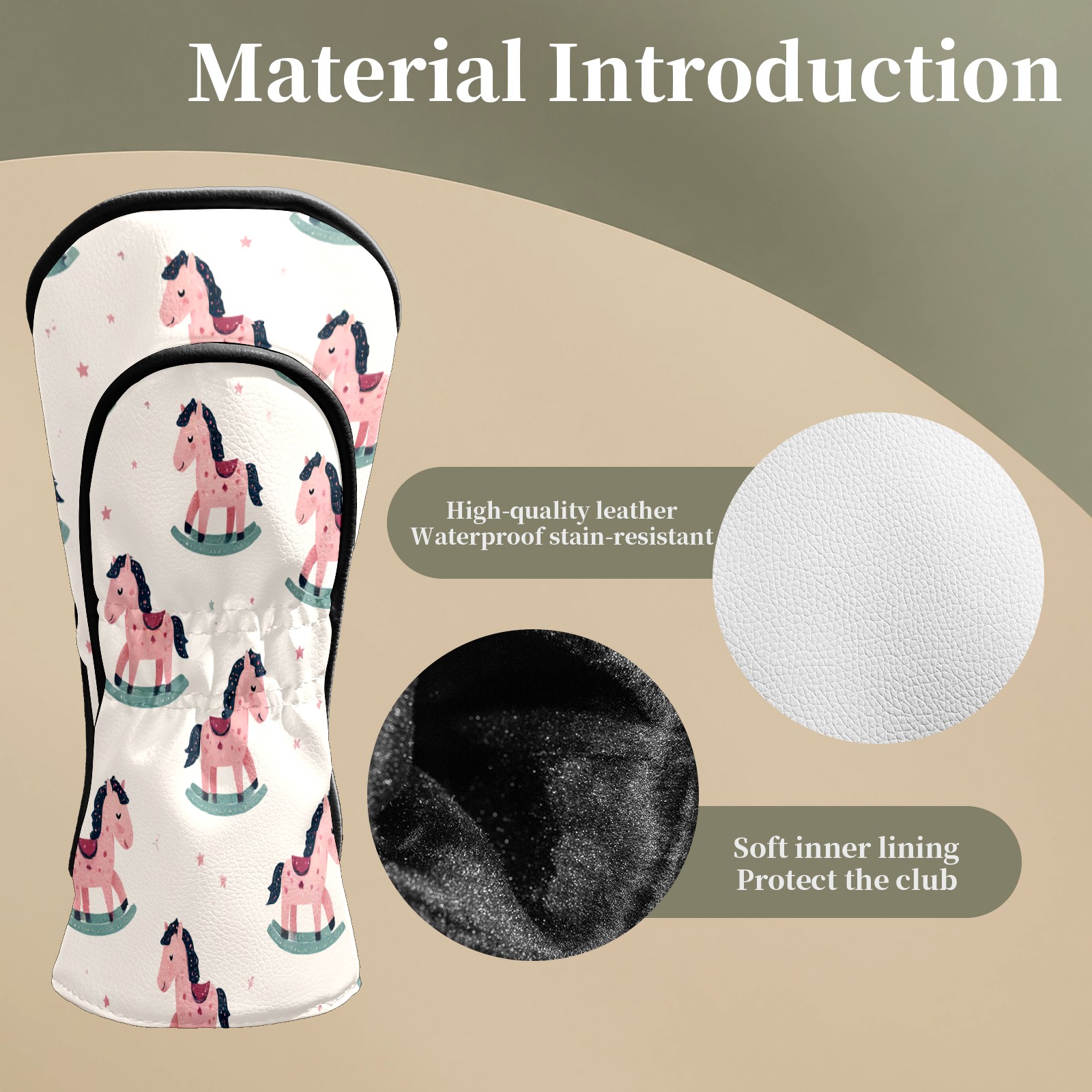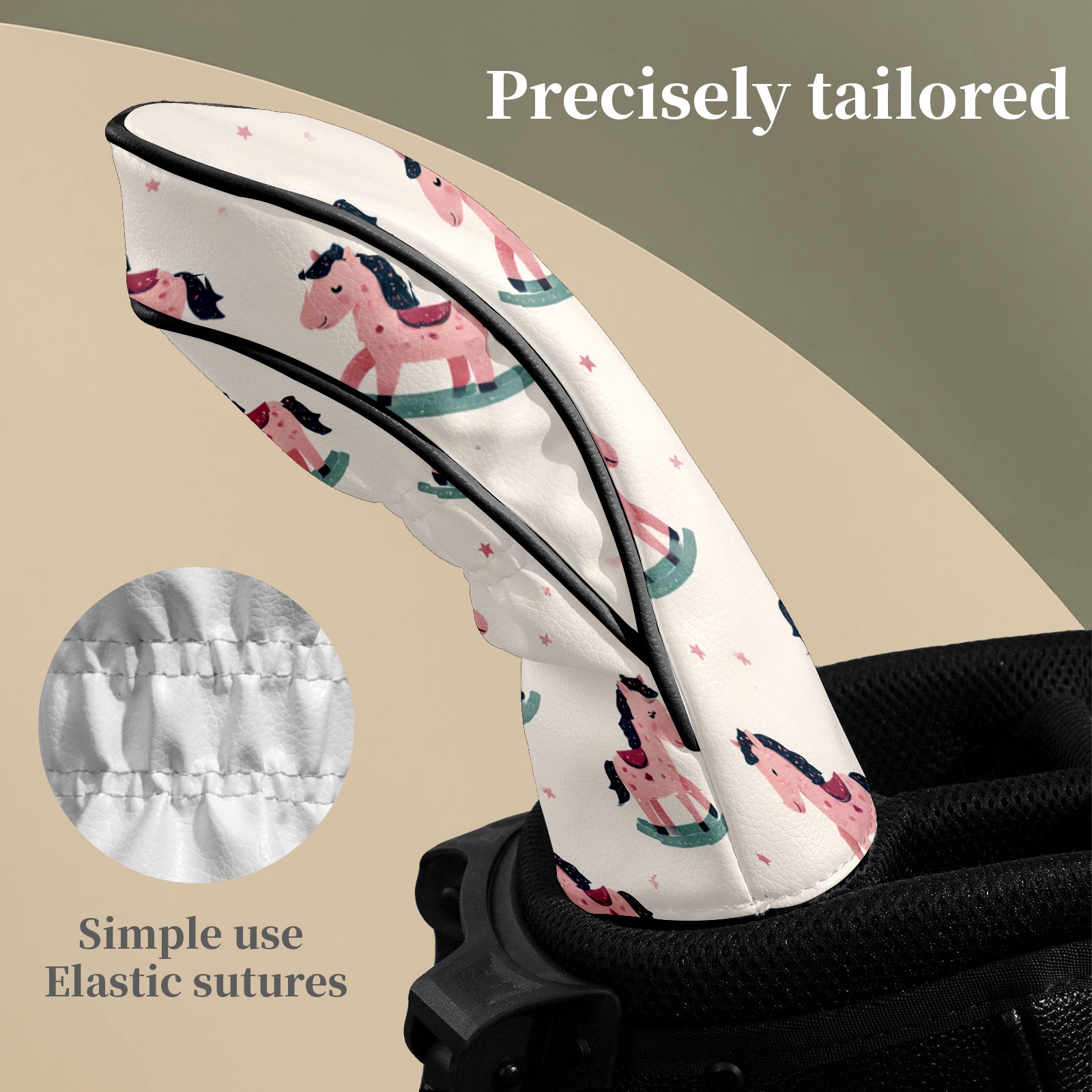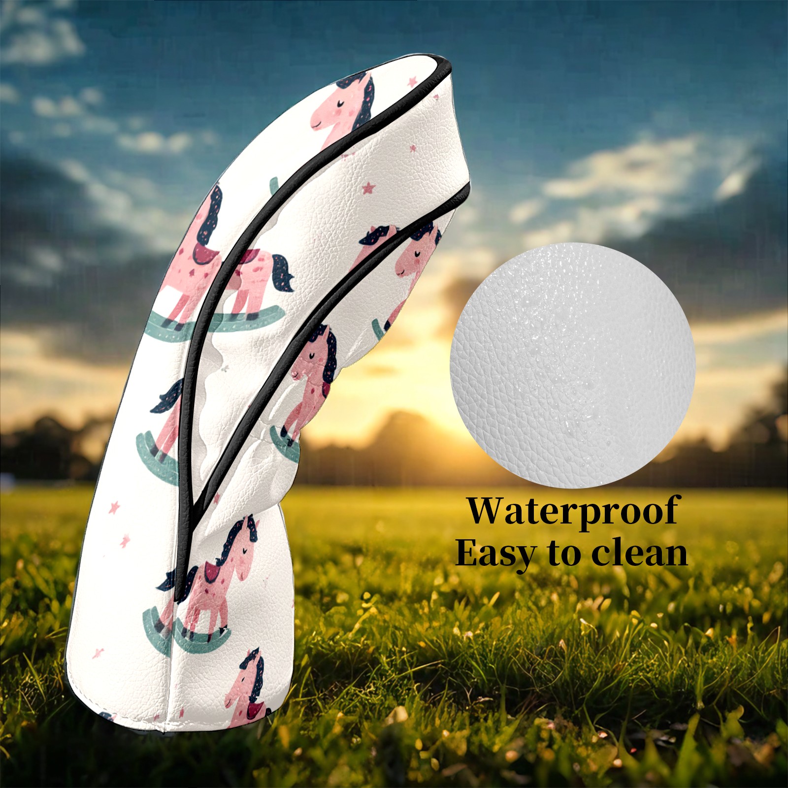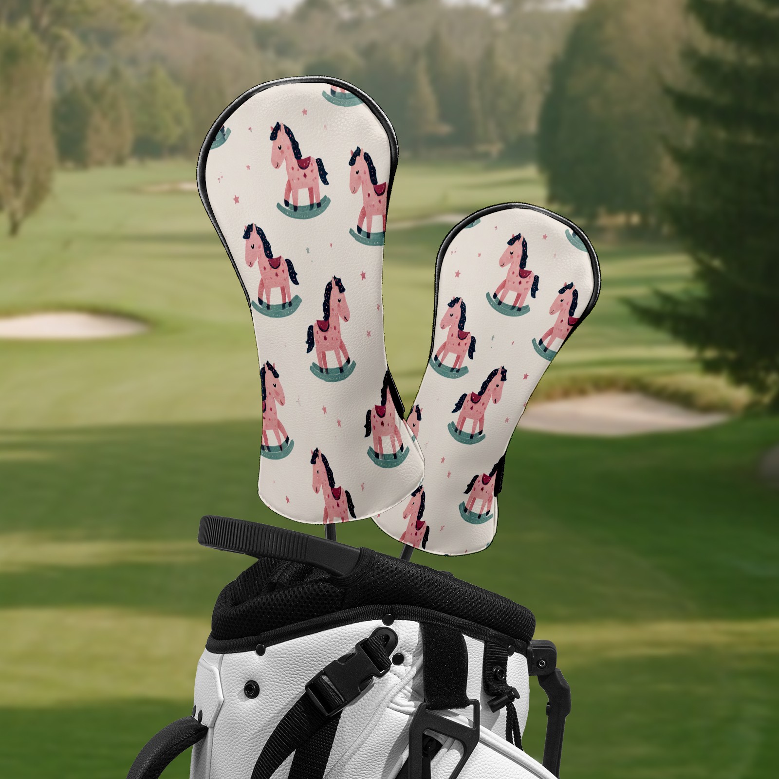 Counullo Golf Club Headcovers - Sweet Carousel Pink Premium PU Leather with Plush Lining for Driver & Fairway Woods, No-Slip Fit for All Clubs, Novelty Gift for Men & Women