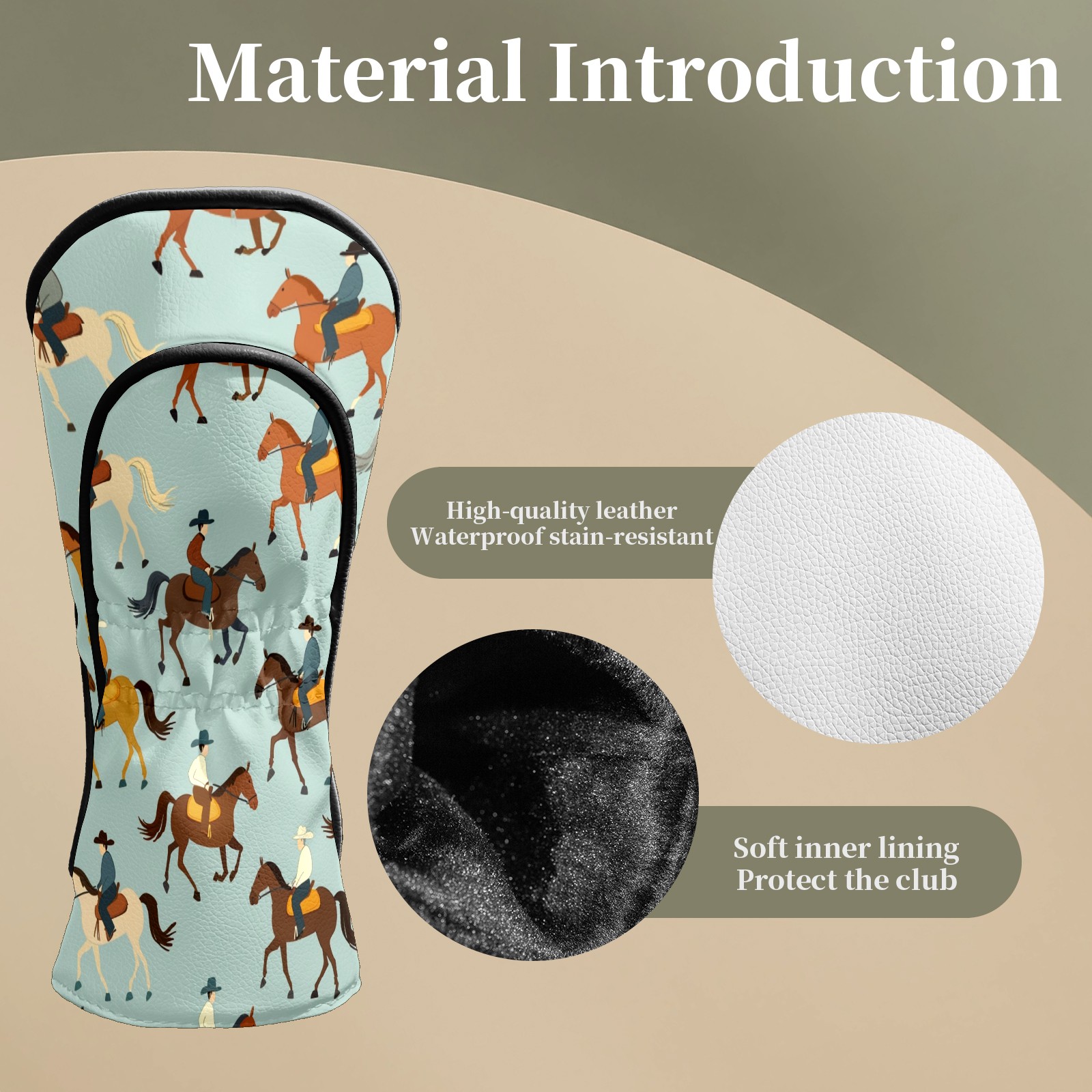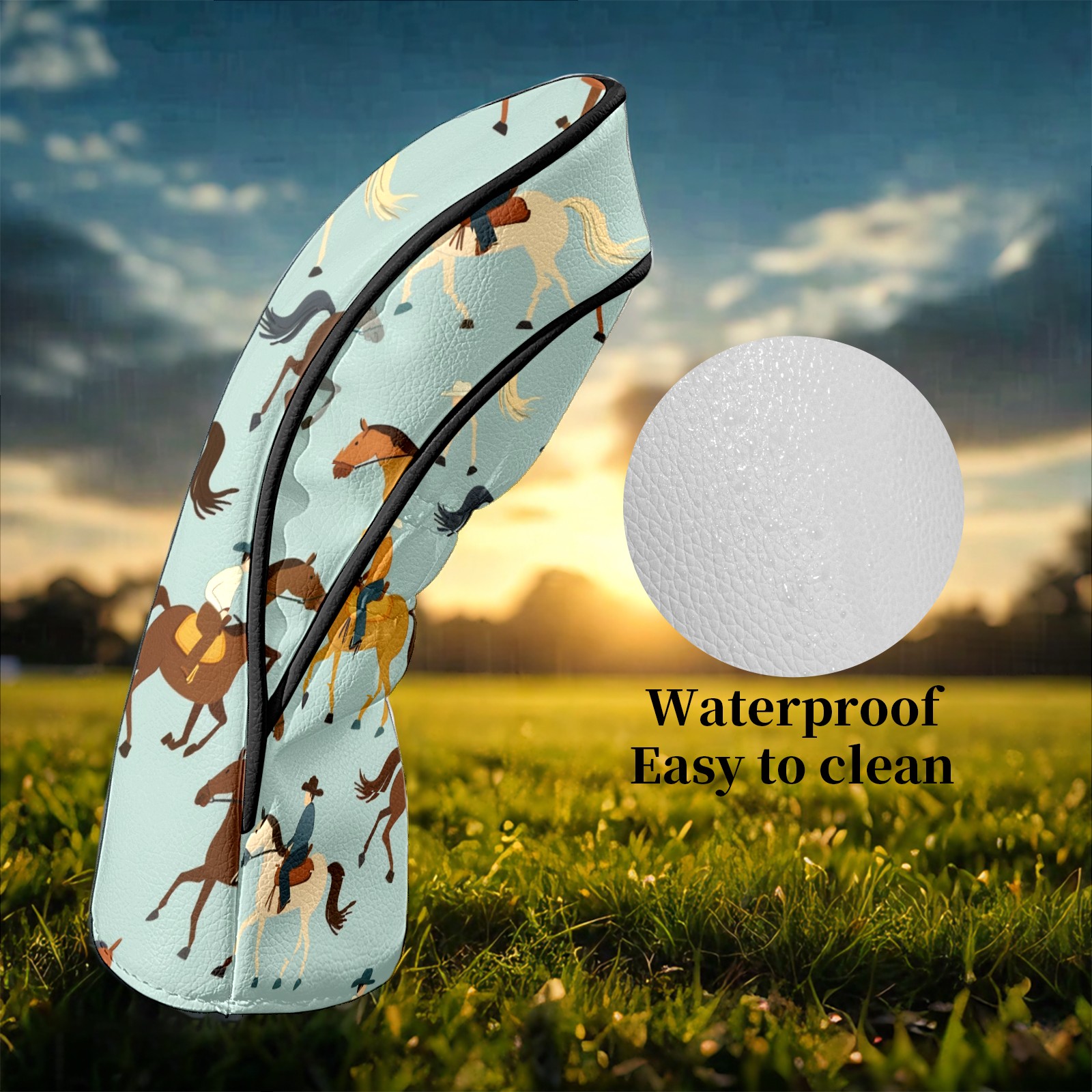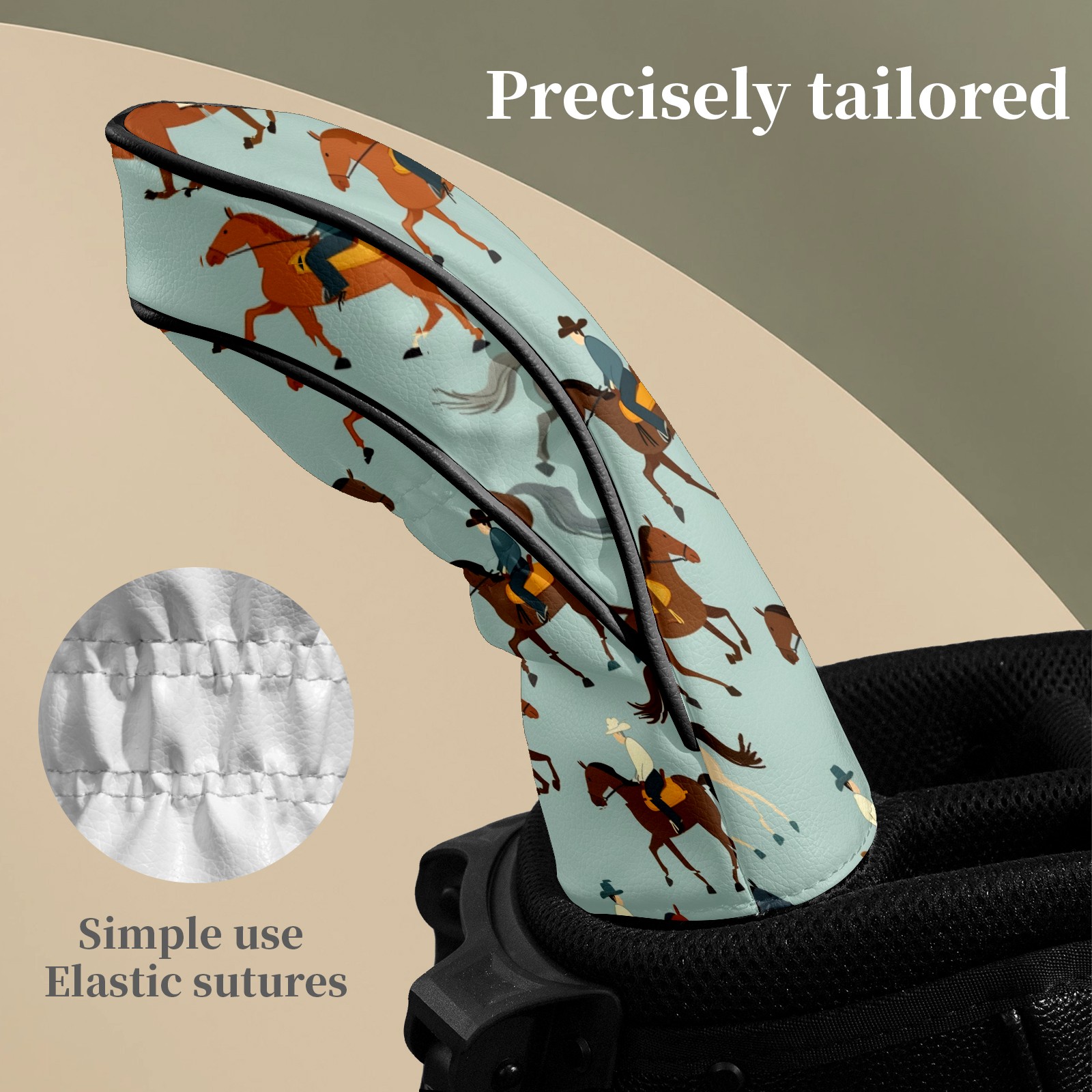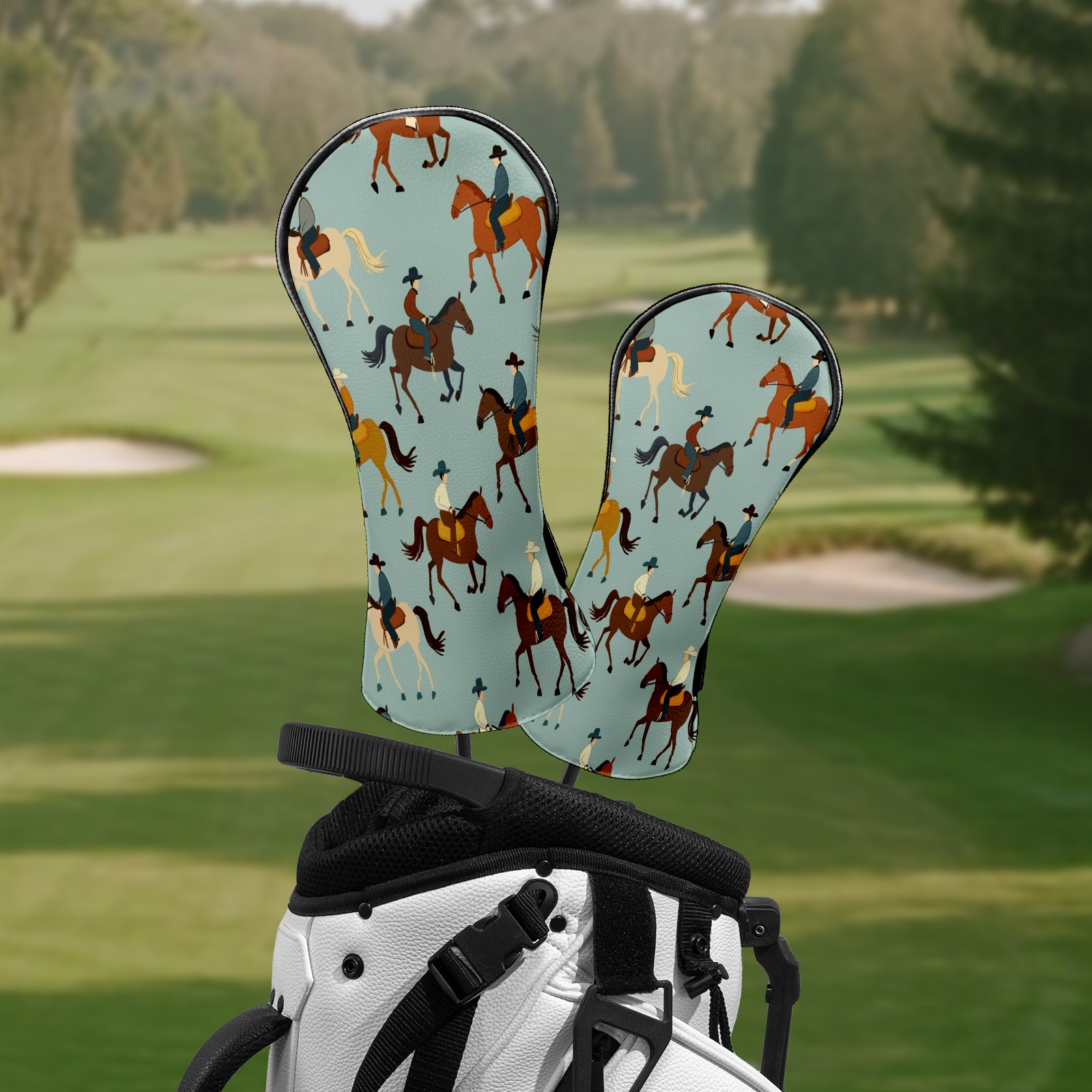 Counullo Golf Club Headcovers - Horses Gray Premium PU Leather with Plush Lining for Driver & Fairway Woods, No-Slip Fit for All Clubs, Novelty Gift for Men & Women