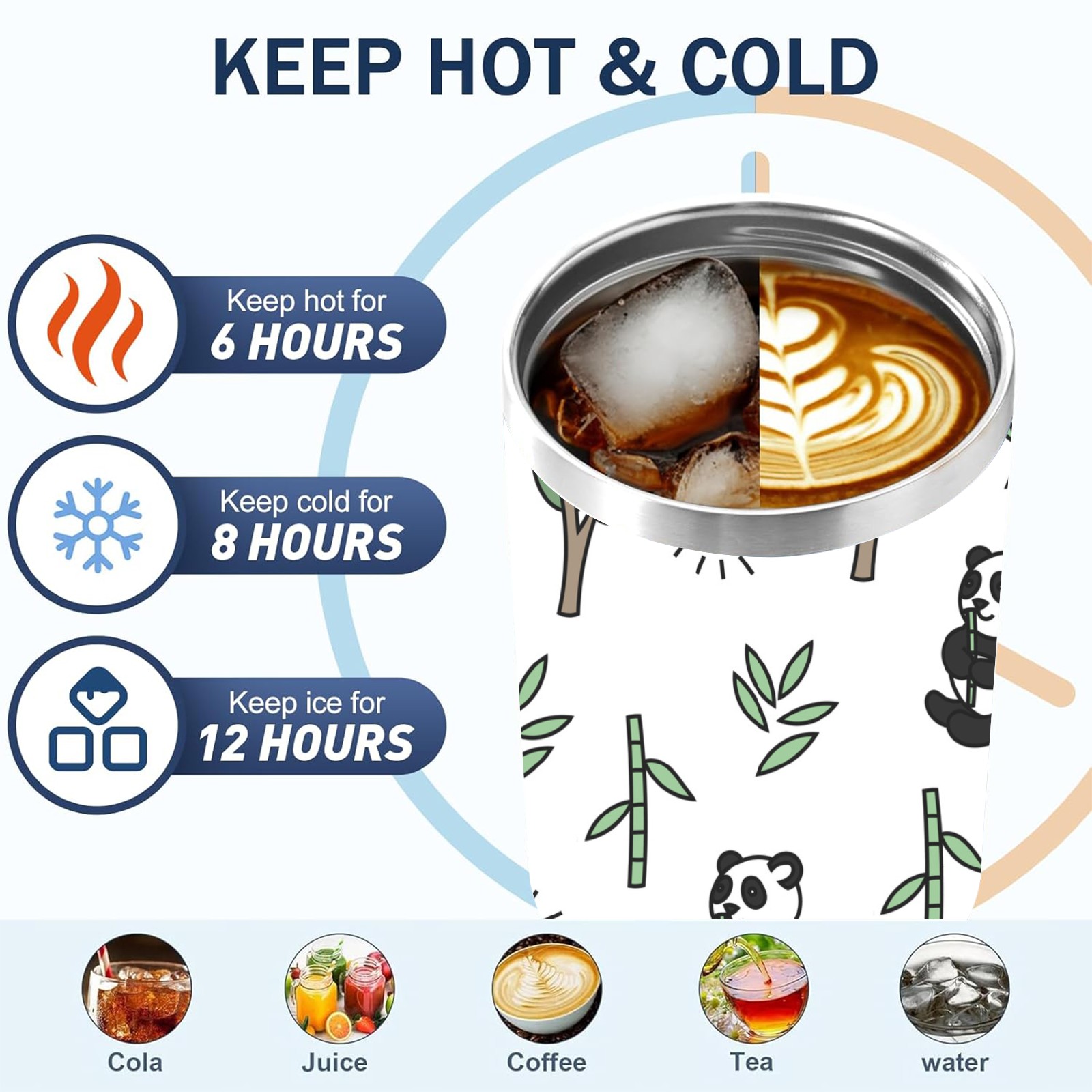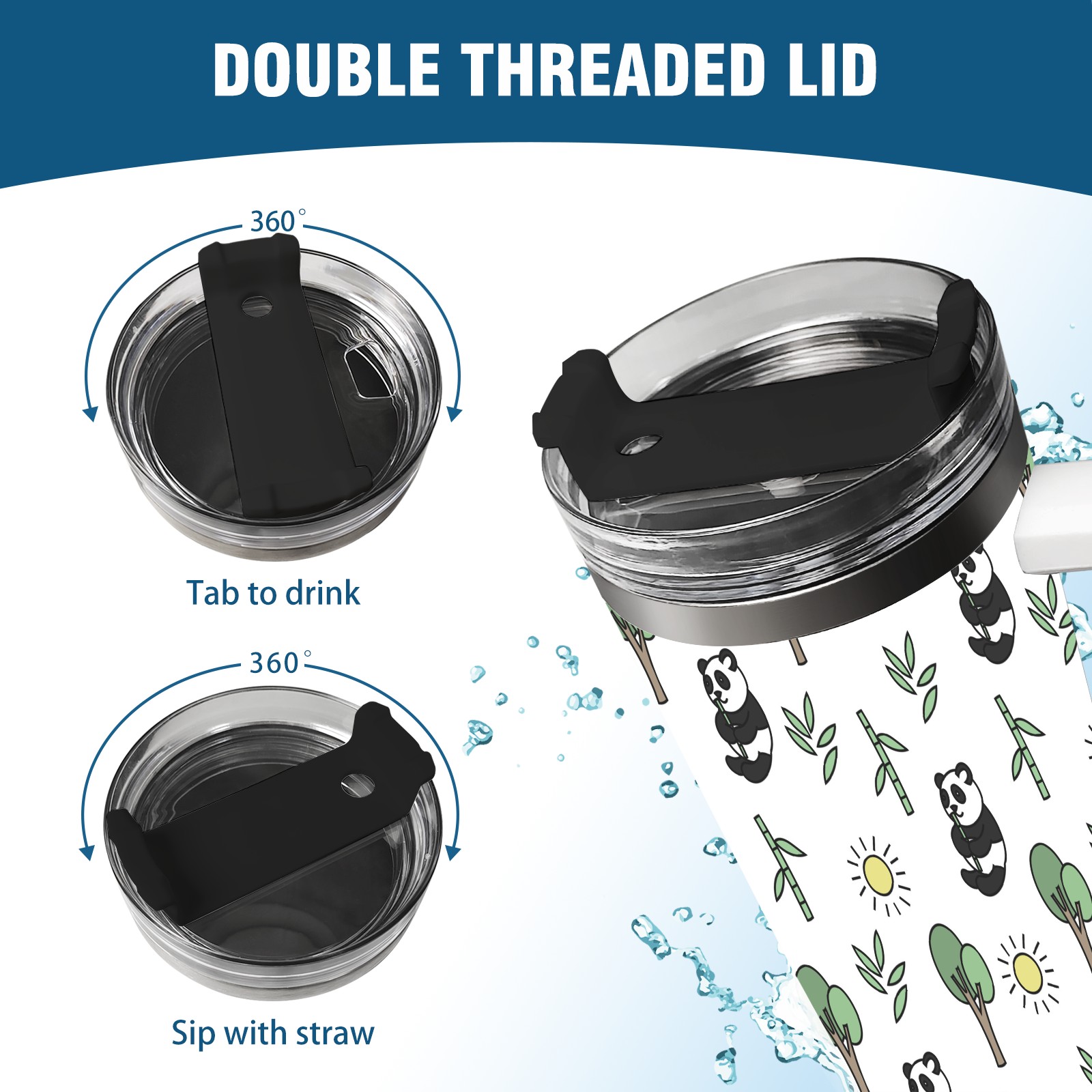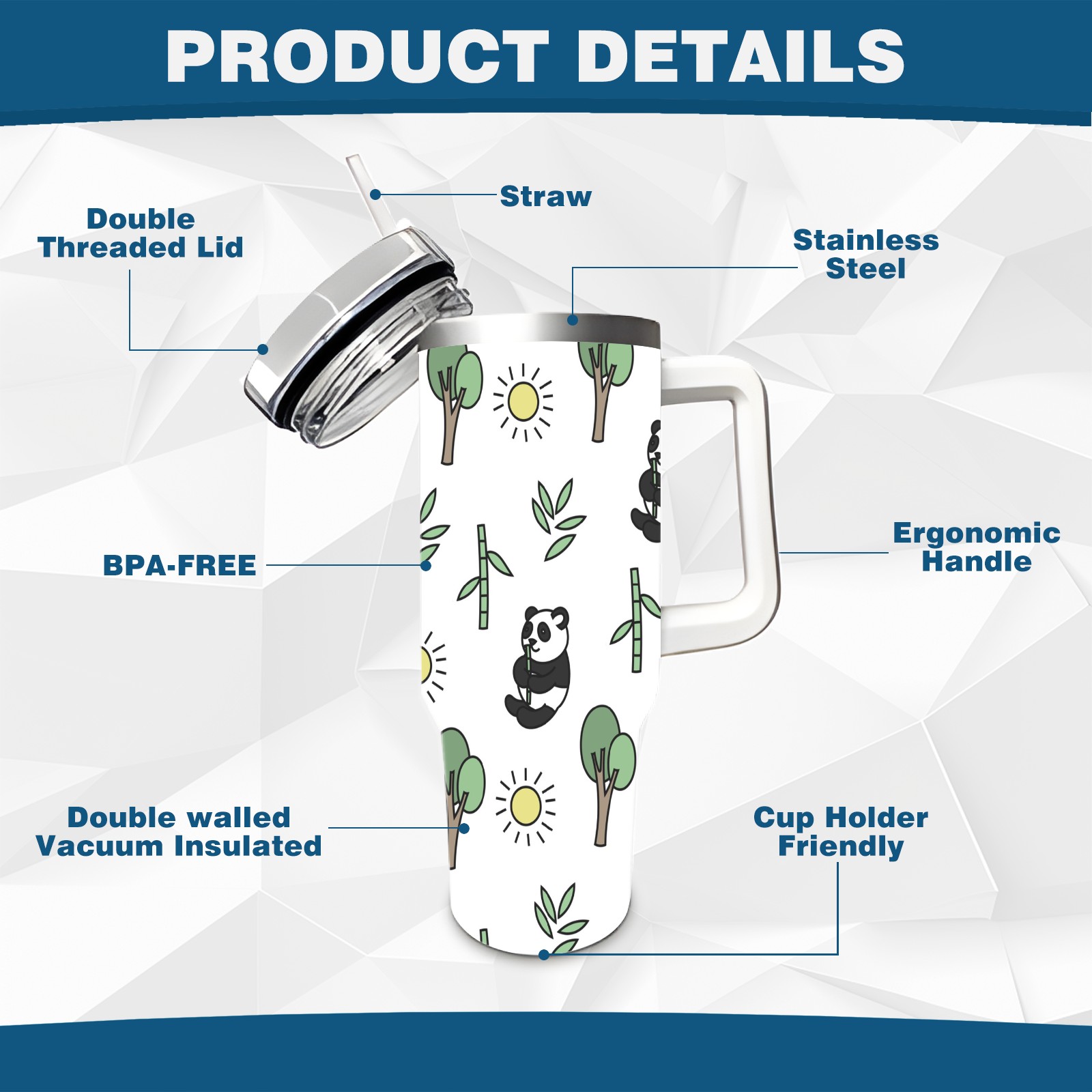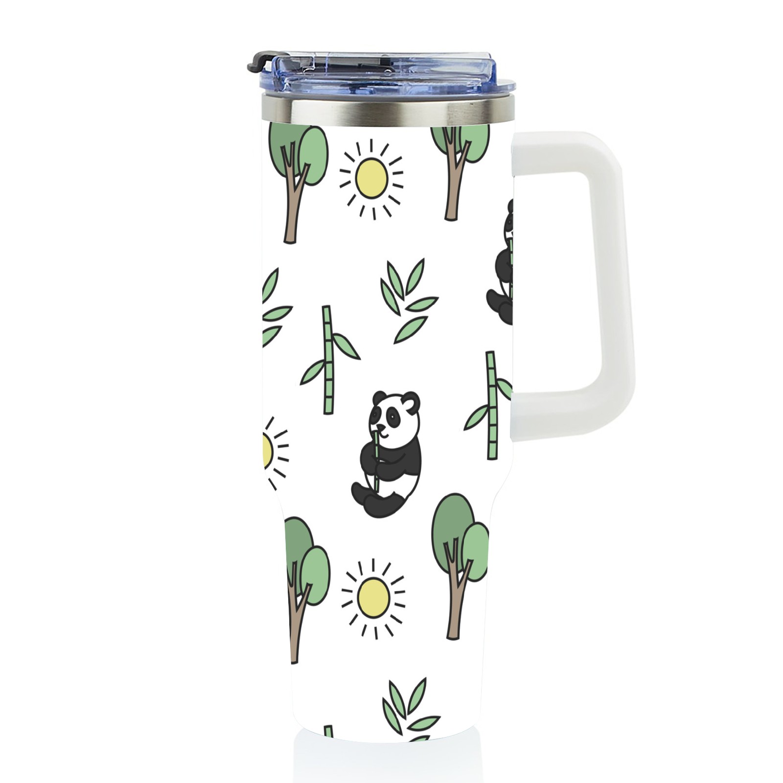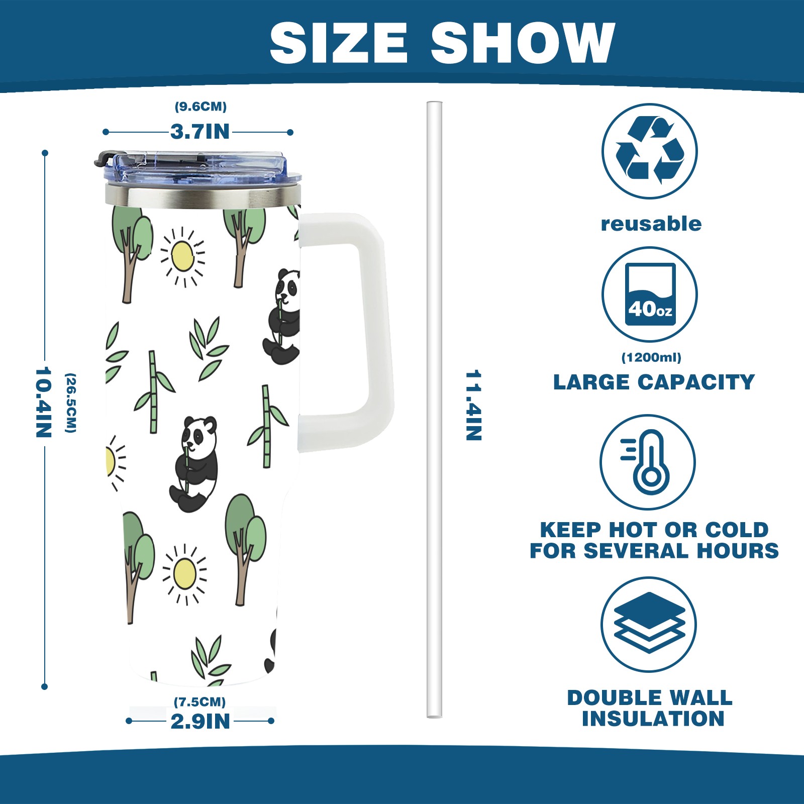 40oz Cute Panda thermos with lid and straw, leak-proof stainless steel, with handle, spill-proof bottle, convenient for travel(pink)