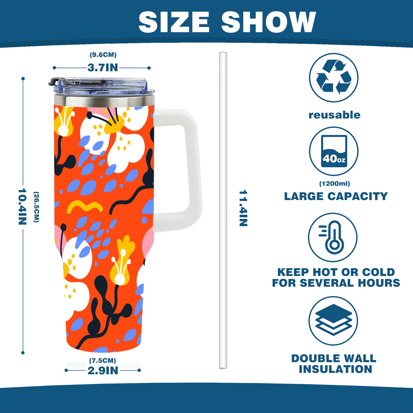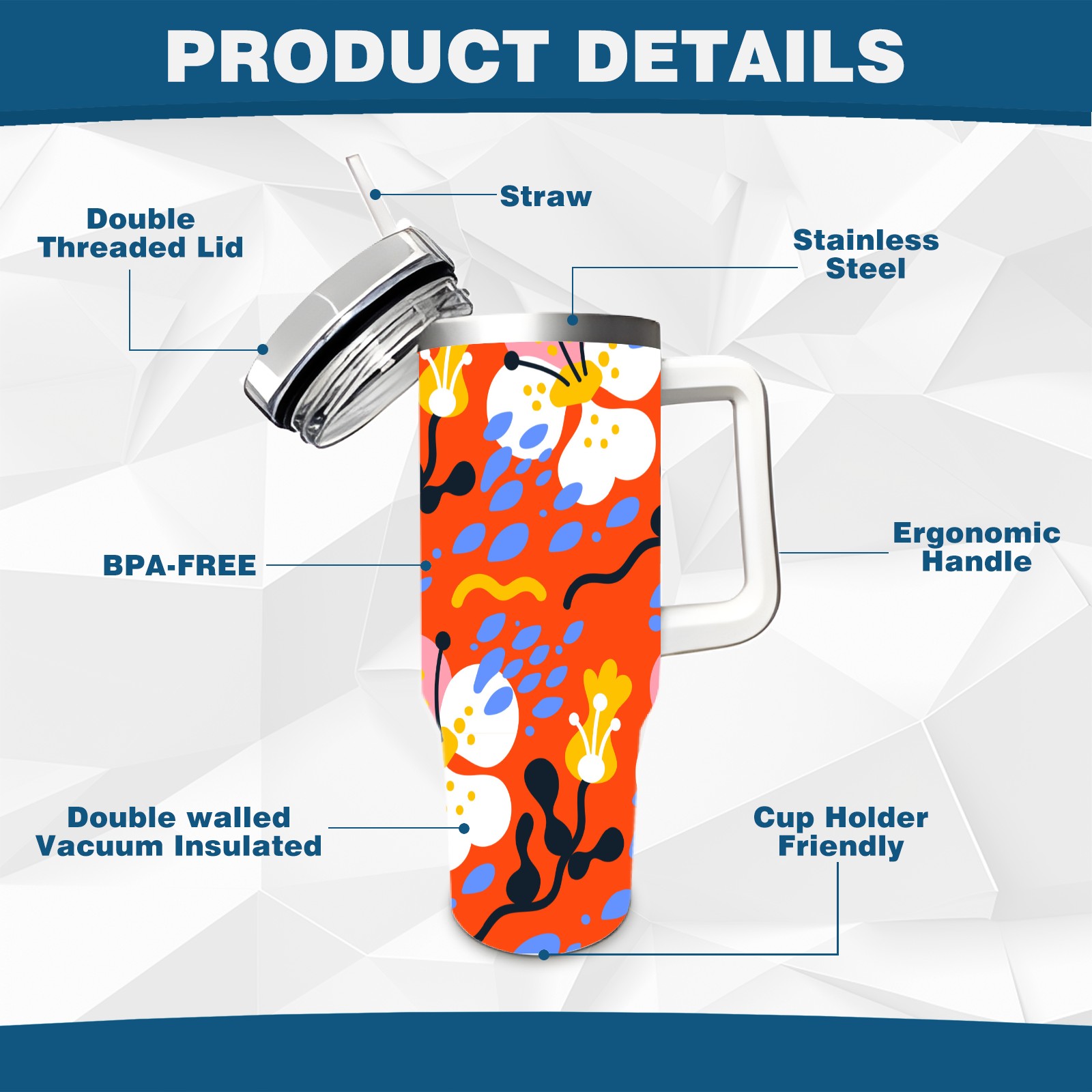 • <p>This multi-functional insulated water bottle features a simple and practical design, suitable for various daily scenarios. The ergonomic handle allows for easy one-handed drinking, and the detachable handle can be adjusted or removed as needed, making it convenient for commuting, exercising, or carrying to meetings. Made of high-quality stainless steel, it is BPA-free and features double-walled vacuum insulation technology that keeps drinks cold for 8 hours and hot for 6 hours, ensuring you can enjoy your beverage at the perfect temperature anytime, anywhere. The 40-ounce Christmas edition comes with a sliding lid, silicone straw, and a non-slip design. Accessories are dishwasher safe, and the narrow bottom and wide mouth design perfectly fits car cup holders. The exclusive flip-top straw lid is environmentally friendly and durable, with a one-touch leak-proof closure and two drinking modes: sip and gulp. A dust cover provides effective protection. This bottle is suitable for travel, office work, sports, camping, and other occasions, making it a thoughtful gift for friends and family.</p>