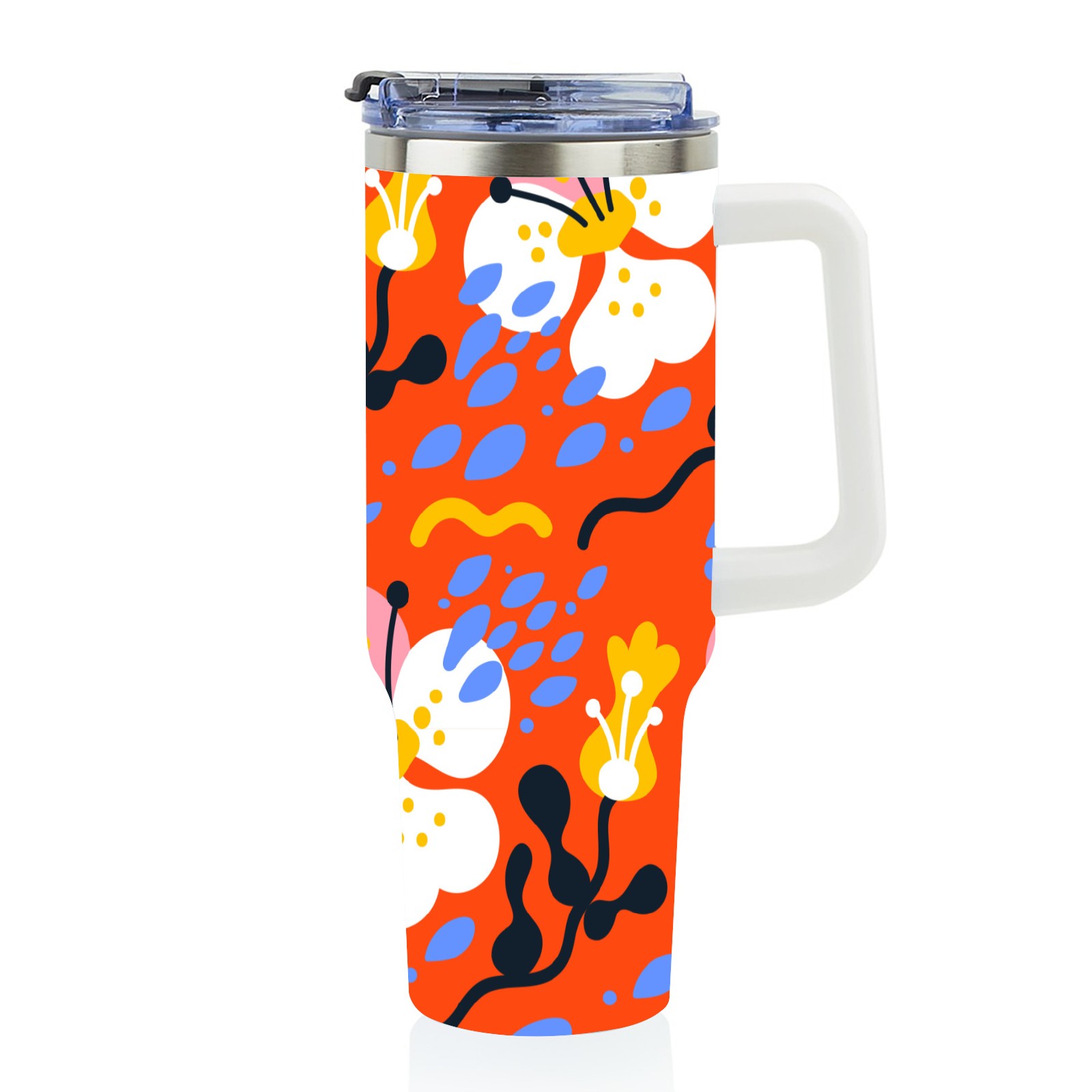 40oz Phalaenopsis thermos with lid and straw, leak-proof stainless steel, with handle, spill-proof bottle, convenient for travel(pink)
