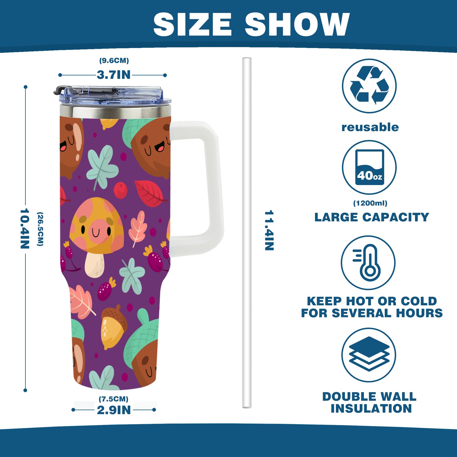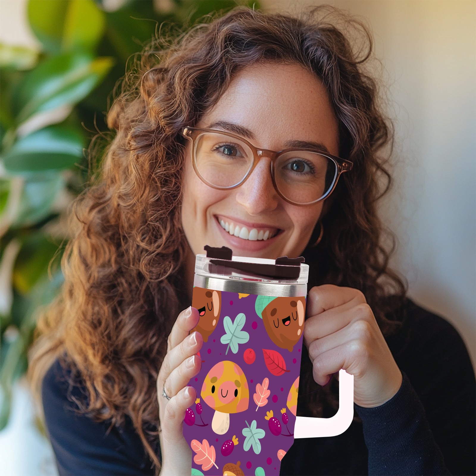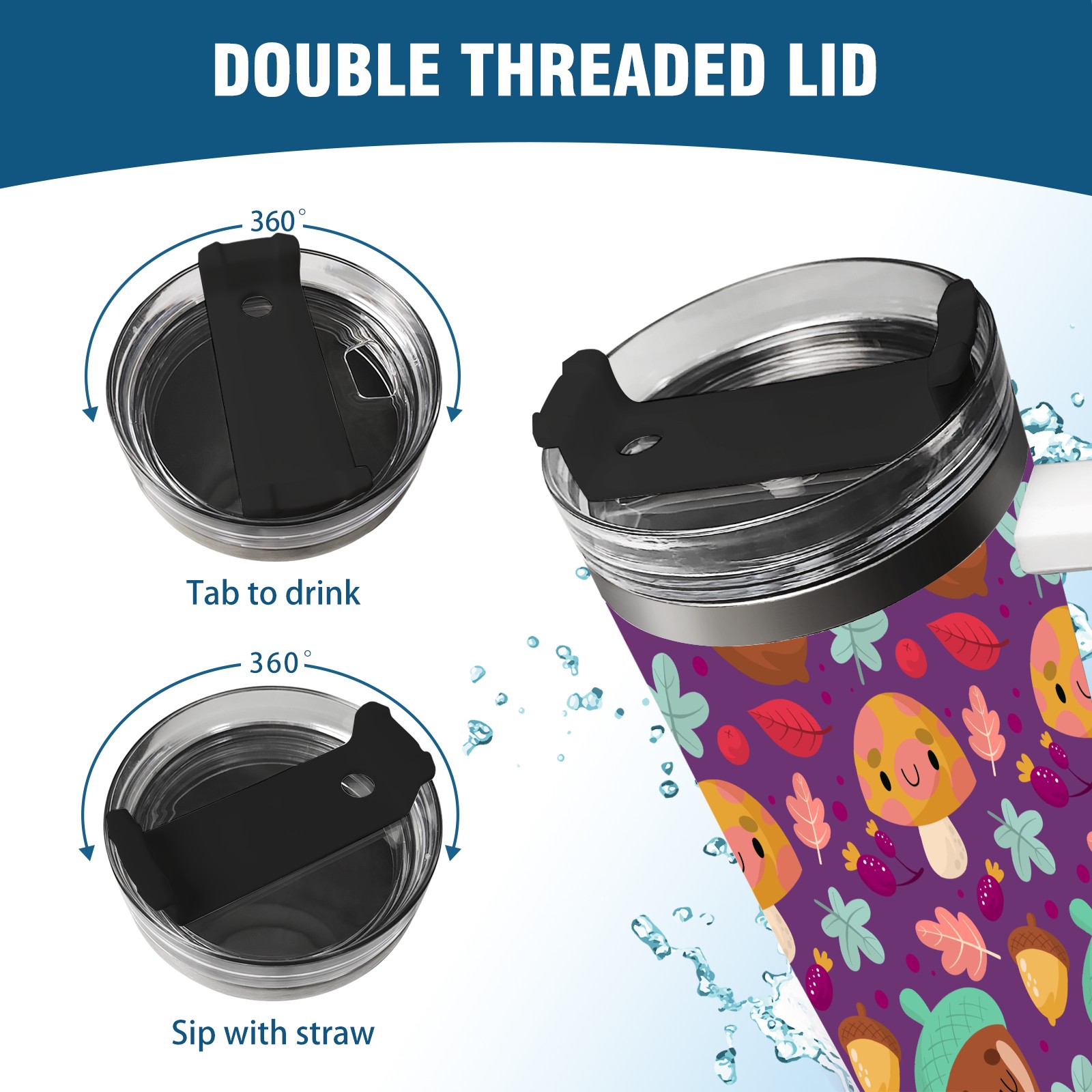 40oz Cute Mushroom thermos with lid and straw, leak-proof stainless steel, with handle, spill-proof bottle, convenient for travel(pink)