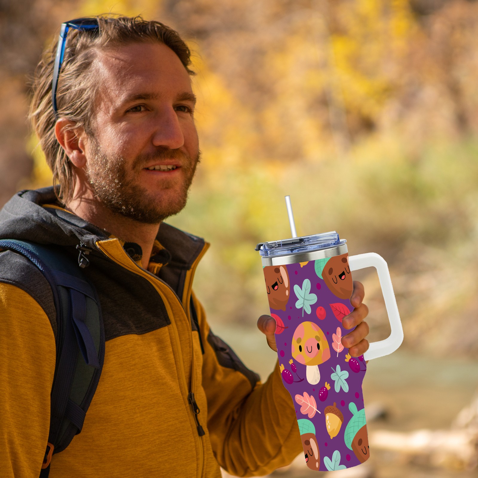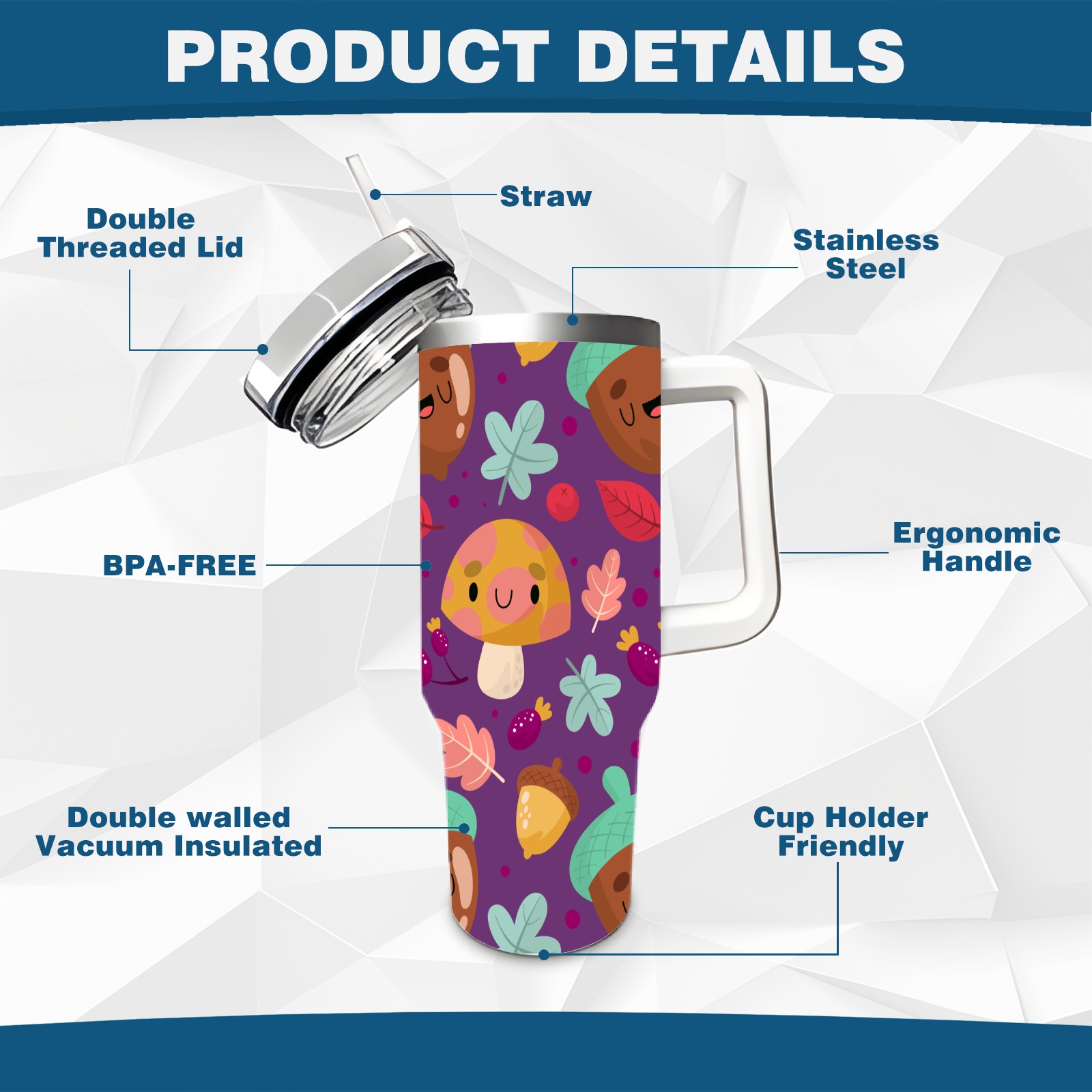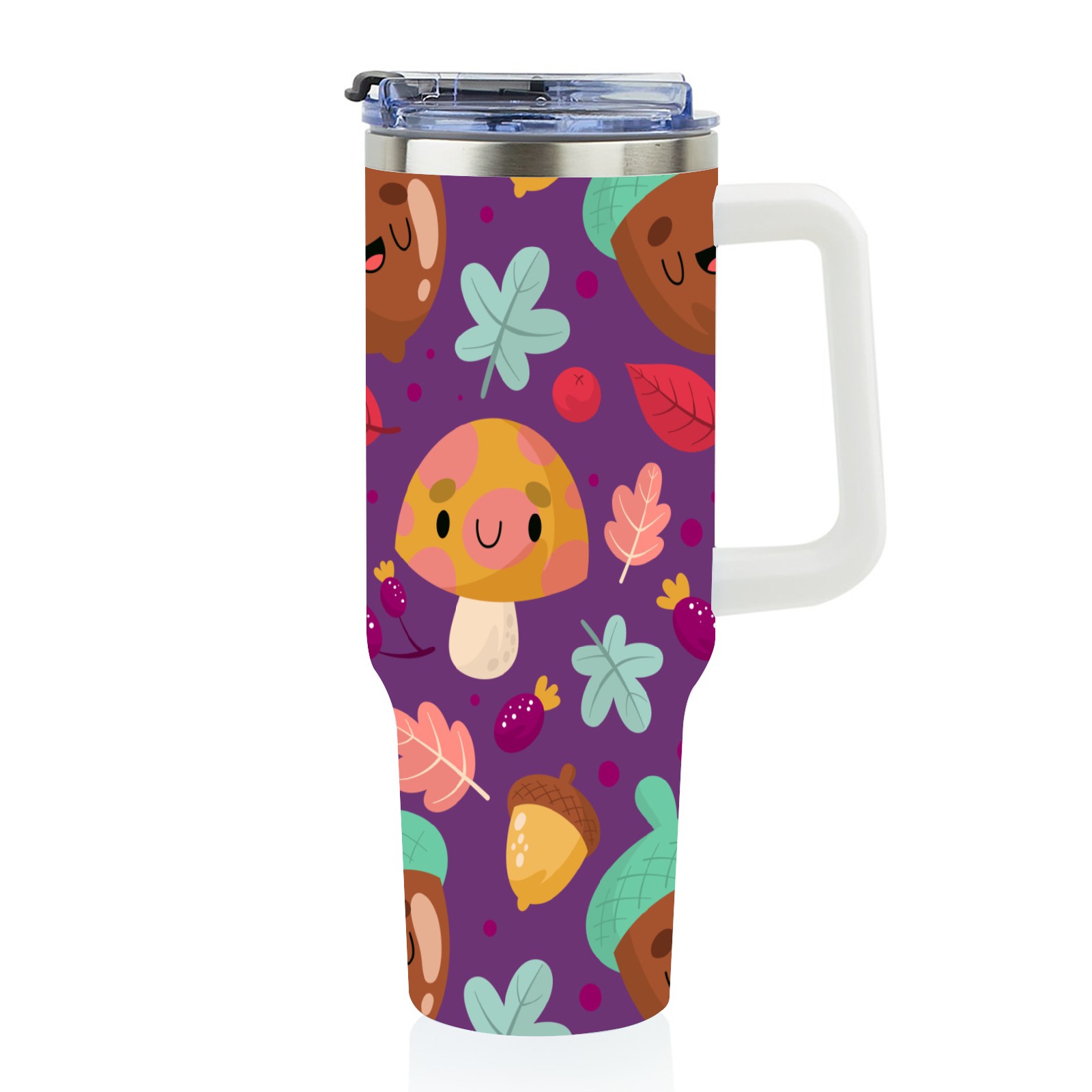 40oz Cute Mushroom thermos with lid and straw, leak-proof stainless steel, with handle, spill-proof bottle, convenient for travel(pink)