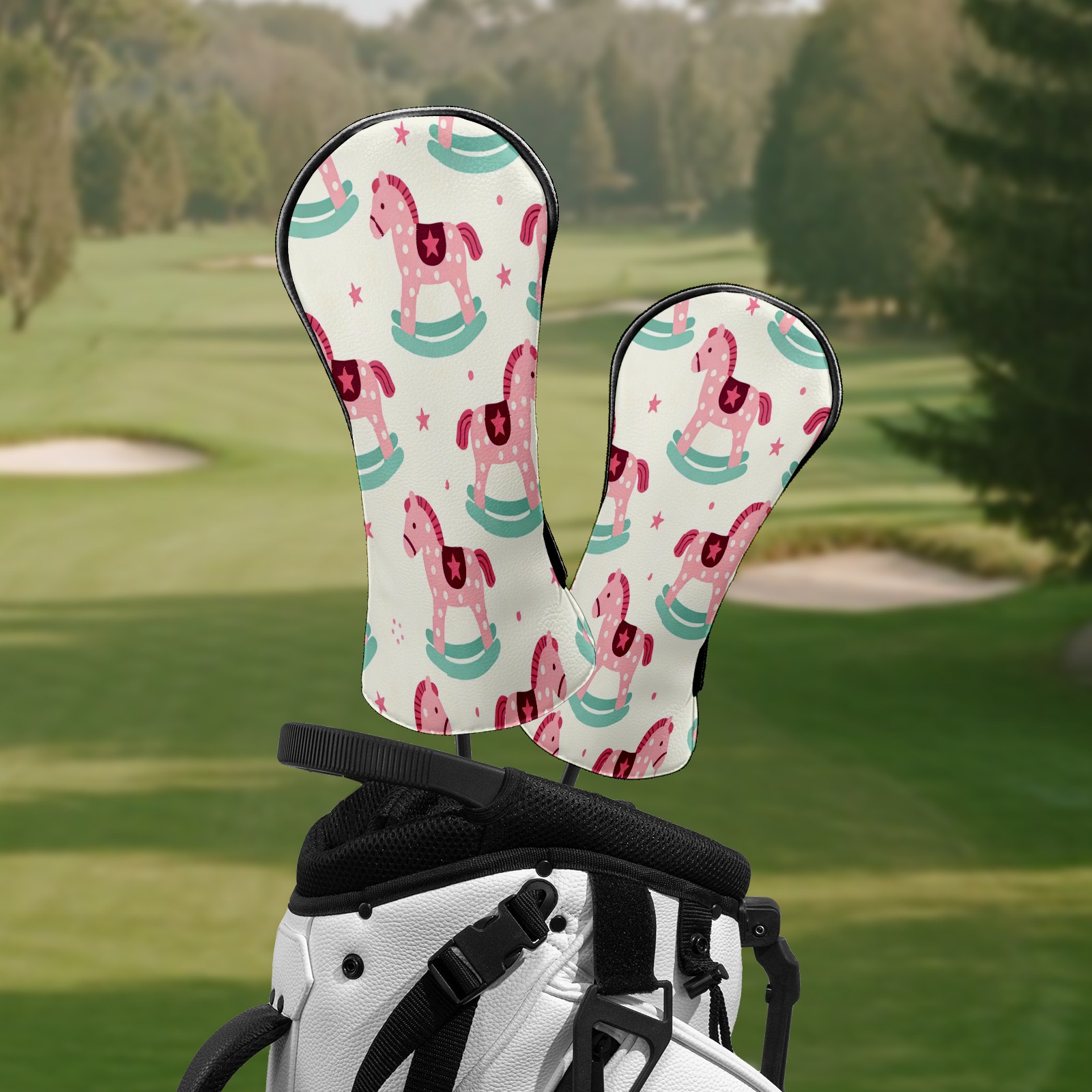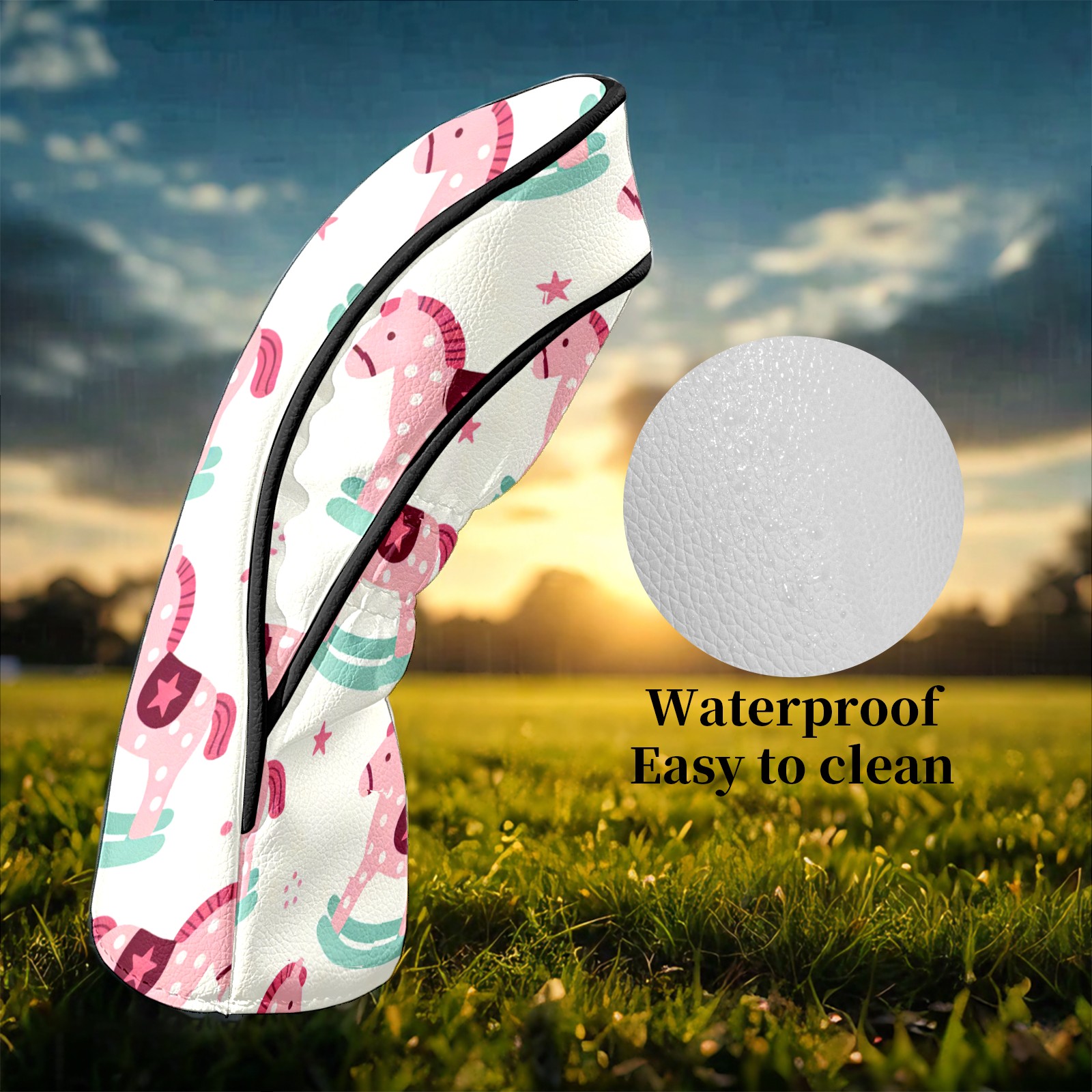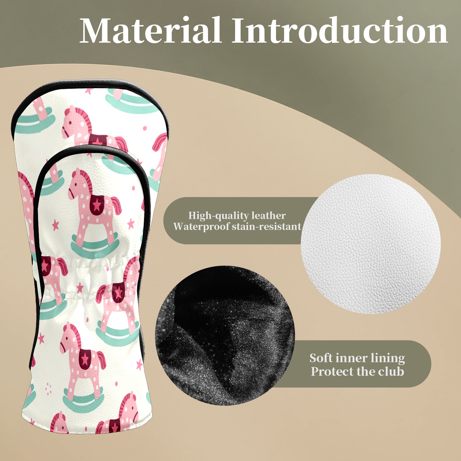 Counullo Golf Club Headcovers - Gentle Carousel Pink Premium PU Leather with Plush Lining for Driver & Fairway Woods, No-Slip Fit for All Clubs, Novelty Gift for Men & Women