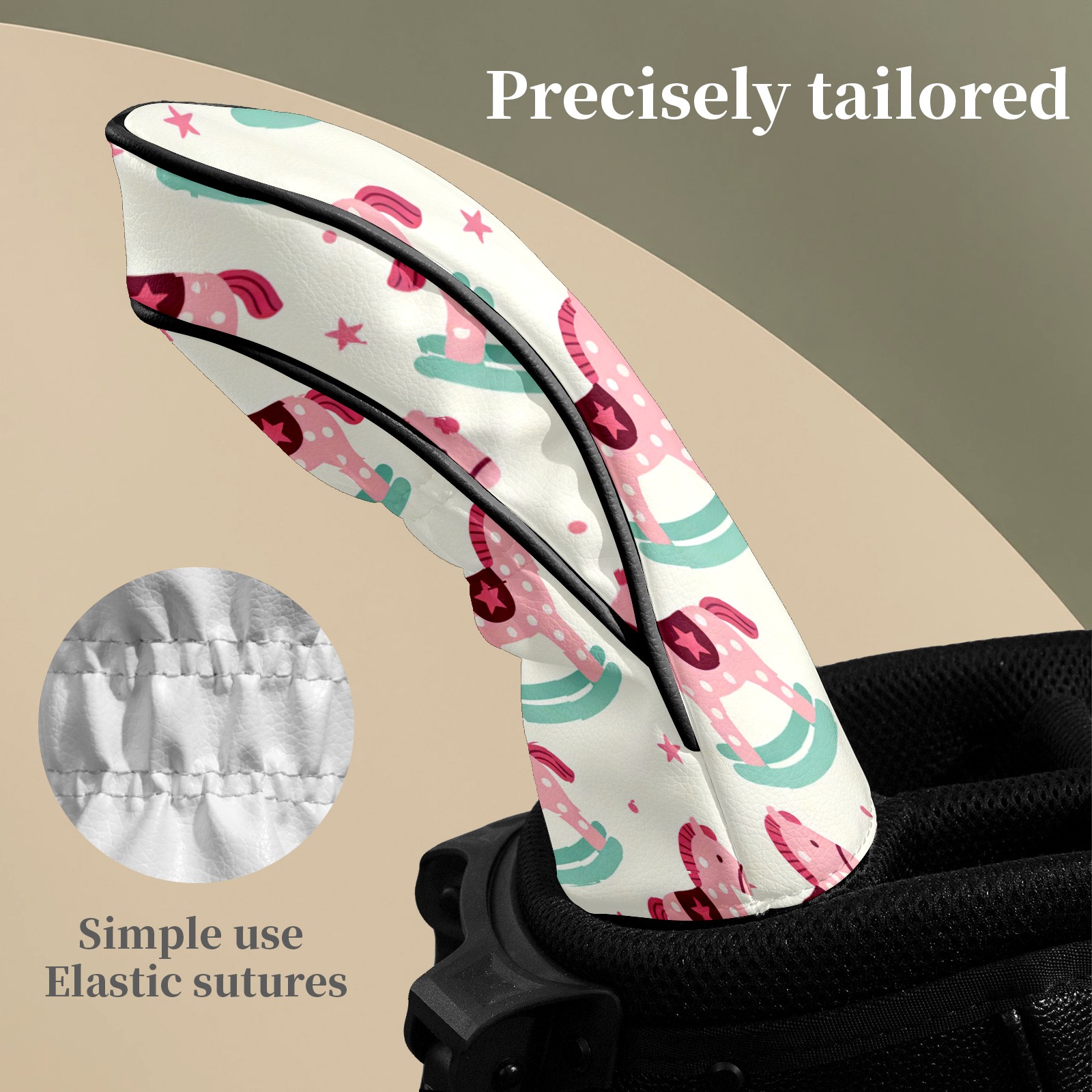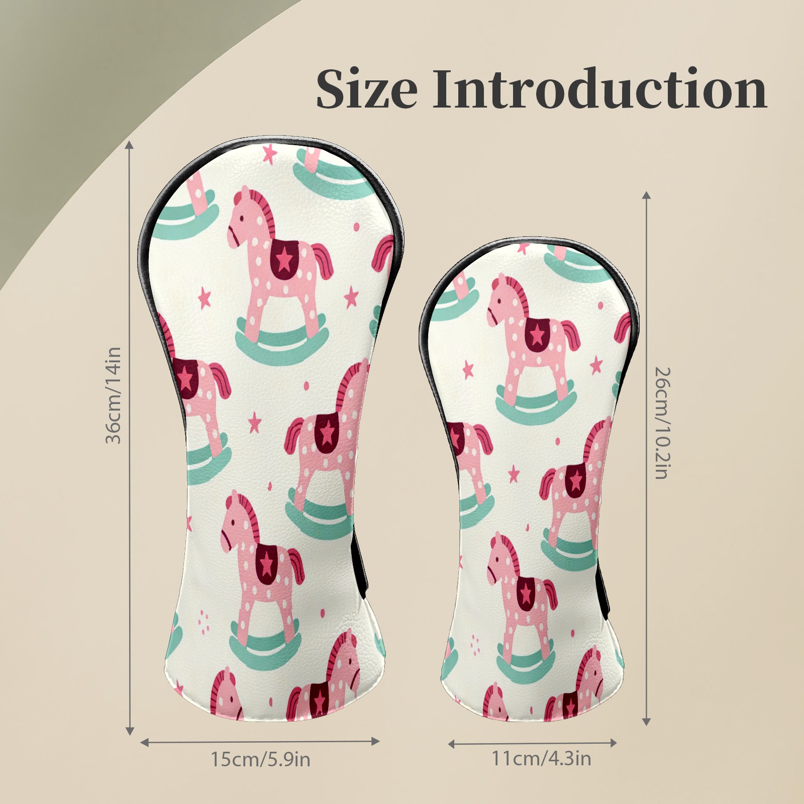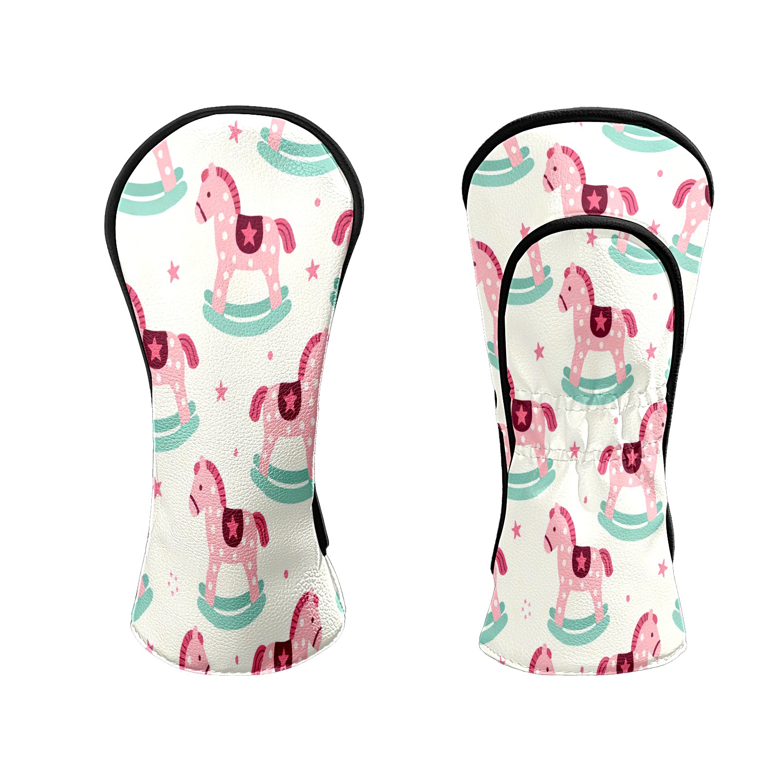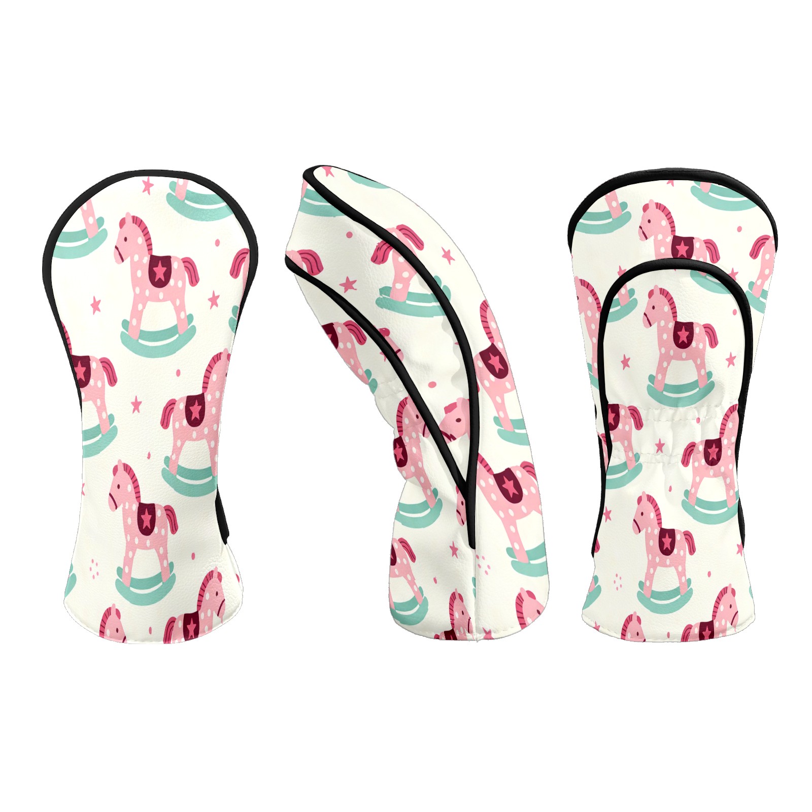 Counullo Golf Club Headcovers - Gentle Carousel Pink Premium PU Leather with Plush Lining for Driver & Fairway Woods, No-Slip Fit for All Clubs, Novelty Gift for Men & Women