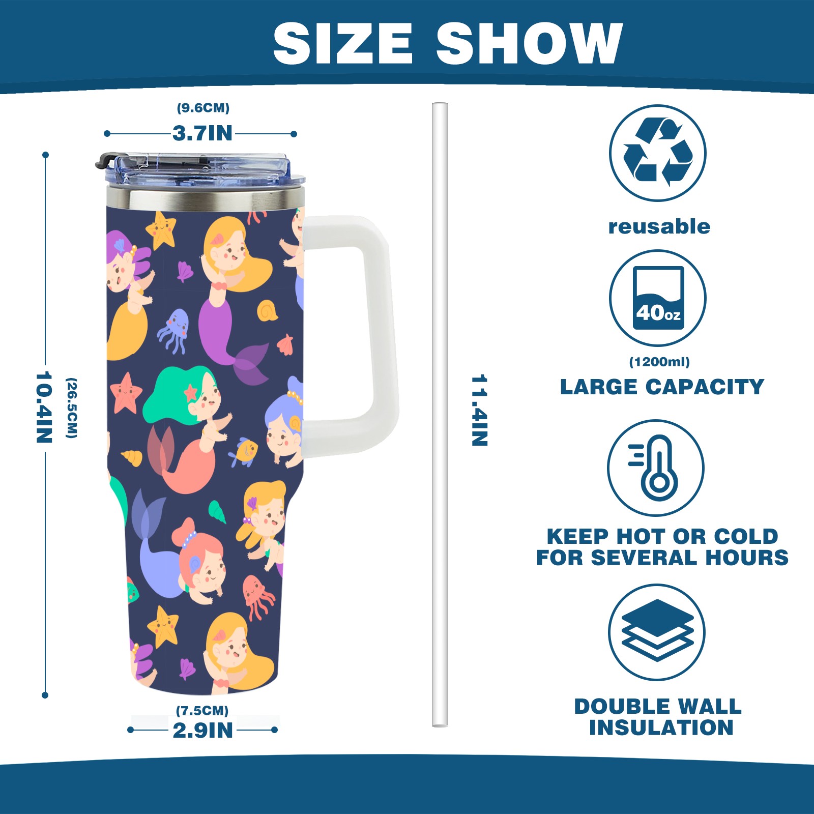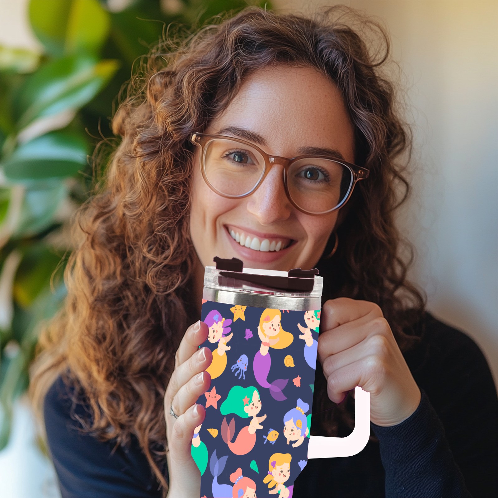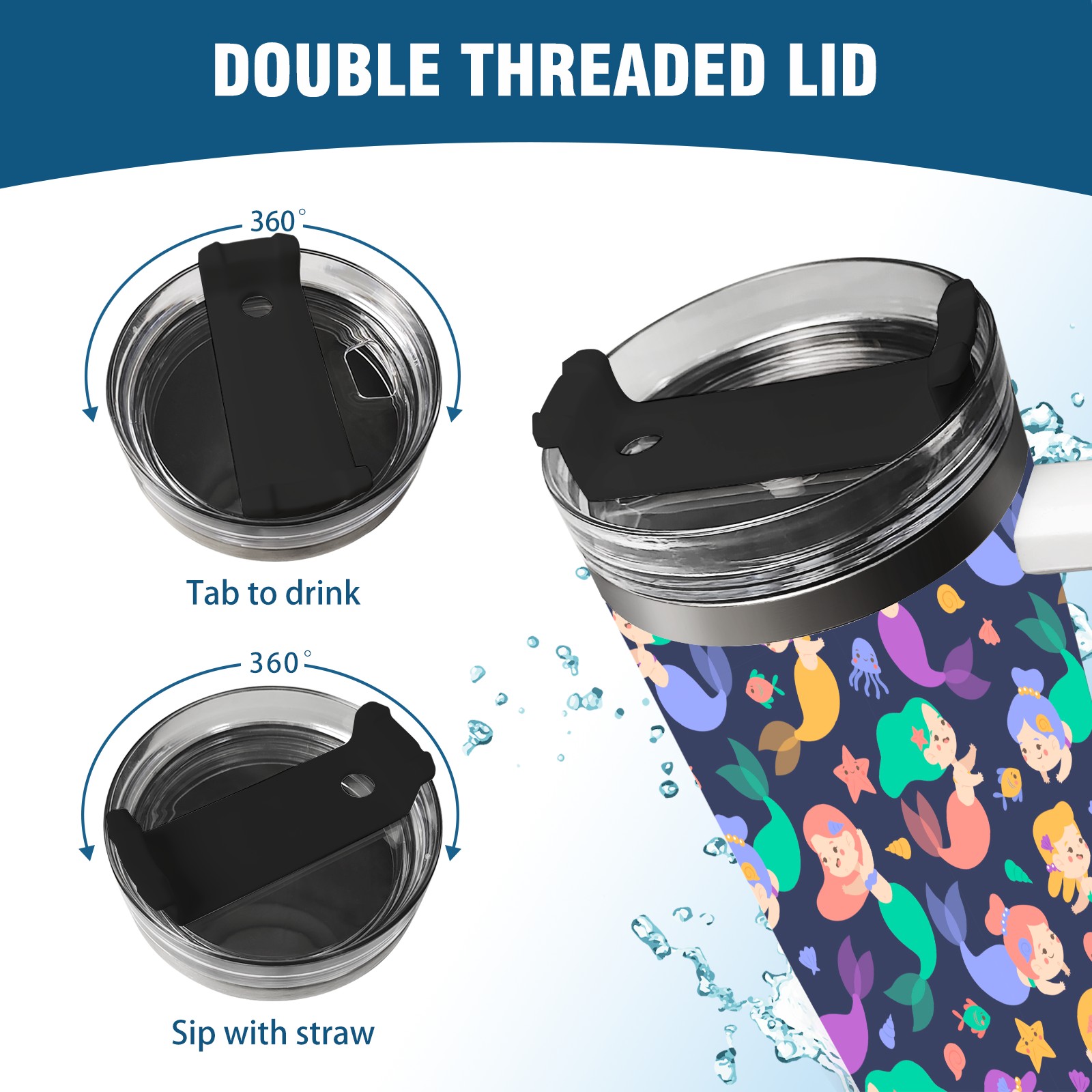 40oz Cute Mermaid thermos with lid and straw, leak-proof stainless steel, with handle, spill-proof bottle, convenient for travel(pink)