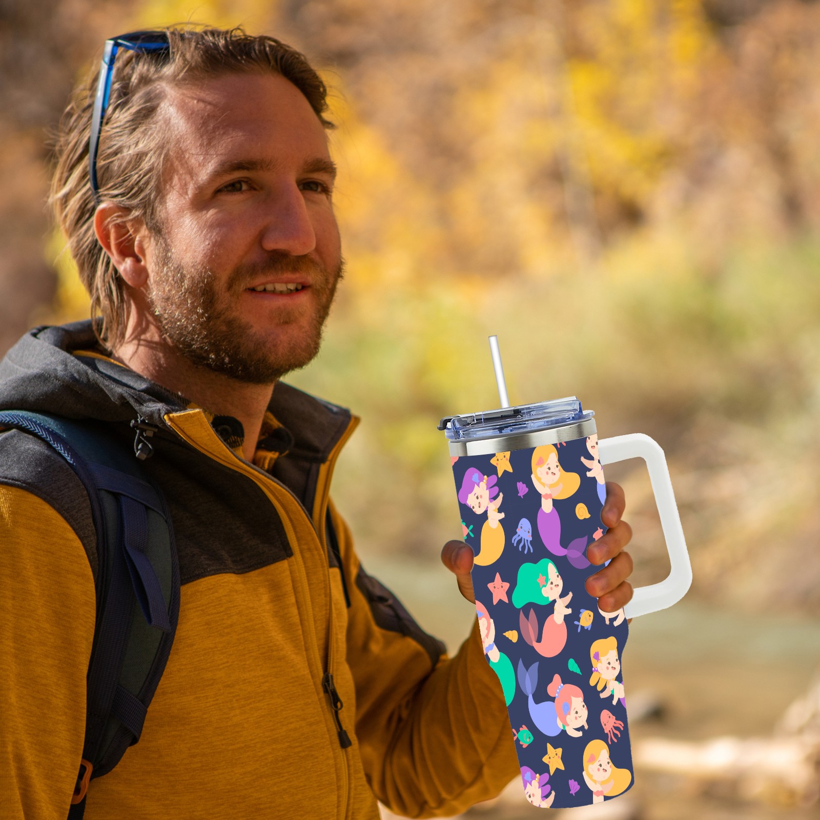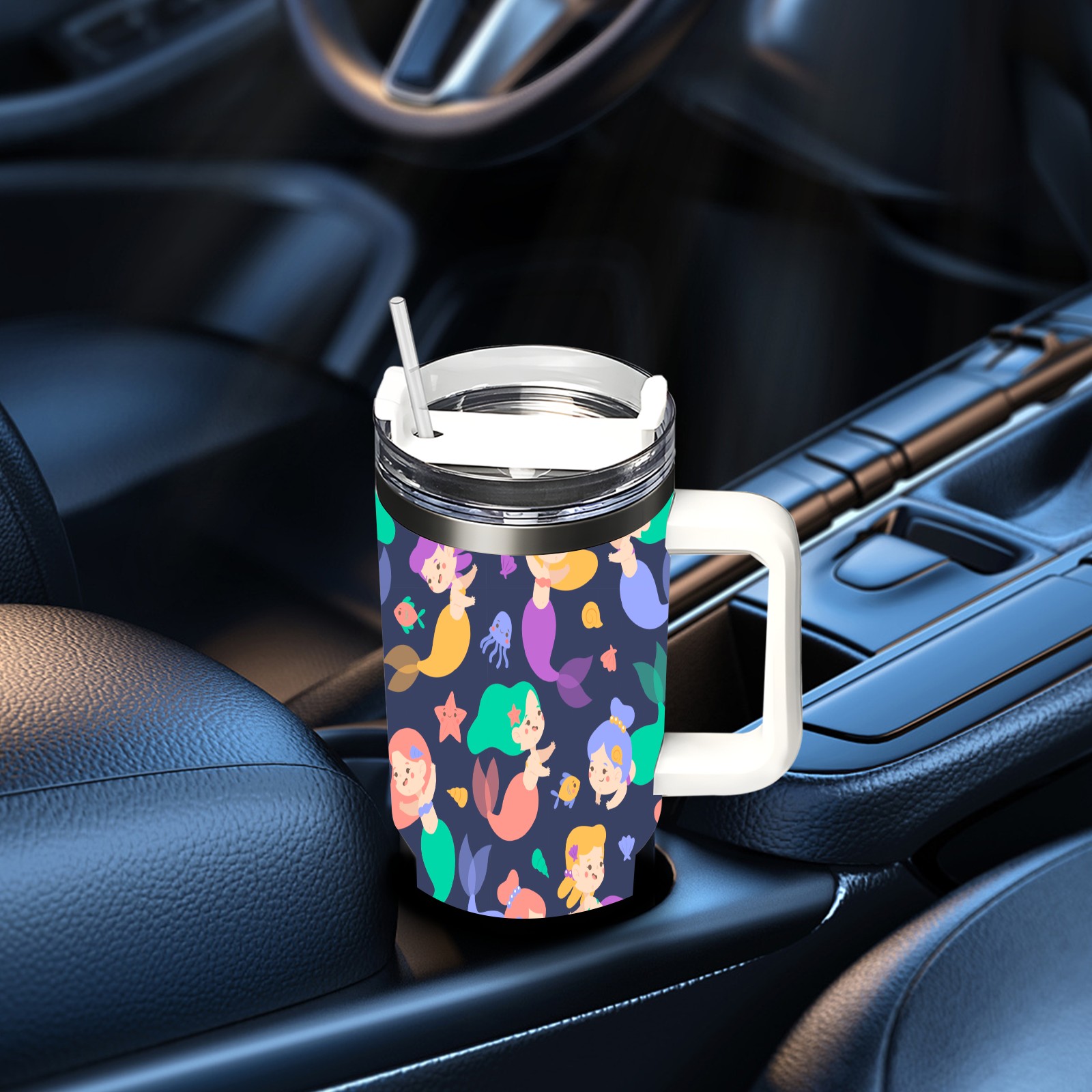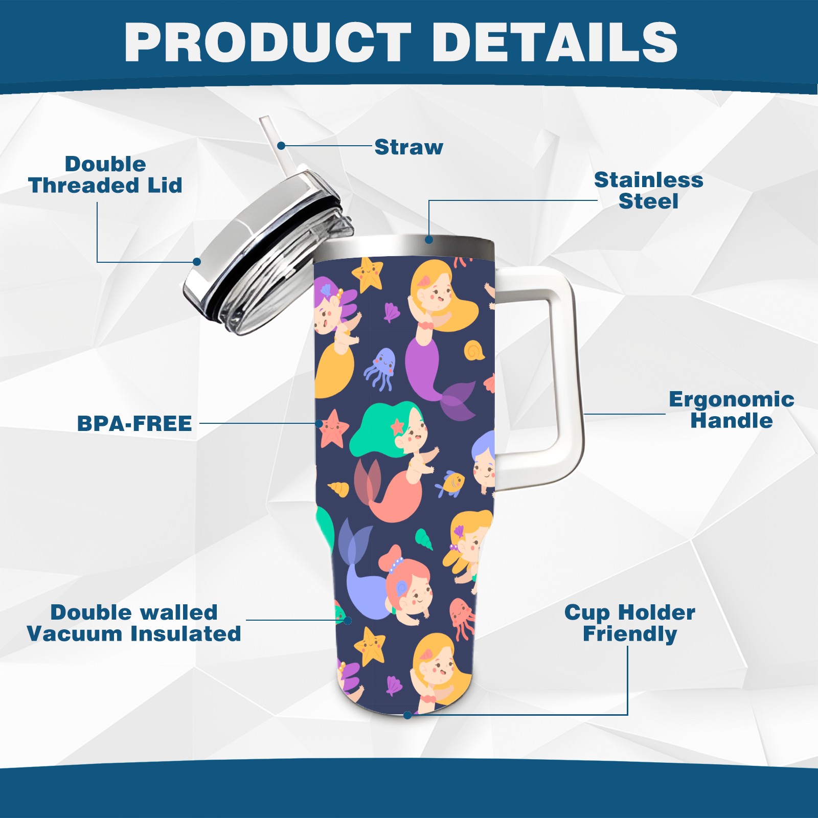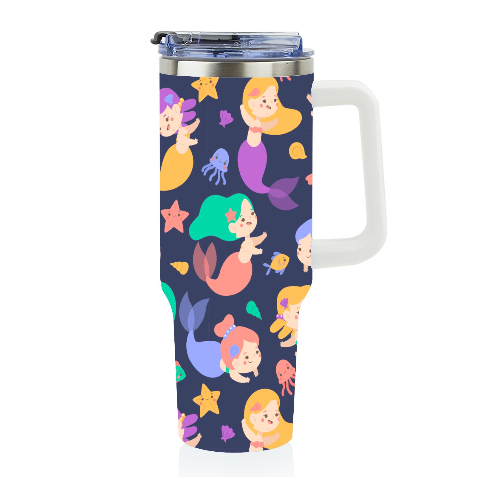 40oz Cute Mermaid thermos with lid and straw, leak-proof stainless steel, with handle, spill-proof bottle, convenient for travel(pink)