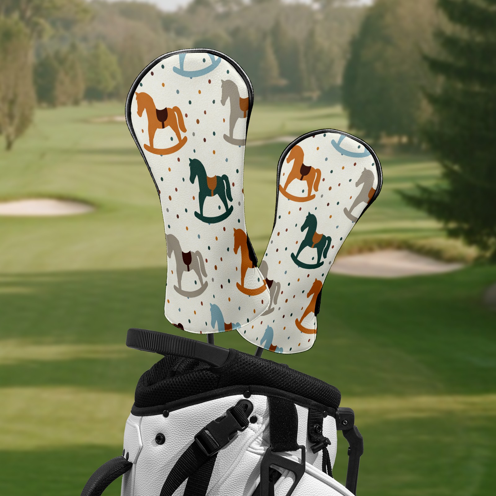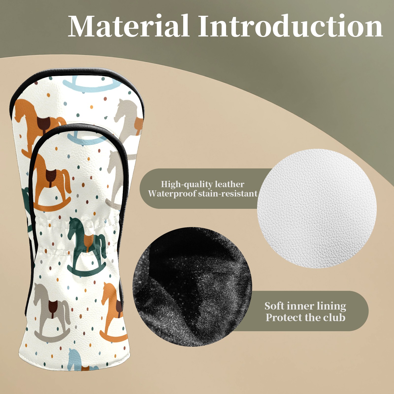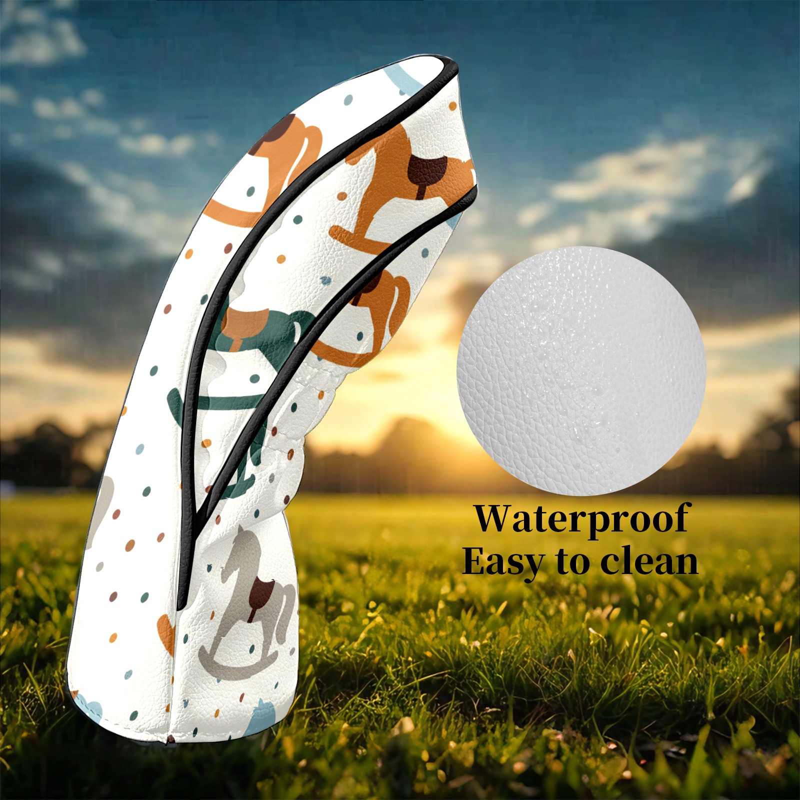 Counullo Golf Club Headcovers - Cozy Carousel Beige Premium PU Leather with Plush Lining for Driver & Fairway Woods, No-Slip Fit for All Clubs, Novelty Gift for Men & Women