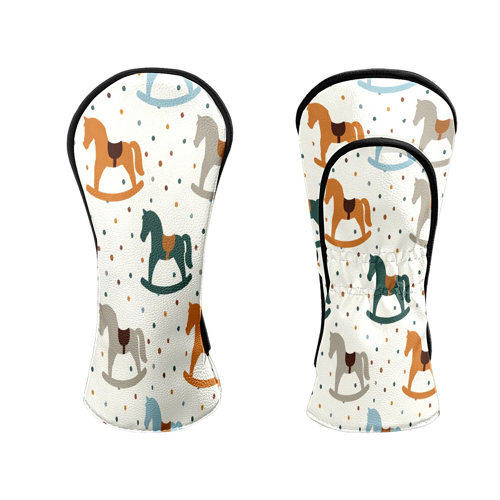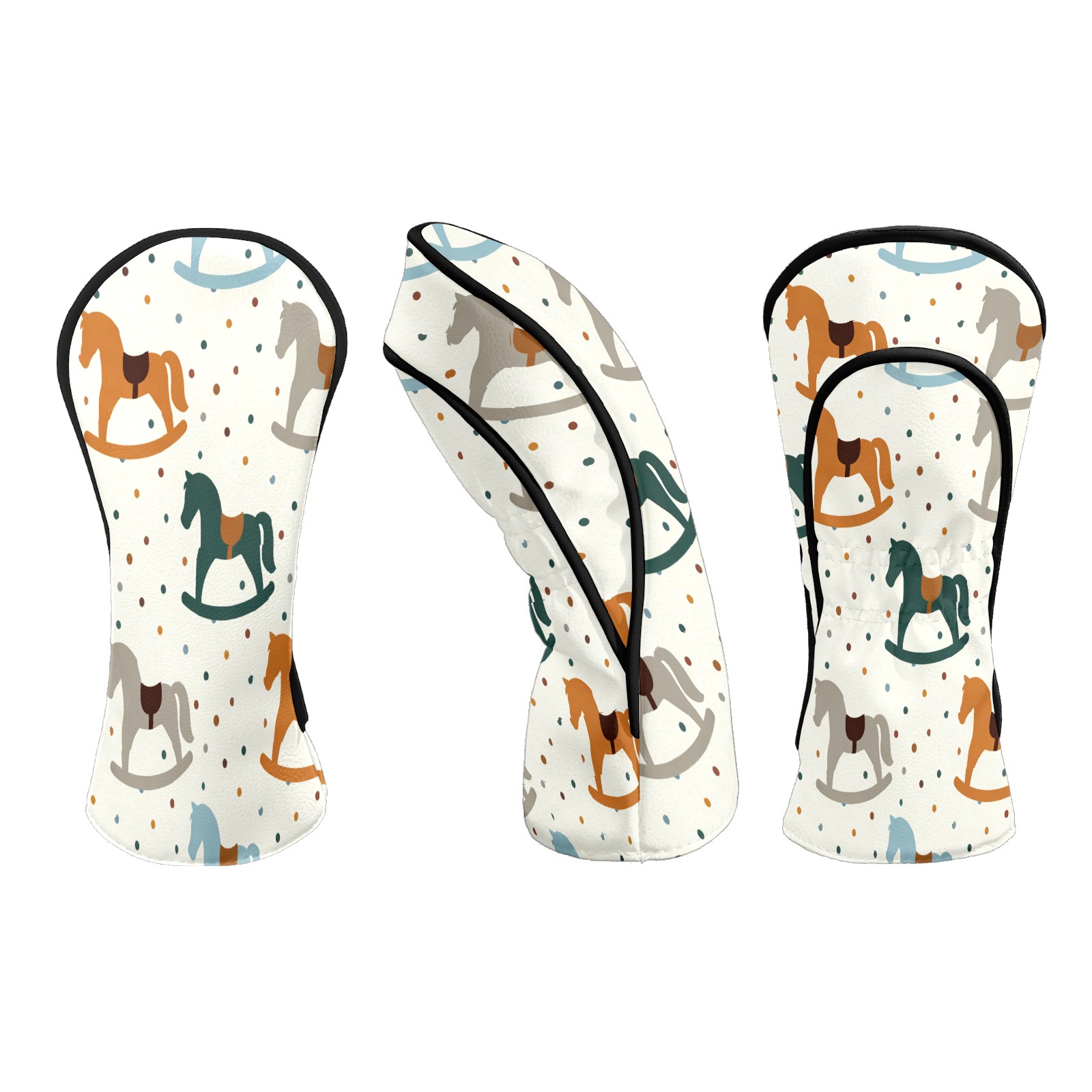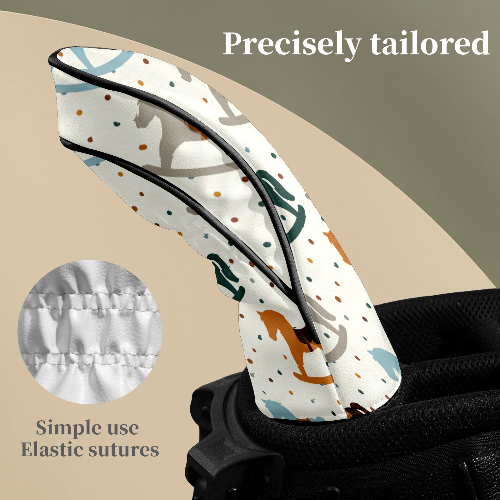 Counullo Golf Club Headcovers - Cozy Carousel Beige Premium PU Leather with Plush Lining for Driver & Fairway Woods, No-Slip Fit for All Clubs, Novelty Gift for Men & Women