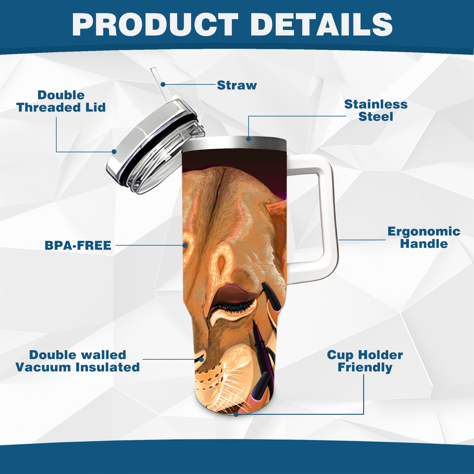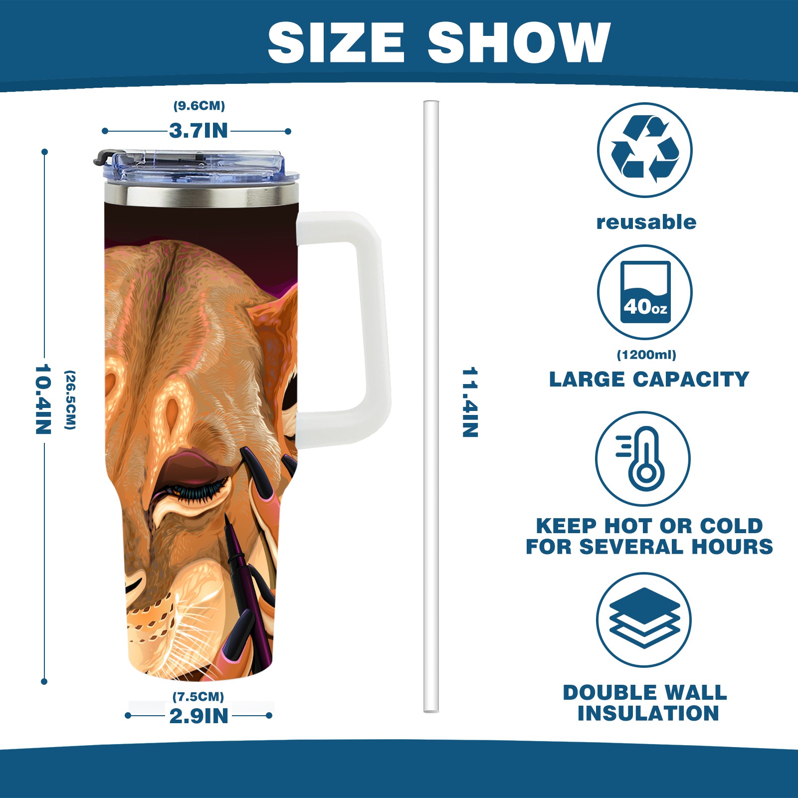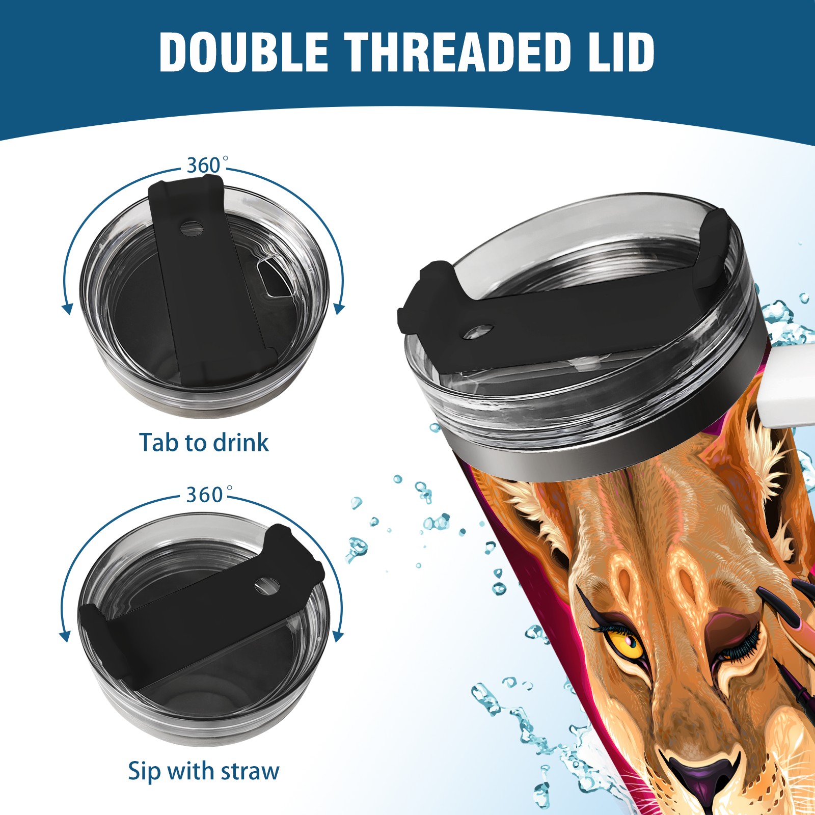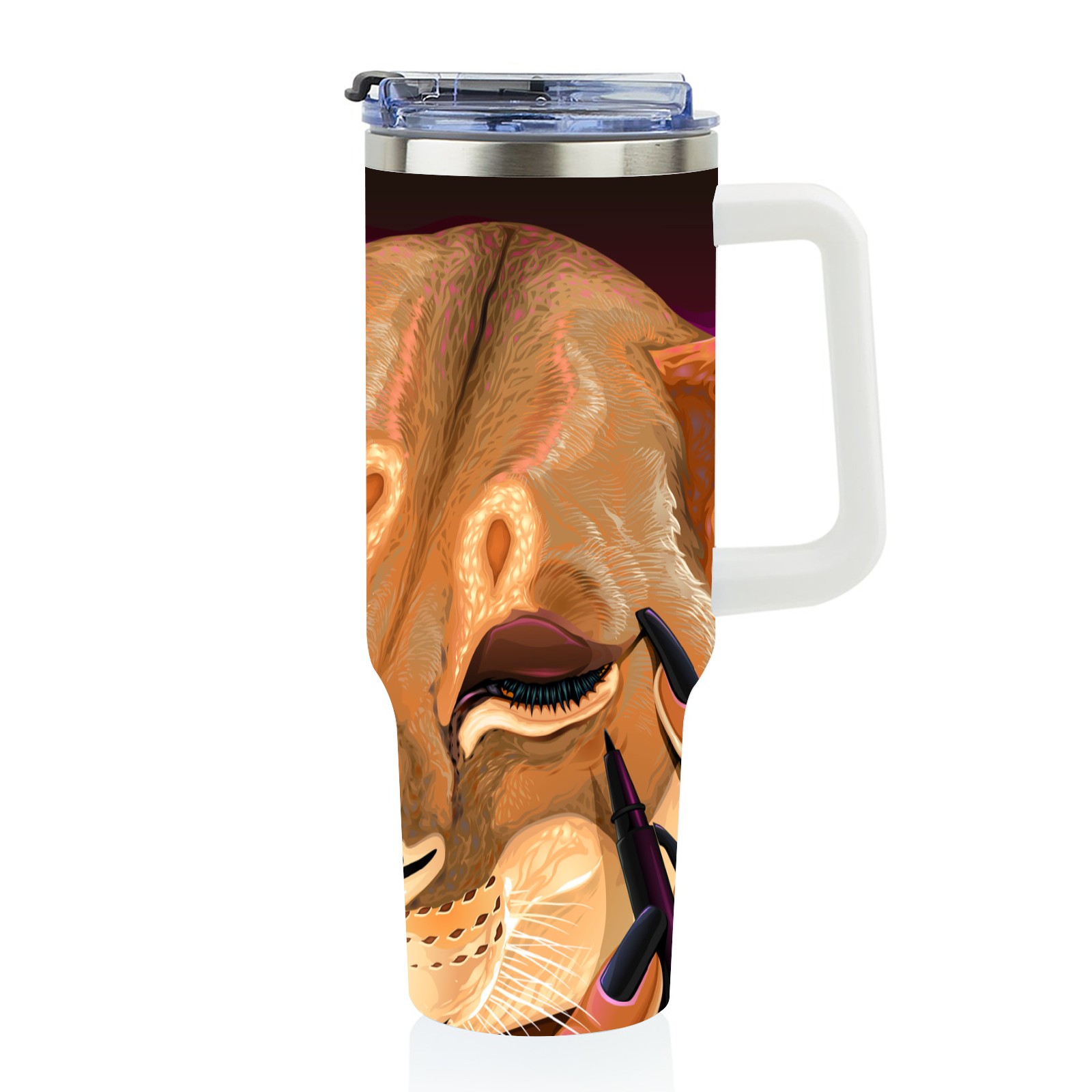 40oz Makeup Lion thermos with lid and straw, leak-proof stainless steel, with handle, spill-proof bottle, convenient for travel(pink)