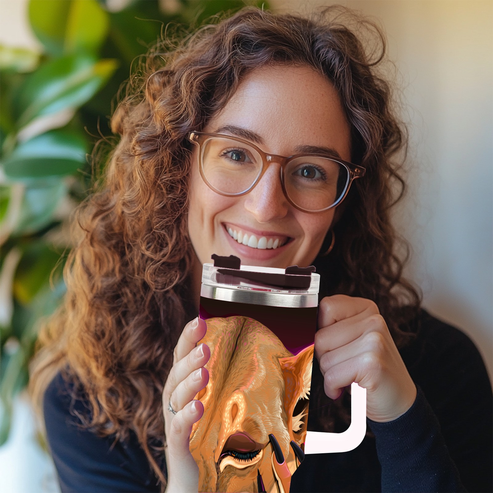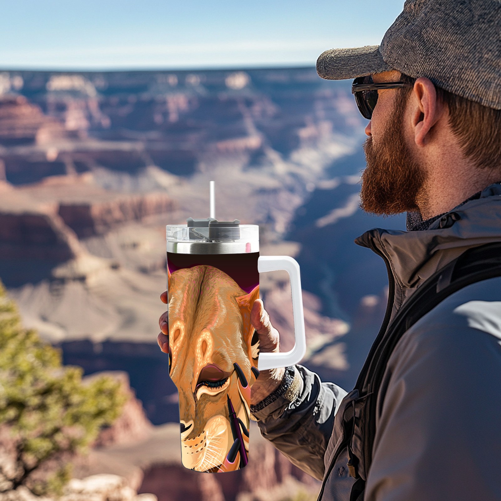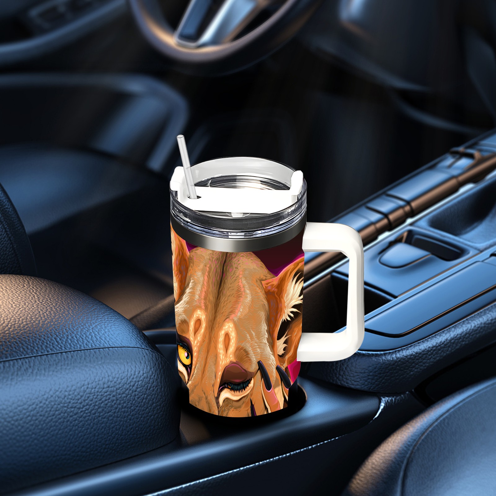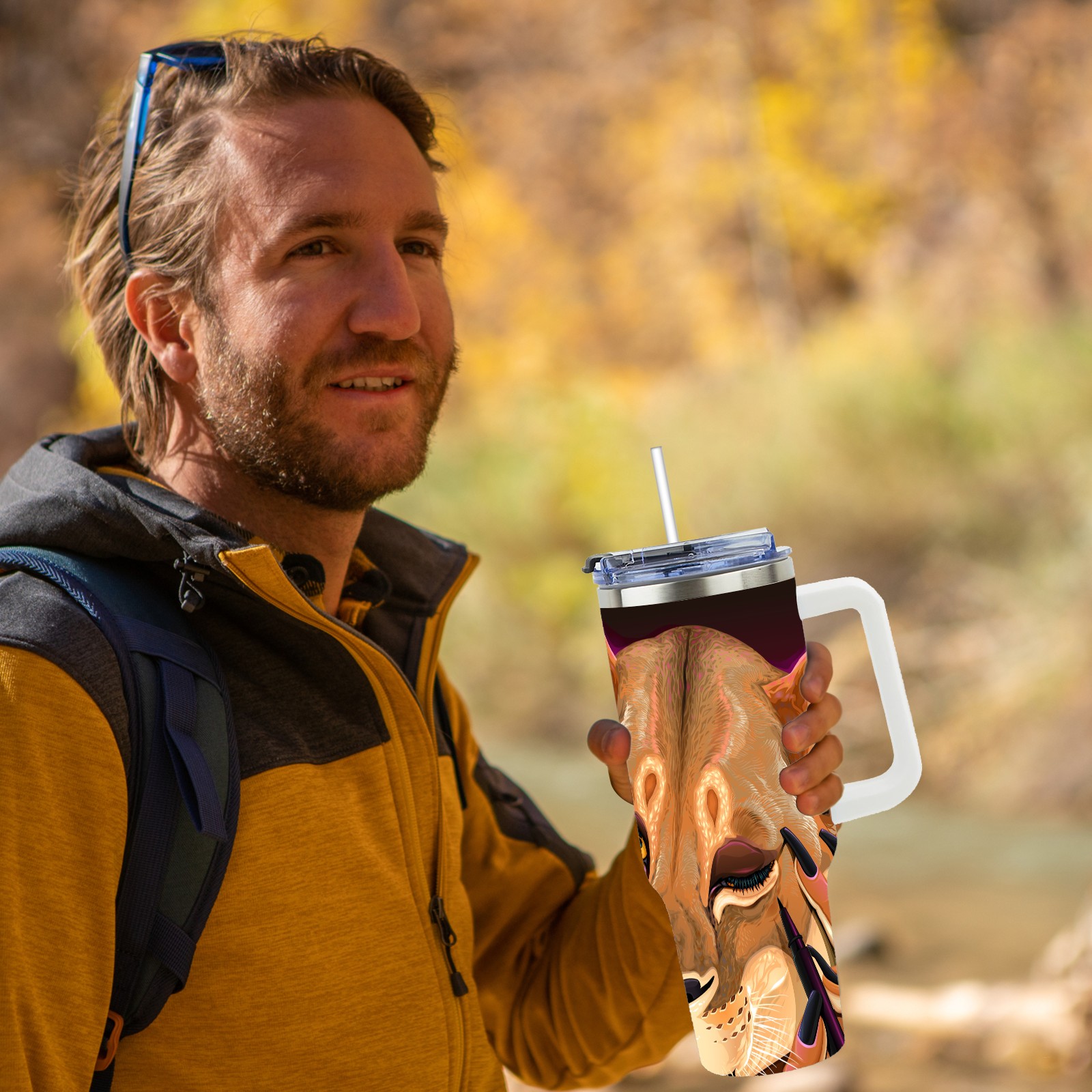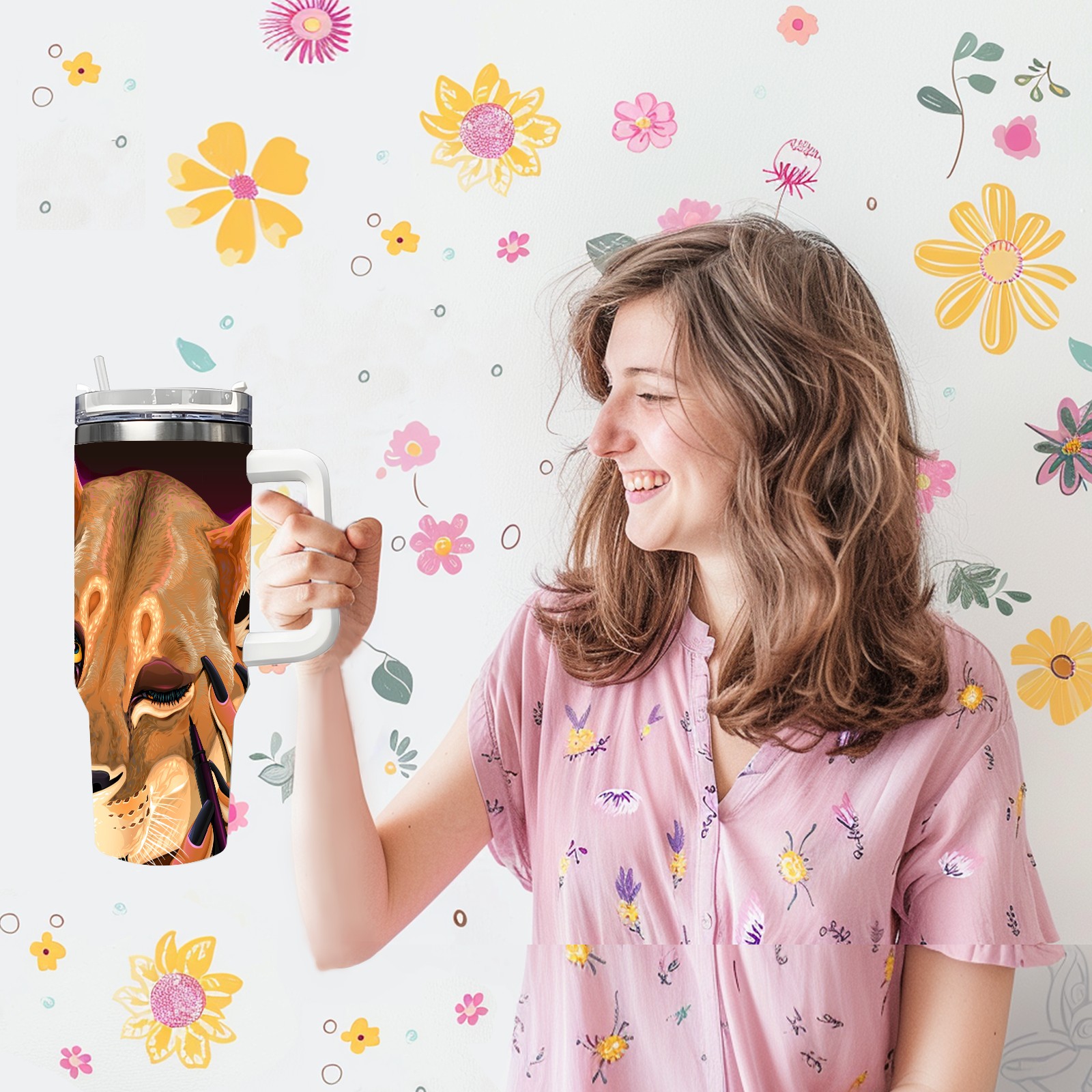 40oz Makeup Lion thermos with lid and straw, leak-proof stainless steel, with handle, spill-proof bottle, convenient for travel(pink)