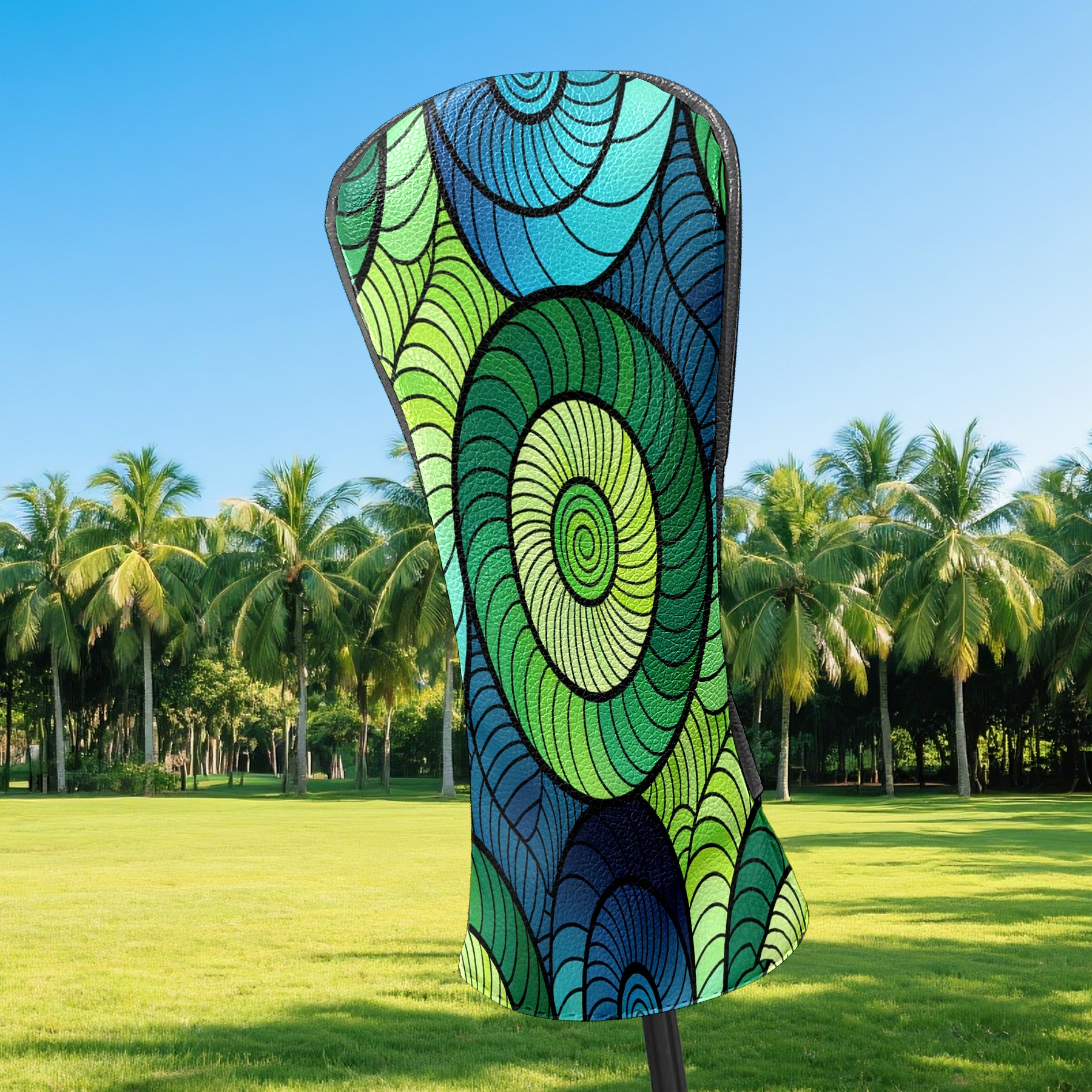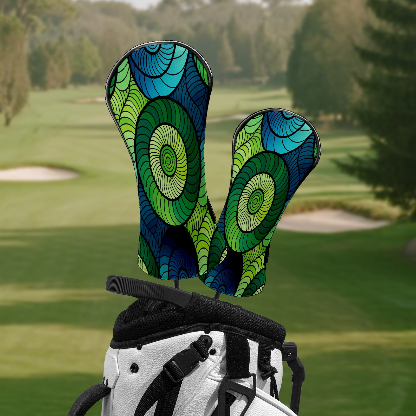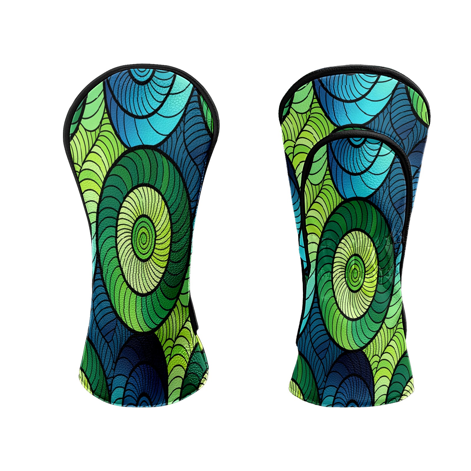 Counullo Golf Club Headcovers - Dynamic Spirals Green Premium PU Leather with Plush Lining for Driver & Fairway Woods, No-Slip Fit for All Clubs, Novelty Gift for Men & Women