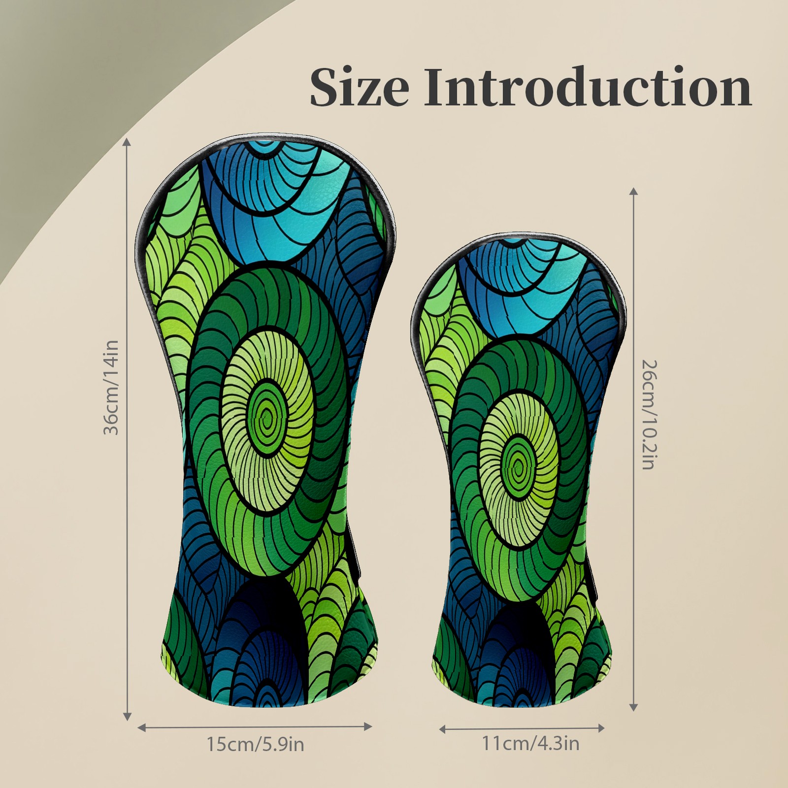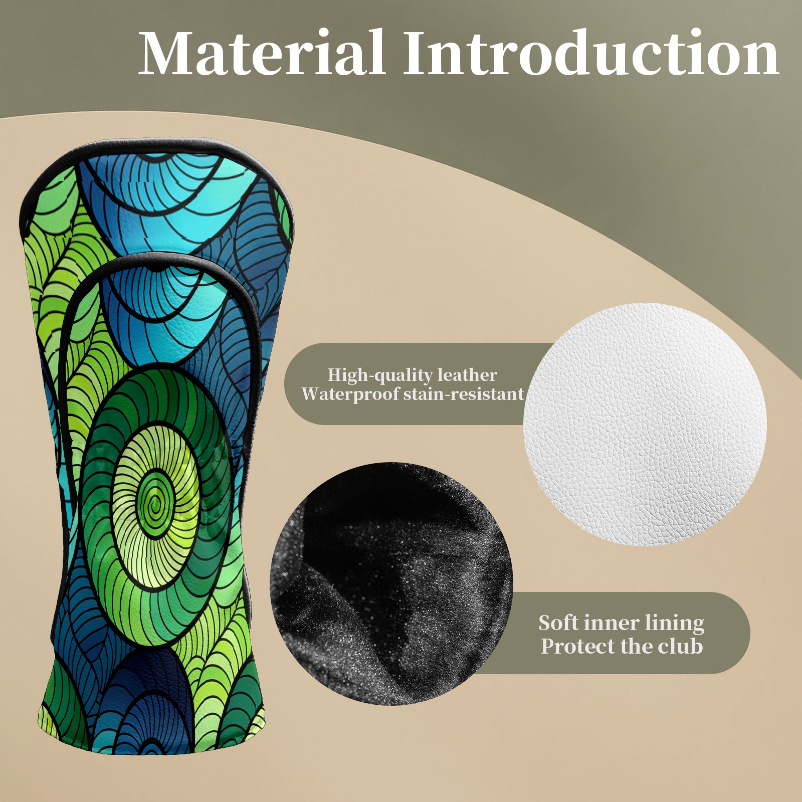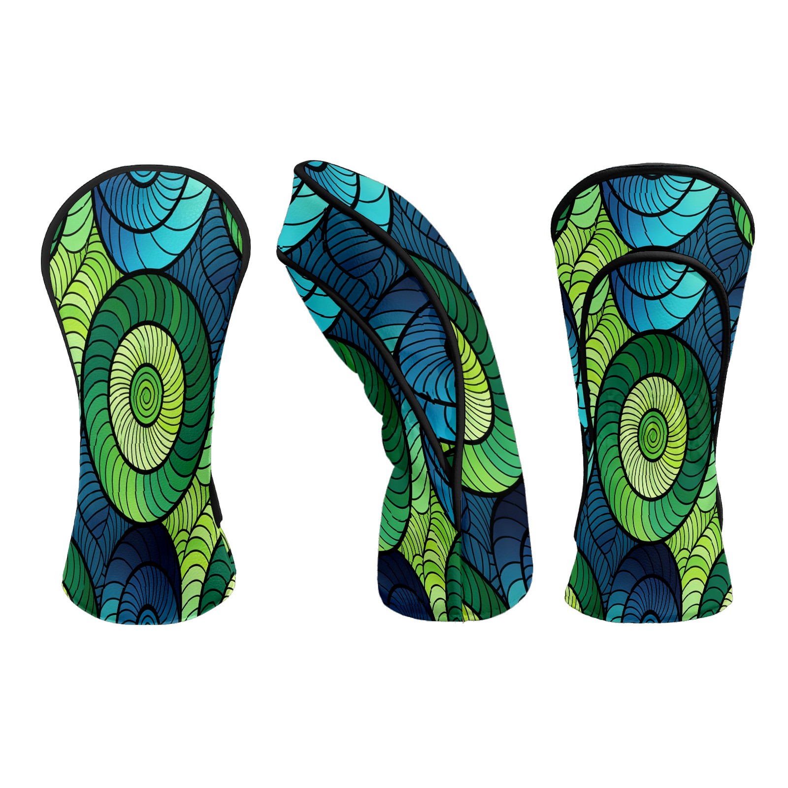Counullo Golf Club Headcovers - Dynamic Spirals Green Premium PU Leather with Plush Lining for Driver & Fairway Woods, No-Slip Fit for All Clubs, Novelty Gift for Men & Women