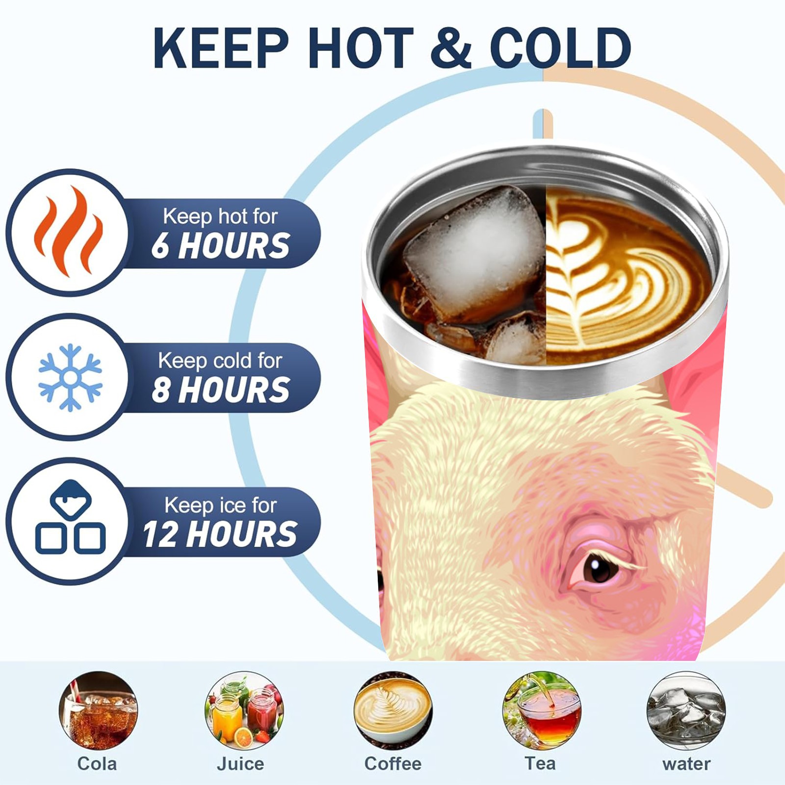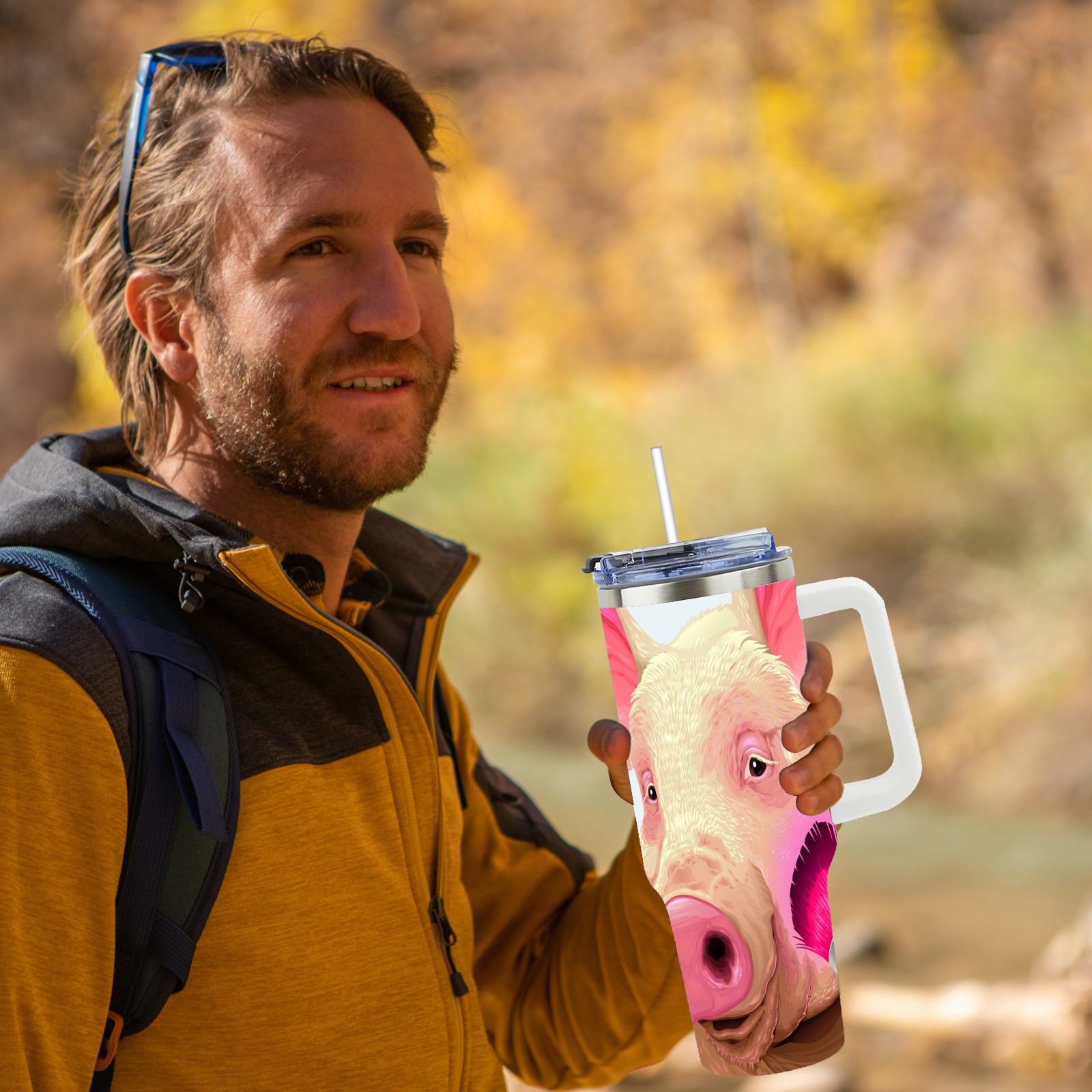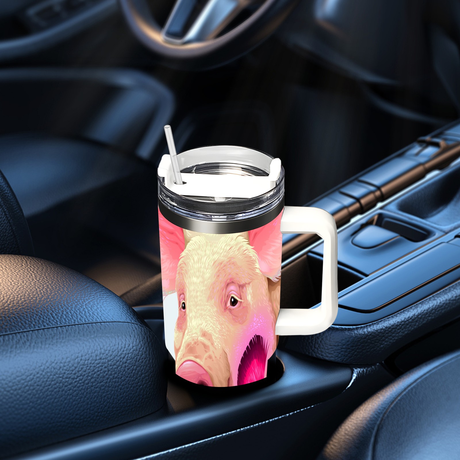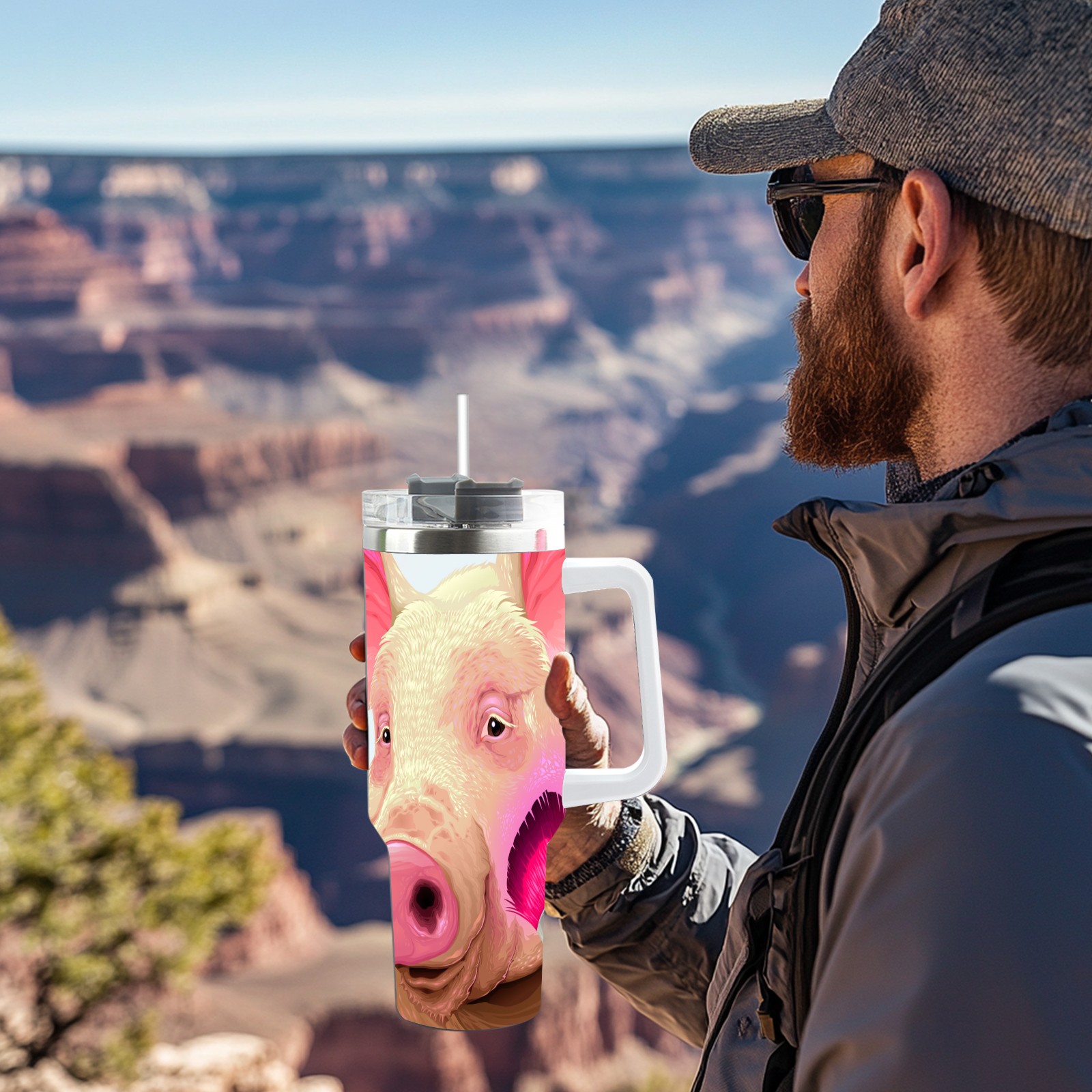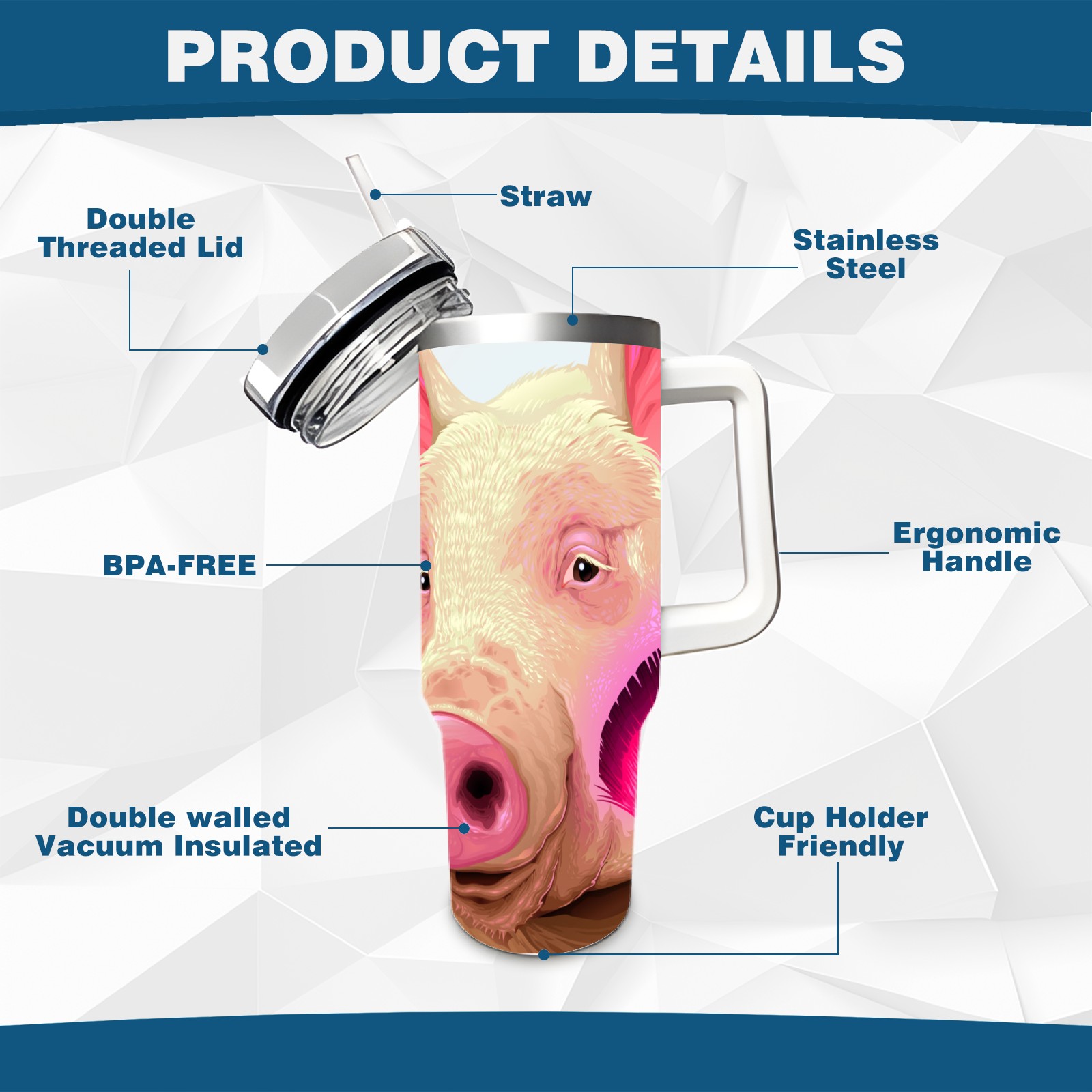 40oz Charming Pig thermos with lid and straw, leak-proof stainless steel, with handle, spill-proof bottle, convenient for travel(pink)
