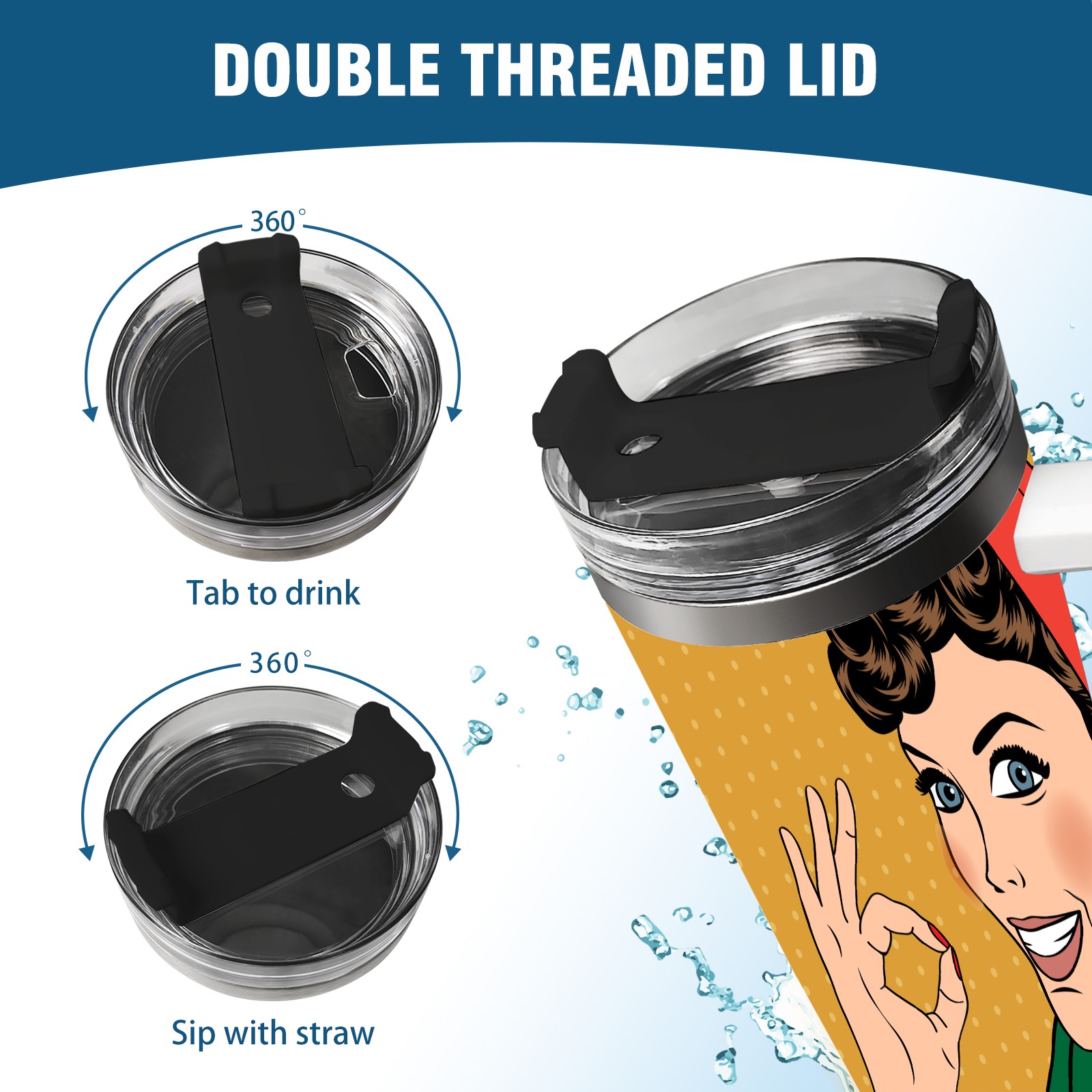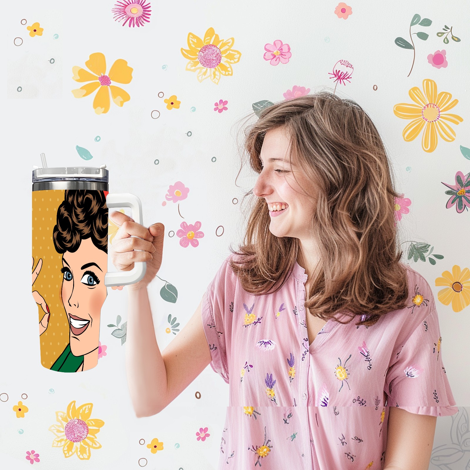 40oz Ok Woman thermos with lid and straw, leak-proof stainless steel, with handle, spill-proof bottle, convenient for travel(pink)